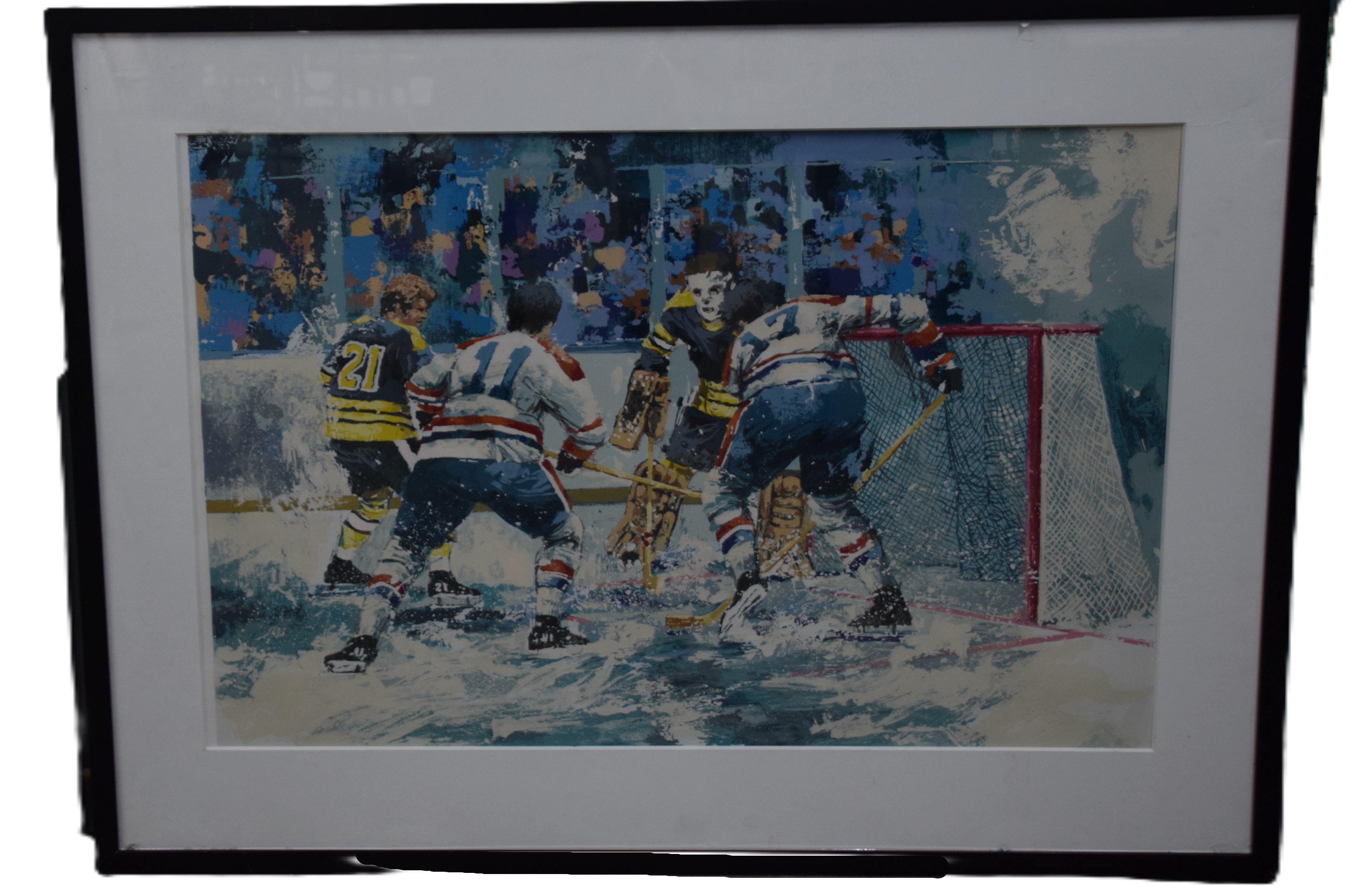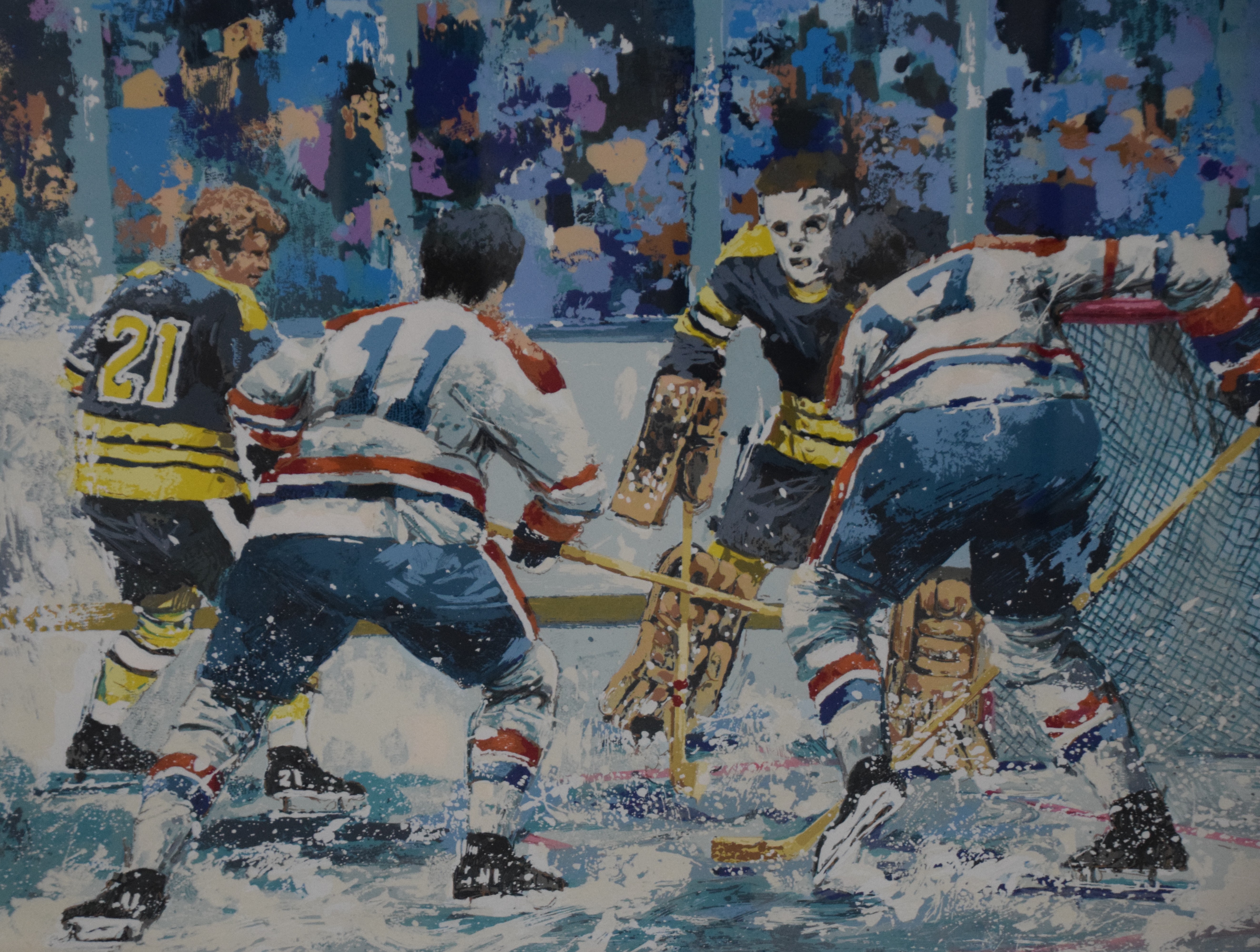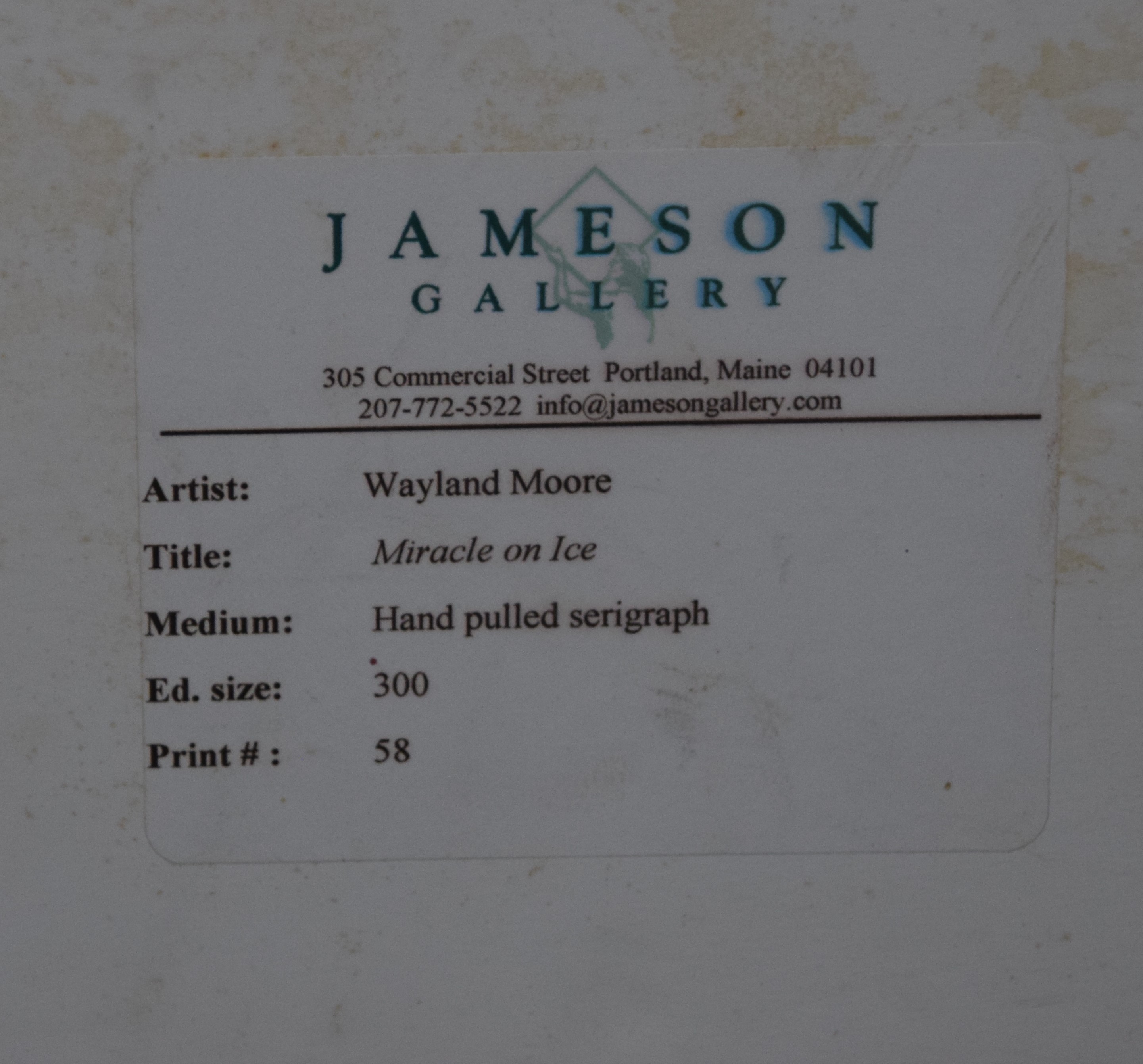 A serigraph of the Miracle on Ice by the 1980 USA hockey team by Wayland Moore (born 1953). Dimensions: 24″ x 35″ Image size