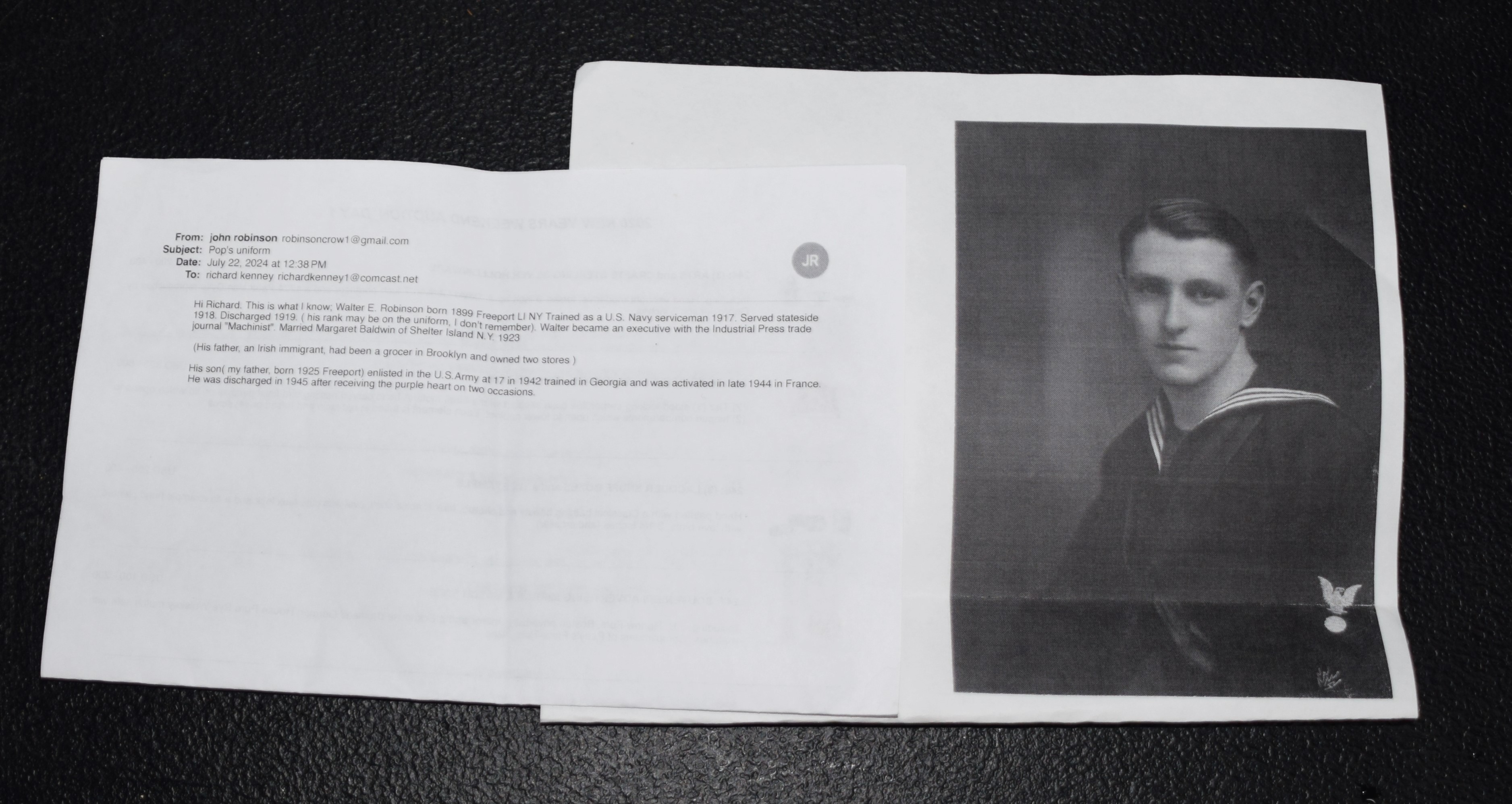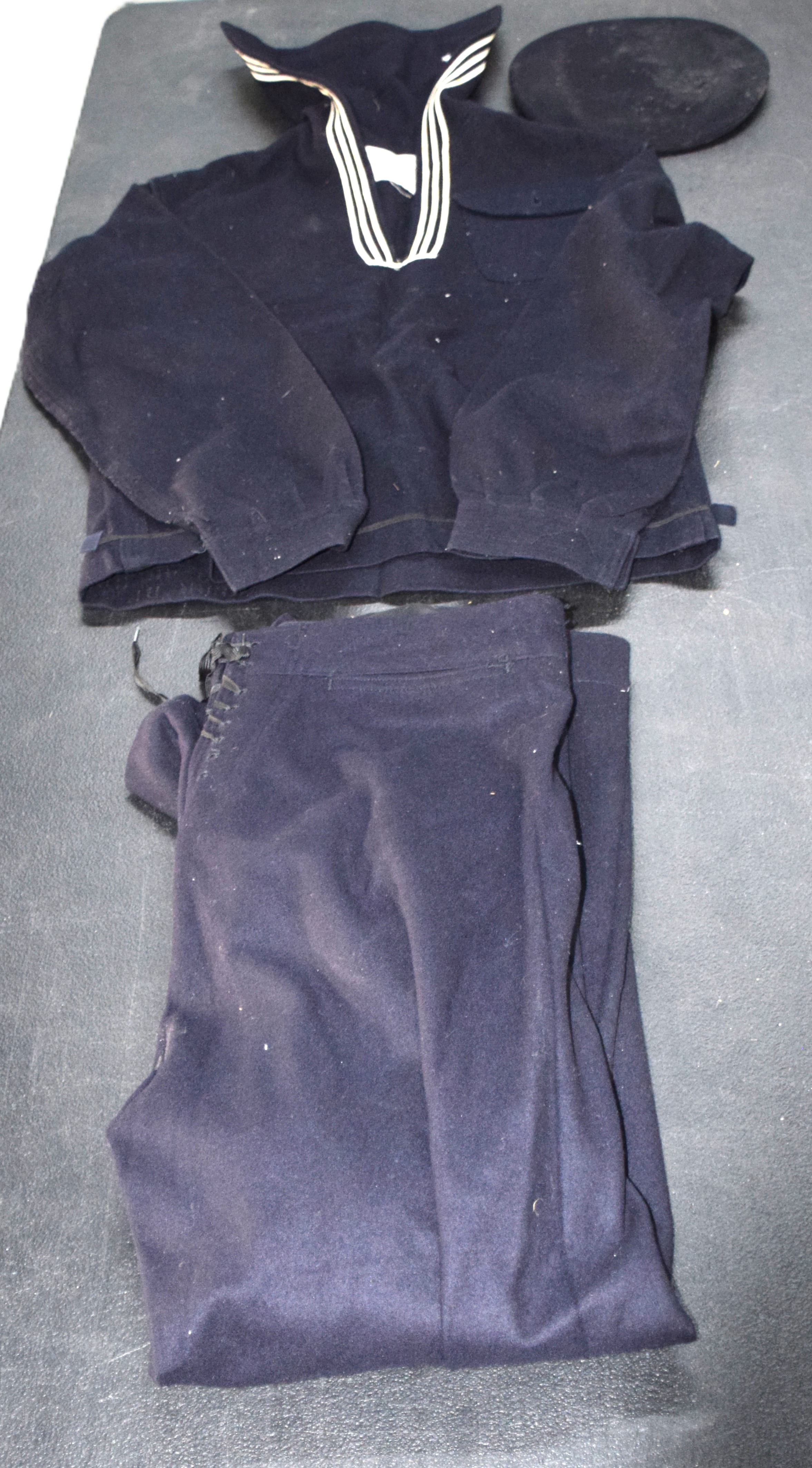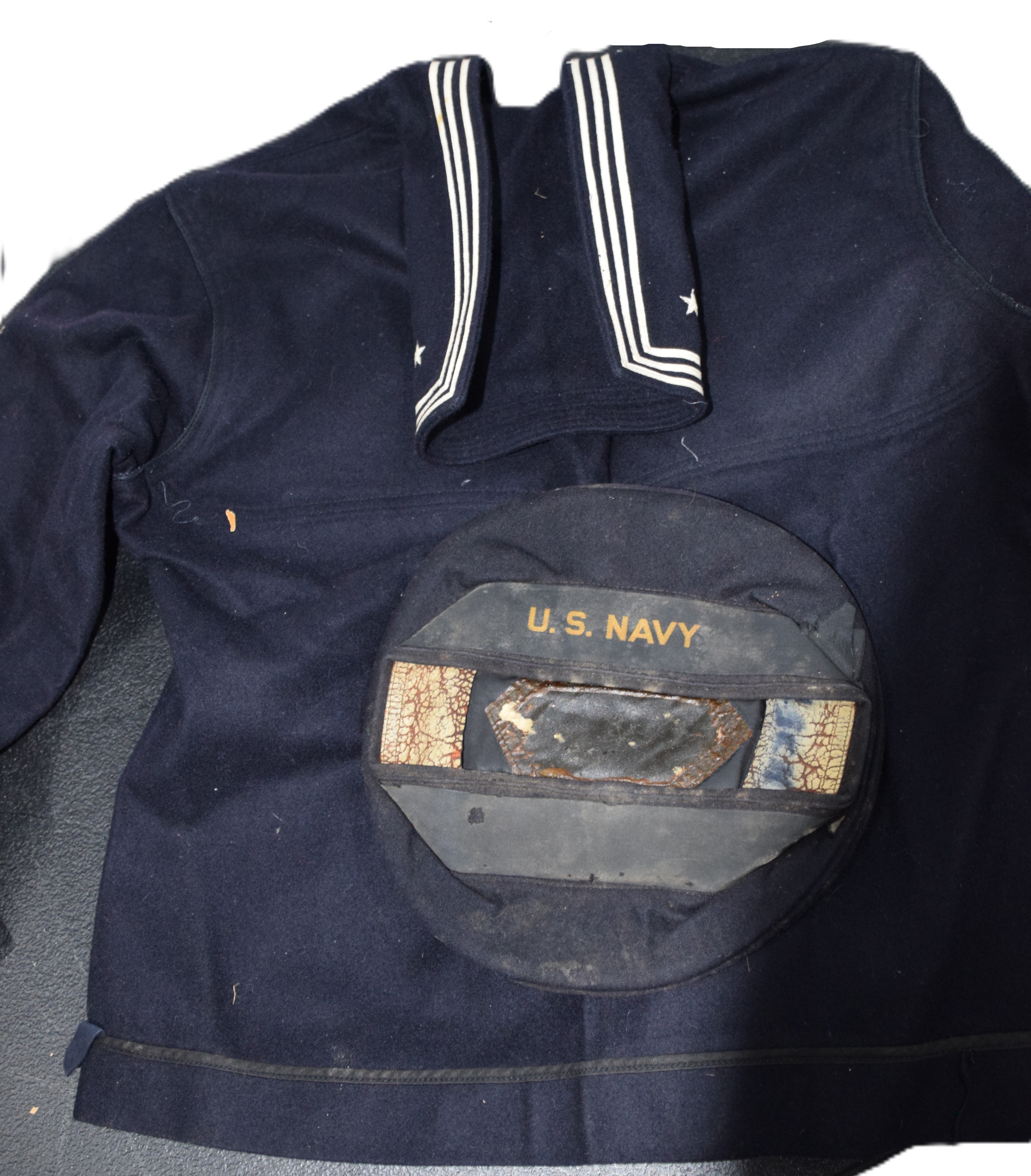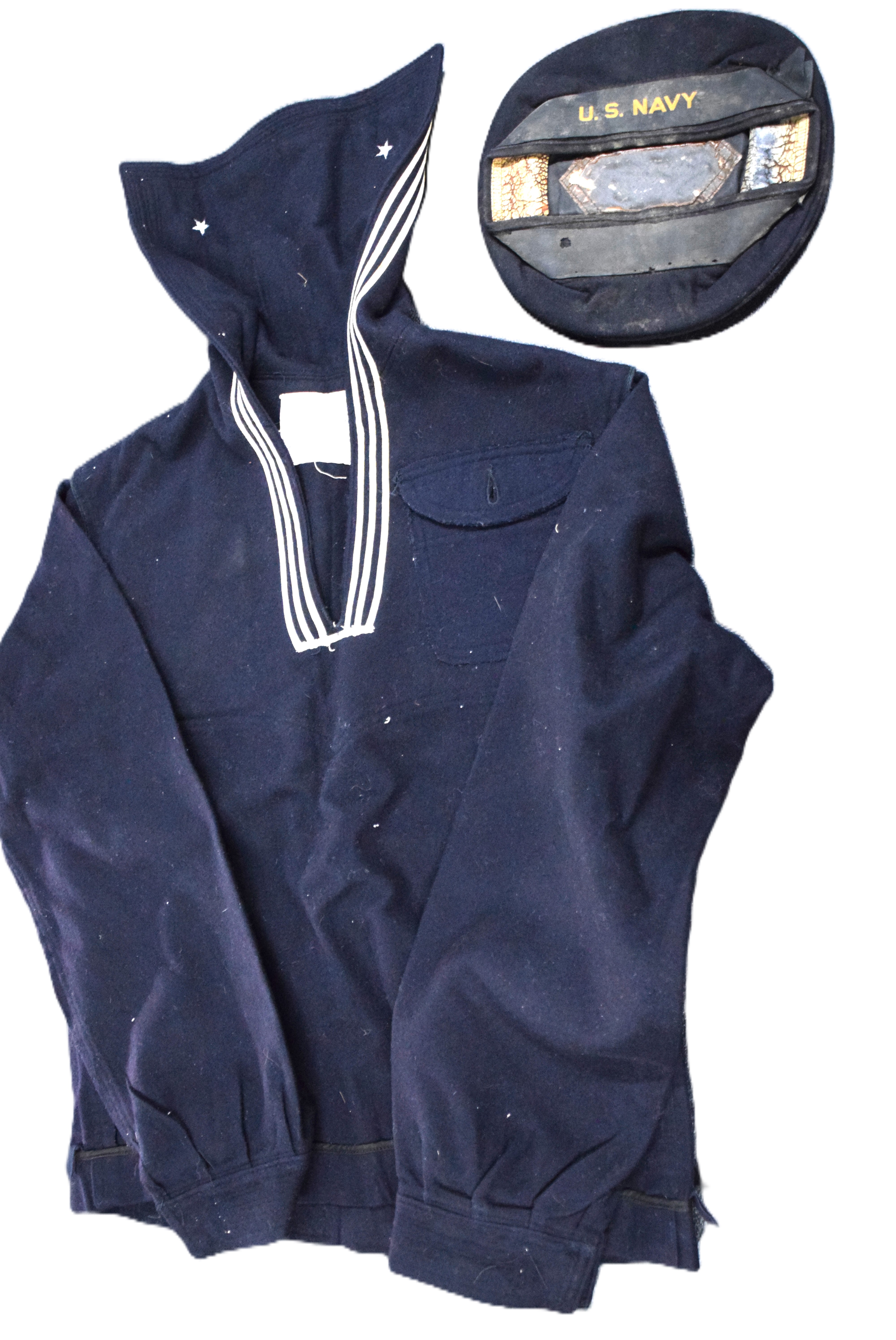 US WWI complete naval uniform of Walter E. Robinson, born 1899 in Freeport NY who served from 1917-1919. Uniform consists of his hat, jumper, pants and overcoat.