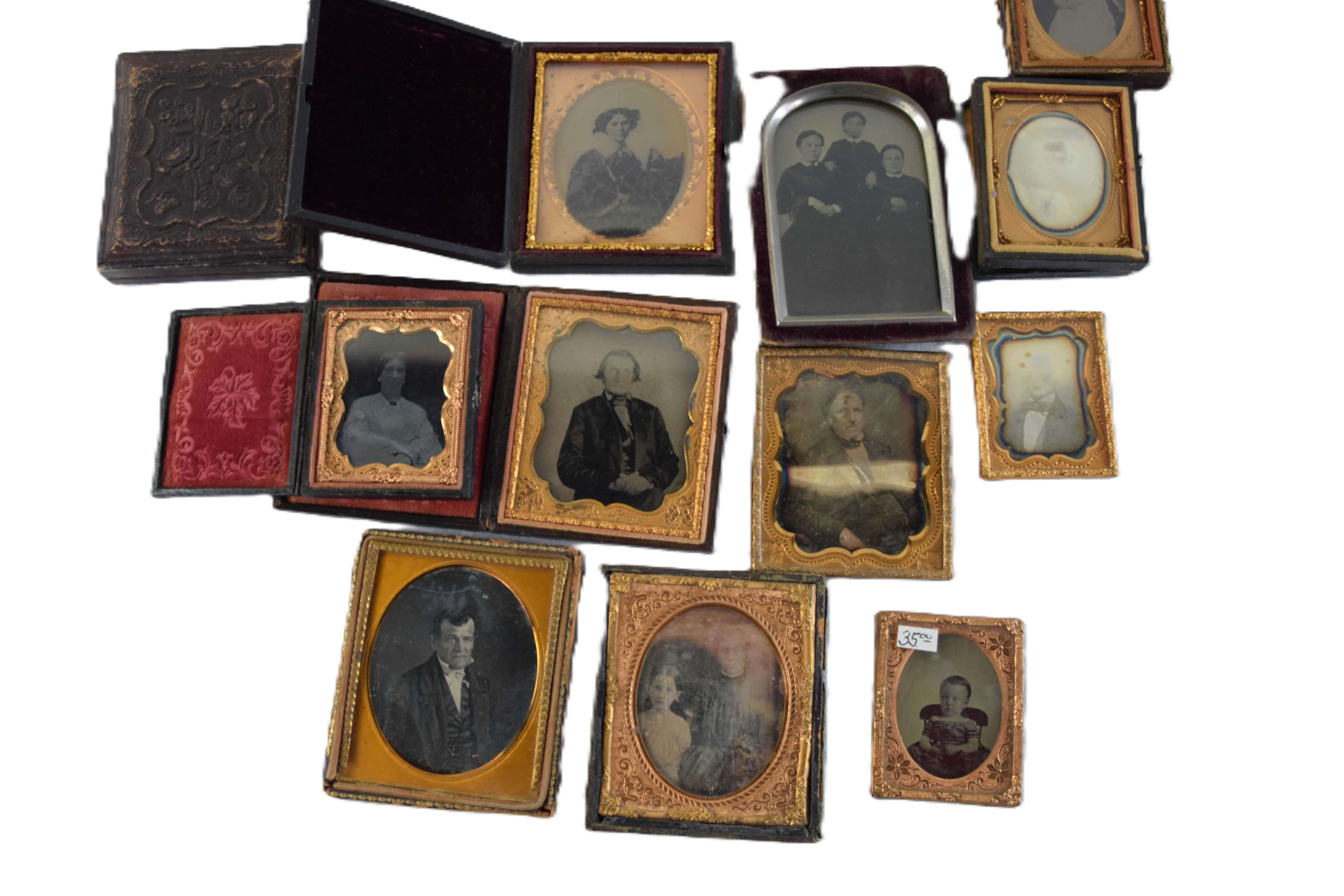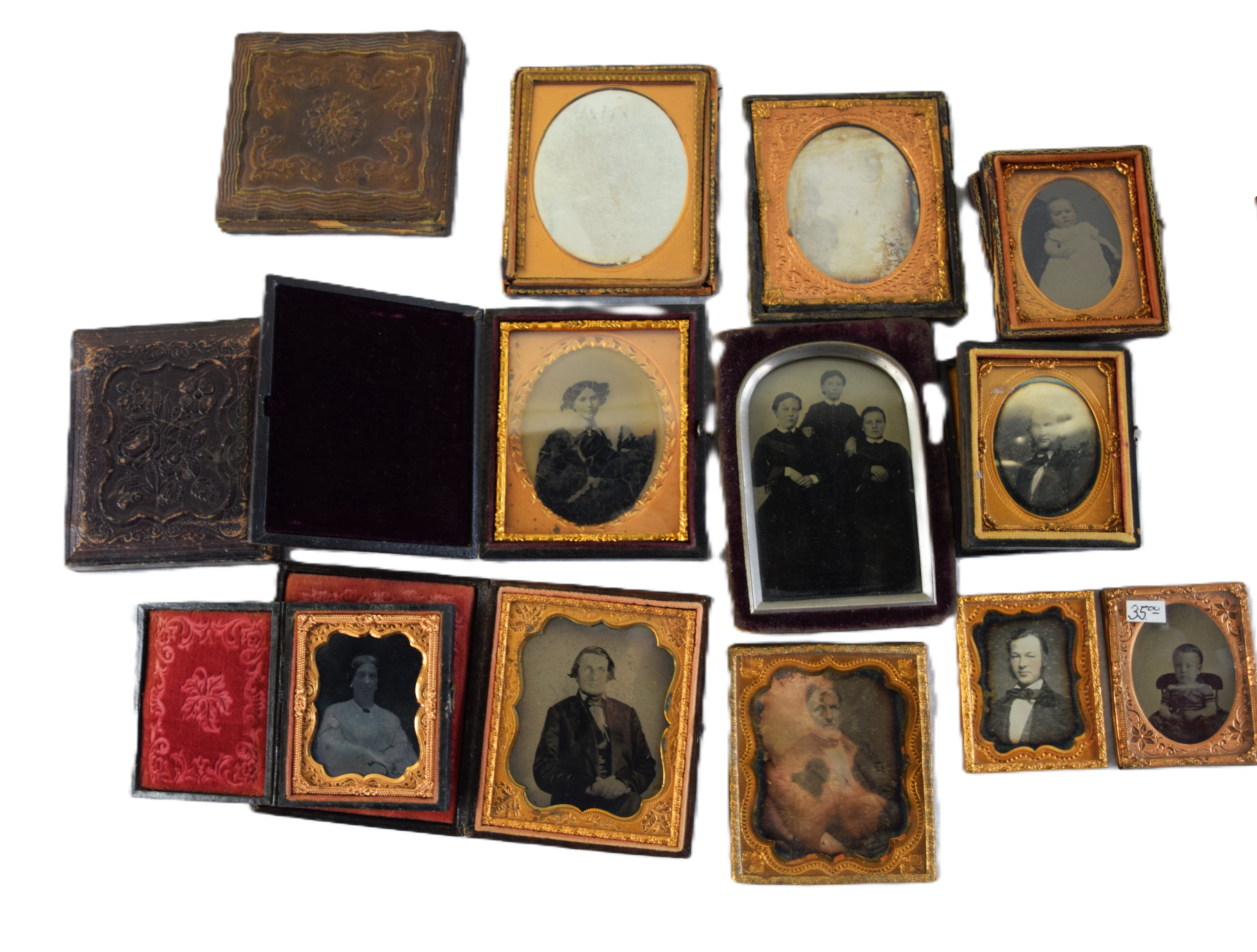 Collection of 12 Daguerreotypes of men, women and children, etc.