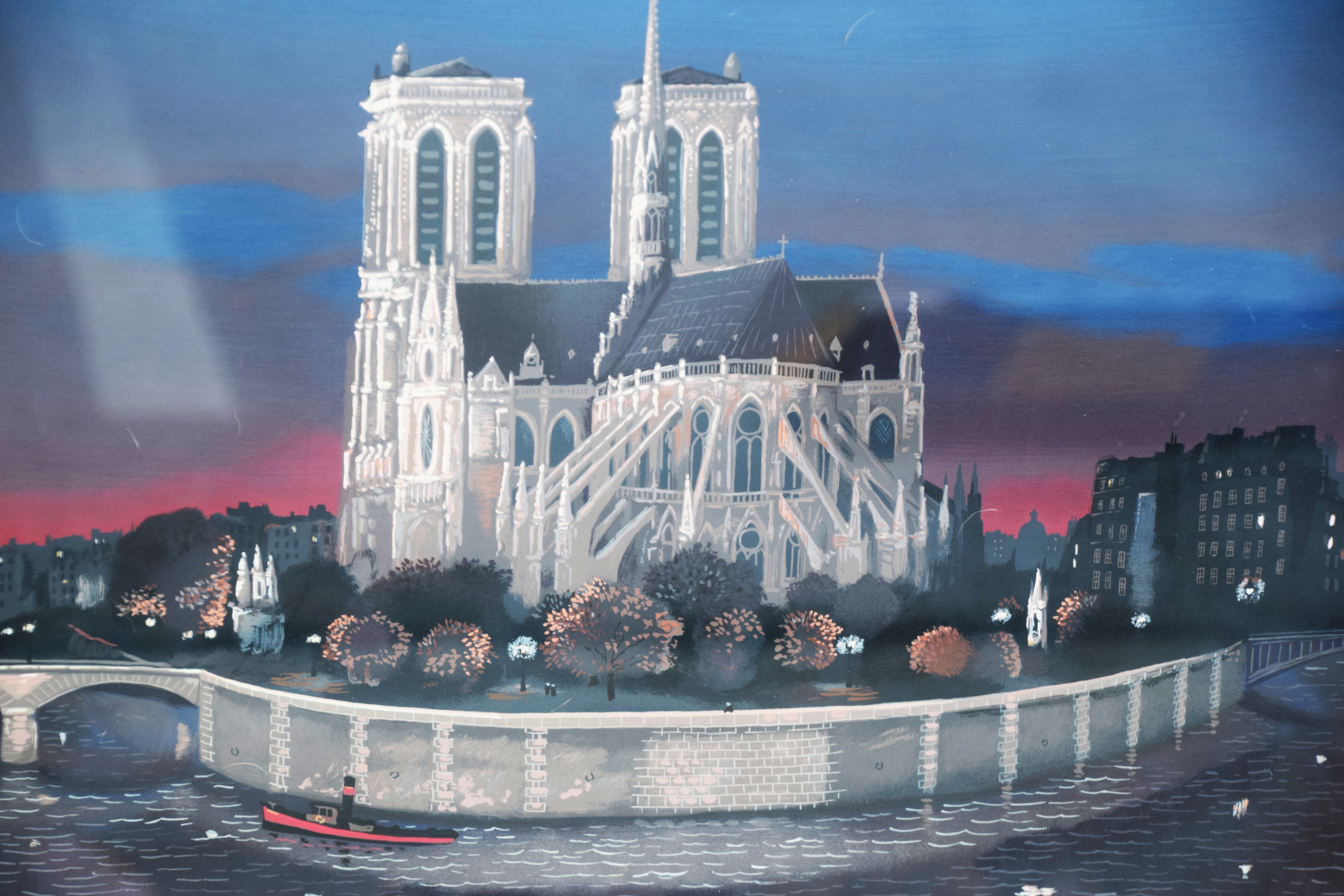 Large framed, Michael Delacroix Lithograph of Notre Dame, signed lower right, numbered 54 of 200. Dimensions: 24″ x 29″ Image size
