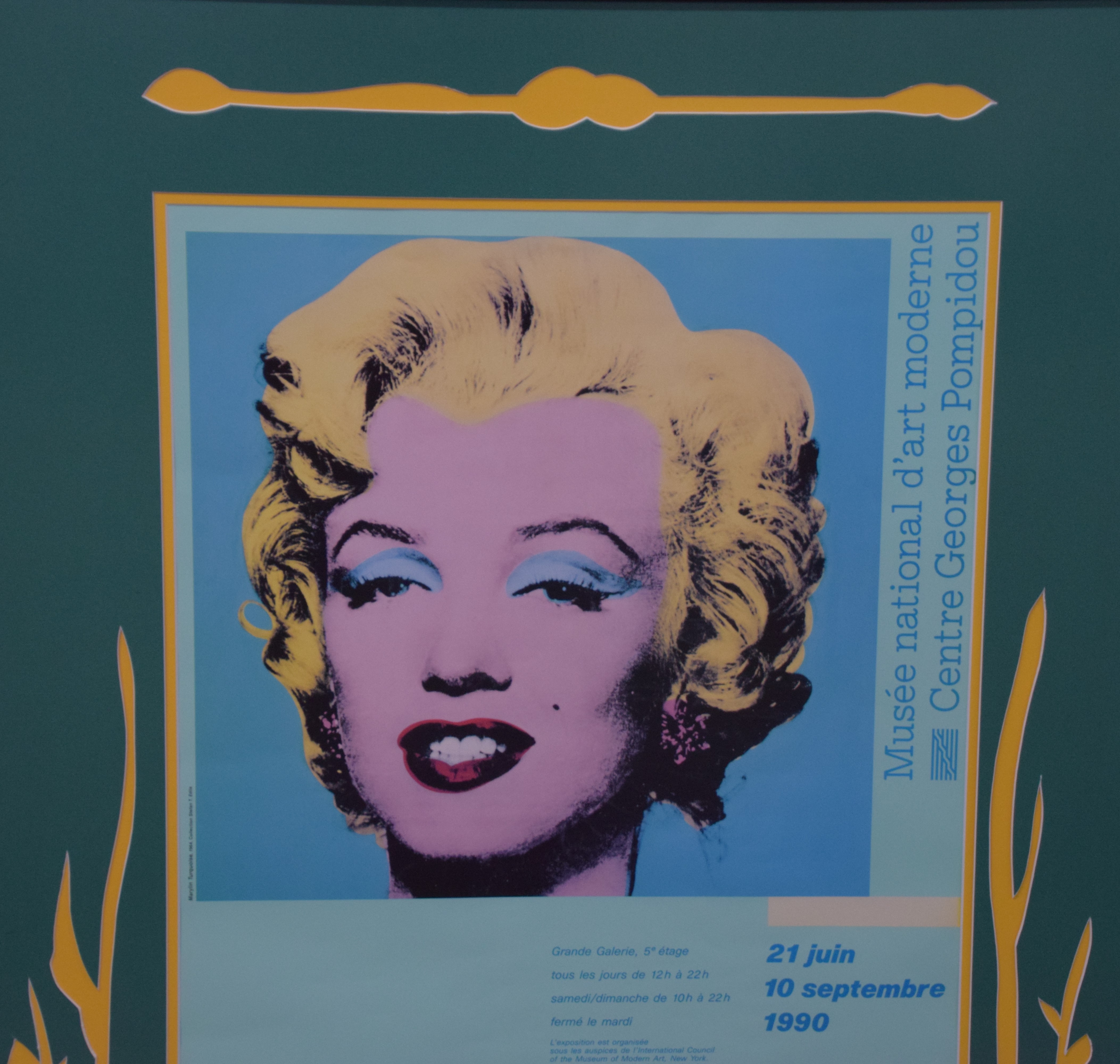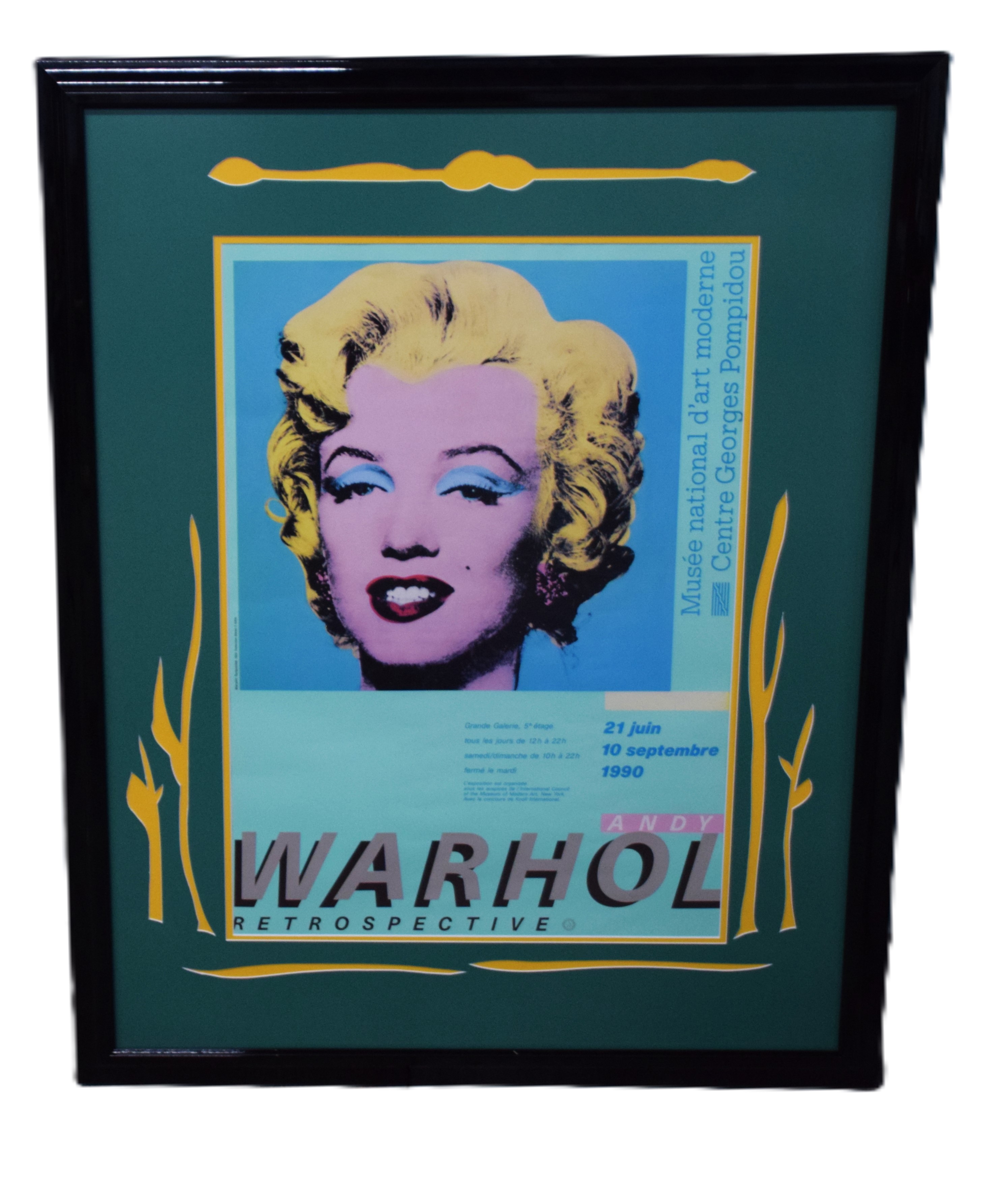 Marilyn Monroe/Andy Warhol framed poster from the Marie Caruso Estate-Nashua NH. Dimensions: 28″ x 19″