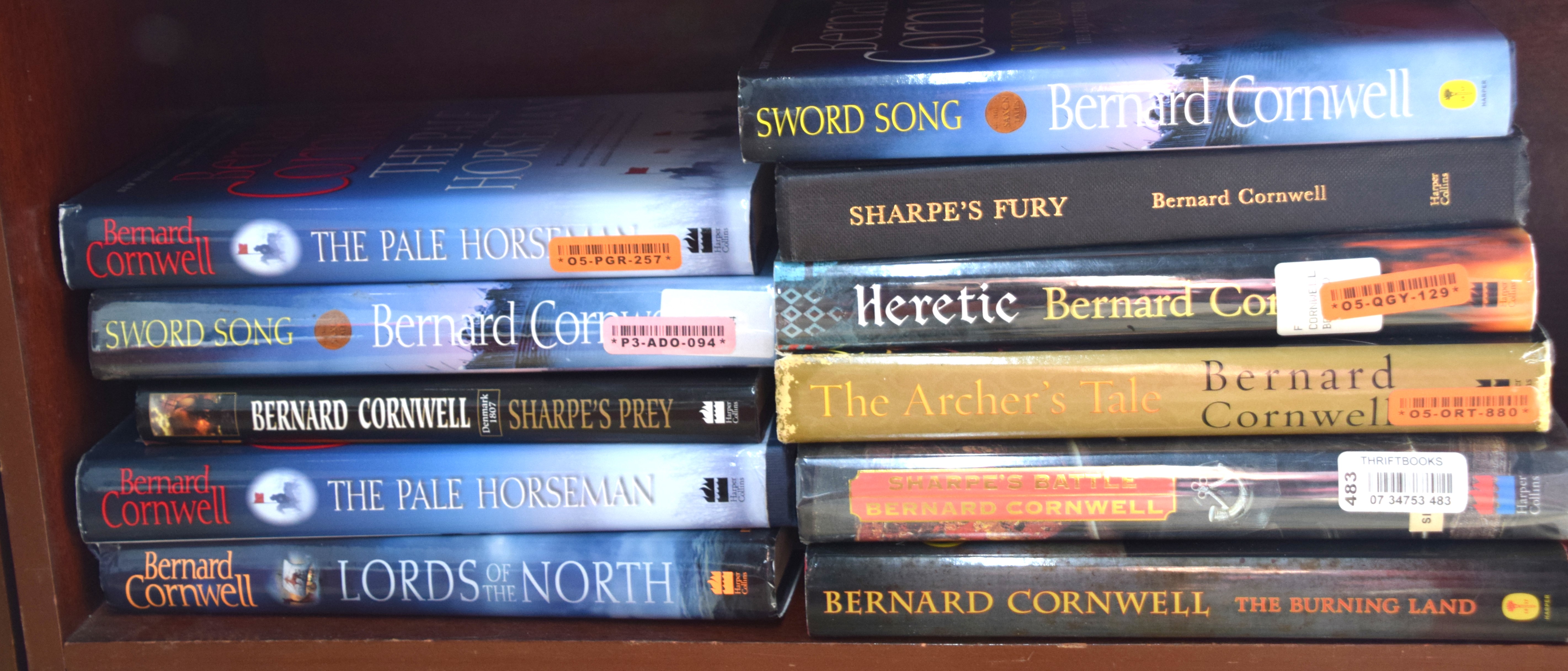 Eleven volumes of Bernard Cornwell books to include: The Heretic, Sword Song, Sharpe’s Prey, Sharpe’s Fury, The Archer’s Tale, Lords of the North, The burning Land and more