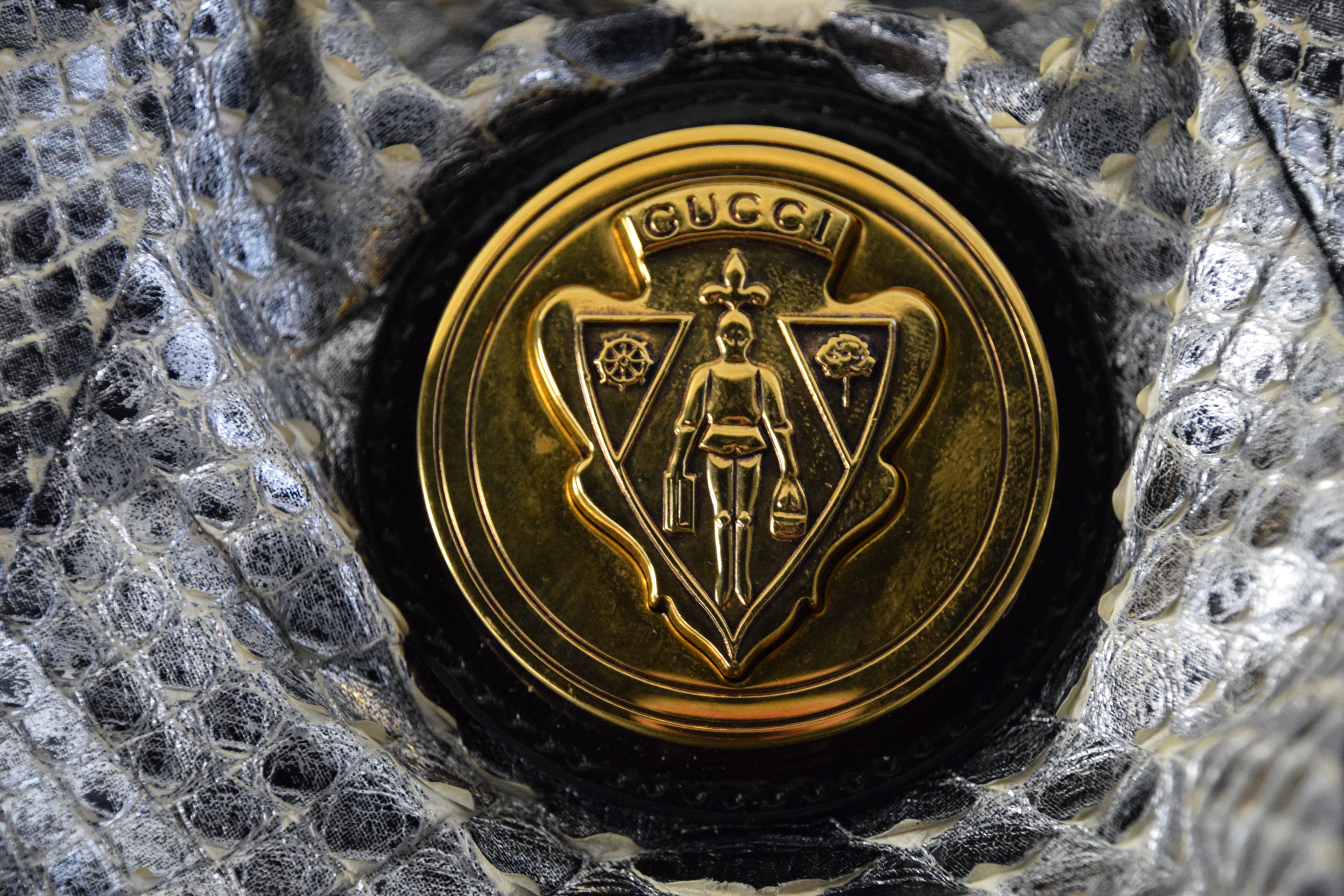 GUCCI Snakeskin Shoulder Bag. Dimensions: 12″ x 14″