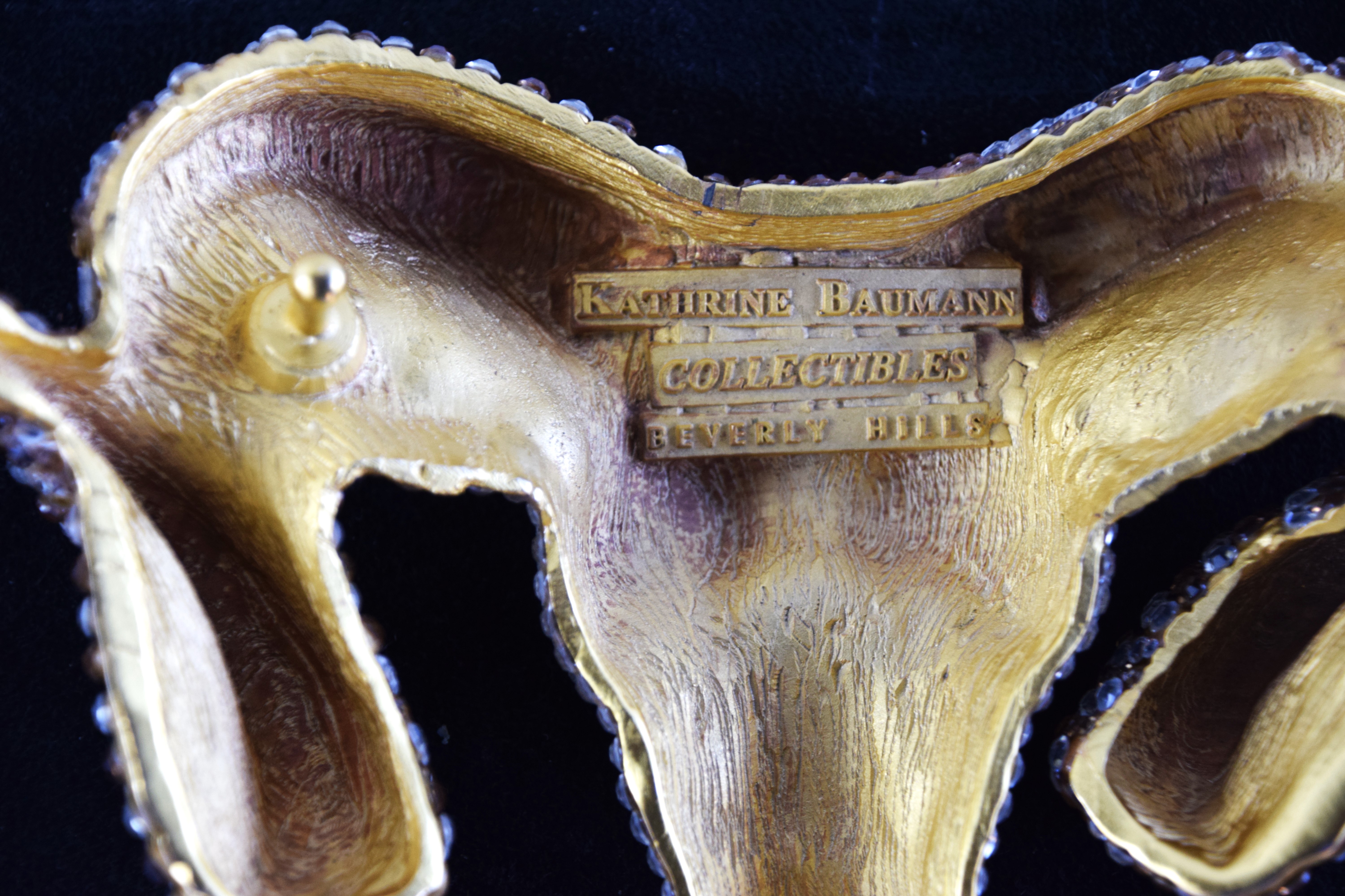Kathrine Baumann of Beverly Hills, Swarovski ram design belt buckle. Dimensions: 6″ L