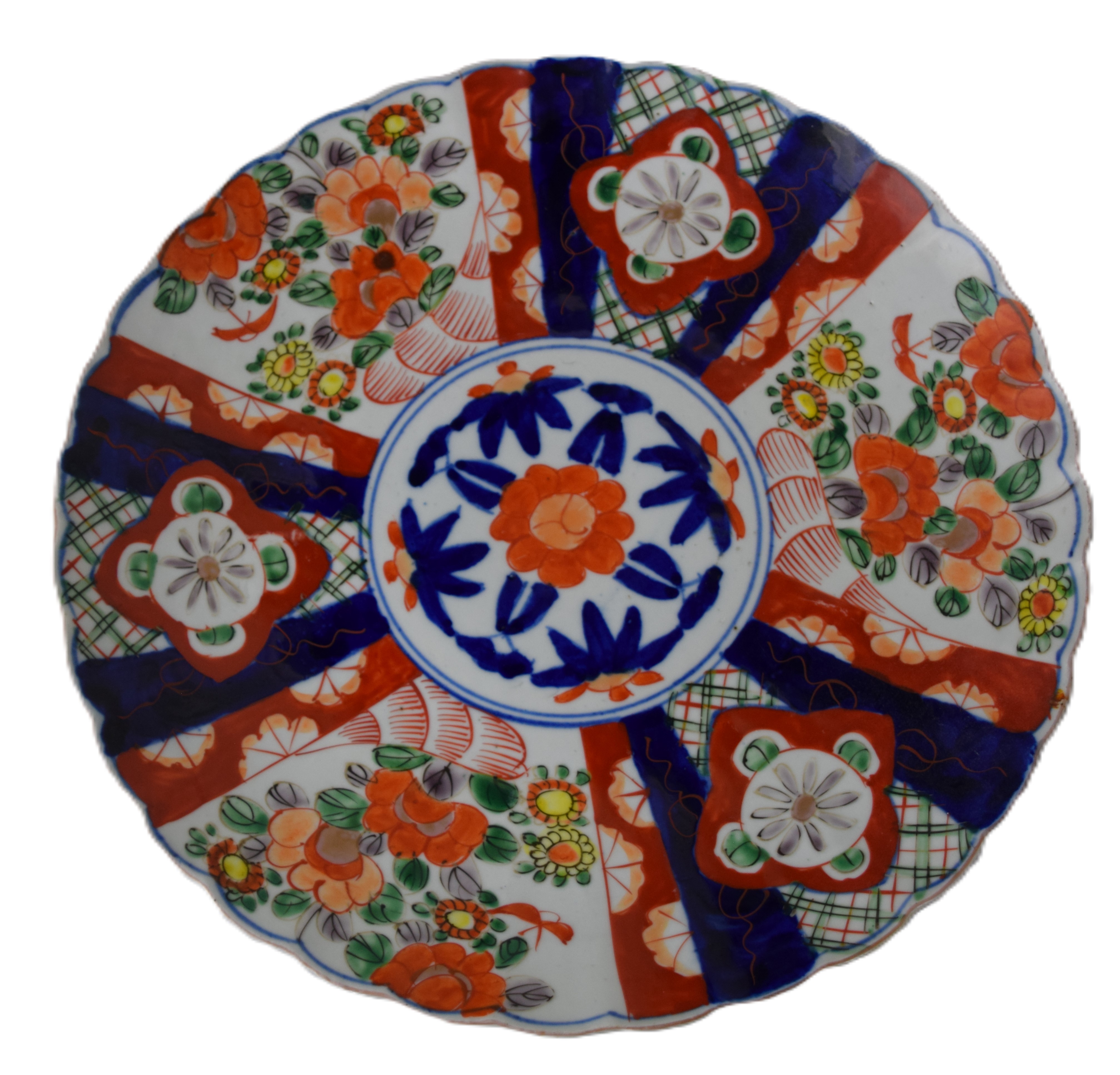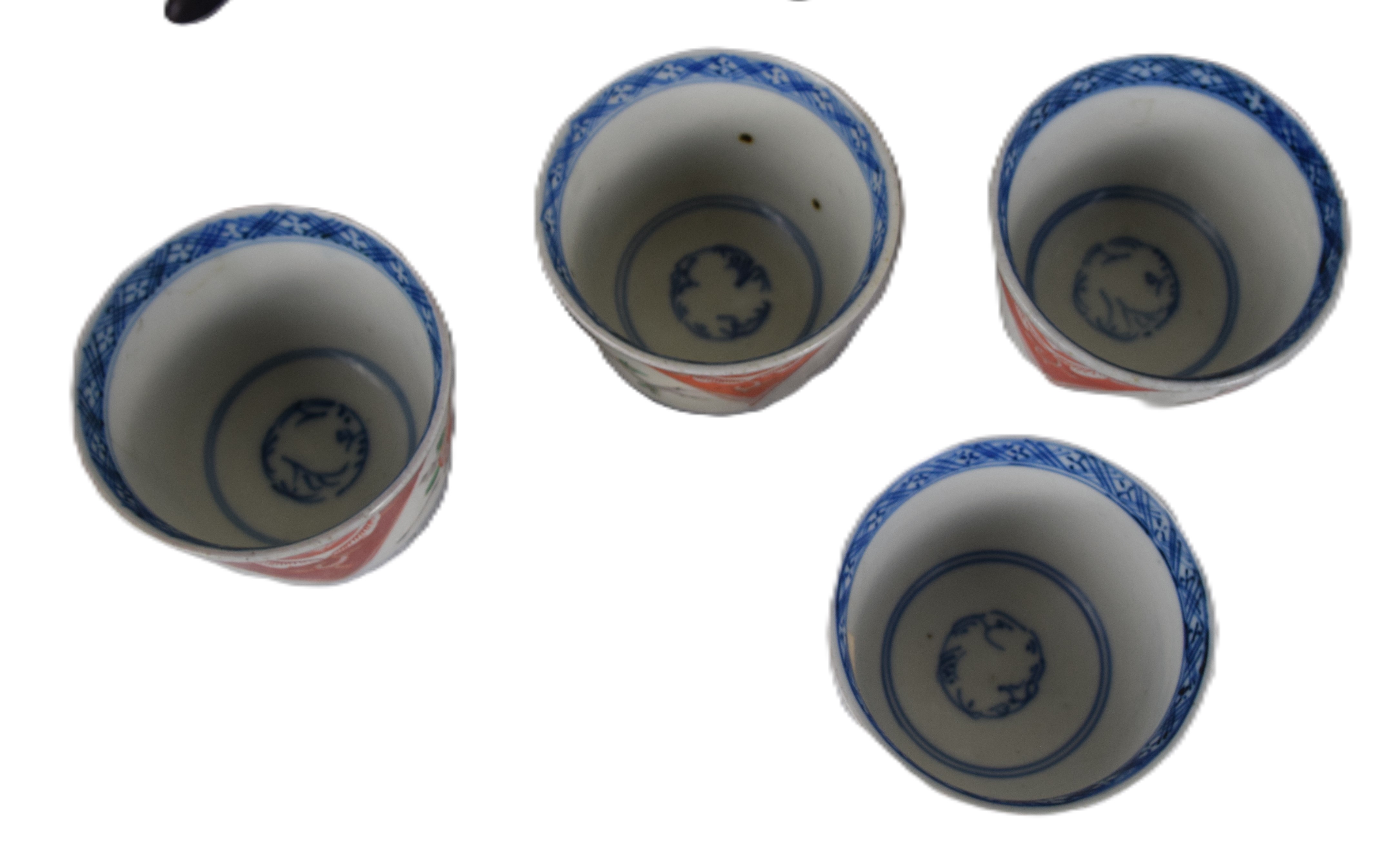 Rose Medallion lot including a deep dish 10″ Dia, small dish 8.5″ Dia and a cup and saucer, all old examples, together with an Imari charger 12″ Dia and 4 handless cups.