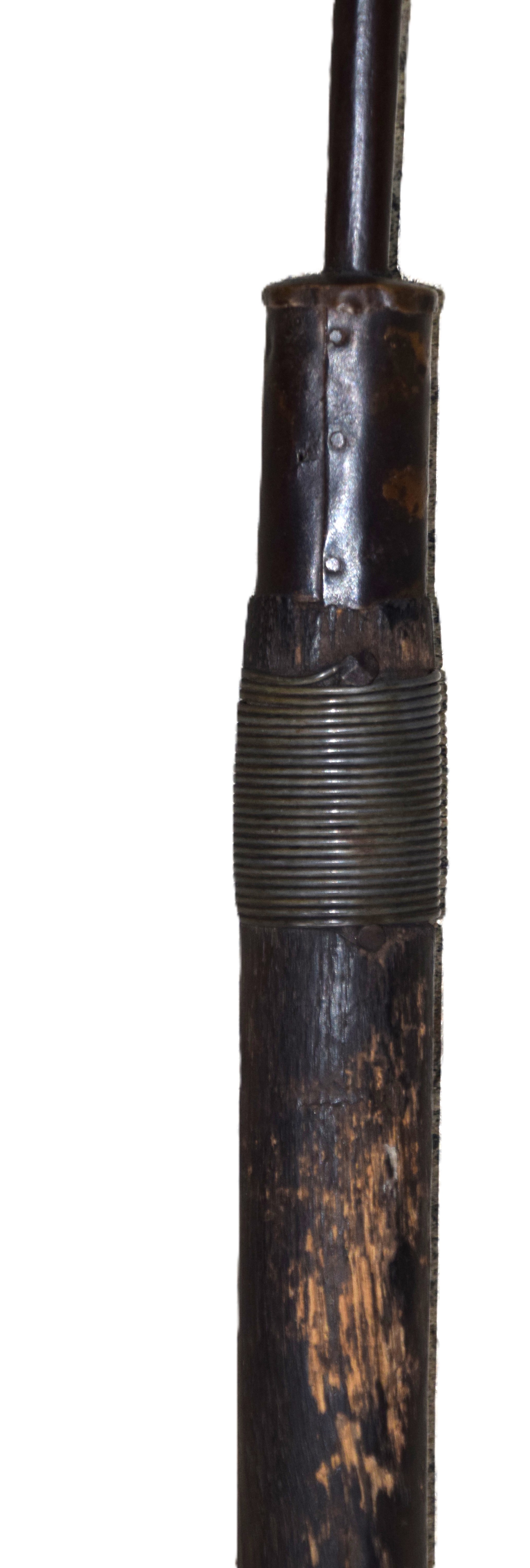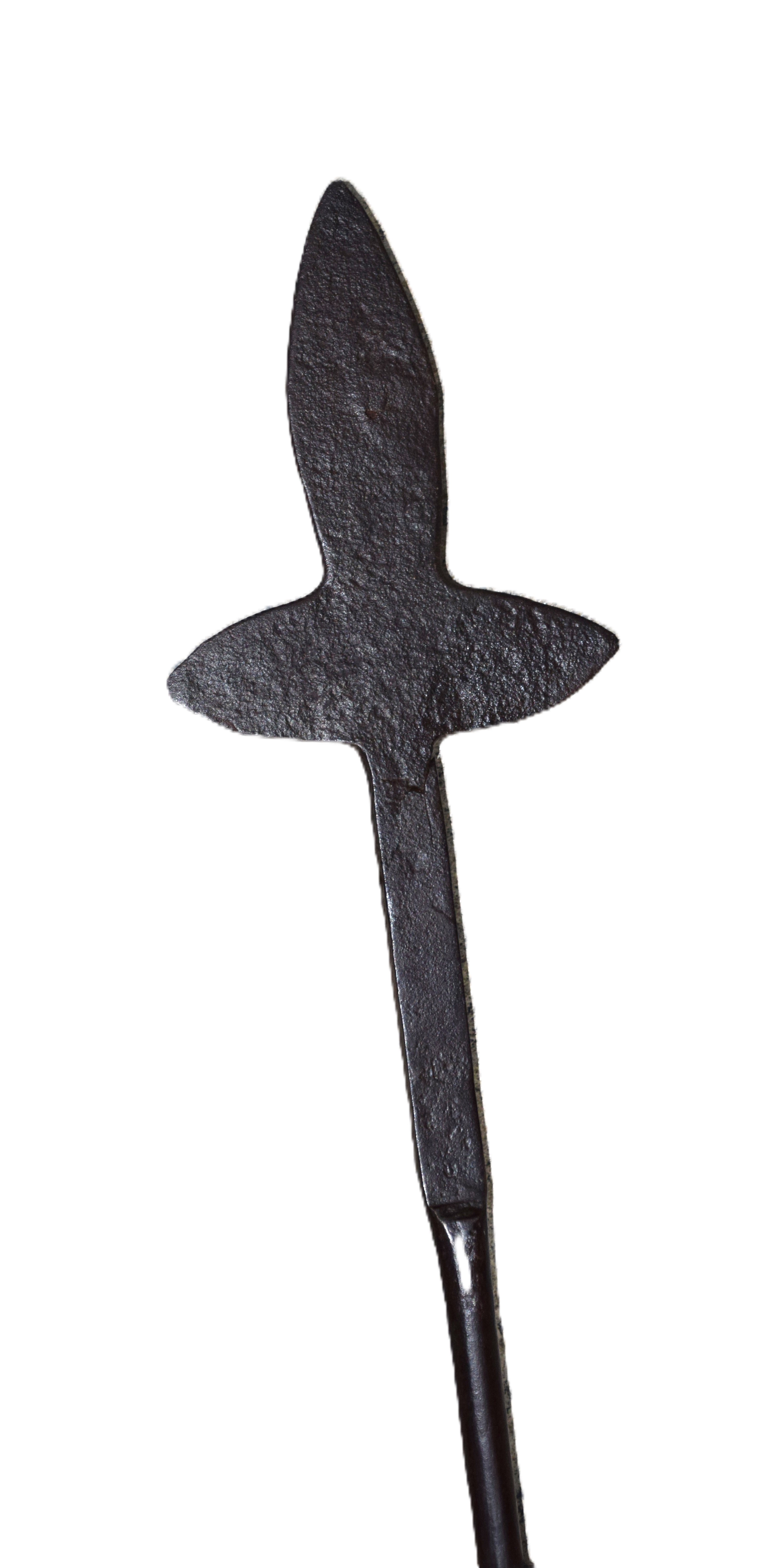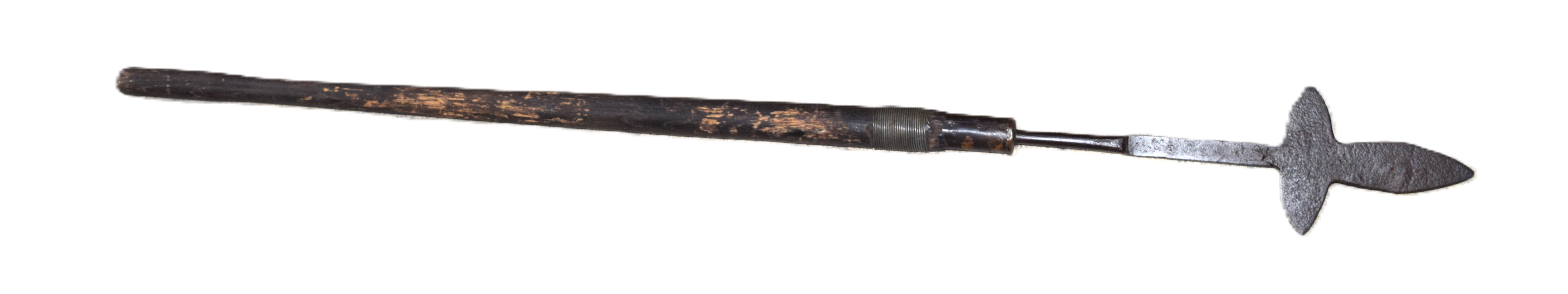 Primitive American spontoon for a militia NCO attached to a primitive haft. Dimensions: 16″ Spontoon; 55″ Overall
