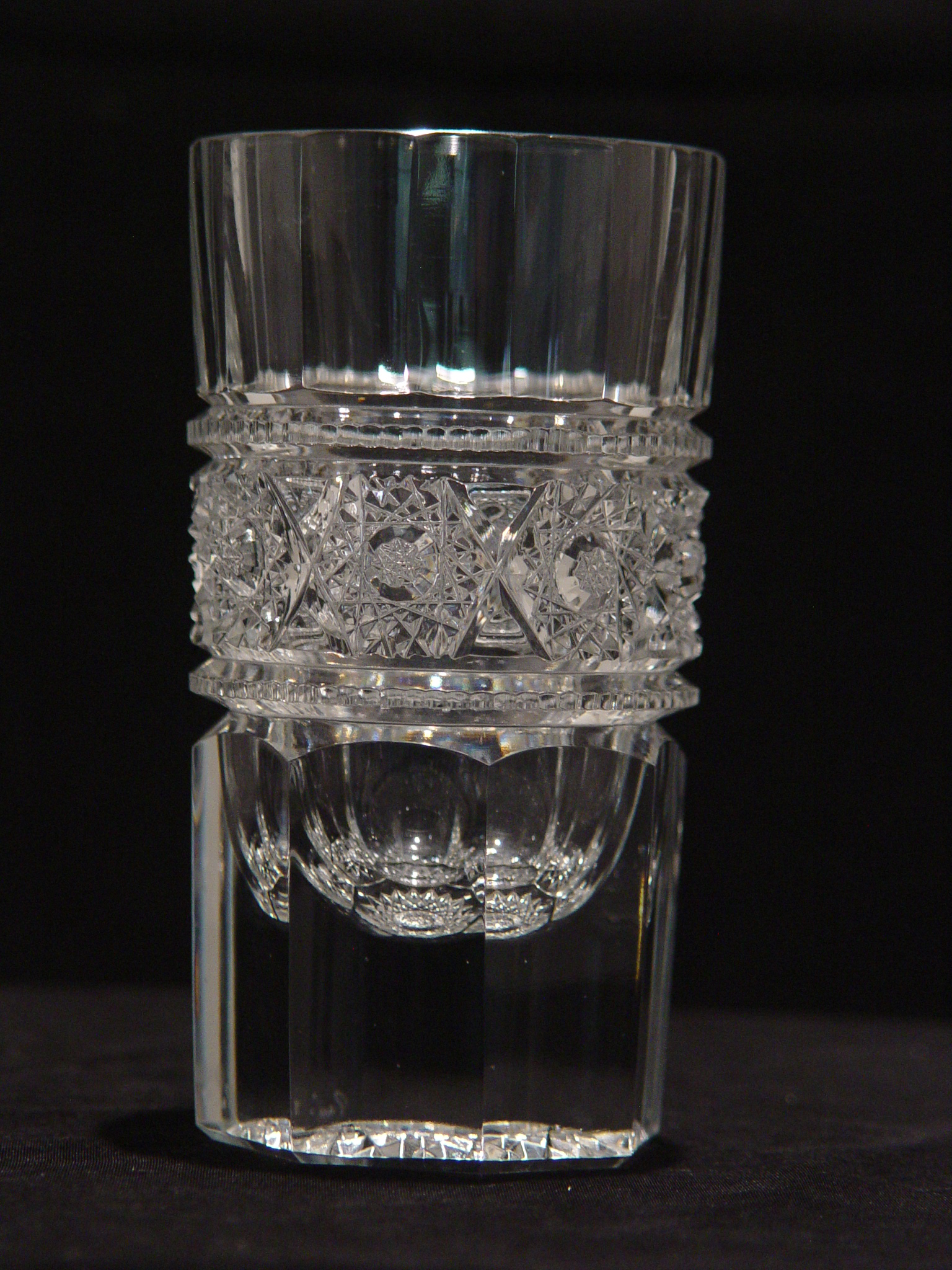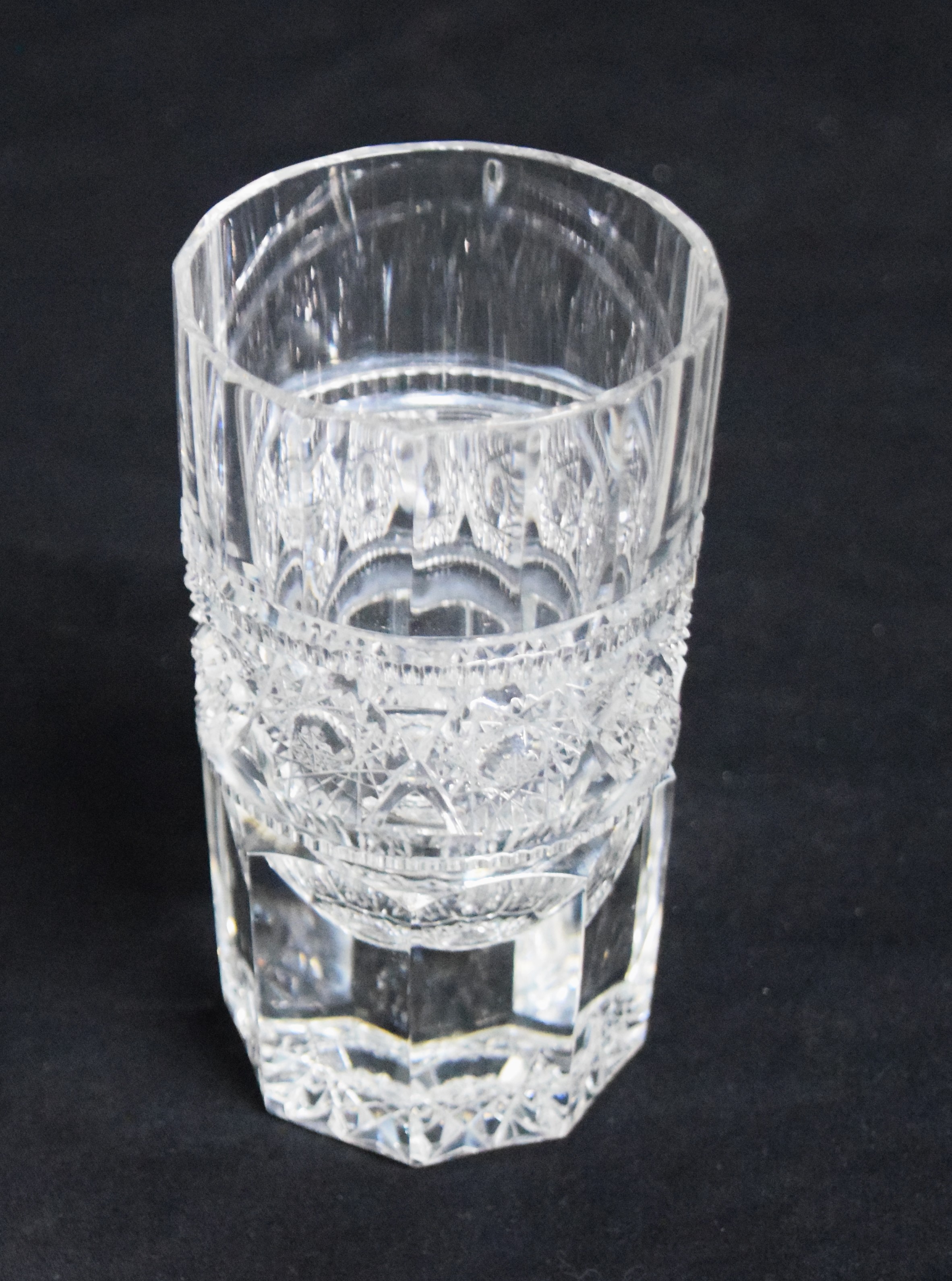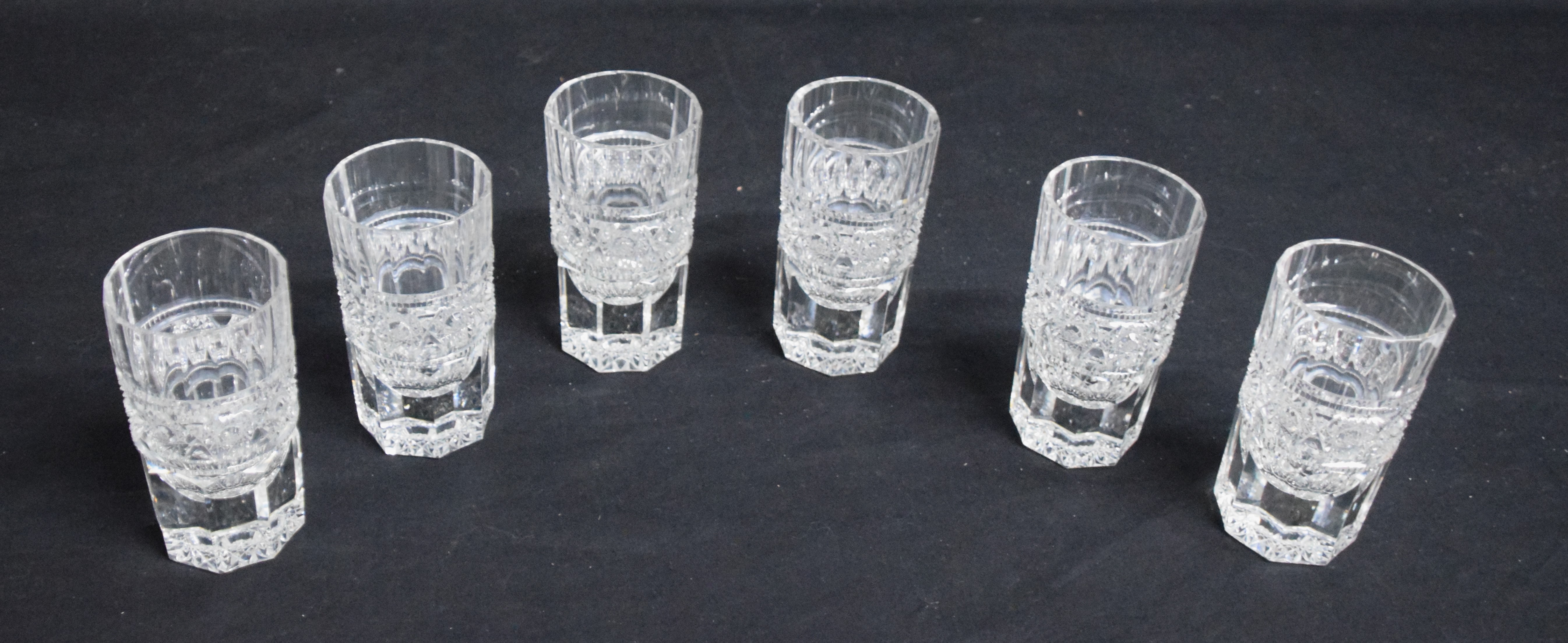 A fabulous set of six hand cut crystal whiskey/rocks glasses with a very intricate and precisely cut patterns. Pepi was the master crystal cutter from NH who sold to Presidents and Hollywood stars. Dimensions: 5.25″ H