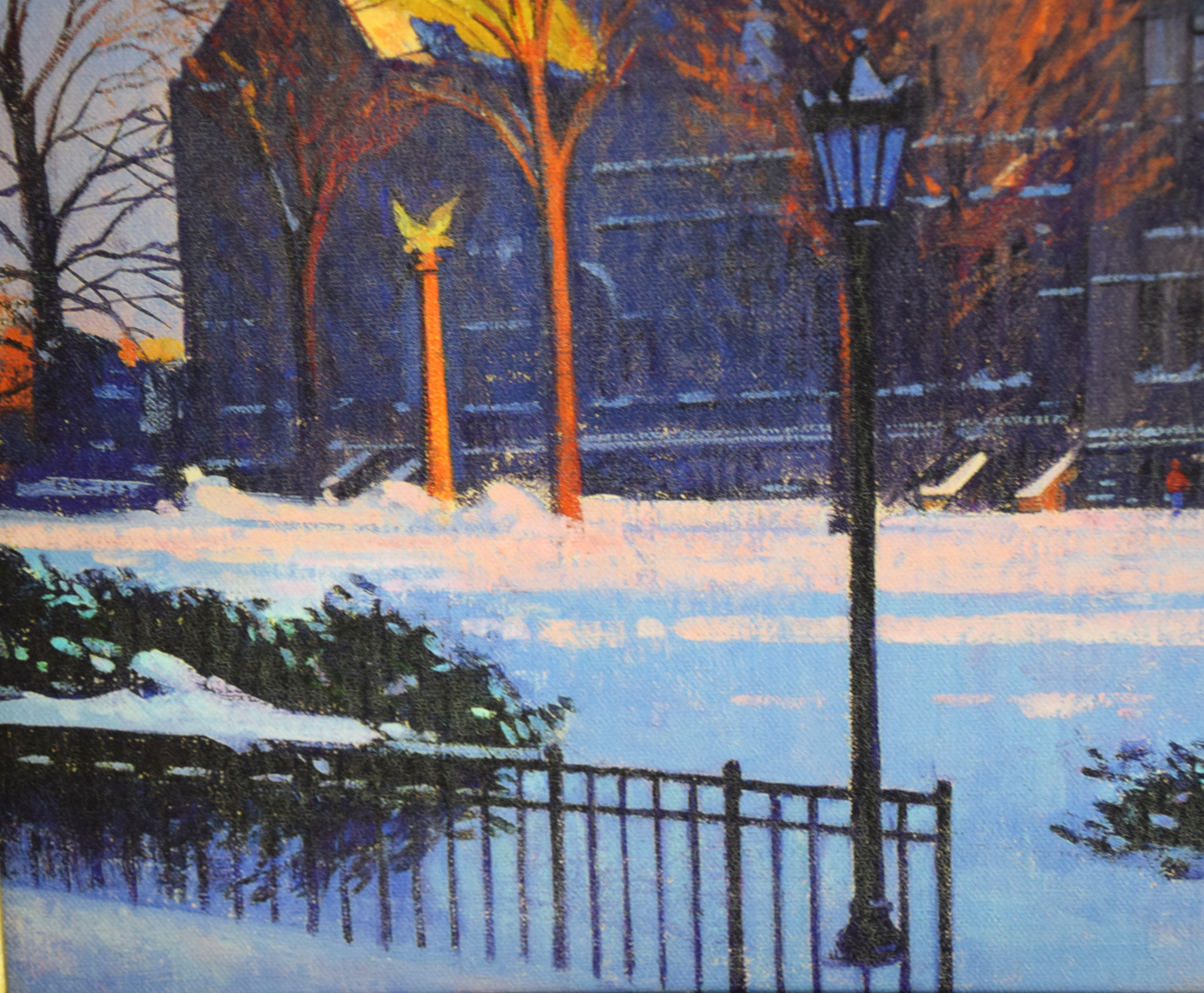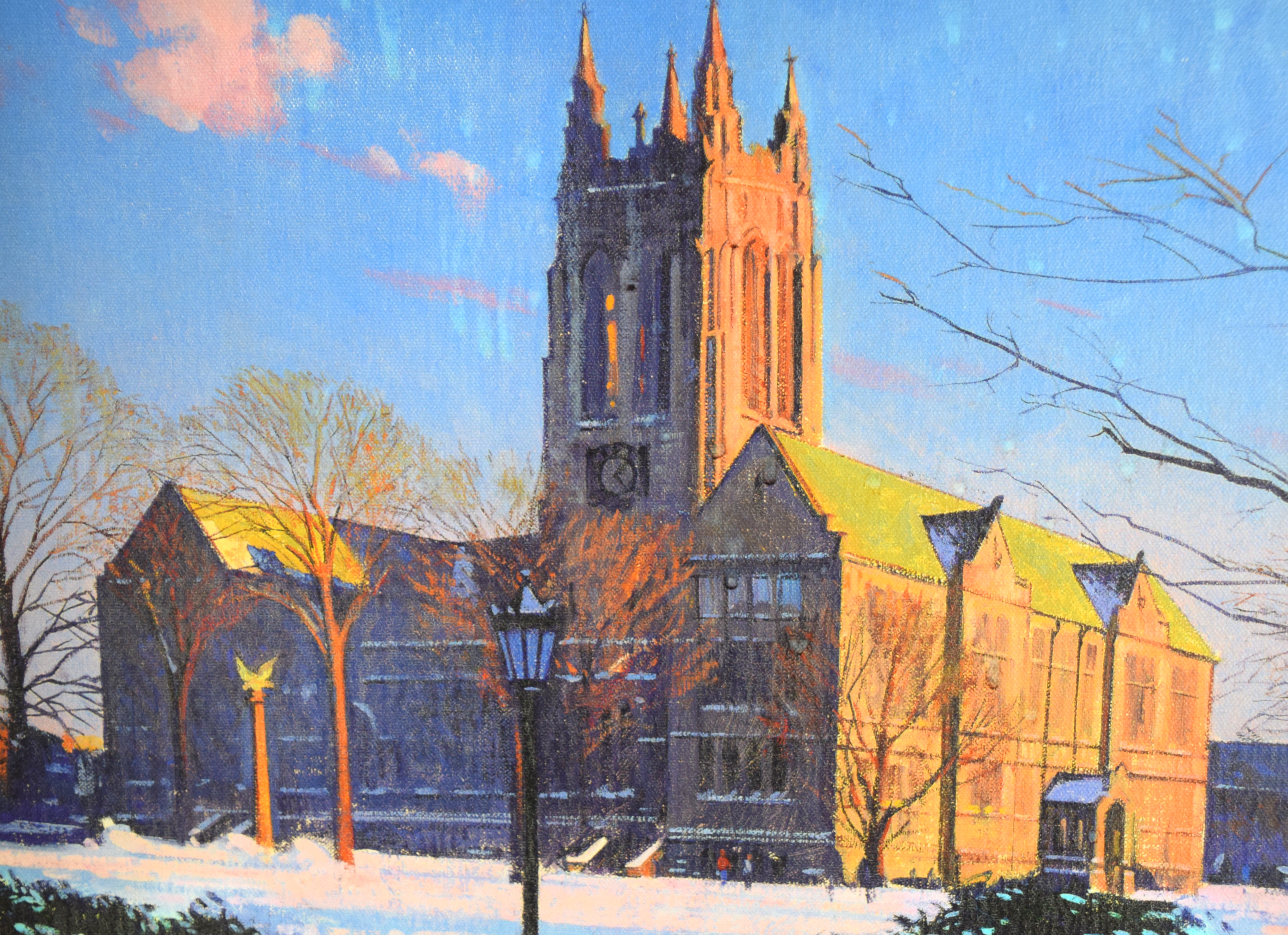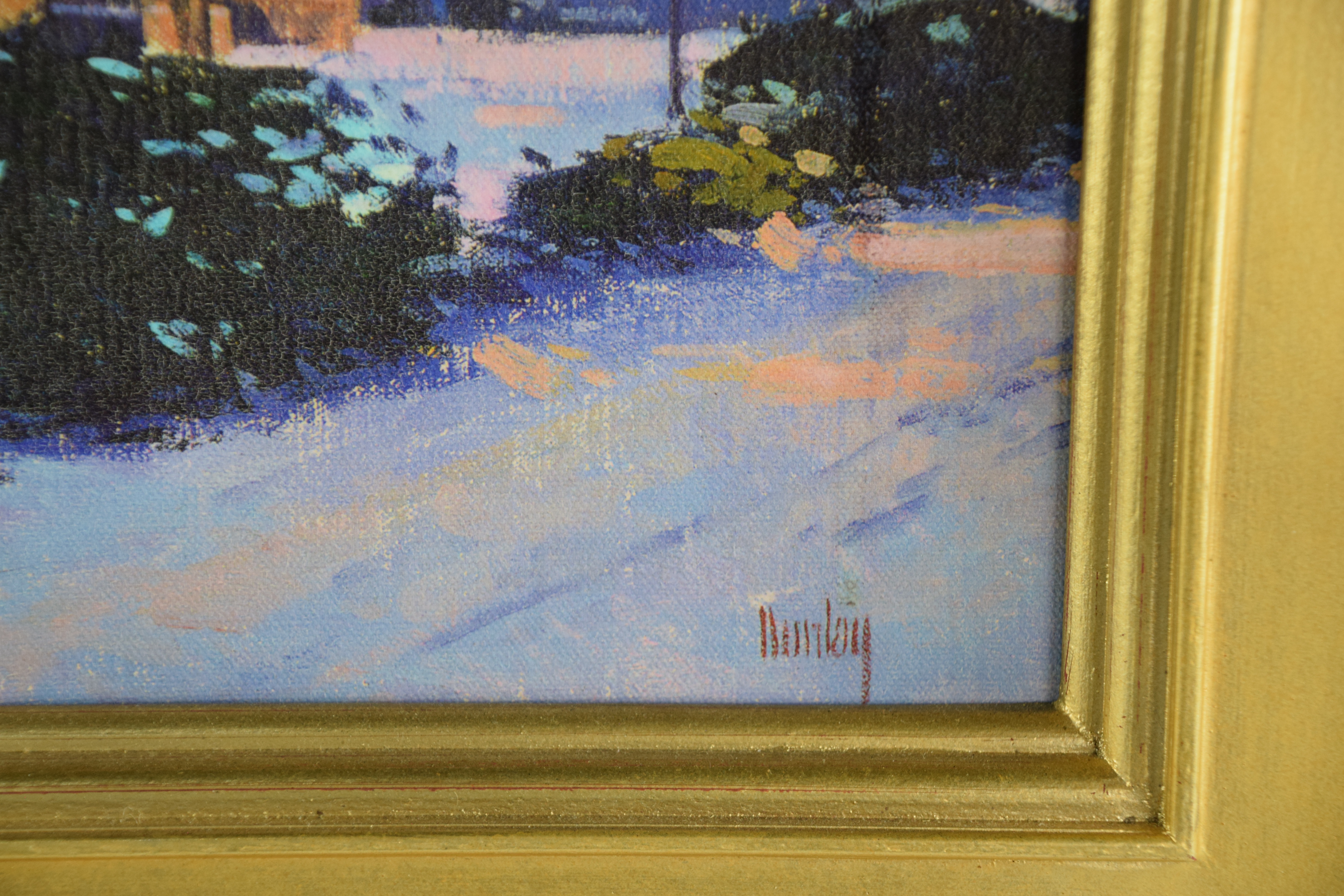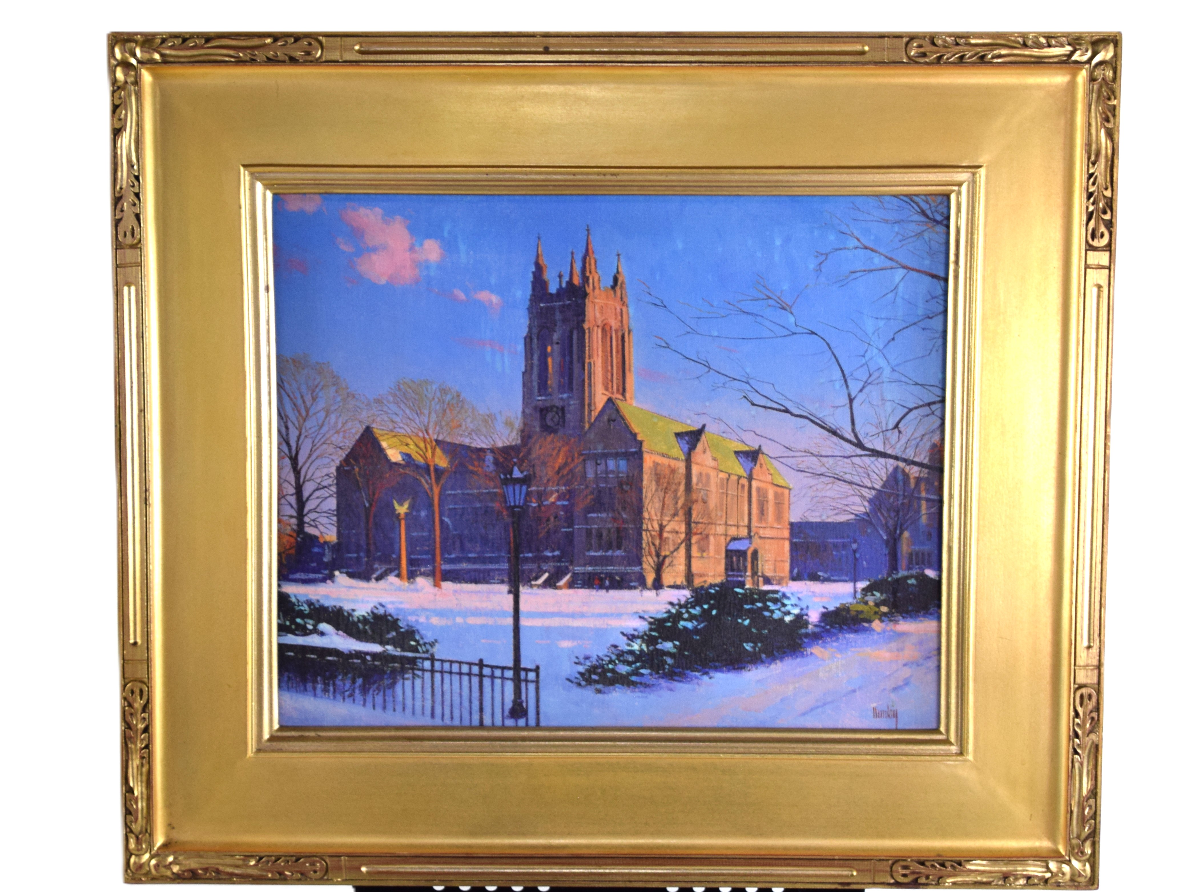 Signed oil on canvas of a Boston church on a spectacular frame. Thomas Russell Dunlay (Born 1951) works in Massachusetts and is known for Boston landscapes. Dimensions: 16″ x 19.5″ Image size, 24.5″ x 28.5″ Overall