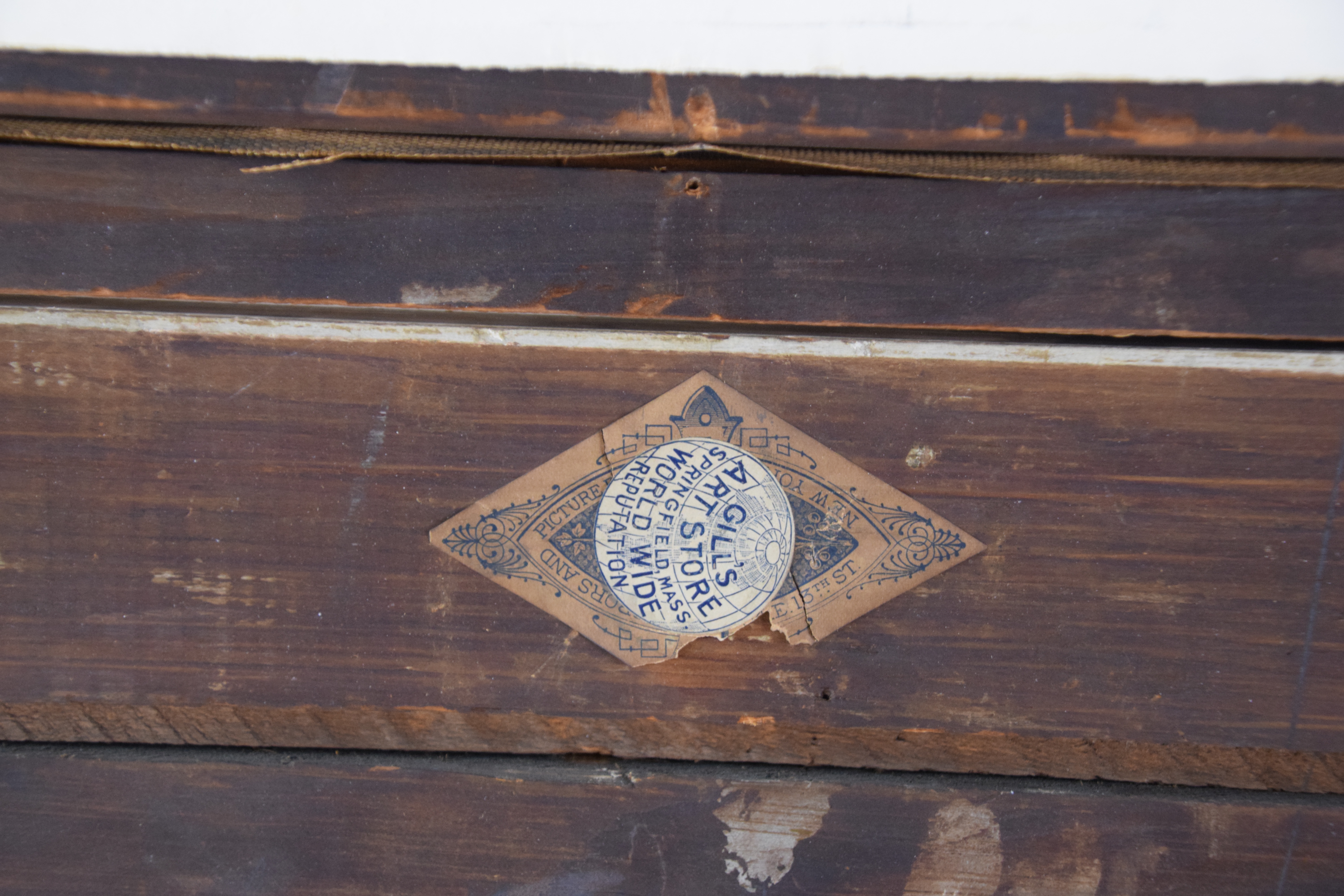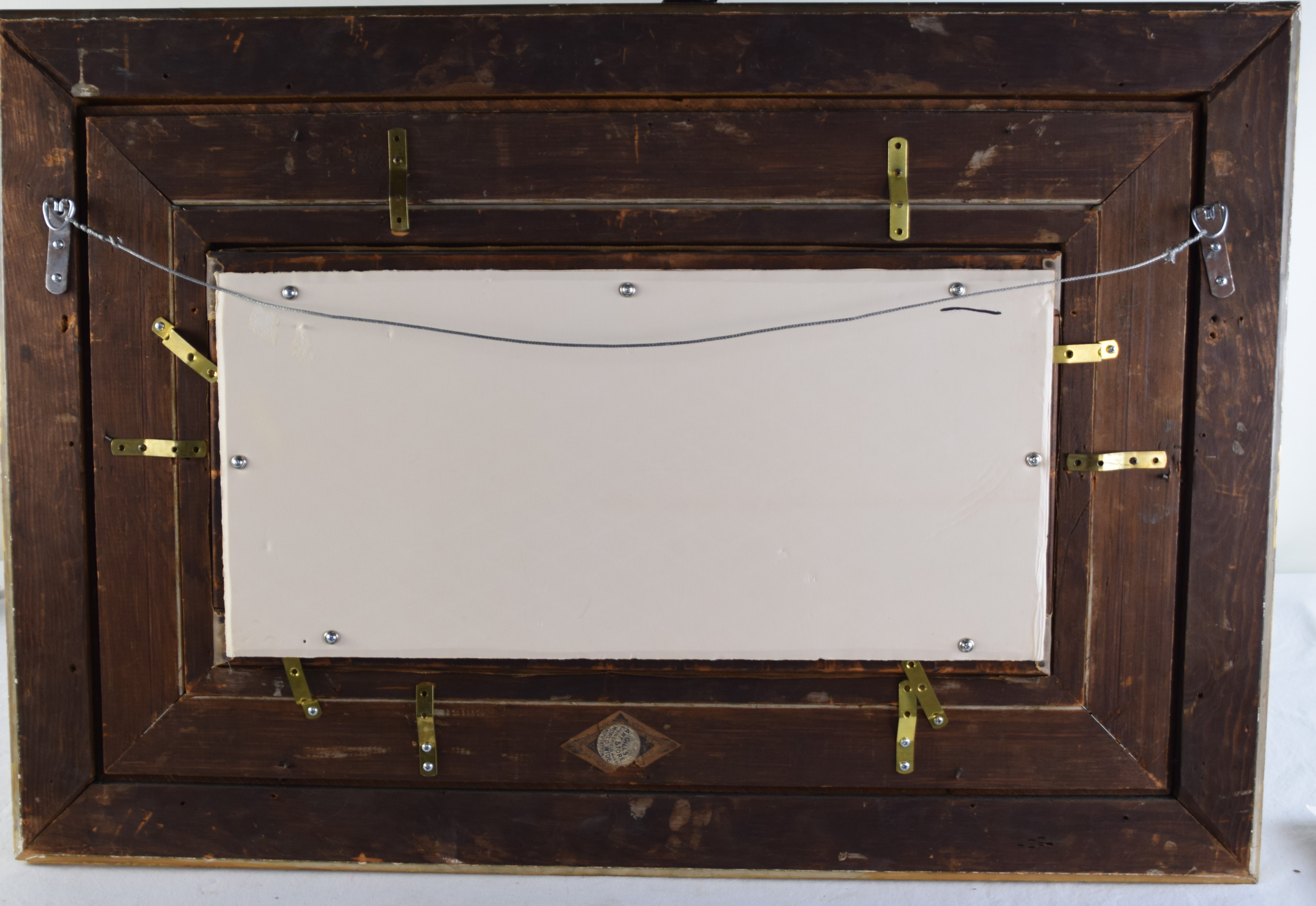 Very good condition, a few chips on frame, very small tear on upper right sky
