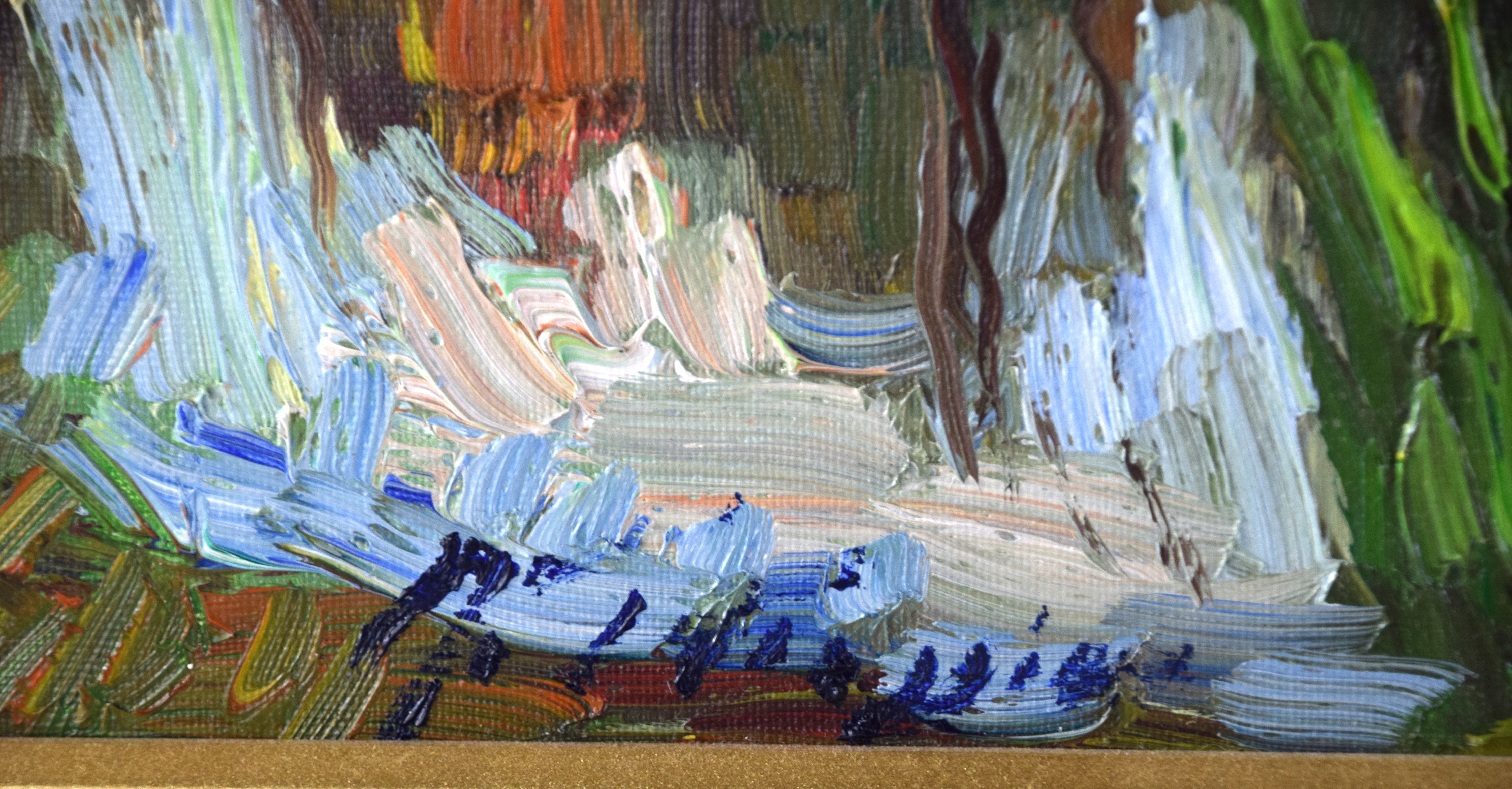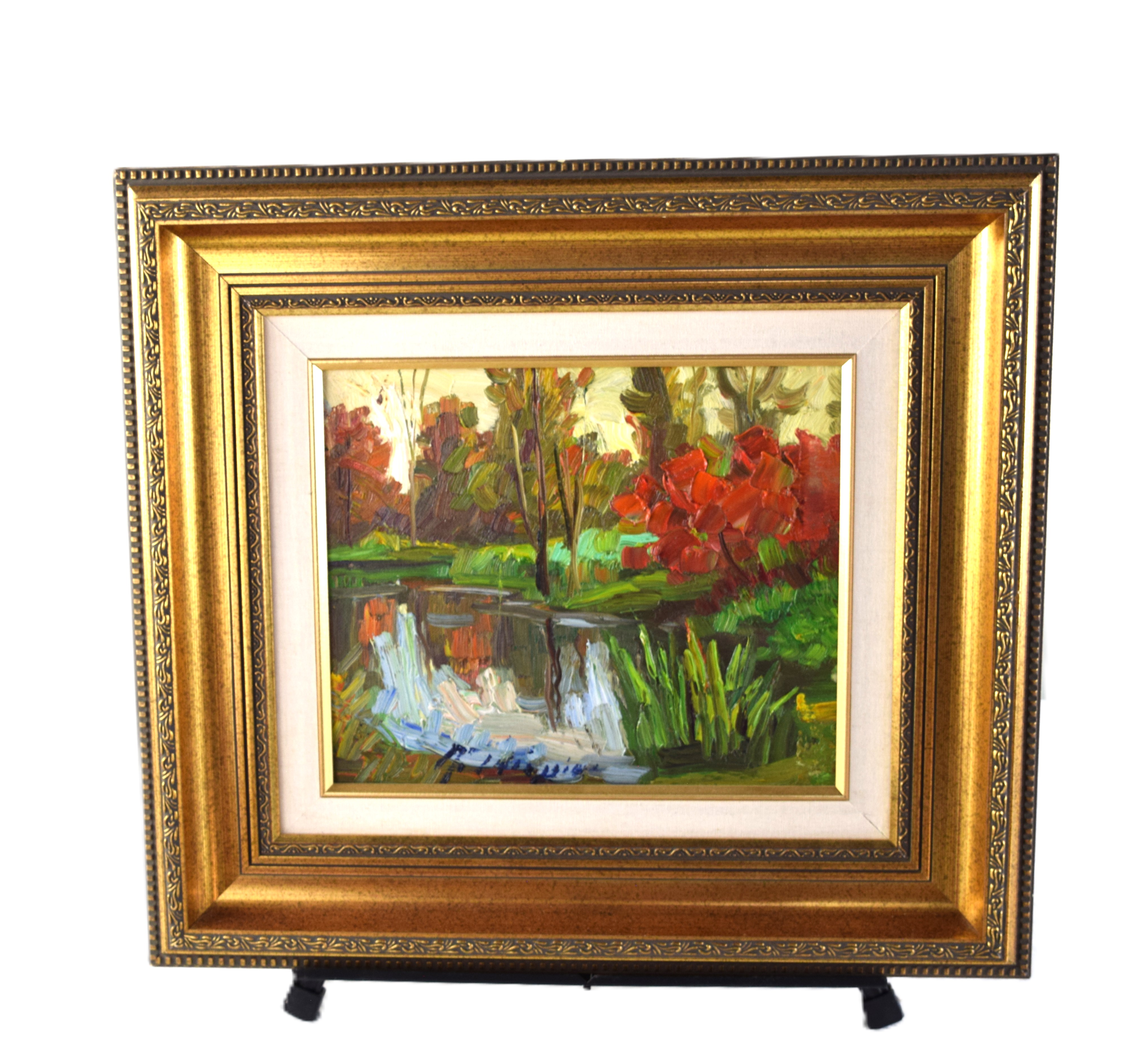 Original oil painting on canvas named “Landscape of Quebec” by Armand Tatossian, signed front and back and dated 2003. Armand Tatossian (1951 – 2012) worked in Quebec, Canada and Egypt and is known for Impressionist landscape painting. Dimensions: 12″ X 10″