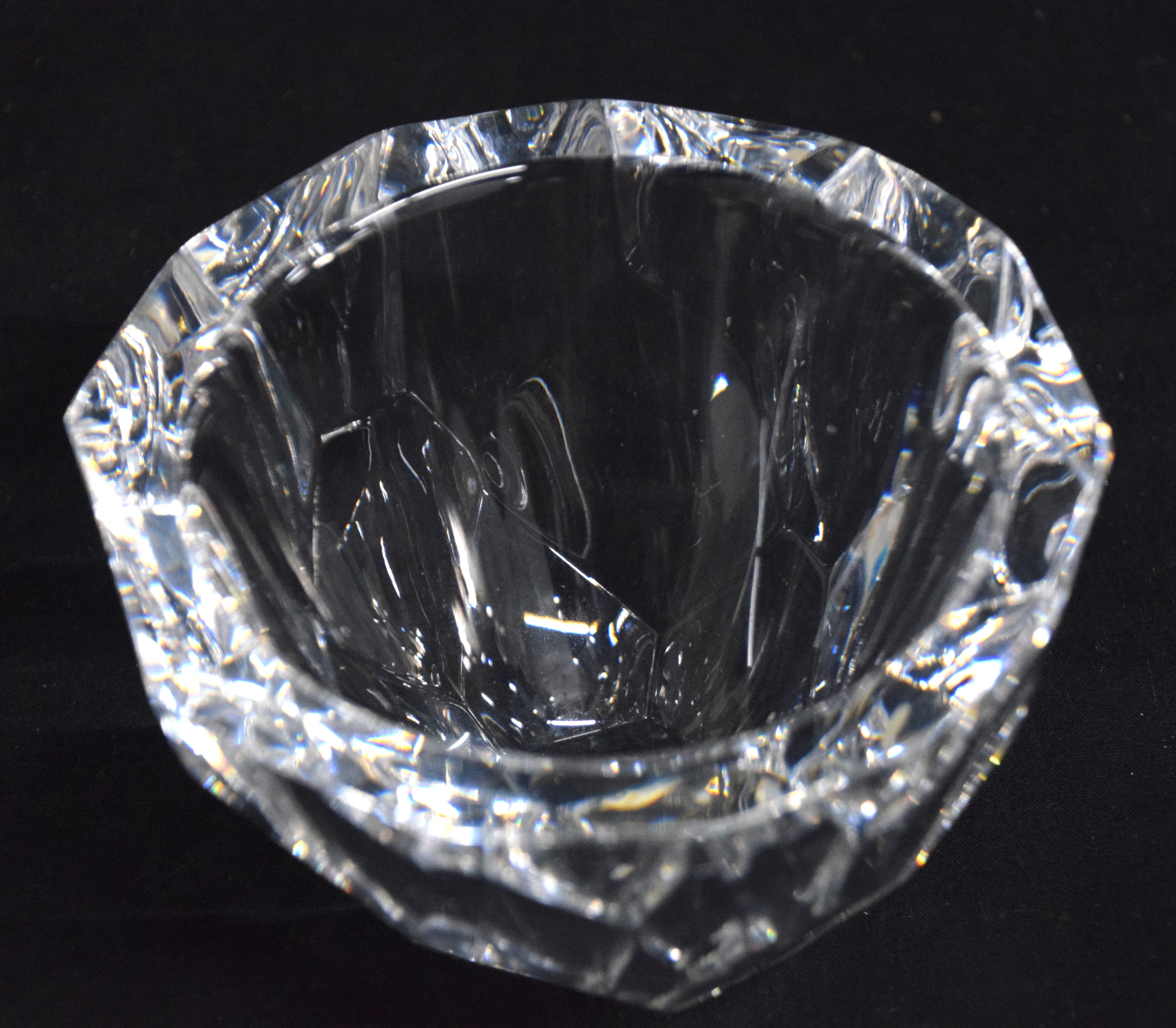 Finely cut crystal bowl by Orrefors of Sweden. For 125 years, Orrefors has won thousands of design and glassmaking awards and have been collected by individuals and museums alike. Dimensions: 5″ Diameter, 3.5″ Height