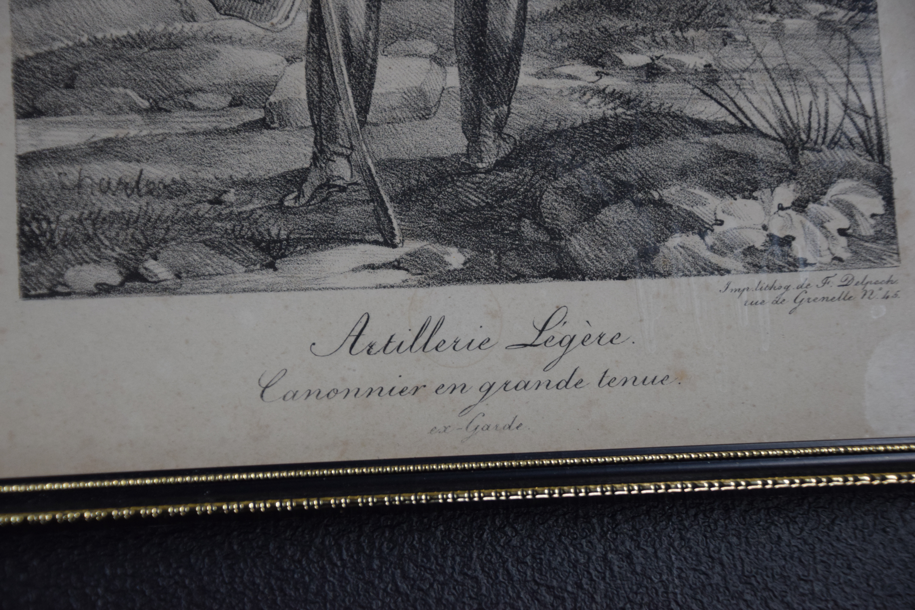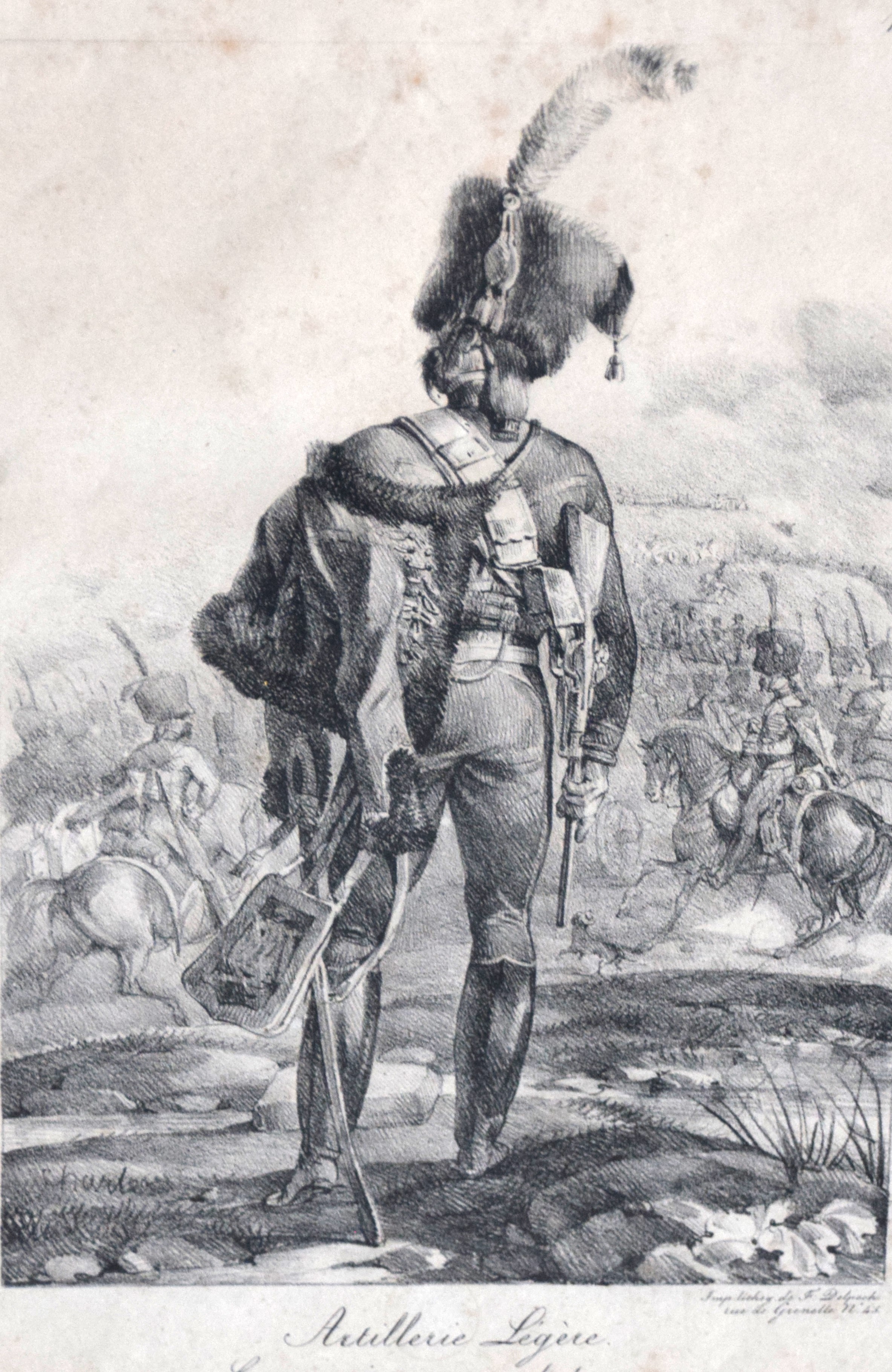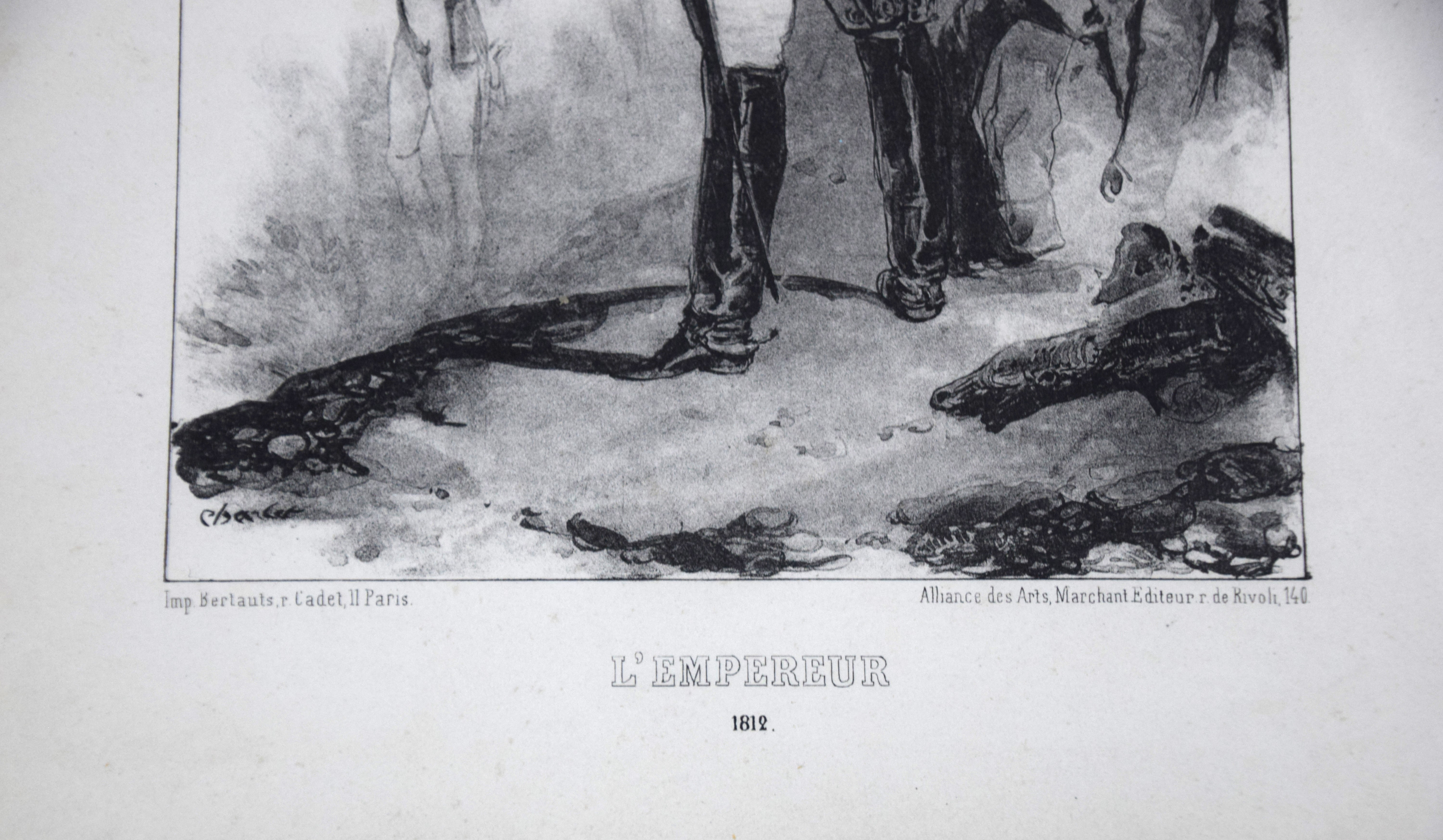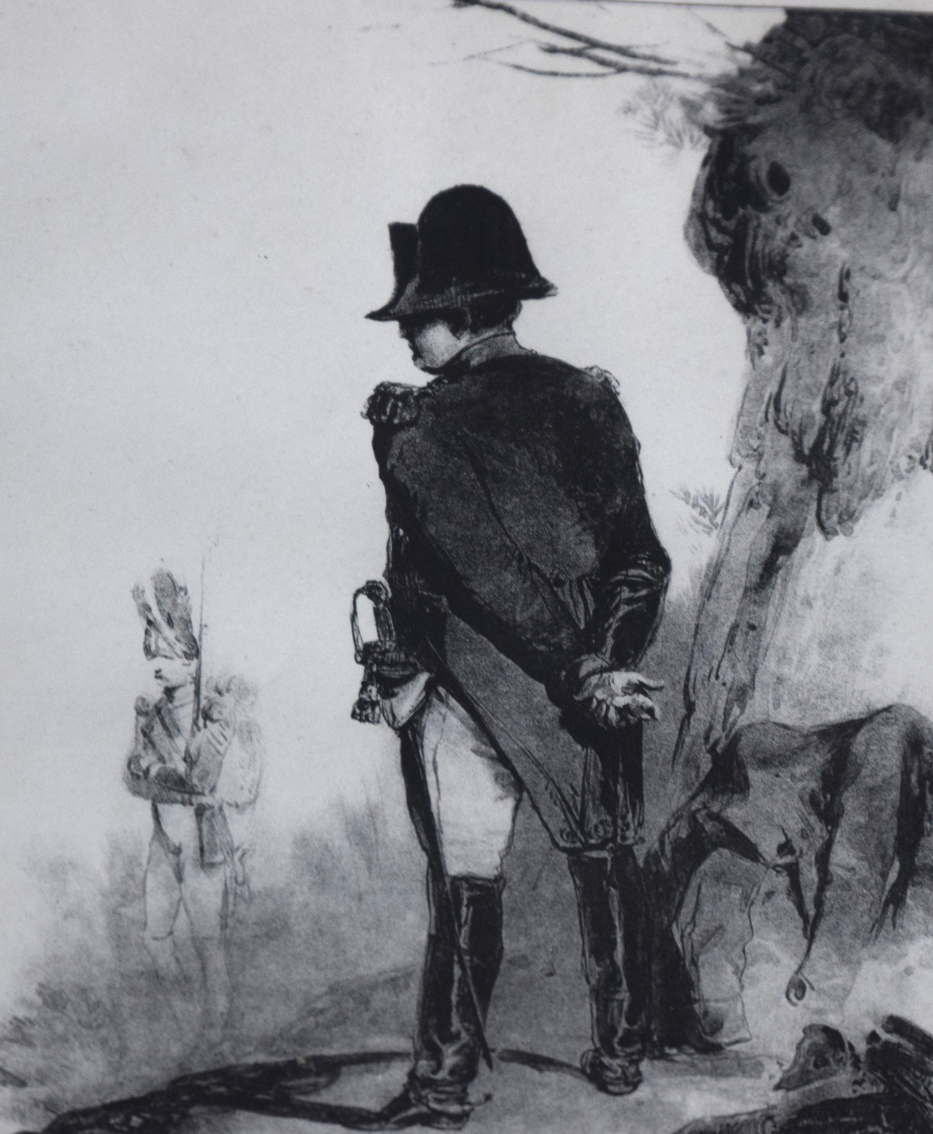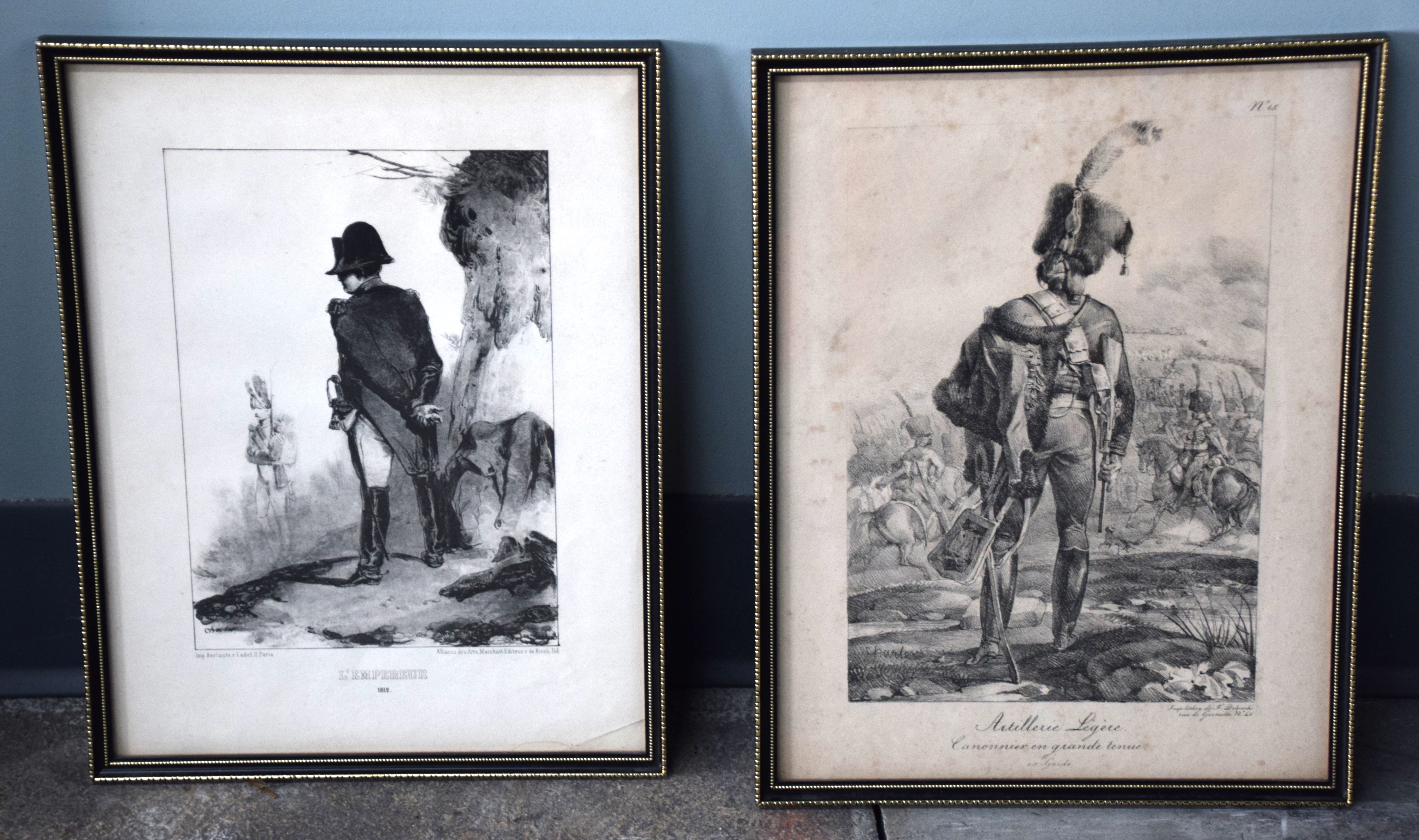 Engraving depicting the Emperor in 1812 with a member of the Old Guard at attention. The other engraving depicts an artillery officer surveying the battlefield. Circa 1830. Dimensions: 9″ x 6″ Image size, 13″ x 10″ Overall