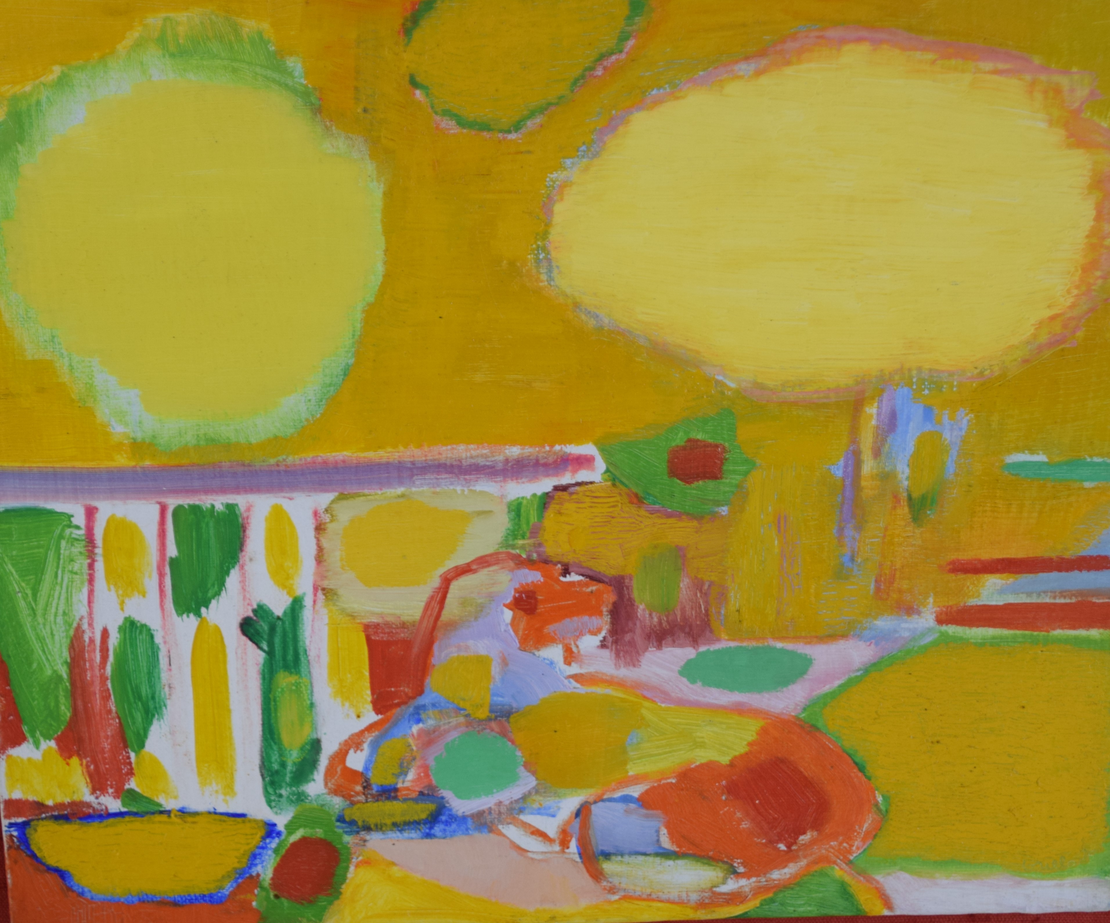 Abstract oil painting on board titled landscape II. John Grillo (1917 – 2014) worked in Massachusetts and is known for Abstract expressionist painting. Provenance: In the collection of the former director of Springfield Museums. Dimensions: 10″ x 11.5″
