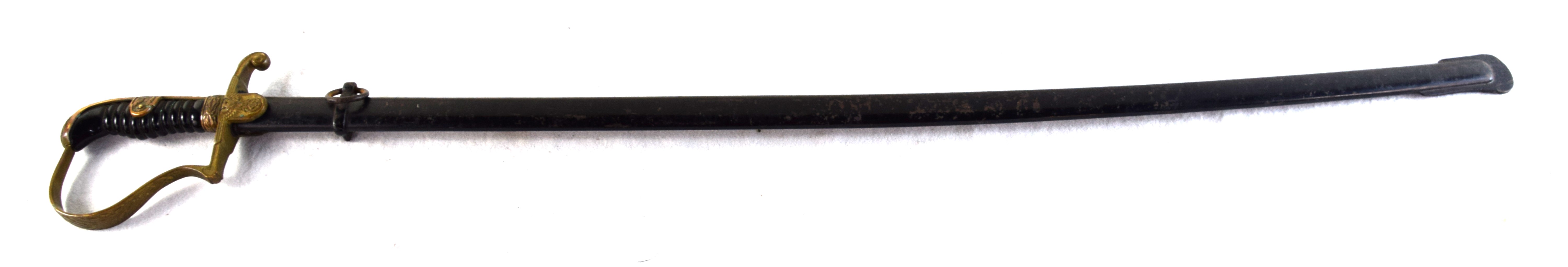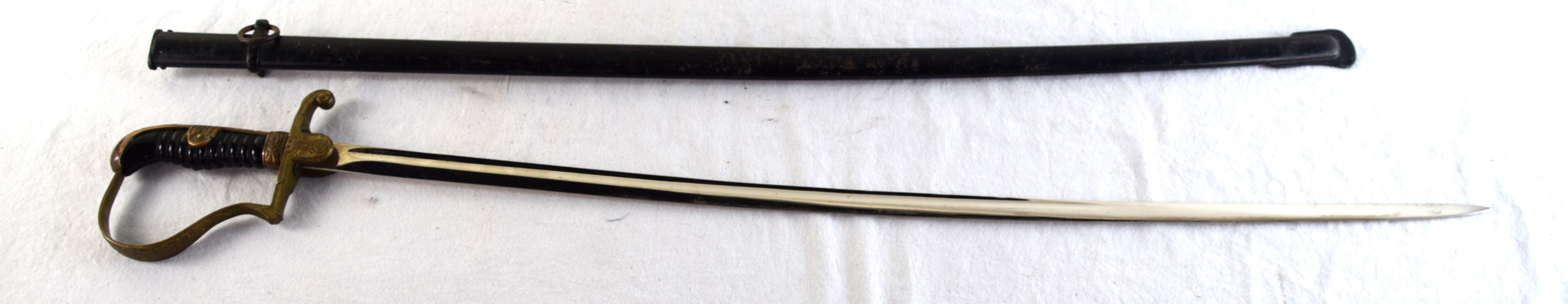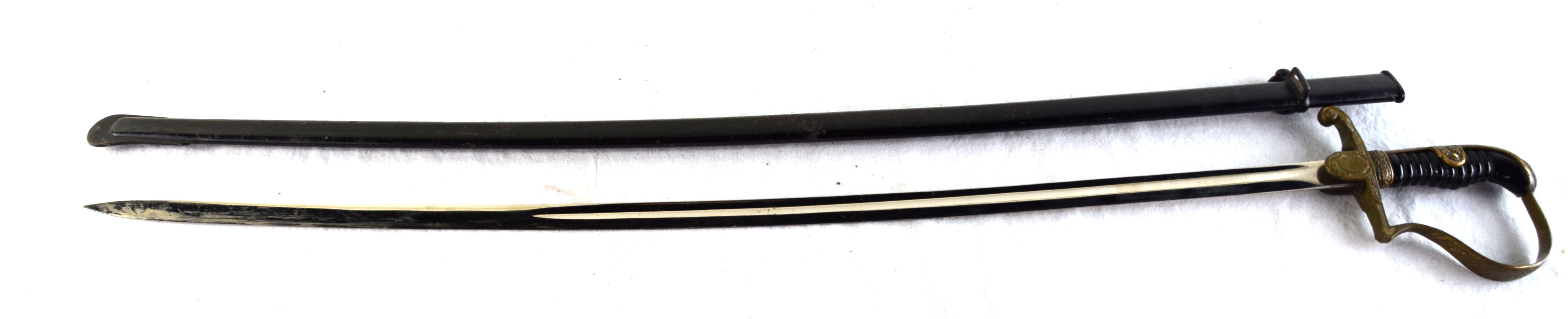 Very good condition, scabbard has some paint loss, blade very good--maybe a small nick