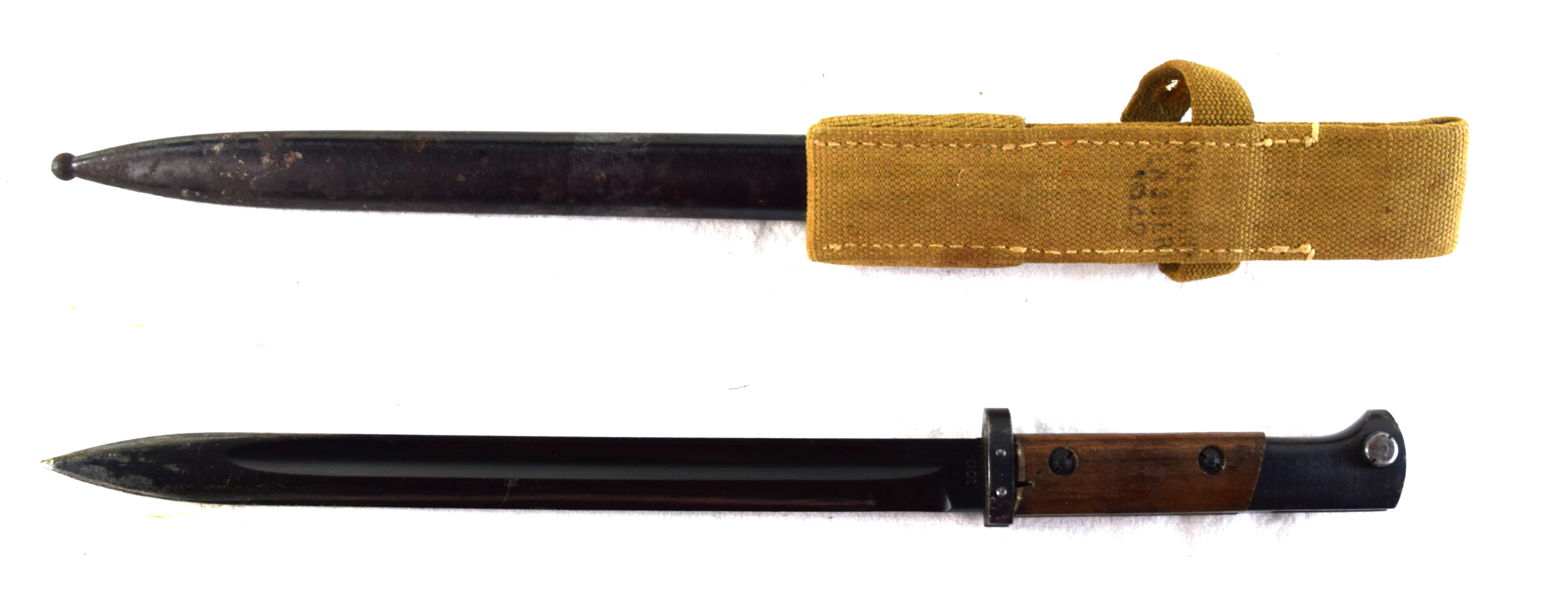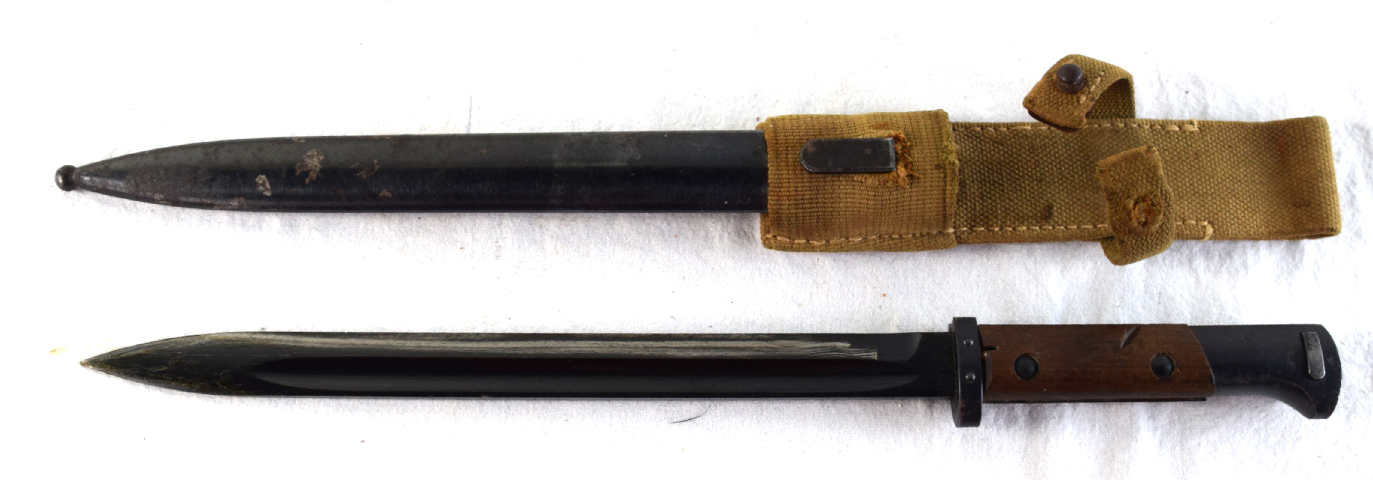 German Bayonet Vz 24 Czech with scabbard and tropical frog was made under the supervision of Germans in occupied Czechoslovakia. Serial number 740