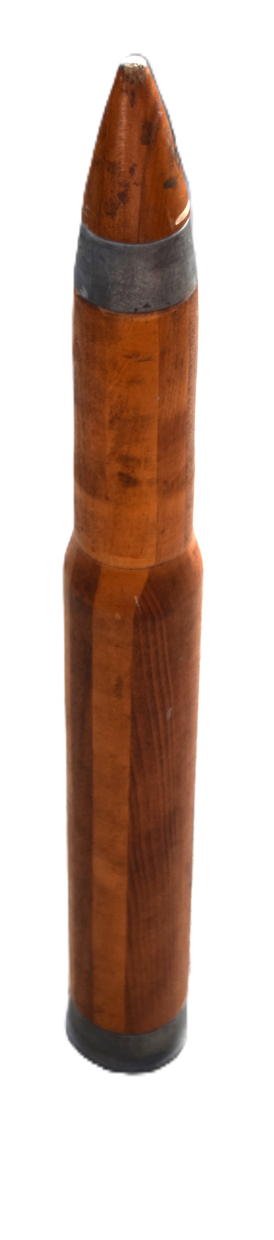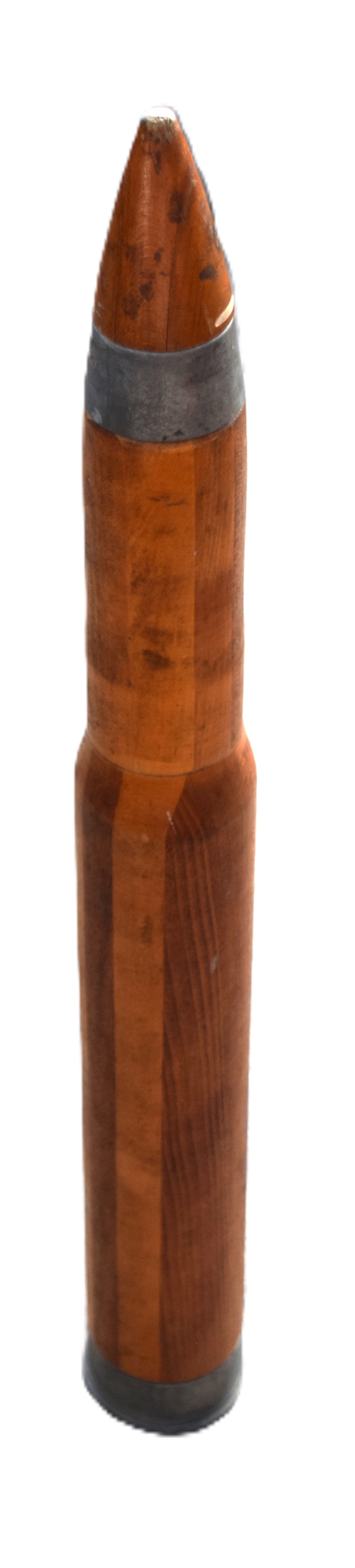 WW II MK-6 practice round for the Navy, solid oak, 1944, 3″Cal. Dimensions: 35″ H