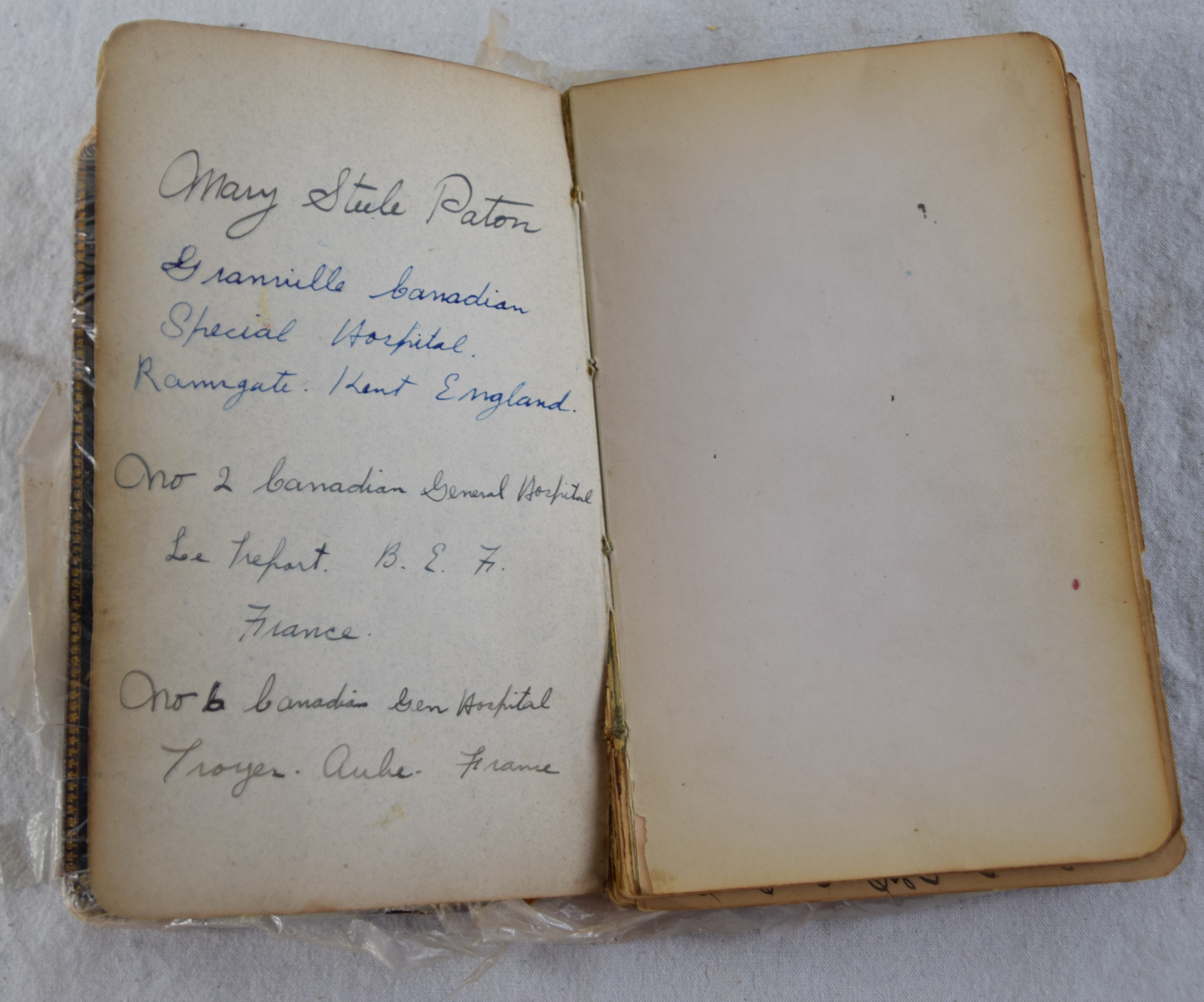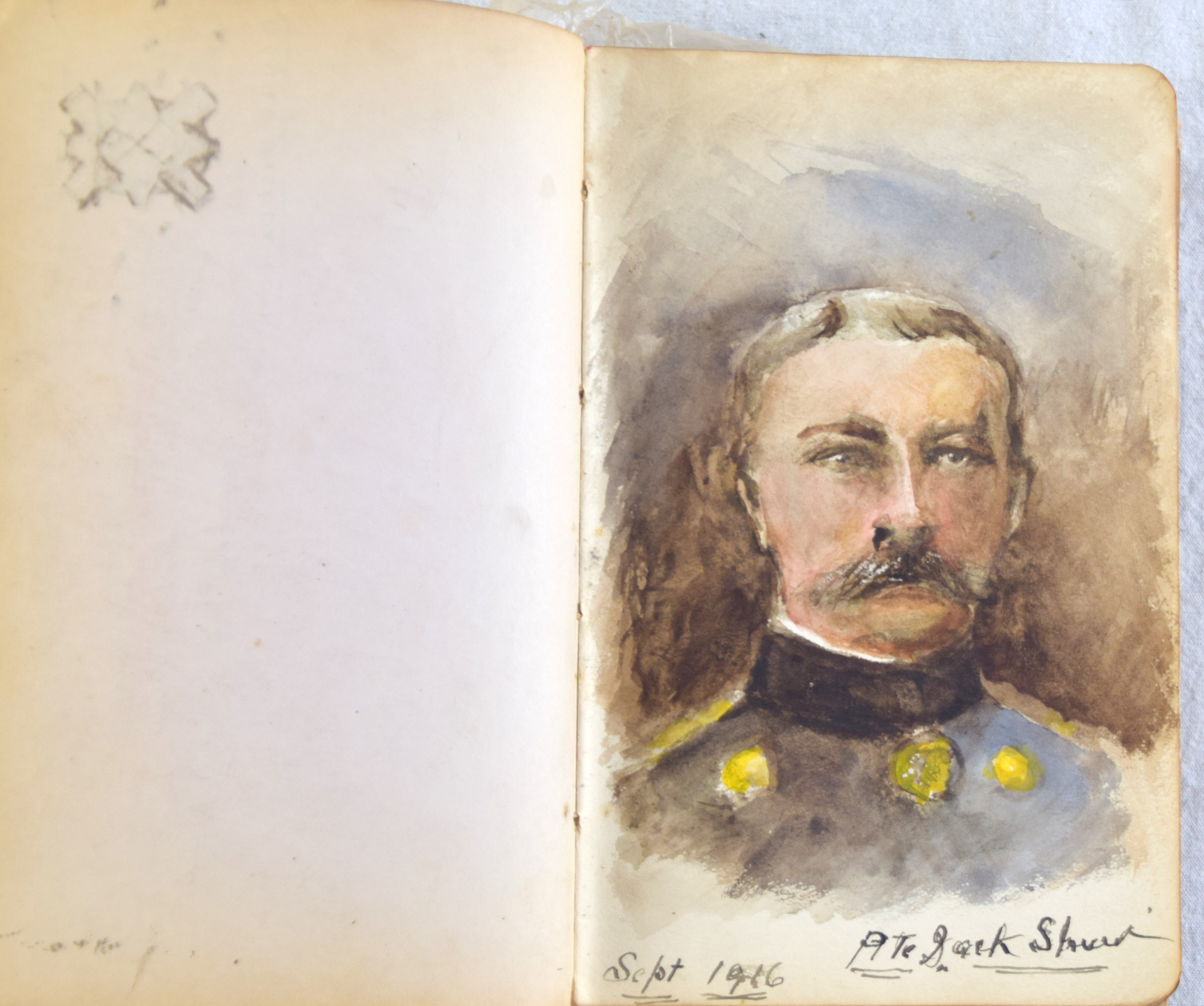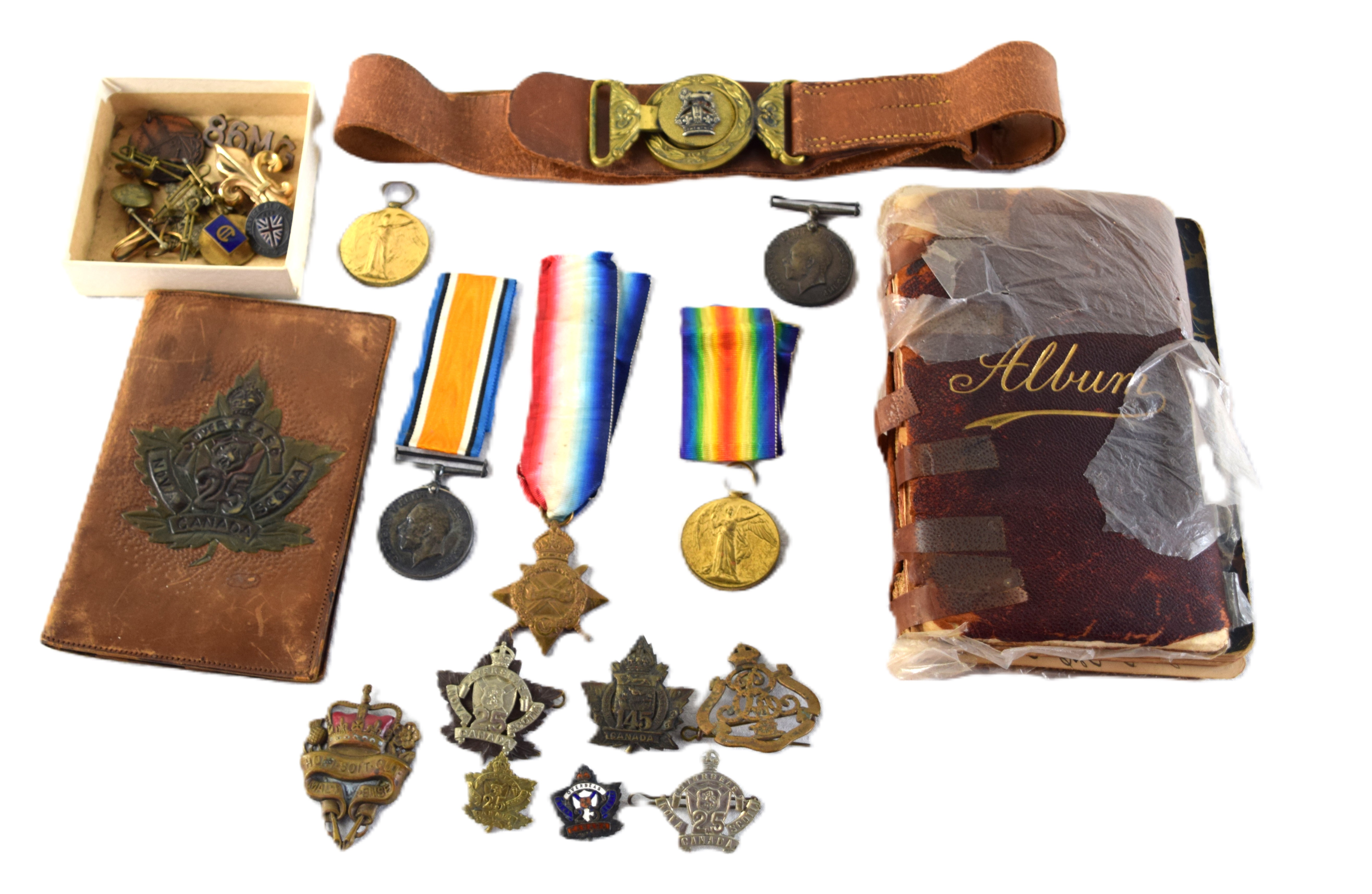 WWI veteran Arthur Patton, who served the duration of the war with the 25th Battalion, Nova Scotia Rifles, fought in several battles to include the Somme, Vimy Ridge, Passchendaele and Cambrai. Included in the lot are his metals and an Album owned by his sister Nurse Mary Patton who also served in France and treated Arthur when he as wounded. Album has several drawings by wounded soldiers including a great depiction of the Battle of Somme. Metals include the 1914-15 Star, British War and the Victory metal as well as 25th Battalion insignia and belt buckle and belt. Also included is a letter describing the Canadian hospitals with the three Patton sisters serving wounded soldiers.