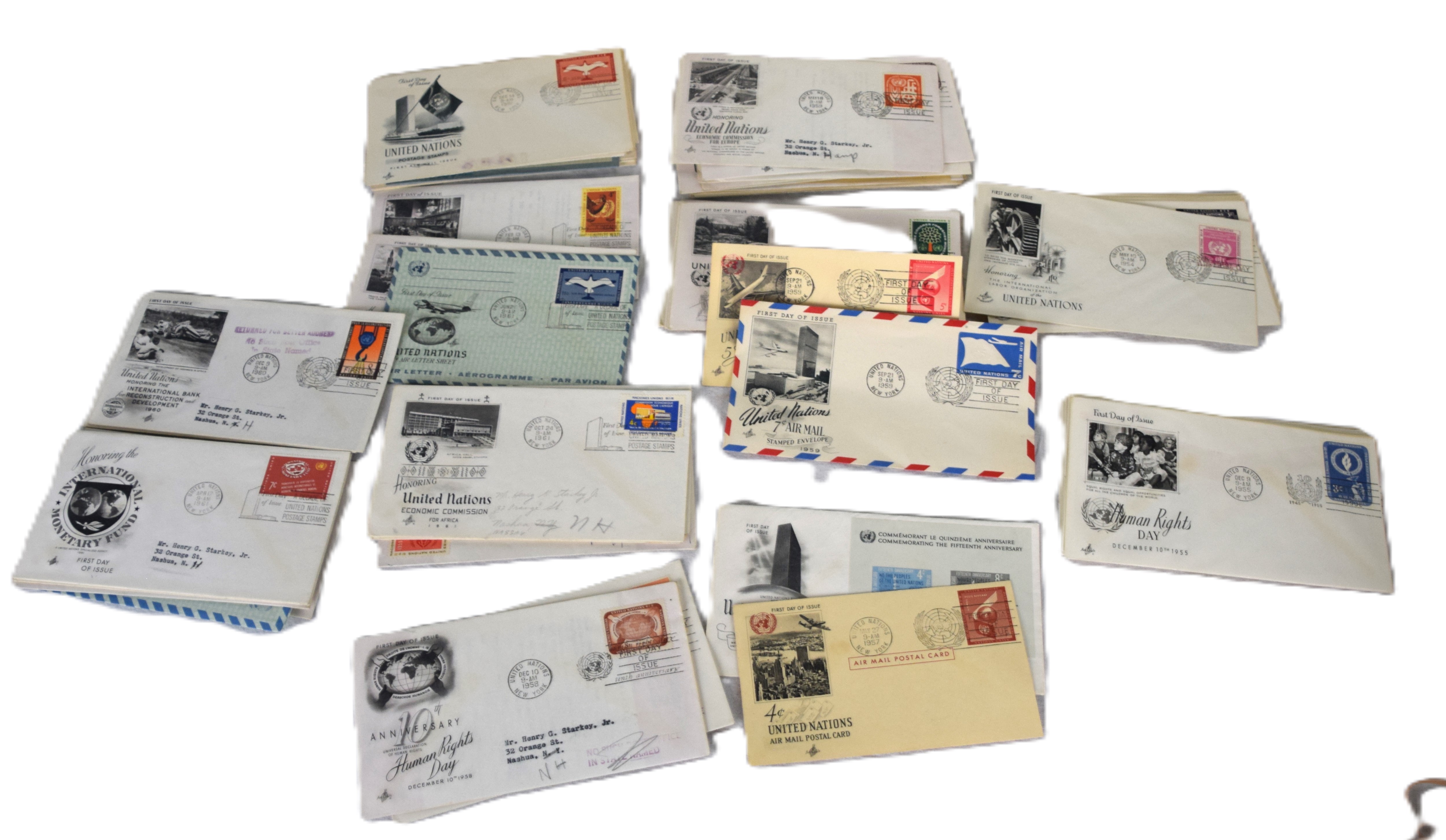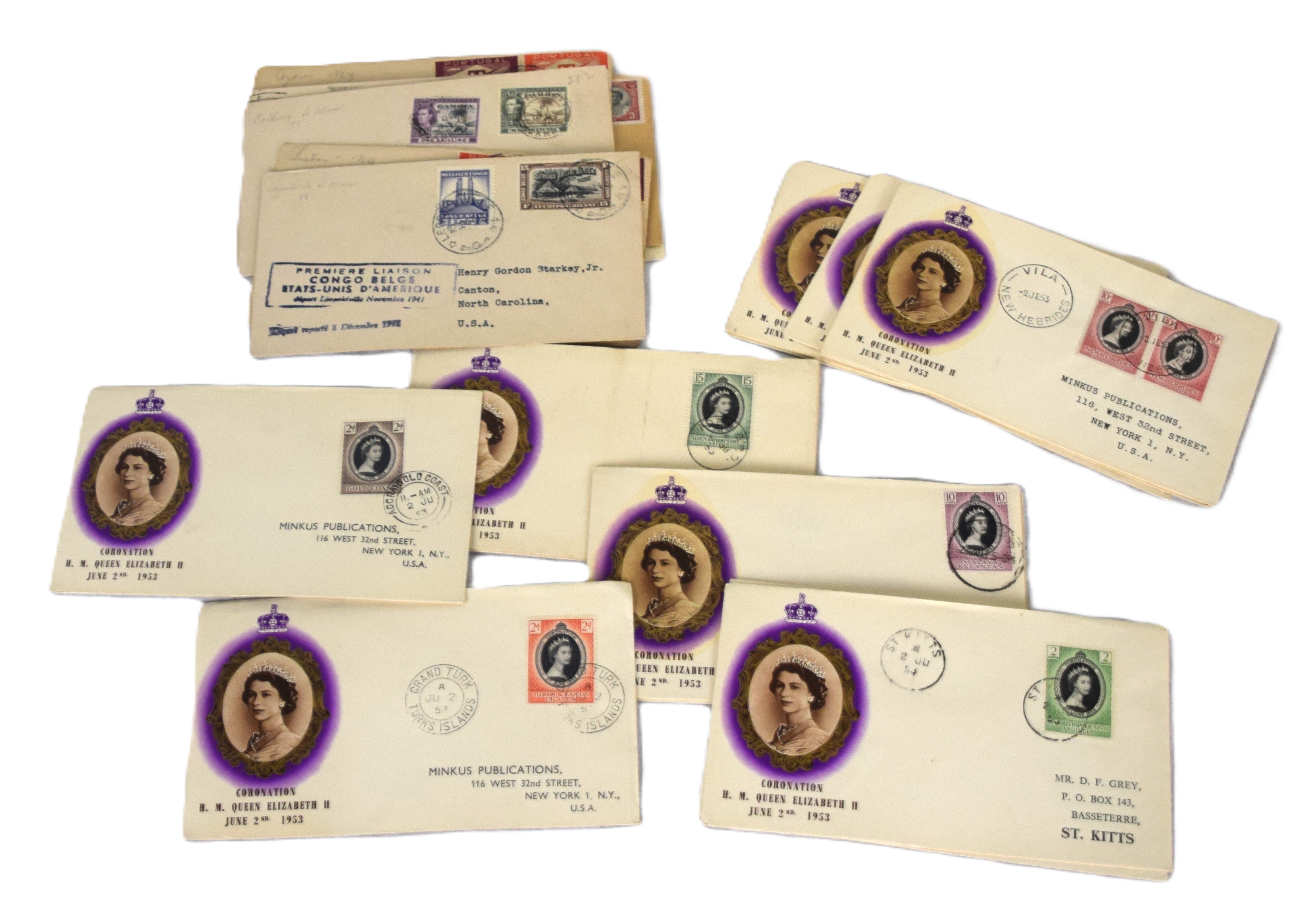 A set of over 100 First Day Covers from Isreal, approximately 75 United Nations First Day Covers and approximately 15 Queen Elizabeth II Coronation First Day Covers from British possessions plus dozens of interesting foreign issues.