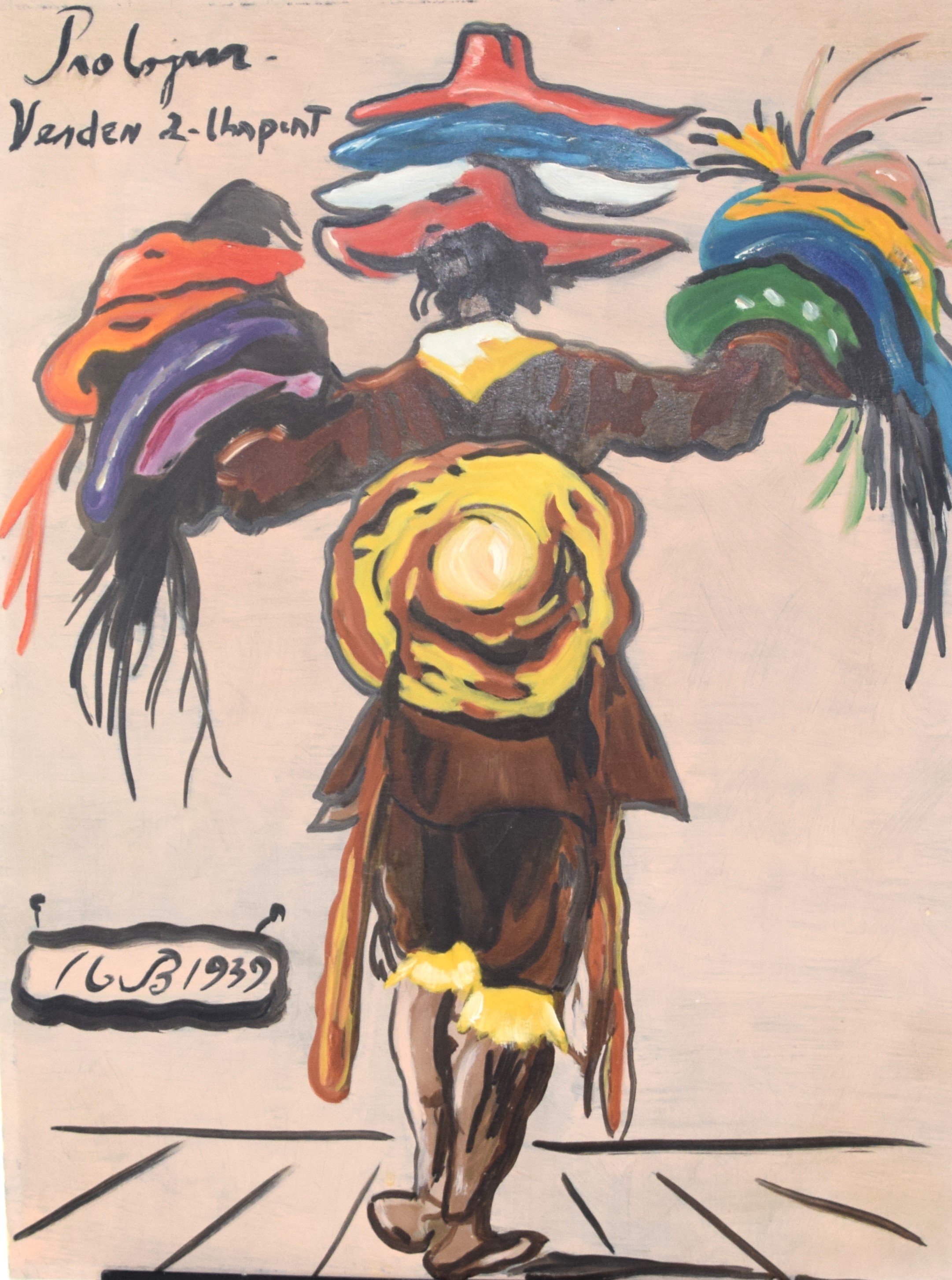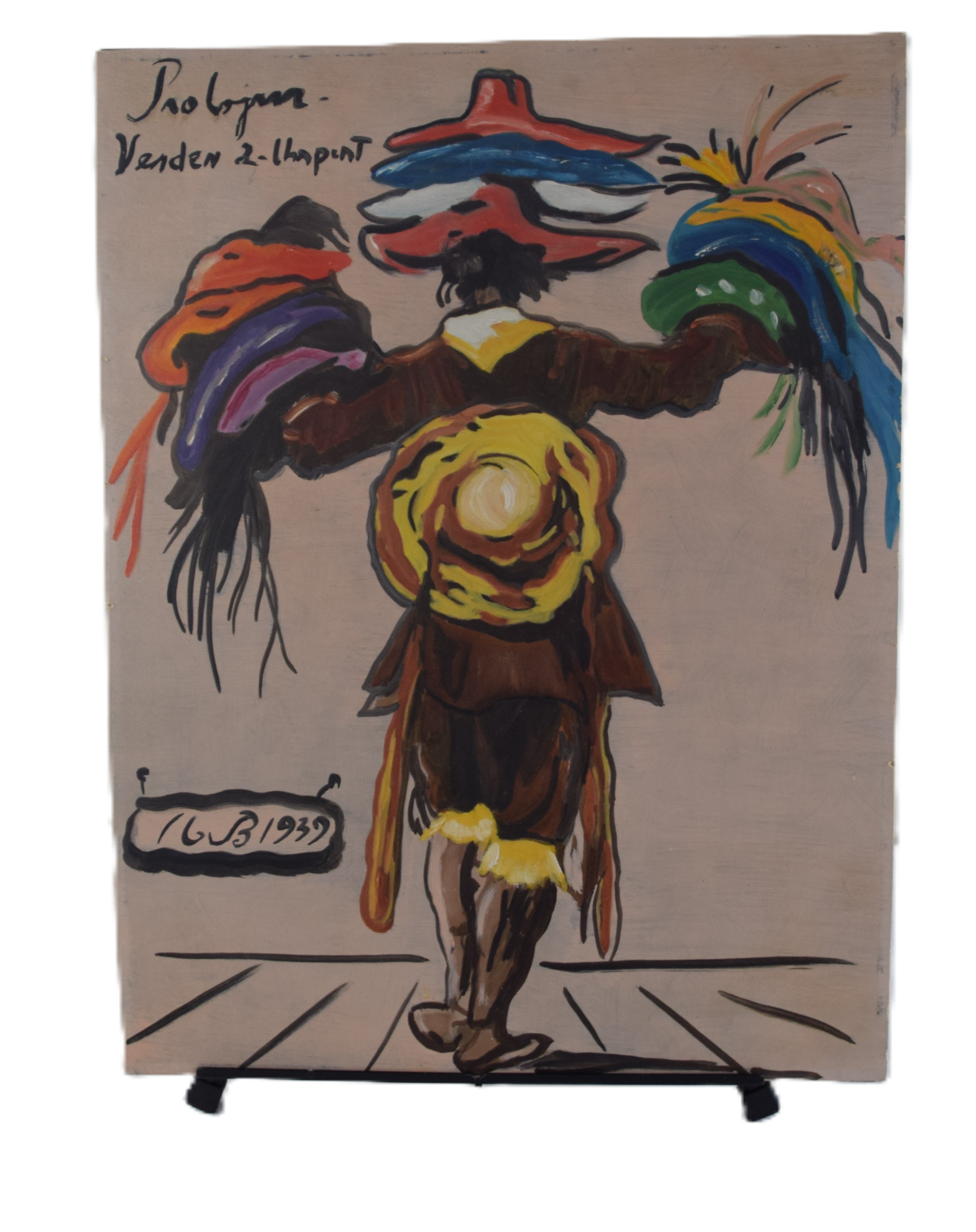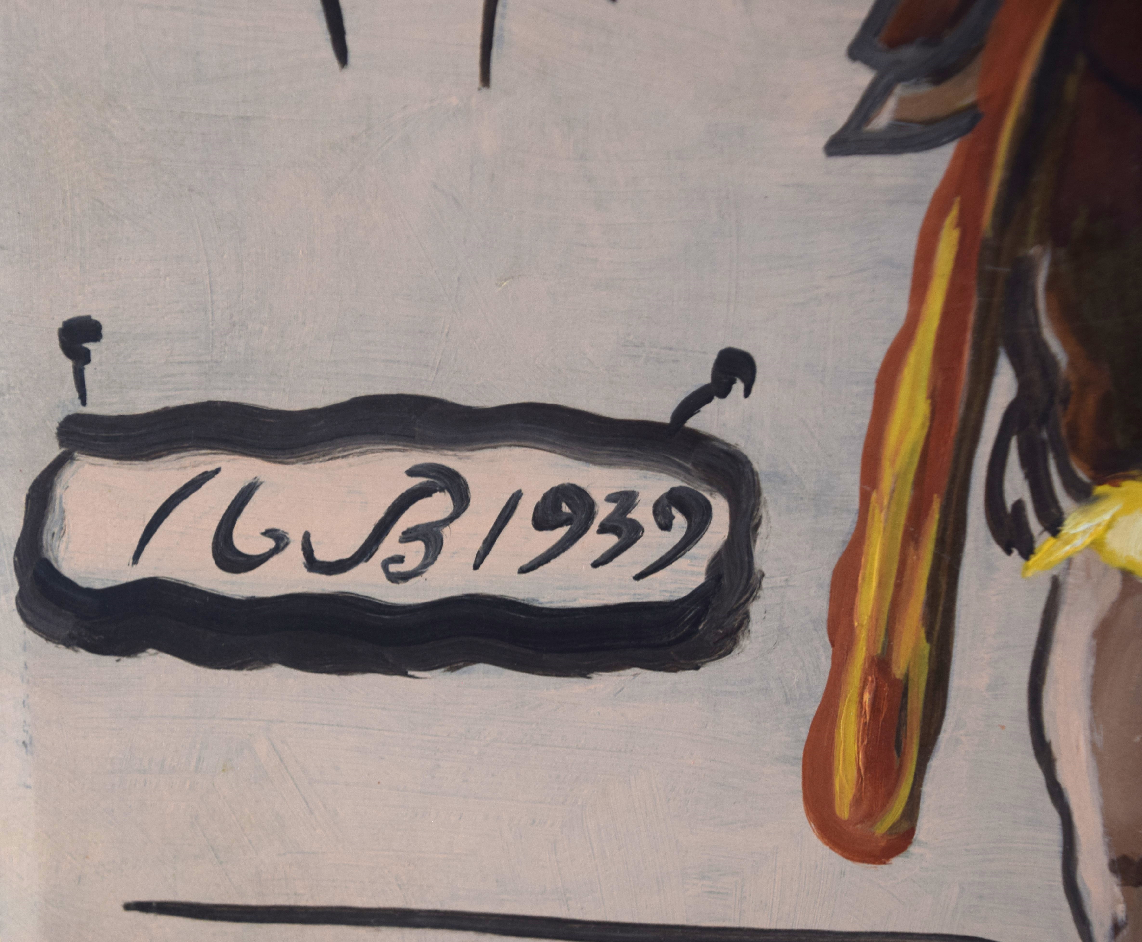 Signed Max Beckman watercolor of a vendor selling hats, signed and dated 1939. Max Beckmann (1884 – 1950) worked in Missouri and Germany and is known for impressionist painting. Dimensions: 24″ x 18″