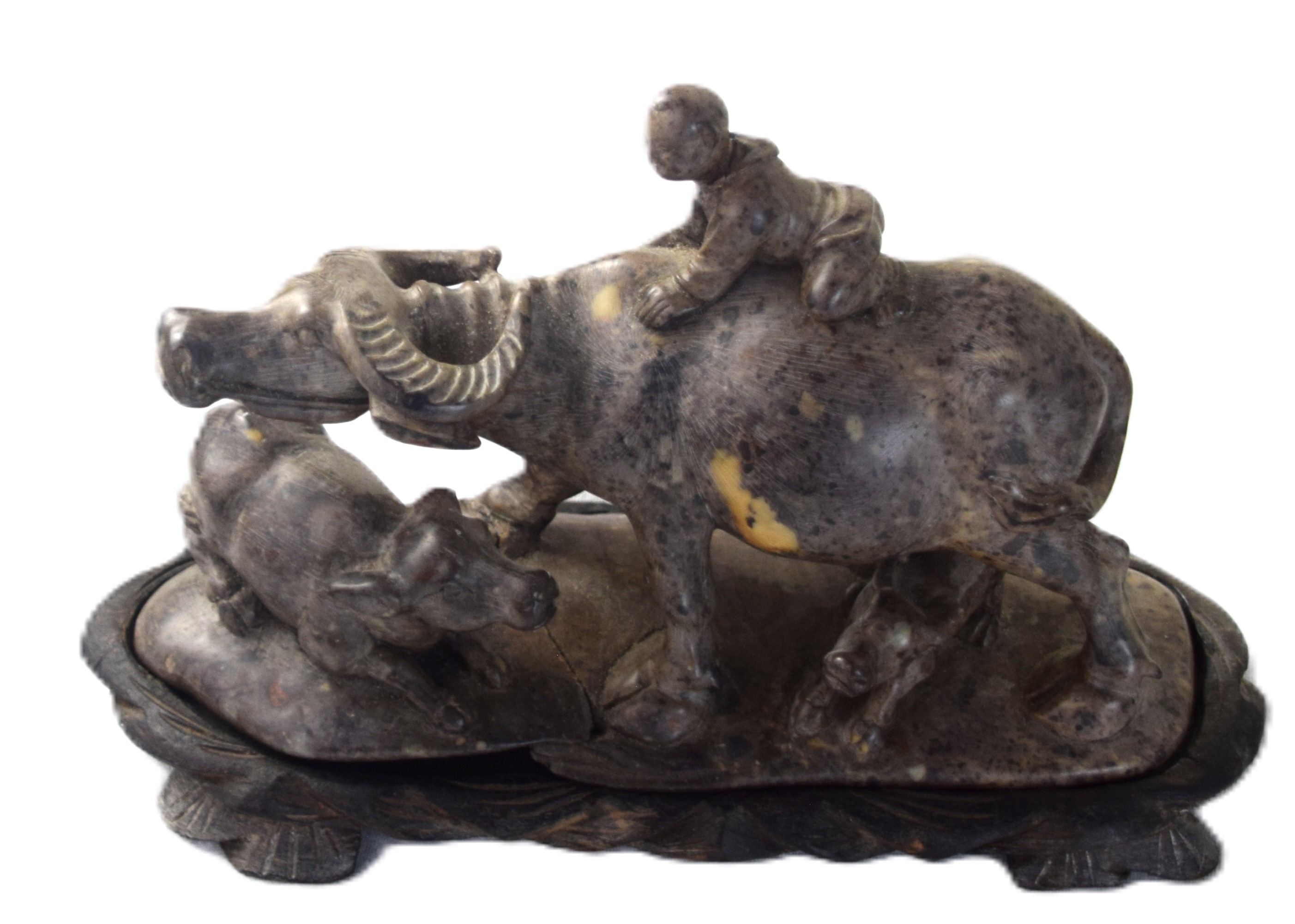 Wear consistent with use, one of the water buffalo base has a repaired crack