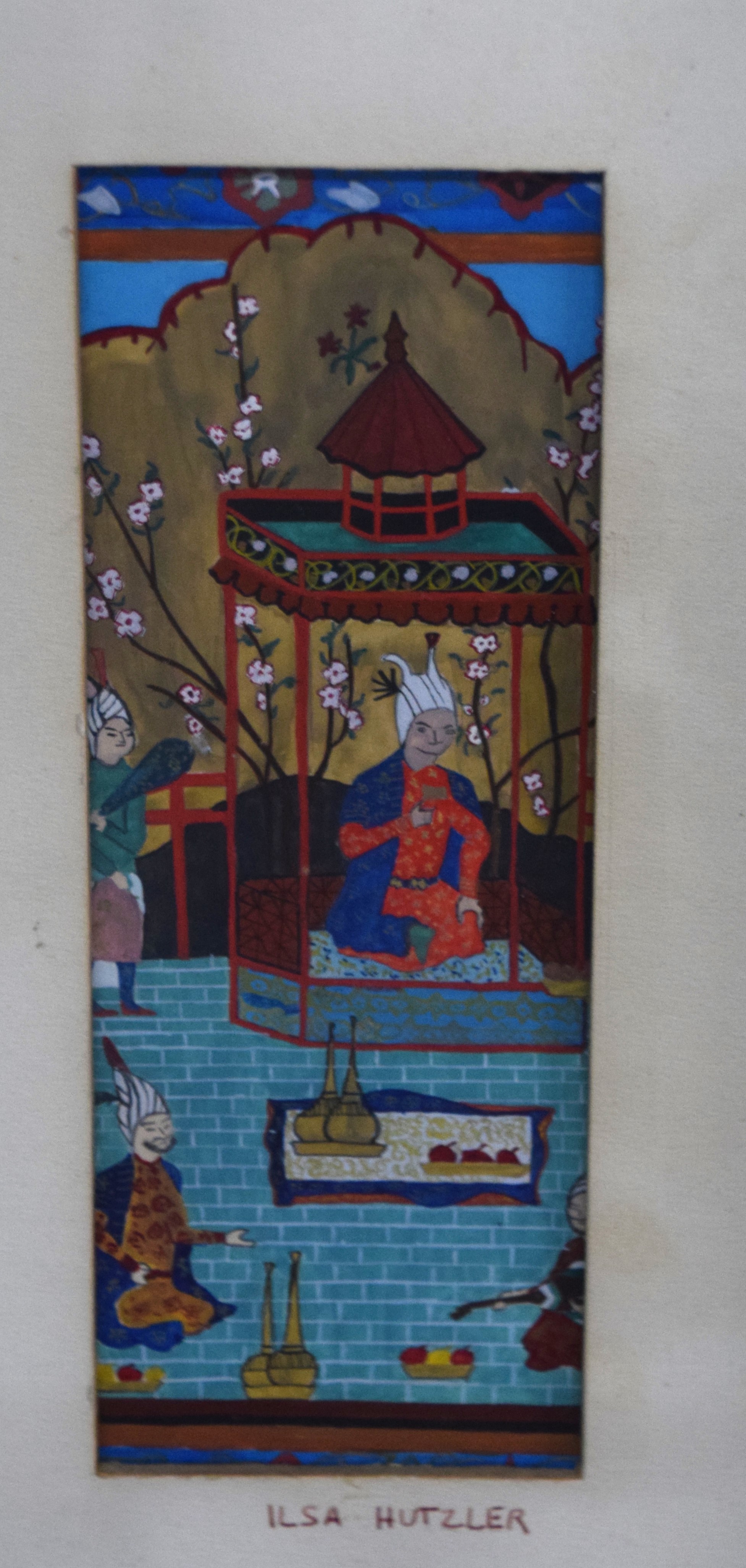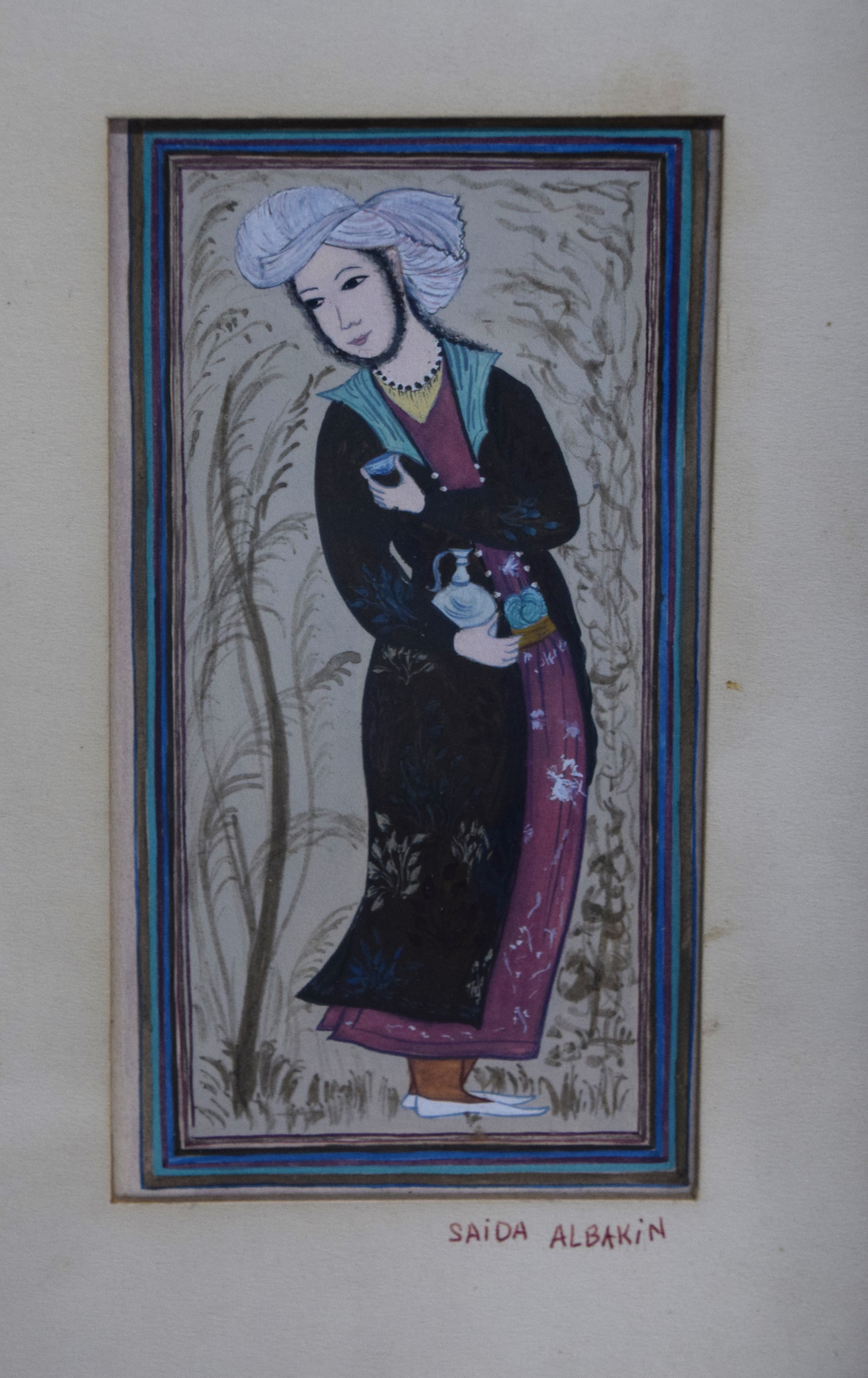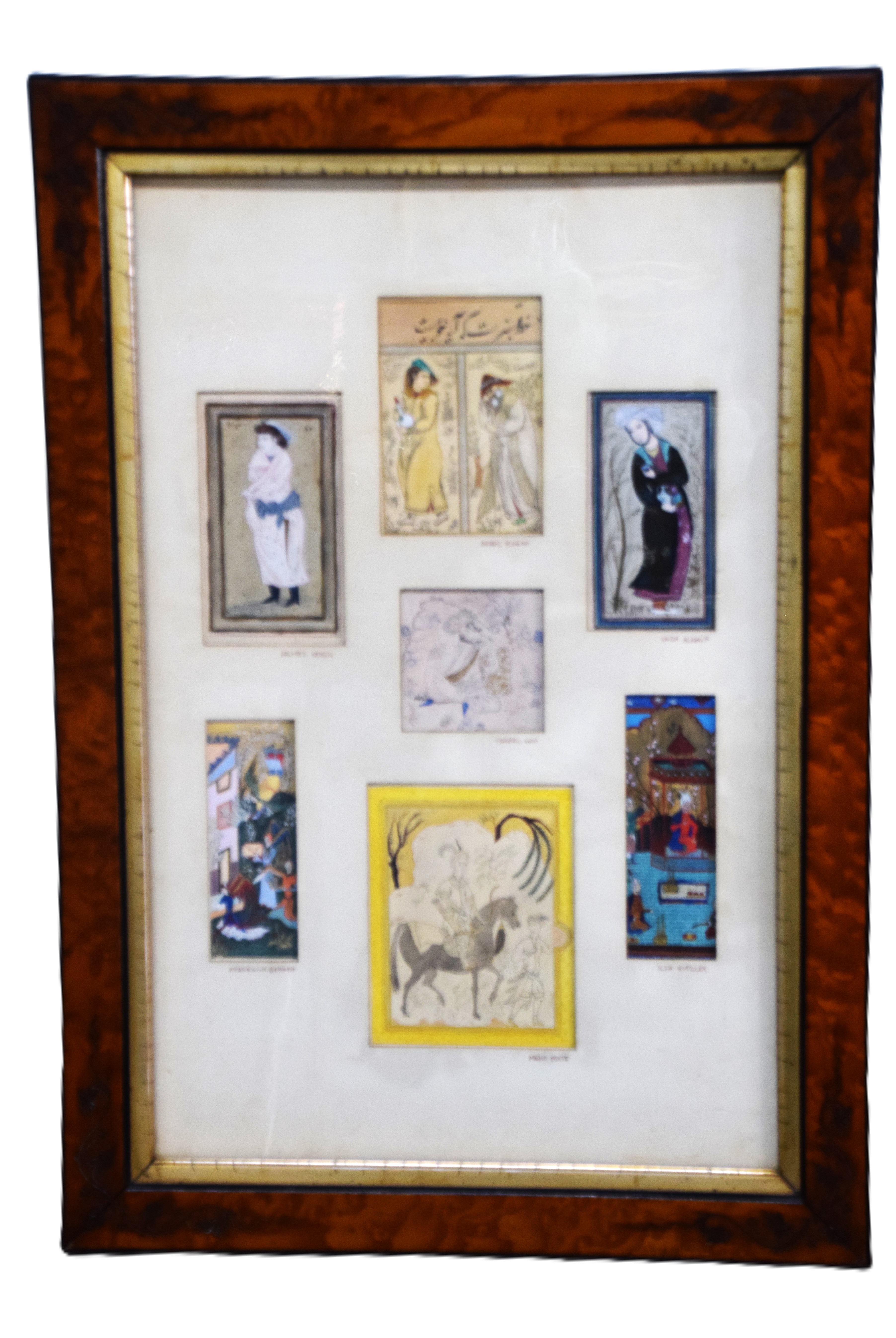 Seven ink drawings of Persian art labeled with artist names. Dimensions: 33″ x 22″ Overall