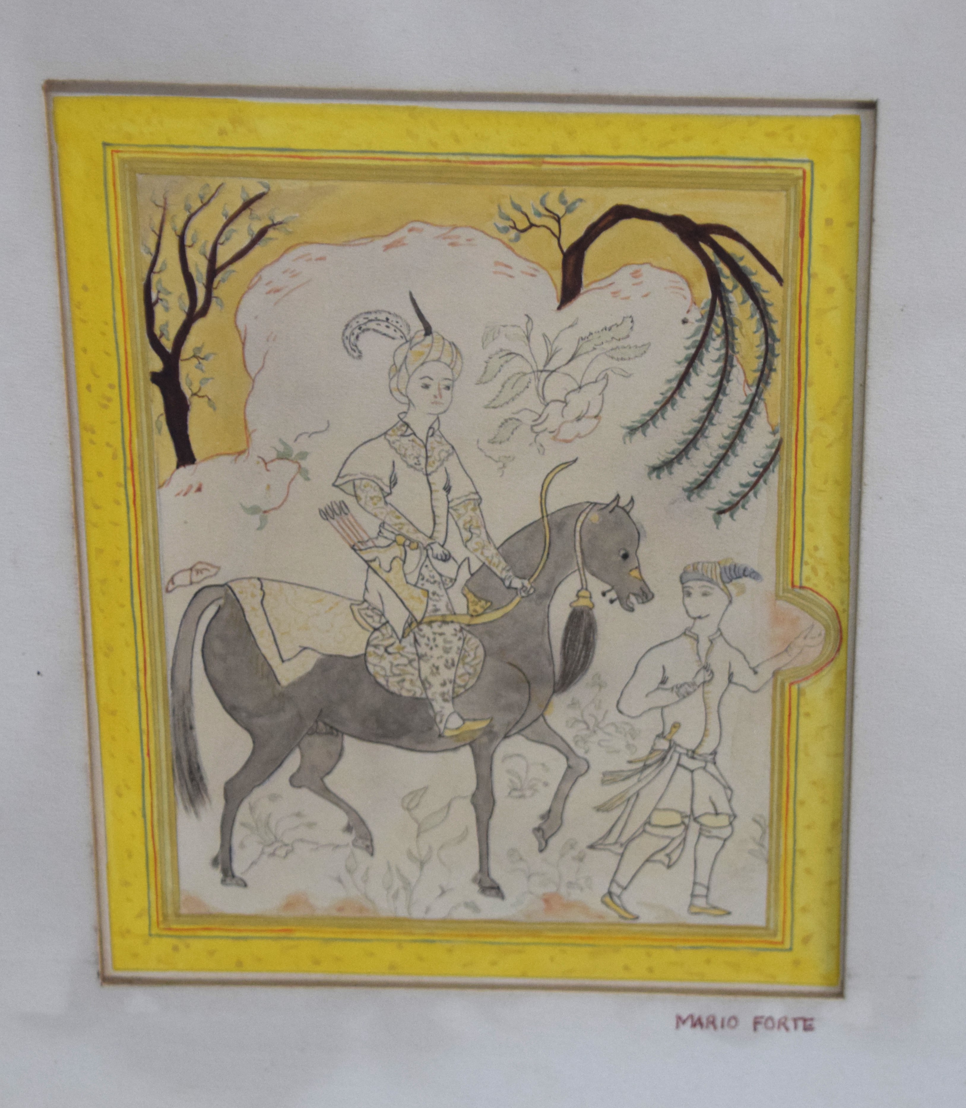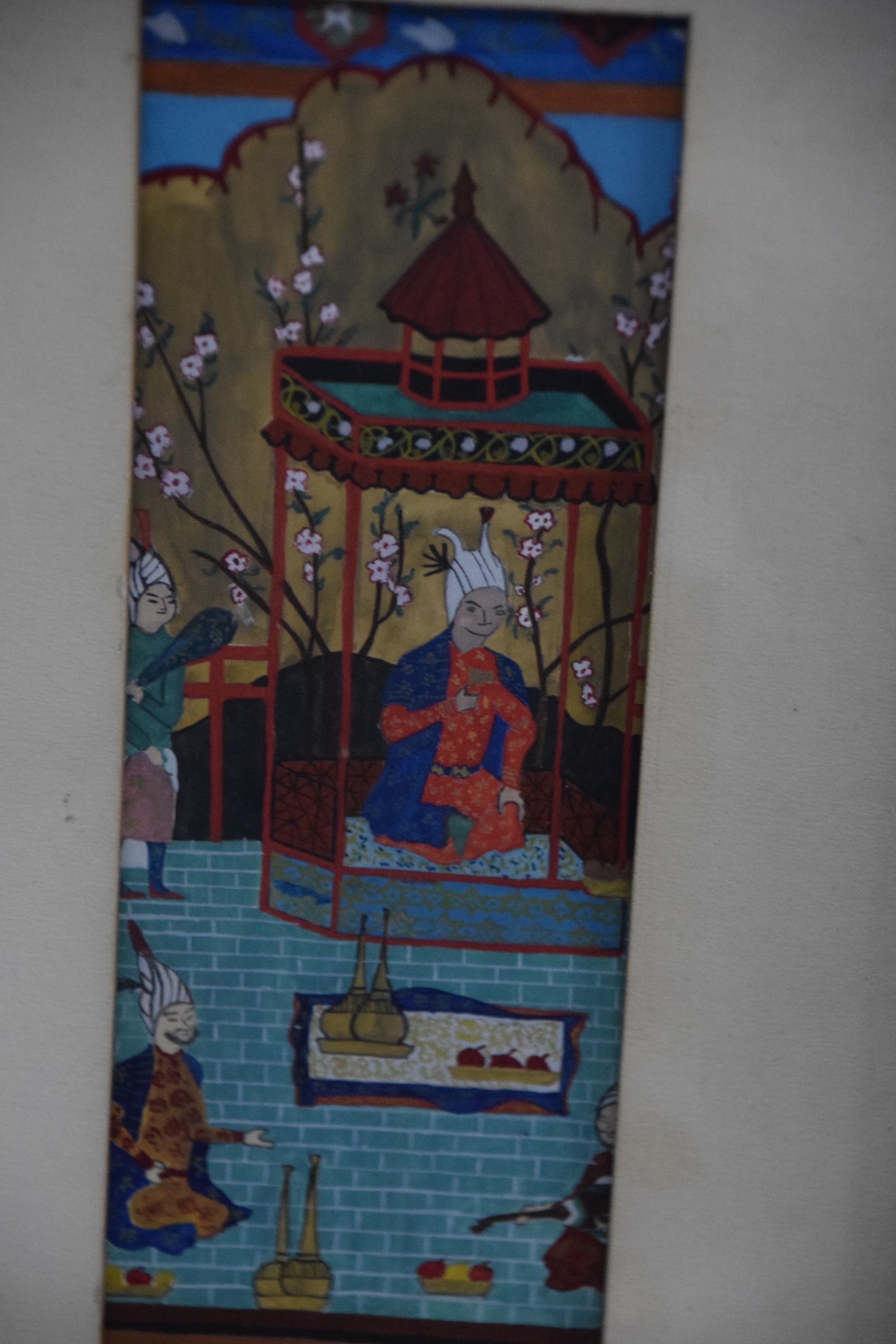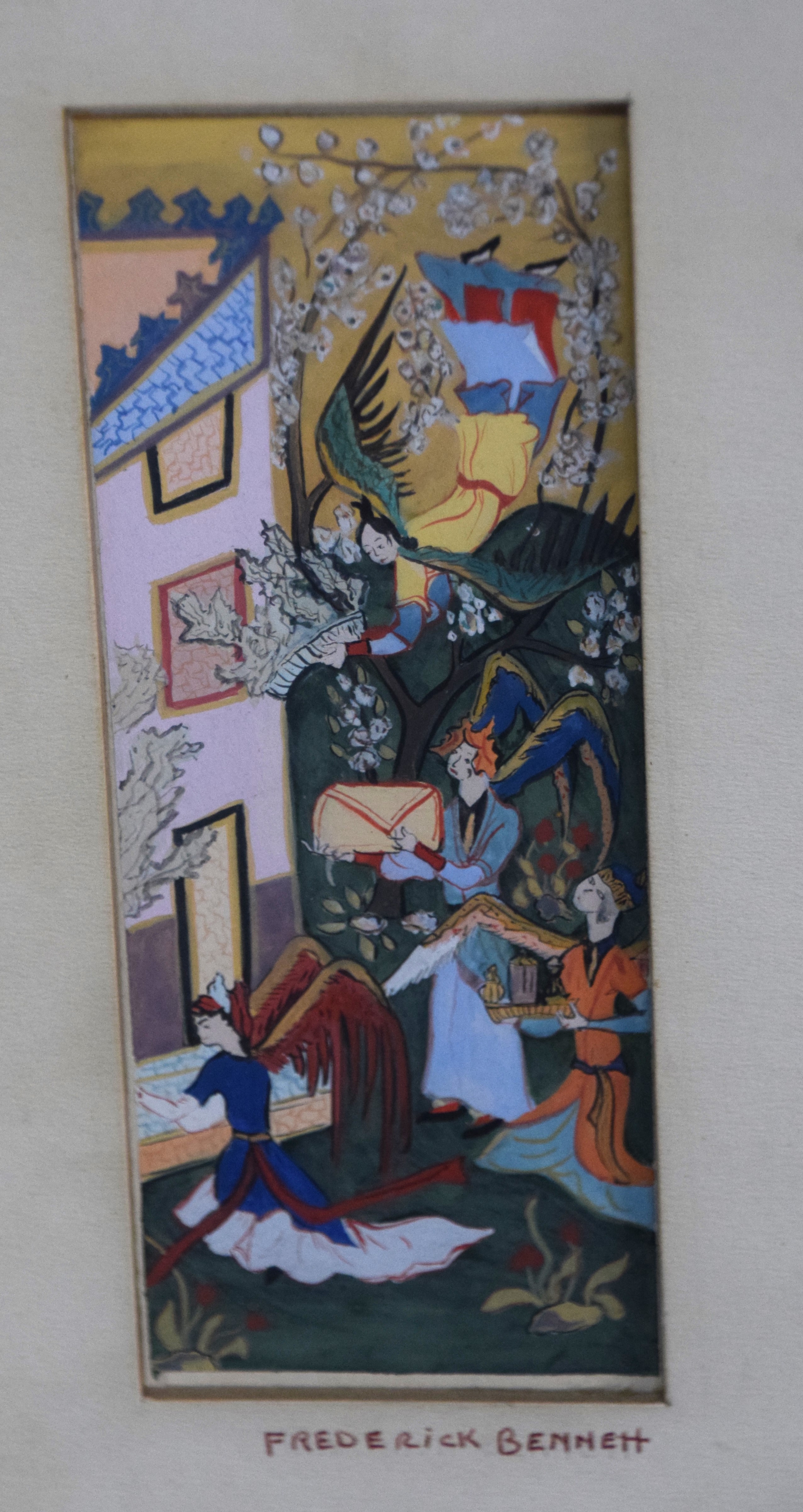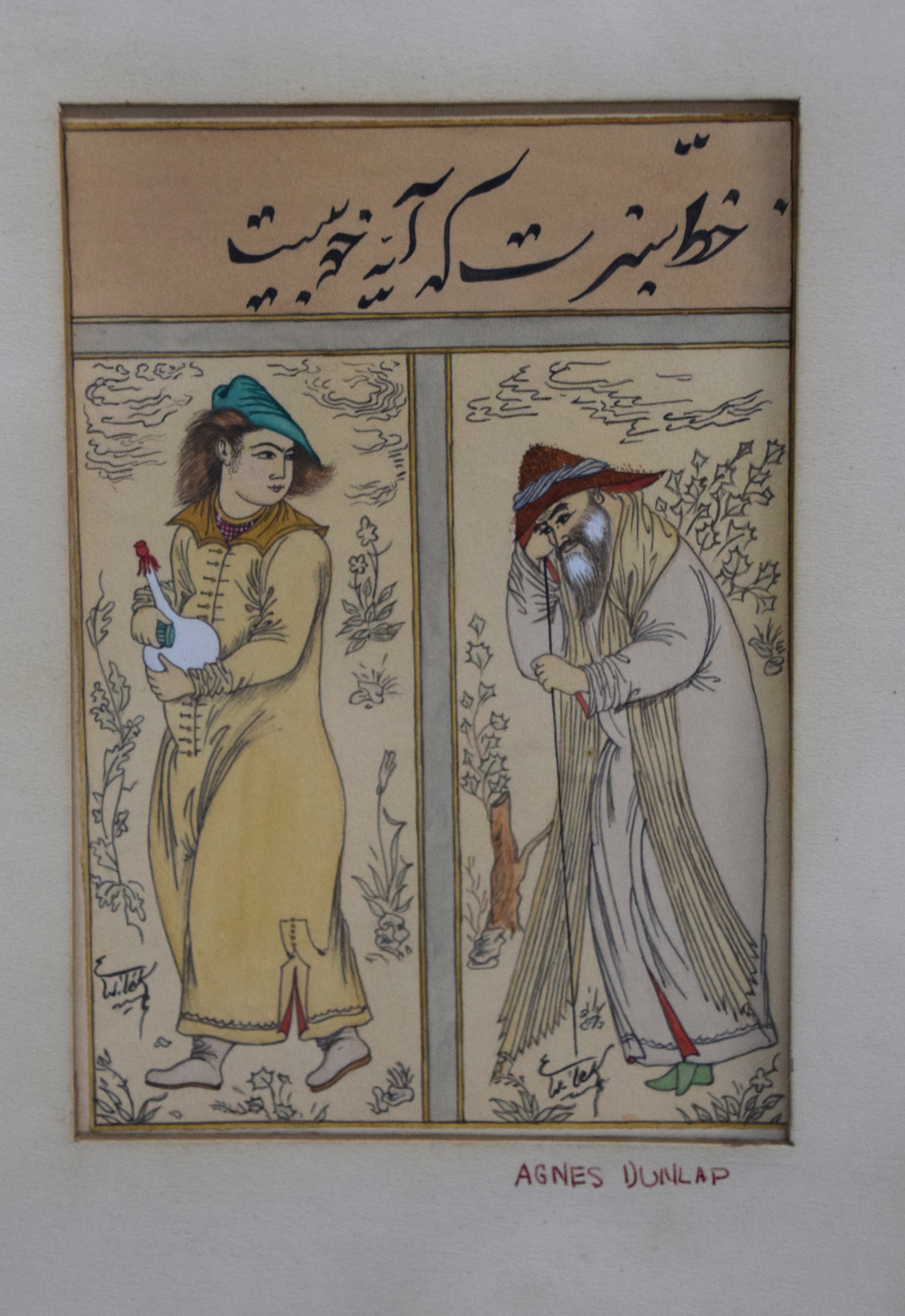Seven ink drawings of Persian art labeled with artist names. Dimensions: 33″ x 22″ Overall