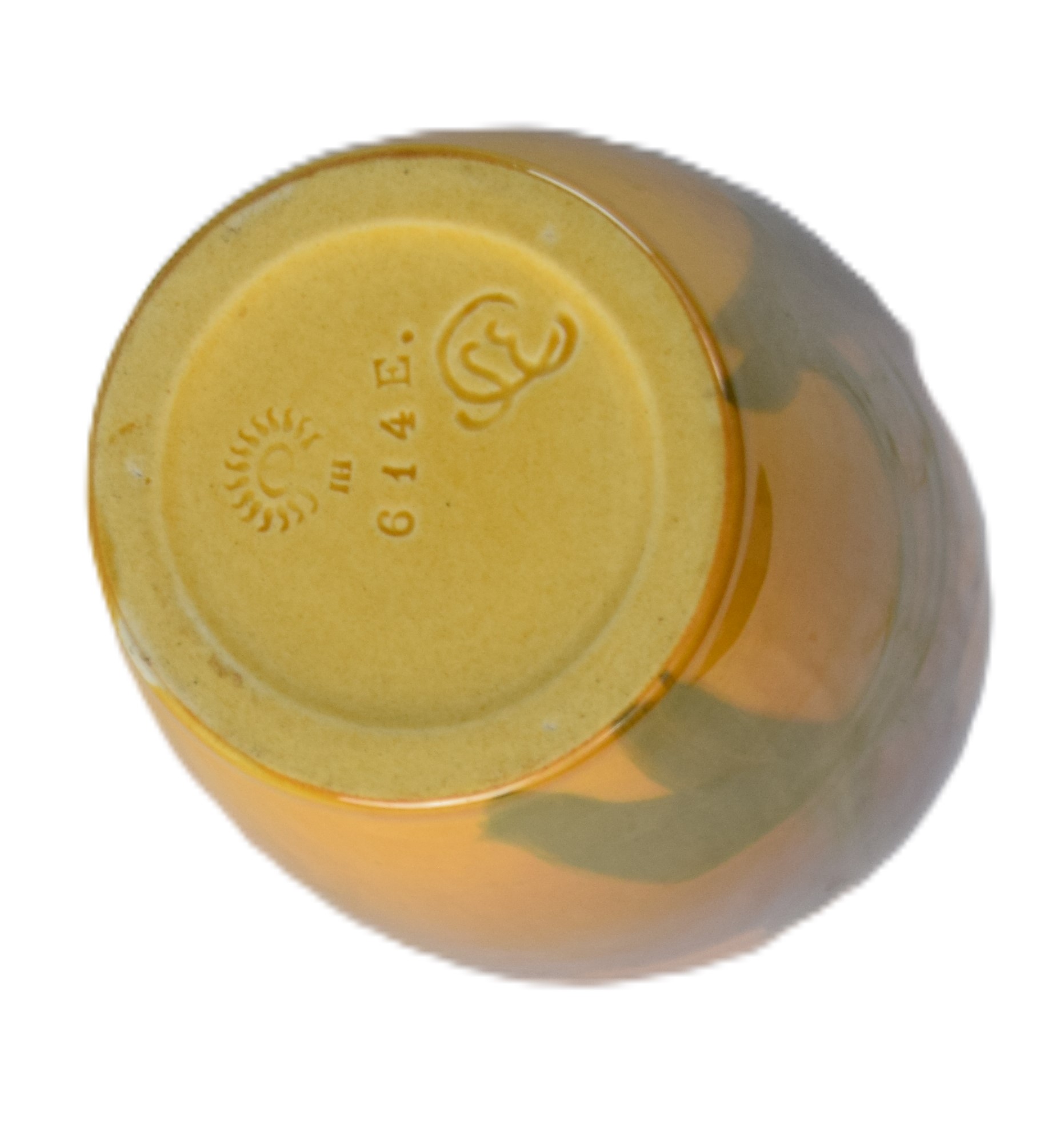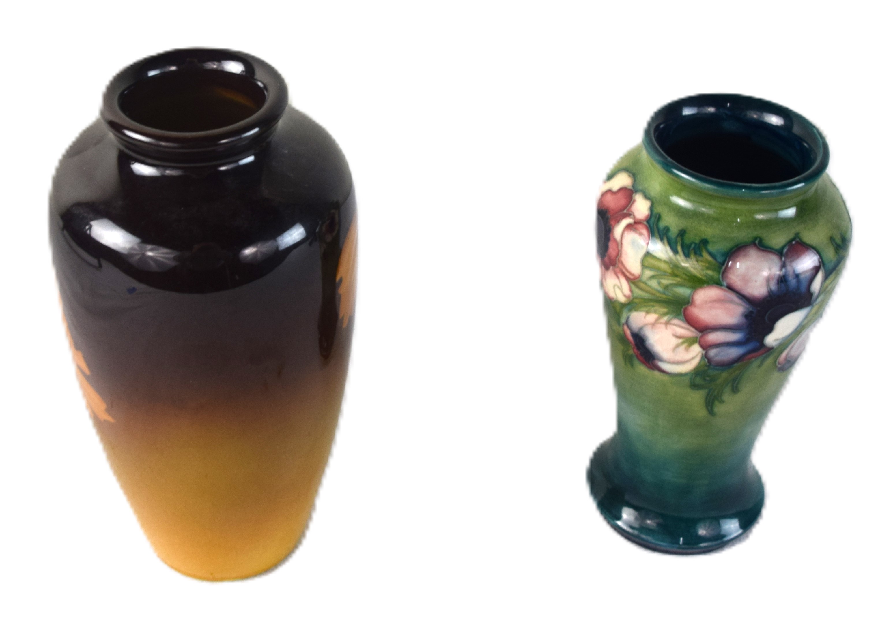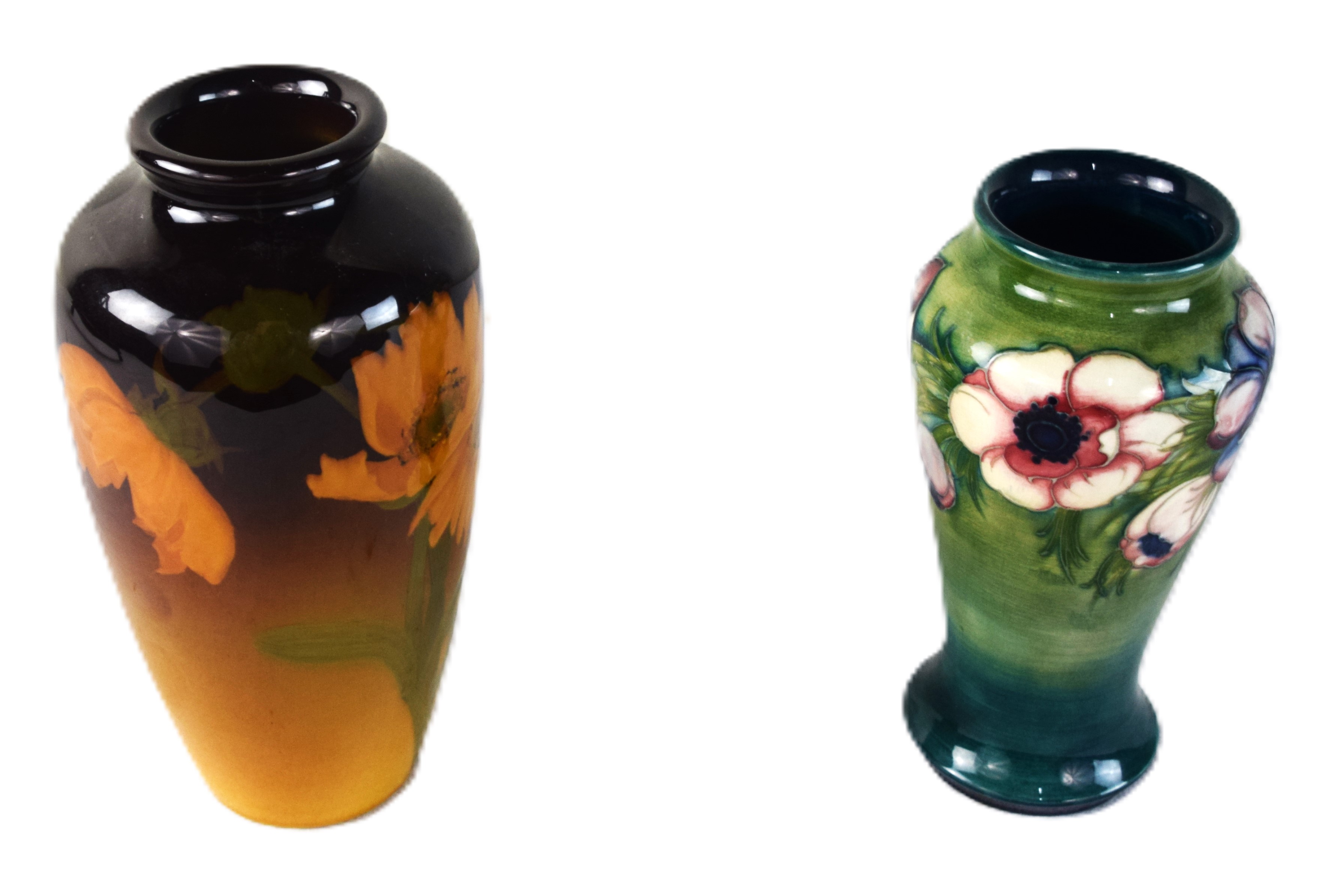 Two piece lot, one glazed Rookwood pottery vase with floral decorations (8 “H) and the other a floral decorated pottery vase (7” H)