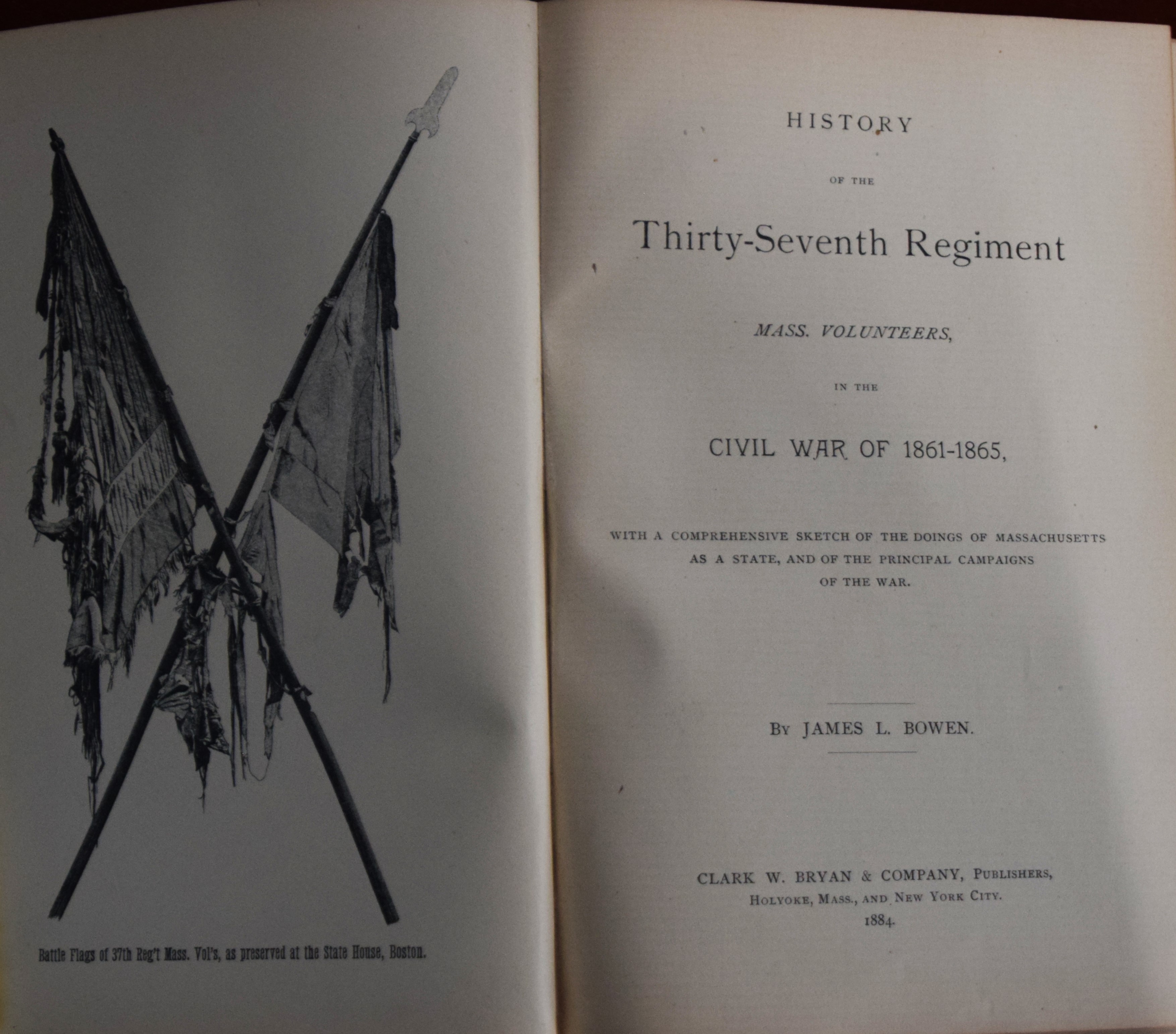 Civil War regimental “History Of The Thirty-Seventh Regiment Mass Volunteers”, by James L. Bowen, 1st edition, 1884, Clark W Bryan & Co., Holyoke MA, 431 pages plus appendix