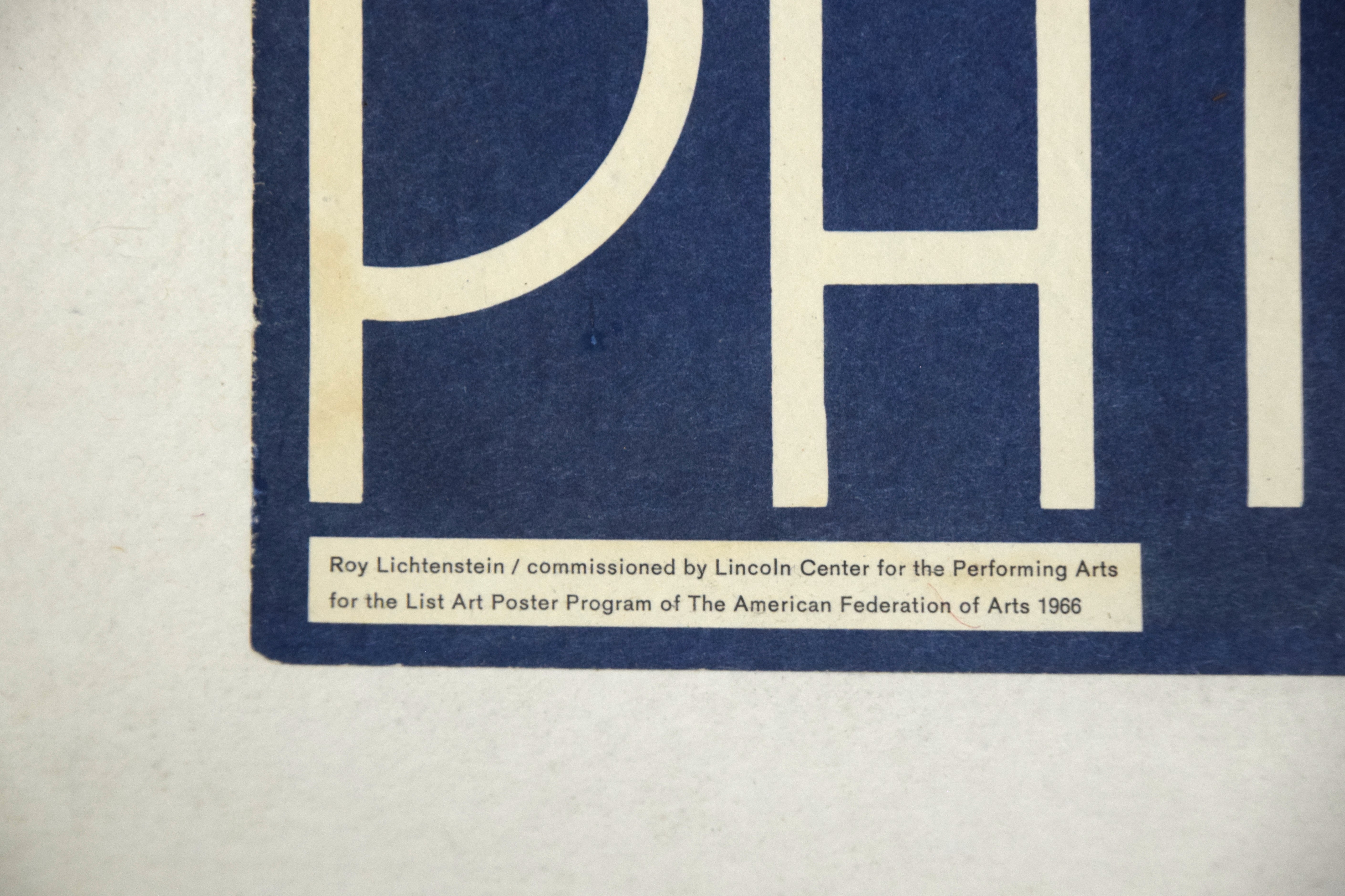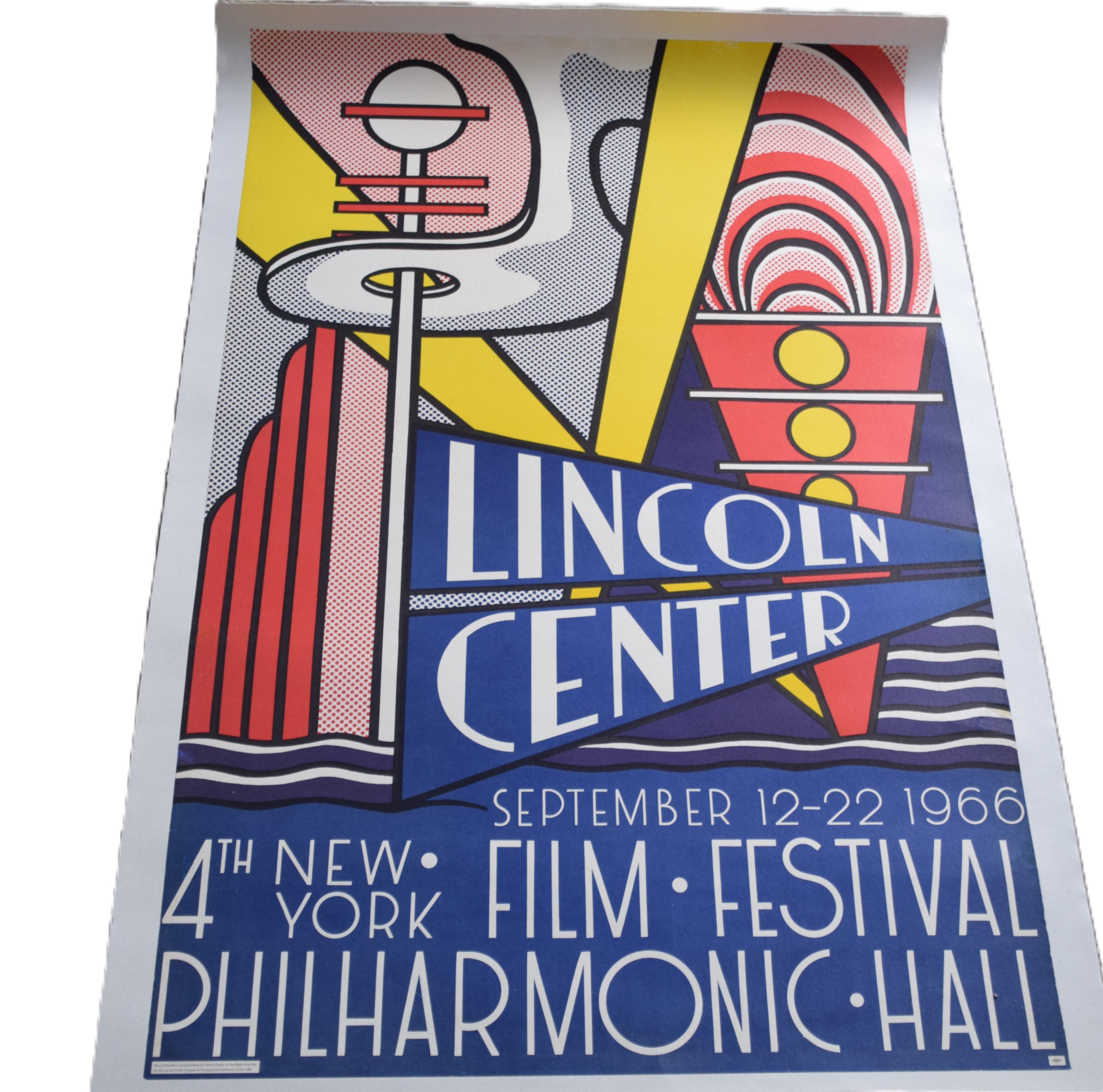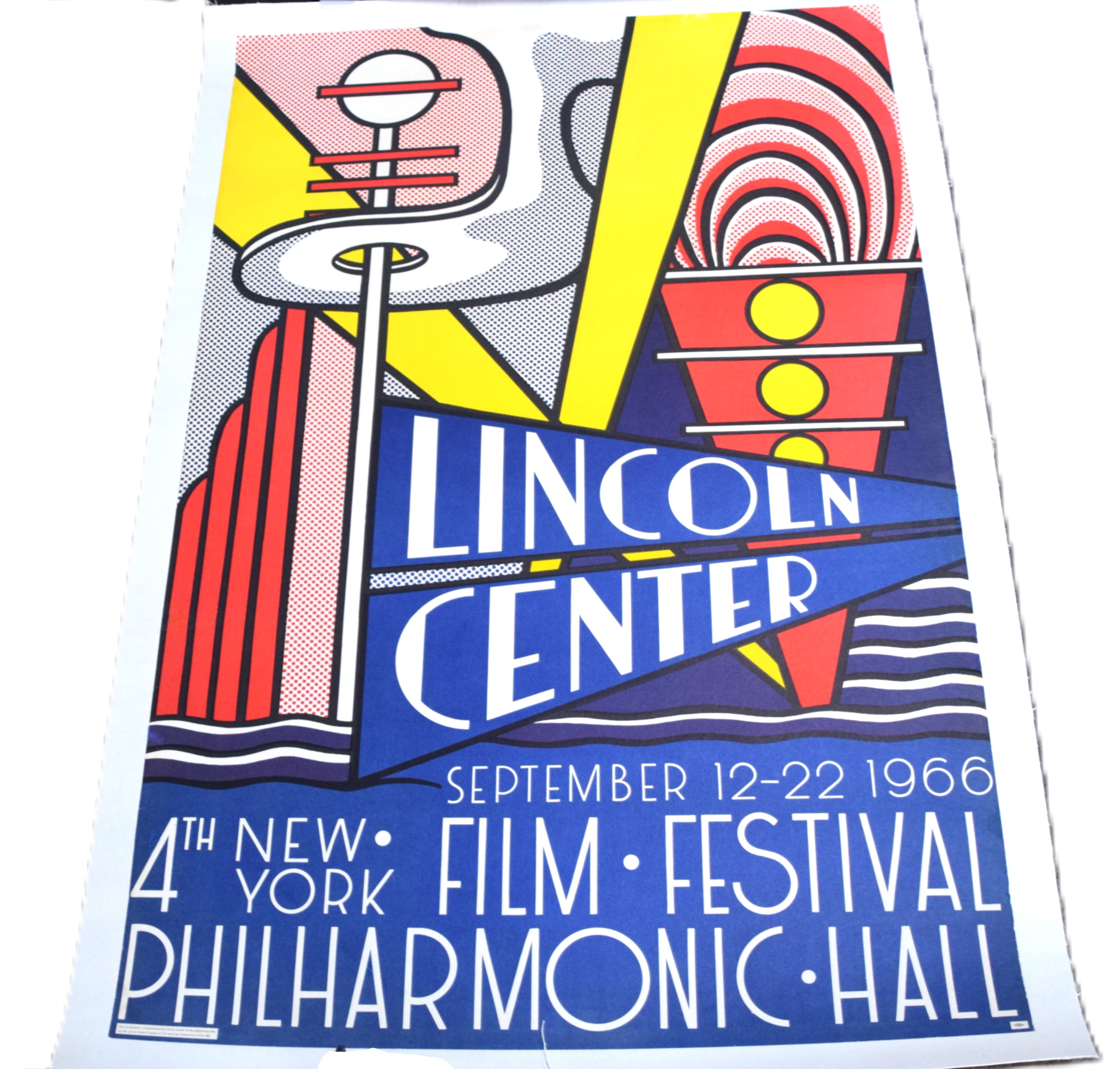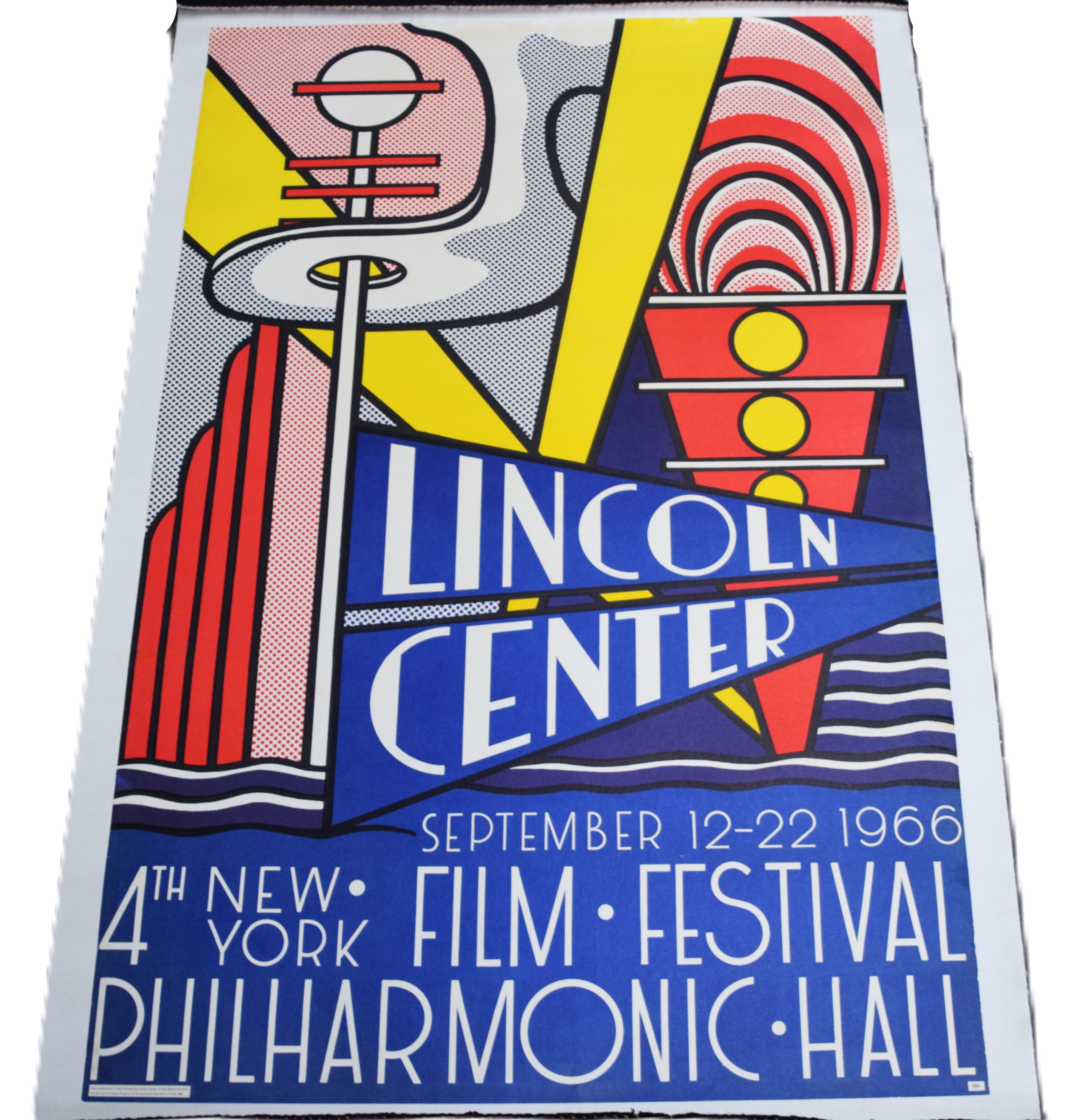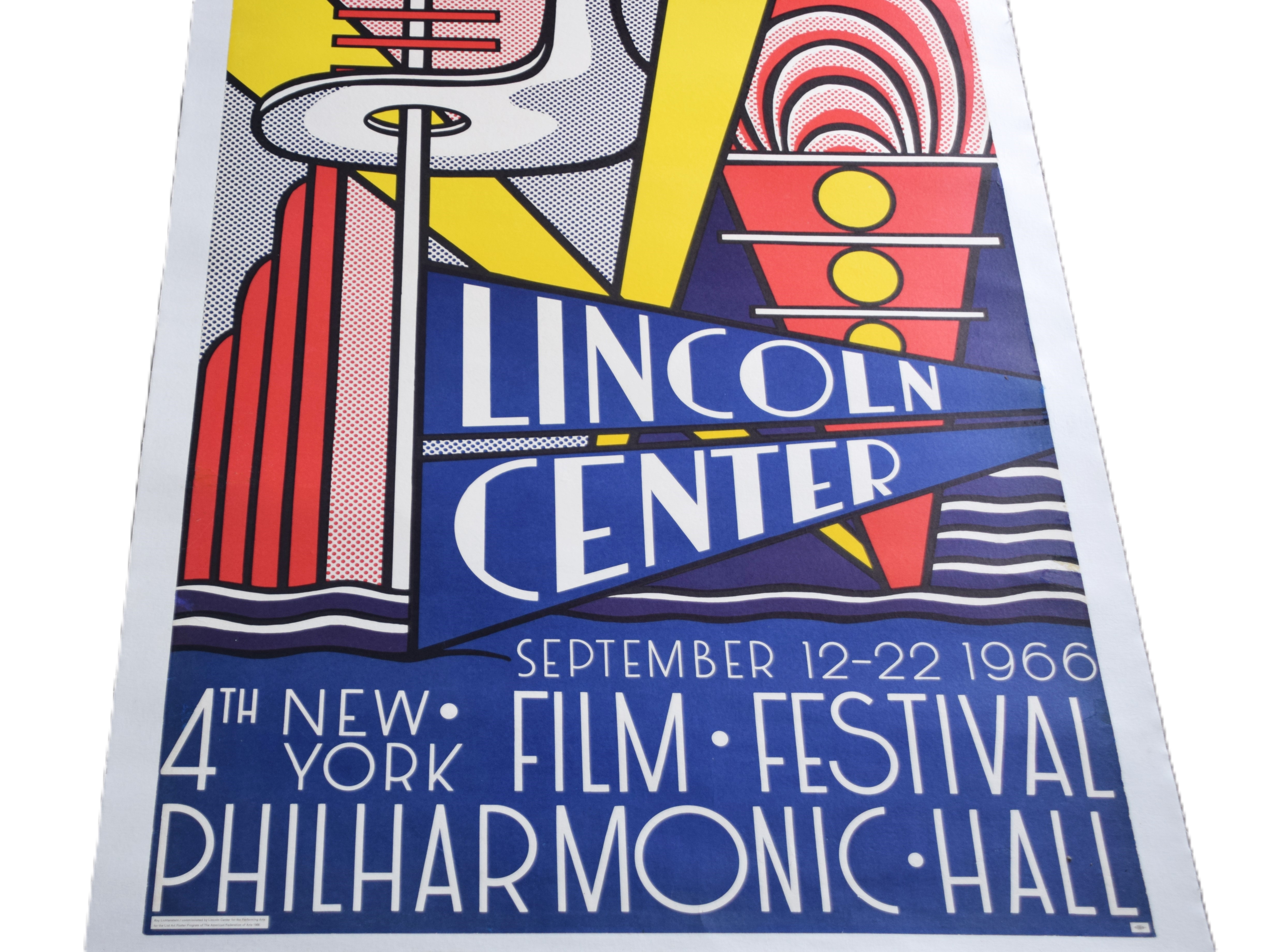 Lincoln Center poster announcing the 4th New York Festival, September 12-22, 1966 at the Philharmonic Hall, designed by Ray Lichtenstein. Roy Fox Lichtenstein was an American pop artist and rose to prominence in the 1960s. His artwork was inspired by popular advertising and comic books. Dimensions: 45″ x 29″