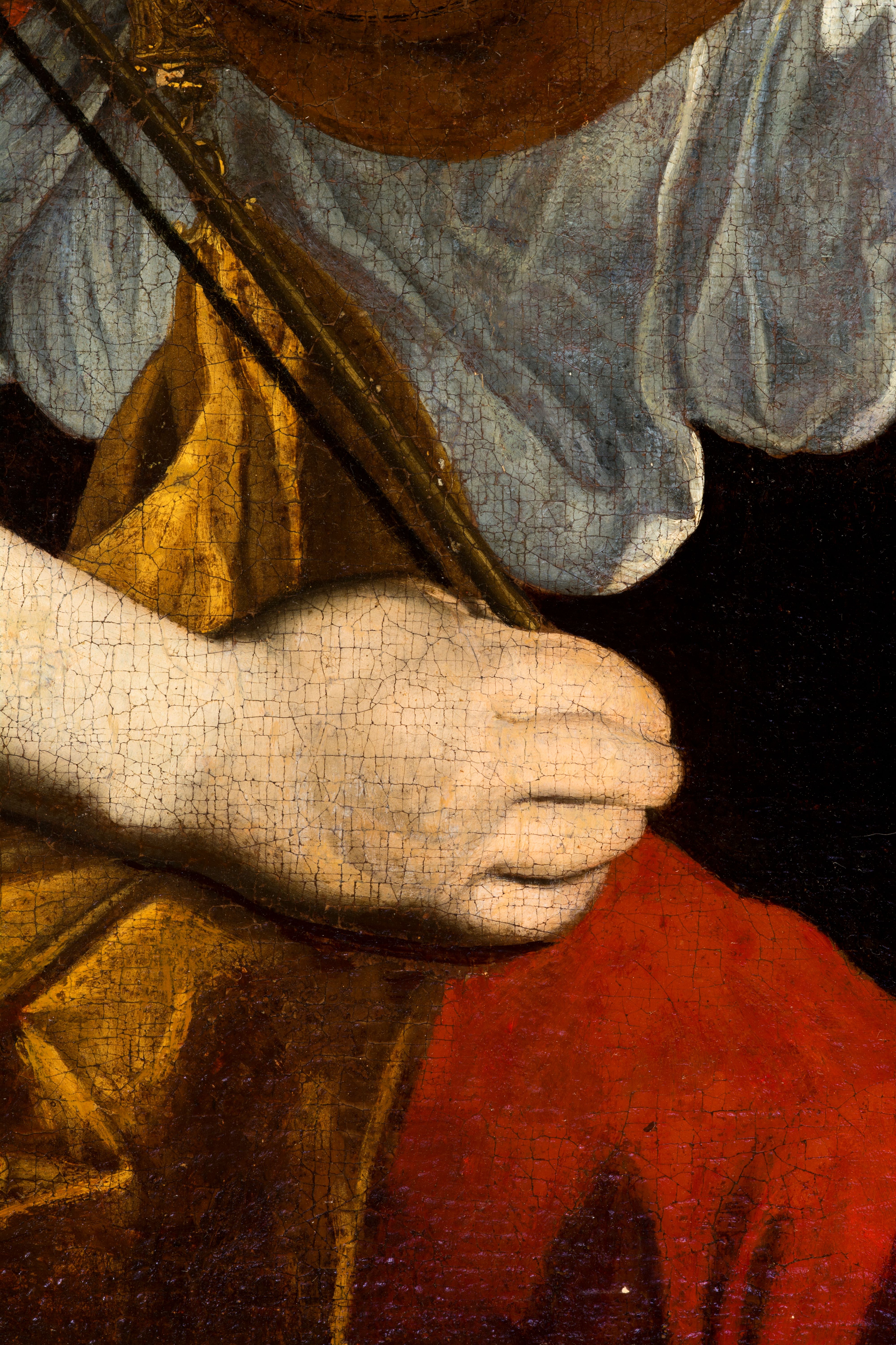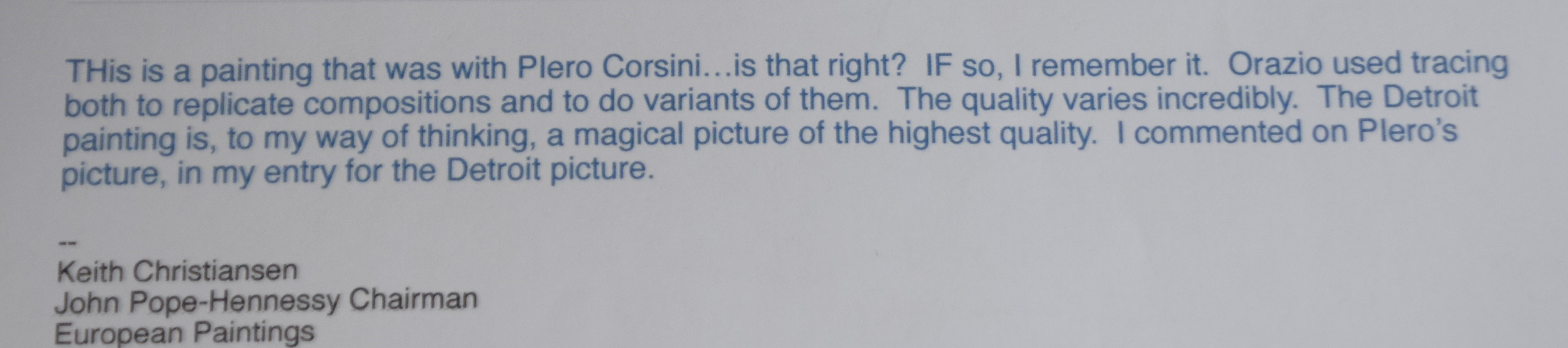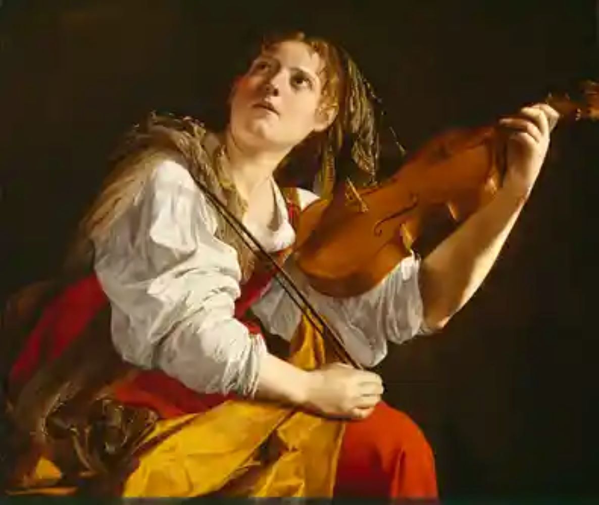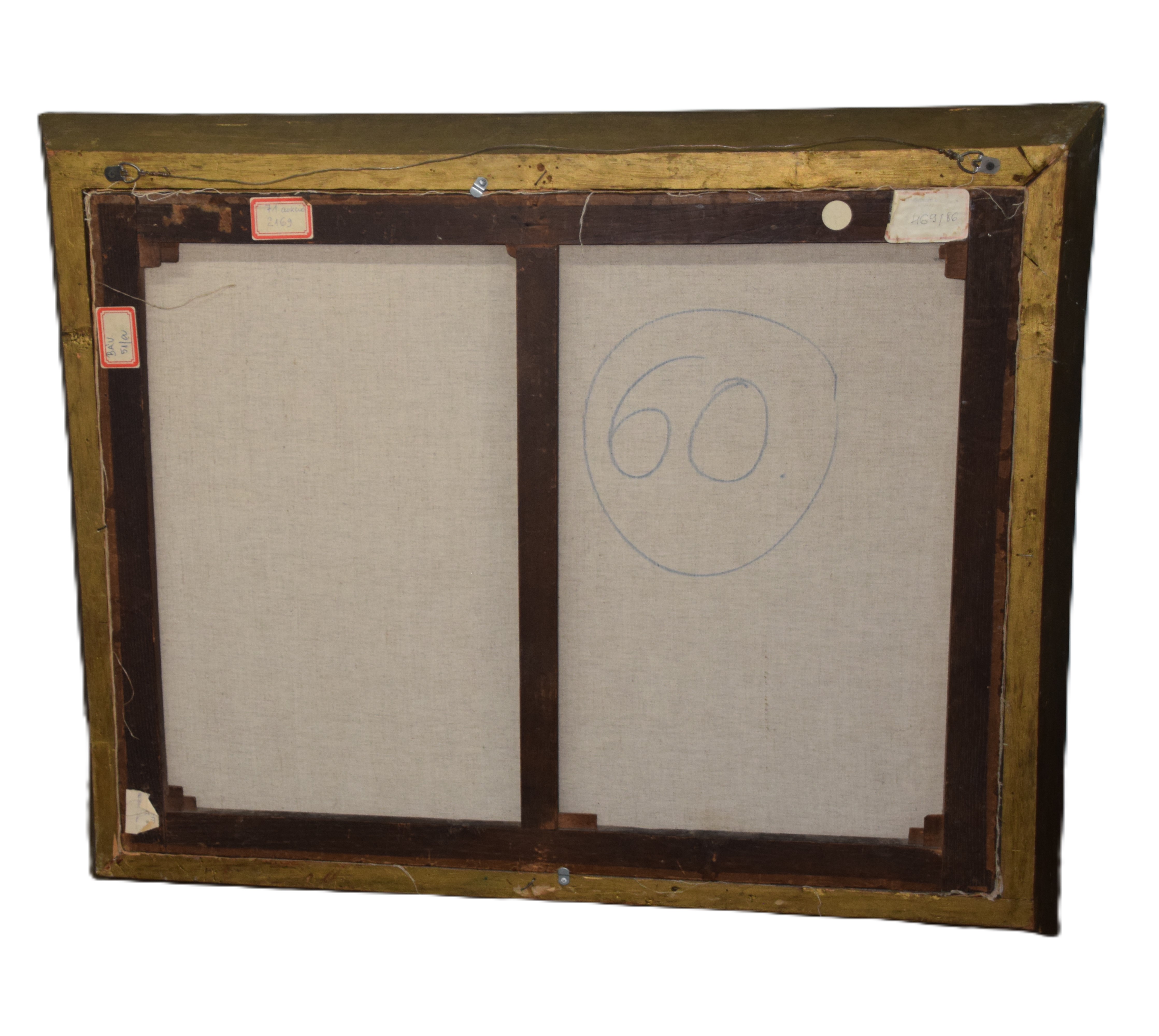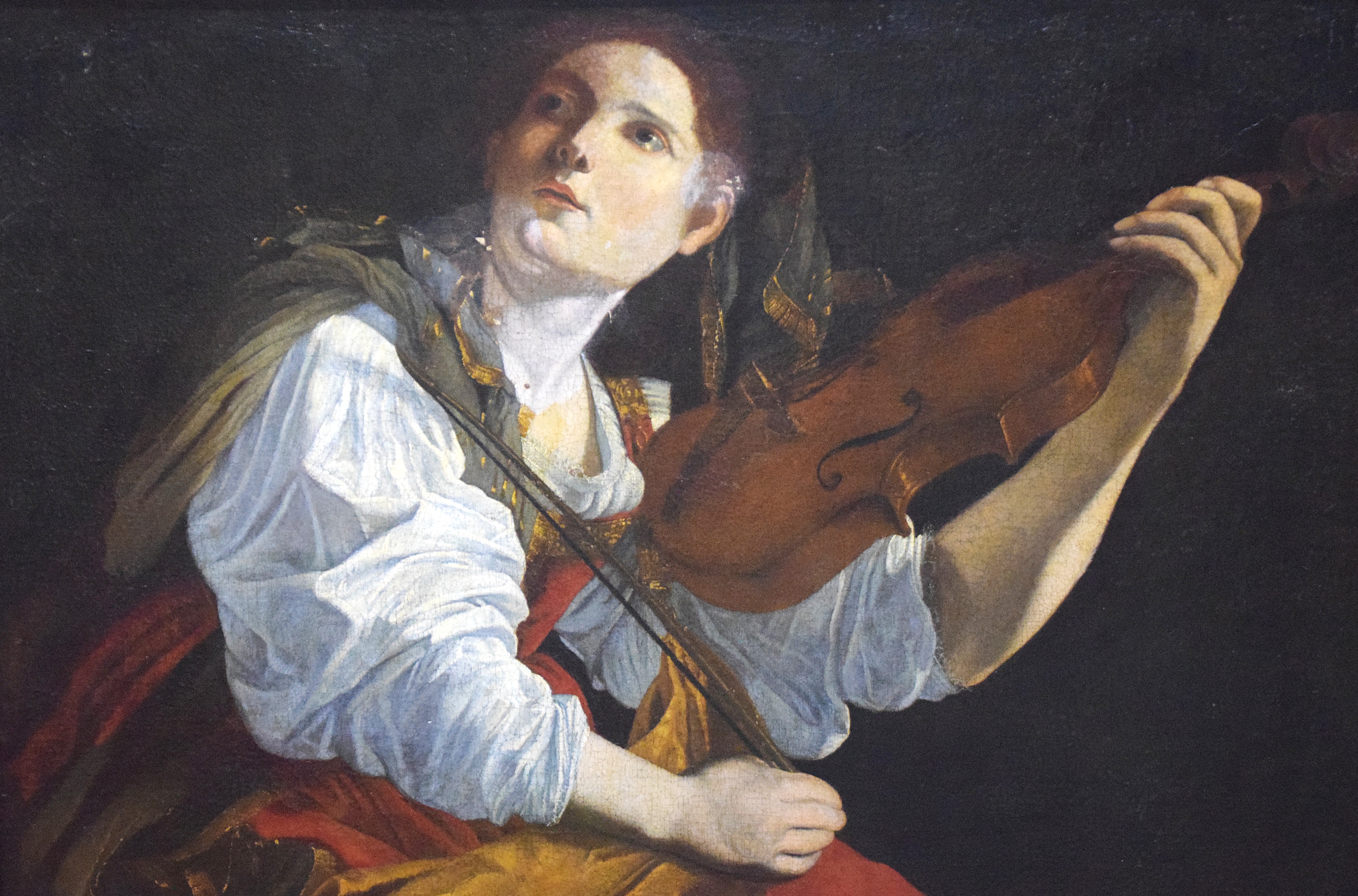 A 17th century old master painting of St Cecilia playing a violin, wearing a white blouse and attributed to Orazio Gentileschi, an Italian painter from Pisa. Orazio Gentileschi (1563-1639) was in Rome by the time he was sixteen and began a career of painting for Popes including Sixtus V, Clement VIII and Paul V. He became close friends with Michelangelo Caravaggio. This painting is almost identical to the St. Cecilia at the Detroit Institute of Arts (Attached). In fact Keith Christiansen, former head of European Paintings at The Metropolitan Museum of Art, NY, stated after seeing and confirming the work, “Orazio used tracing both to replicate compositions and to do variants of them”. Saint Cecilia was a Roman Christian virgin martyr, who is venerated in Catholic, Orthodox, Anglican, and the Church of Sweden. She became the patroness of music and musicians, it being written that, as the musicians played at her wedding, Cecilia “sang in her heart to the Lord”. Provenance: Provenance:The painting was released from the Szepmuveszeti Muzeum, Hungary, around 1950s (as several museum labels indicate-probably on loan from the prominent Hungarian family). The painting was inherited from the Hungarian grandfather to the mother to the daughter who eventually moved to Portsmouth NH from Hungary. It was sold to an NH art collector in 2013, examined first by Skinners Auction in Boston who forward it to Keith Christiansen in 2015-2016 timeframe, who emailed his review to the NH art collector on August 5th 2016 and finally given to NH Auctions in 2025. Dimensions: 29″ x 38″ Image size, 36 x 45″ Overall