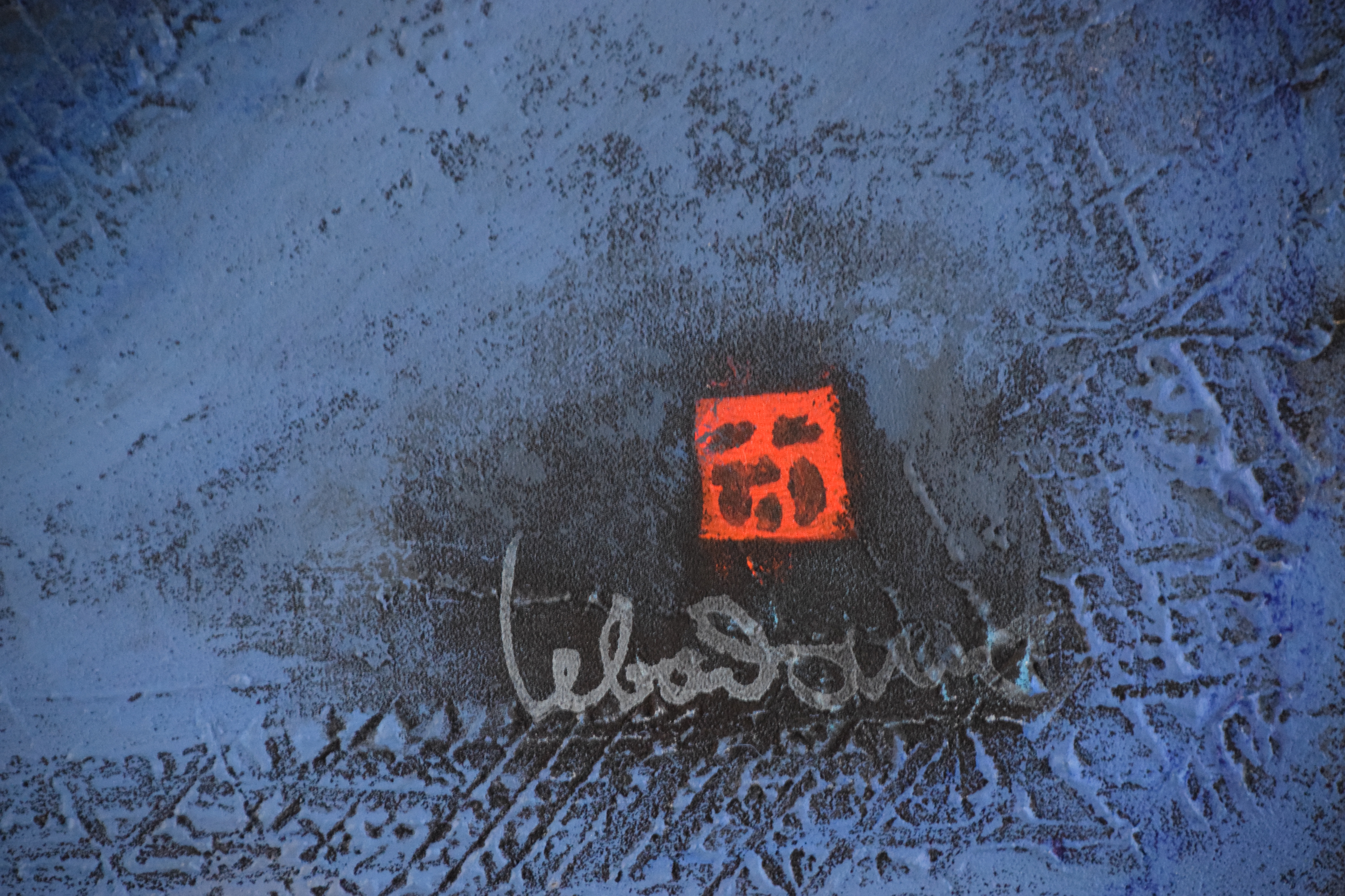 Signed (lower right) oil on canvas of a man in blue. Lebadang (1922 – 2015) was born in Viet Nam and worked in France. Lebadang was first represented in the United States, in 1966, with an exhibition of his paintings at the Cincinnati Art Museum. Dimensions: 28.5″ x 23.5″ Image size