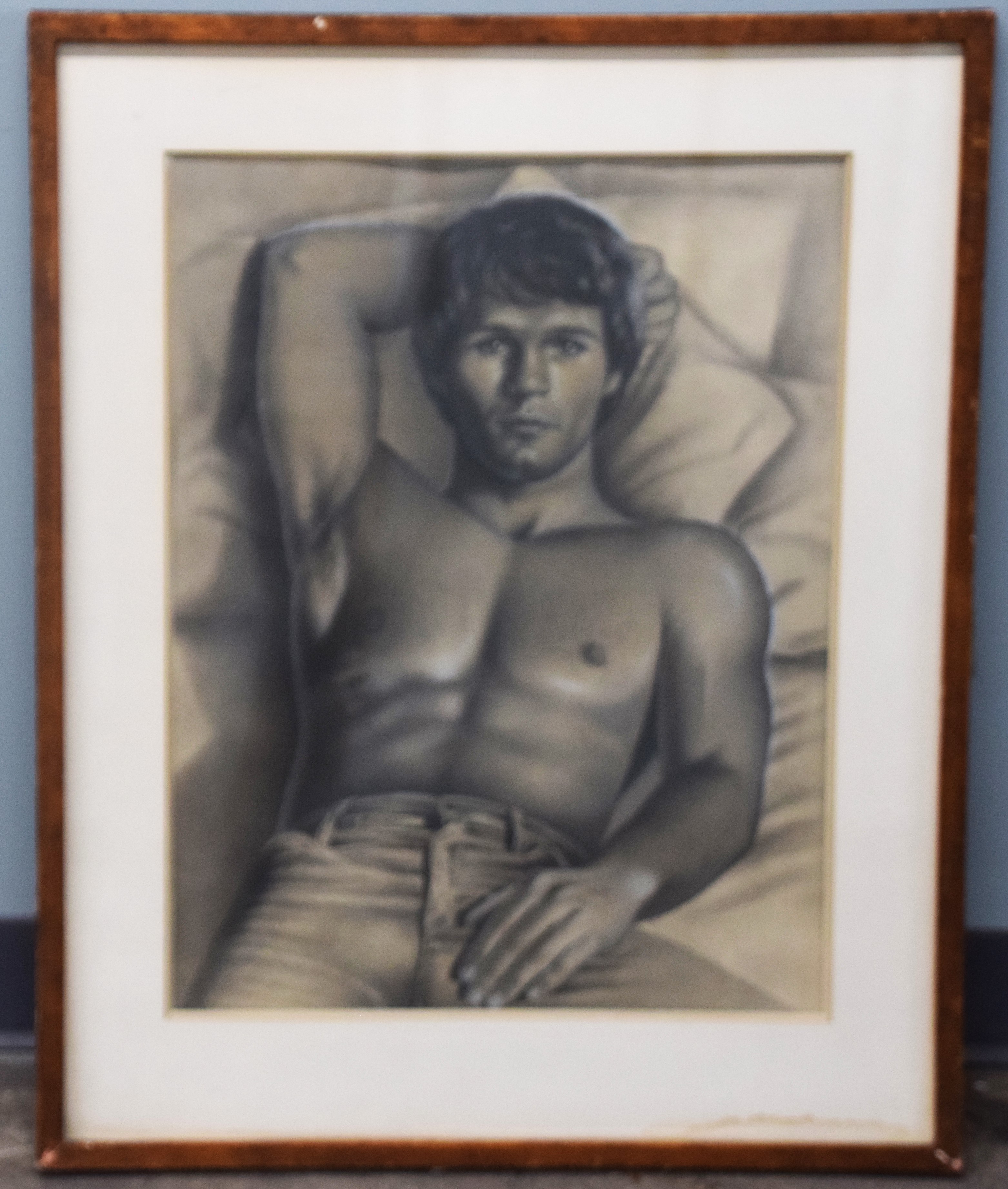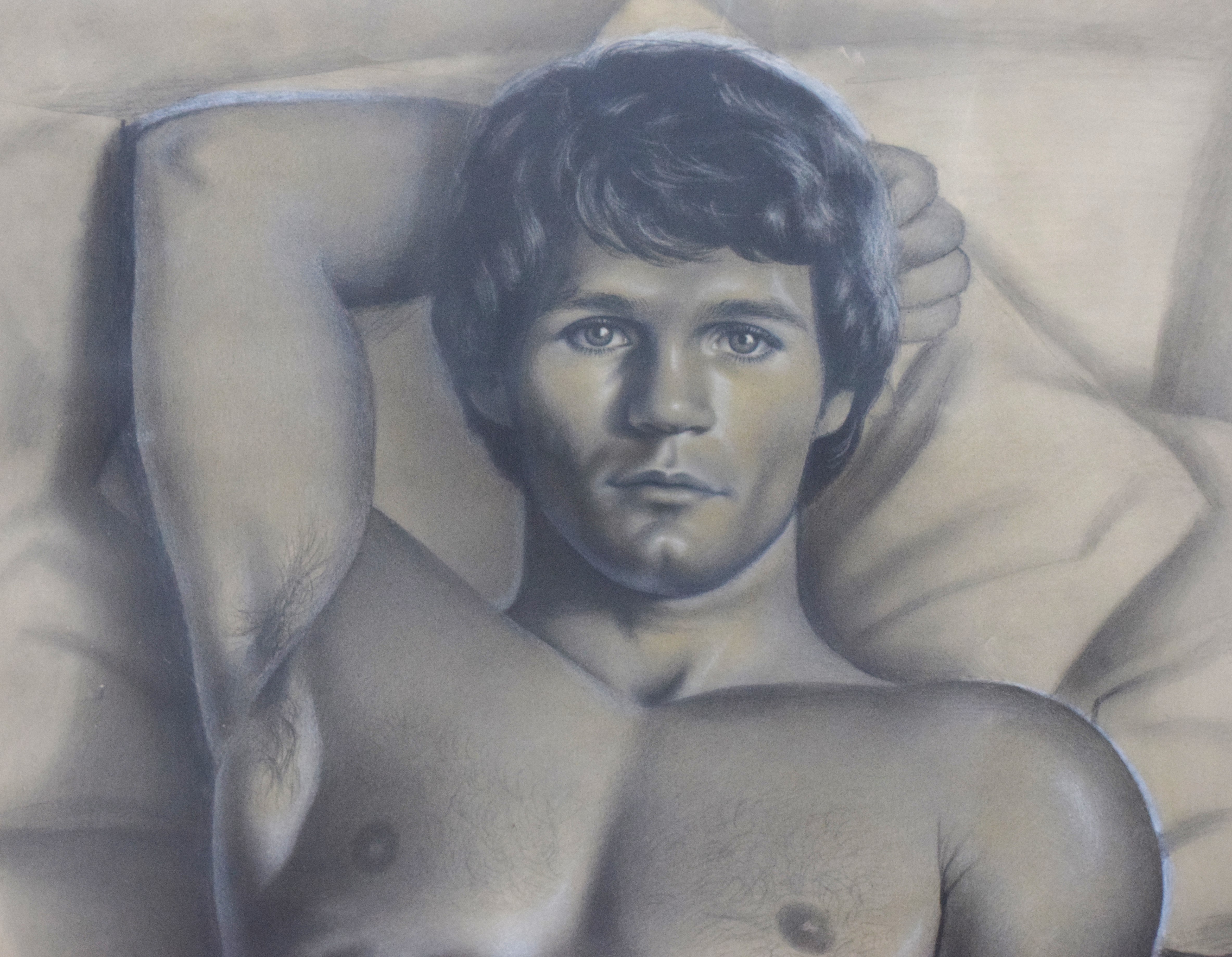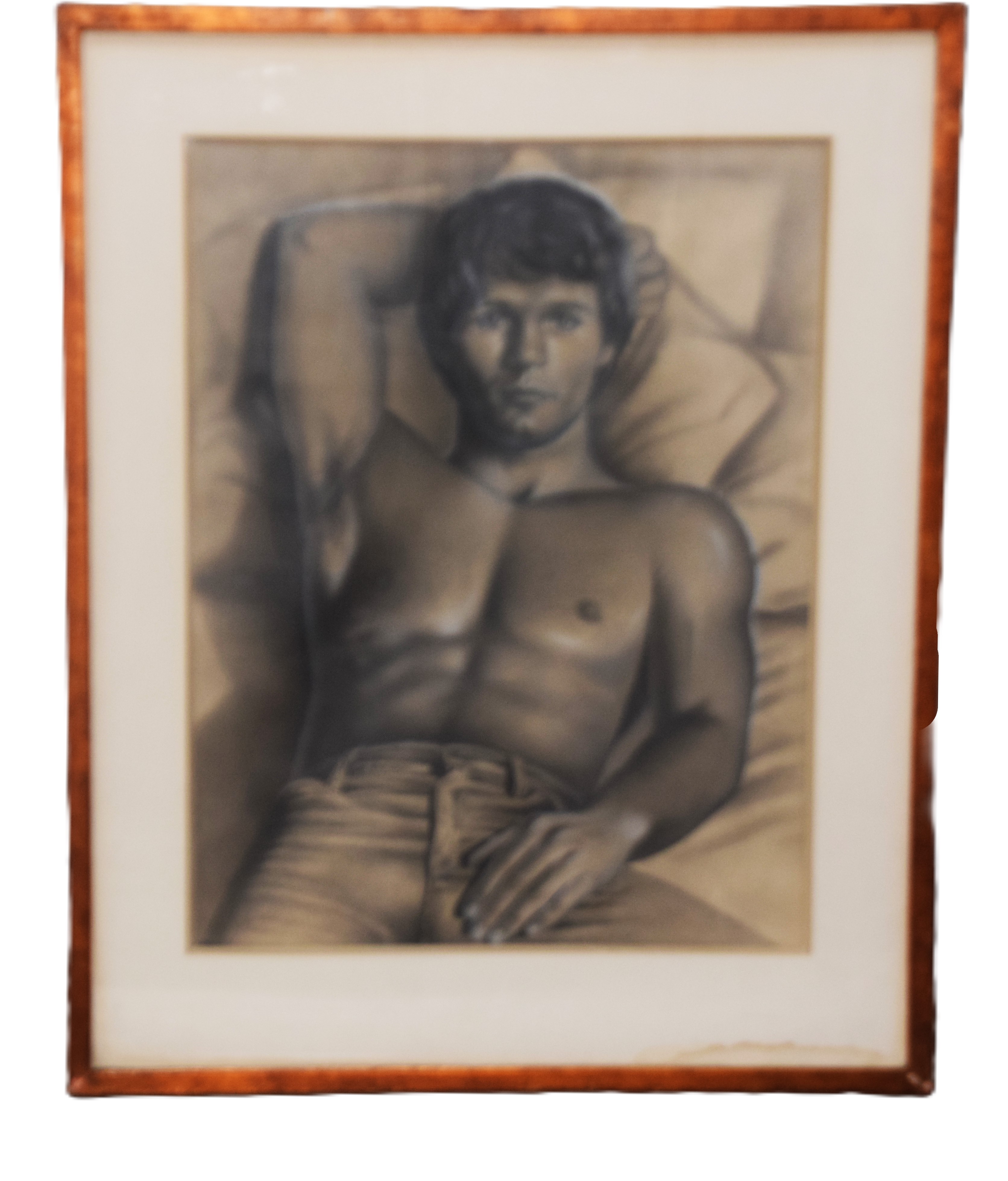 Graphite and chalk portrait of a male attributed to Paul Cadmus. Paul Cadmus (1904 – 1999) worked in Connecticut and is known for drawing nude figures. Dimensions: 23″ x 18″