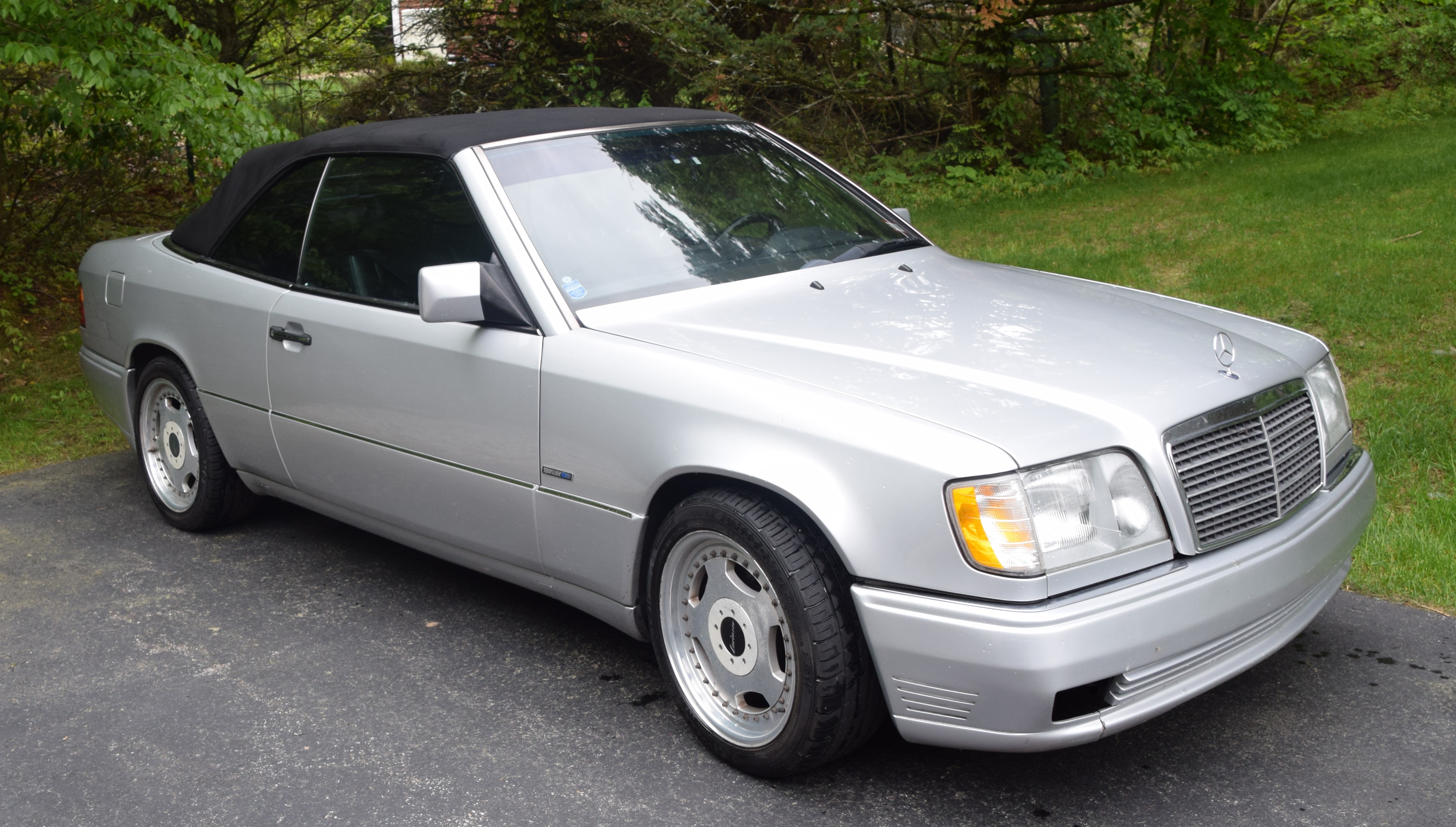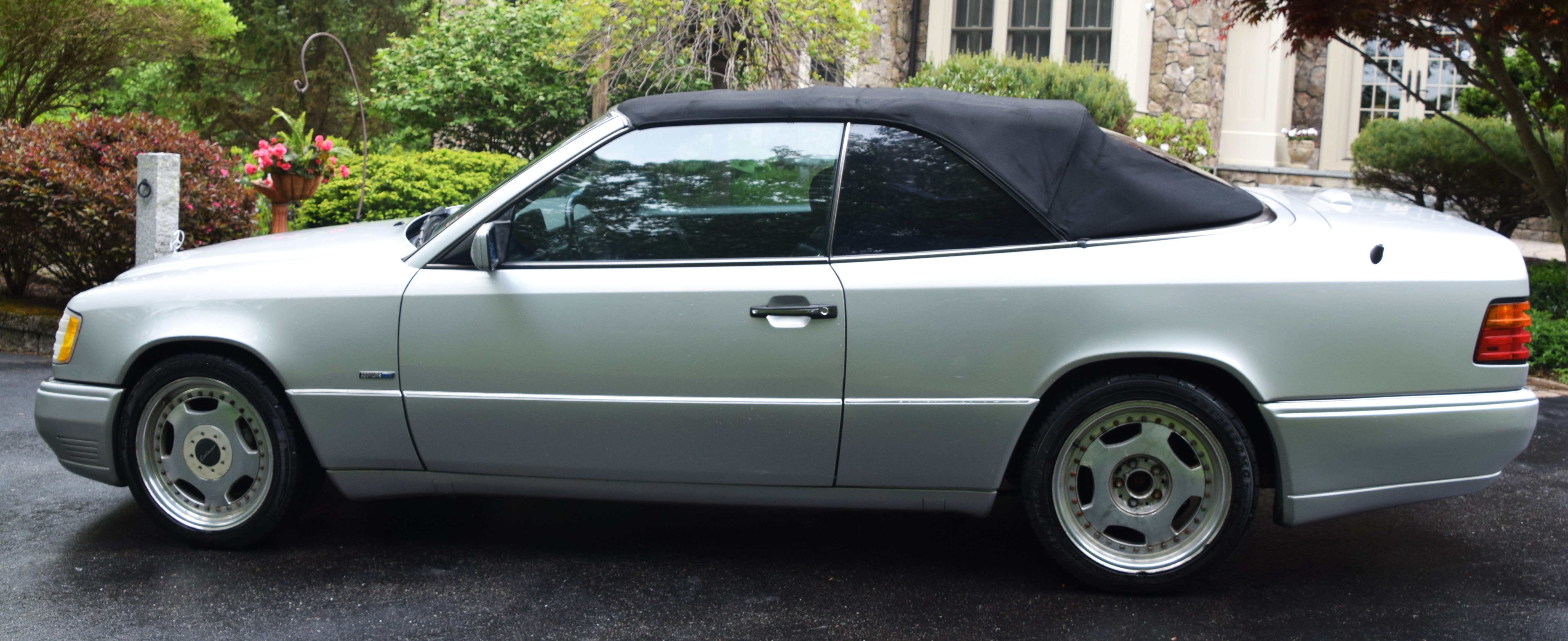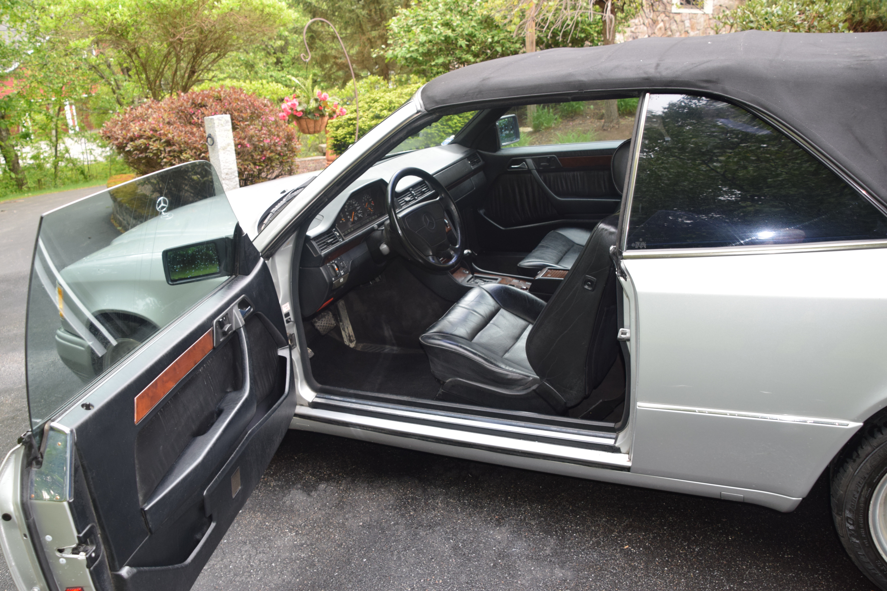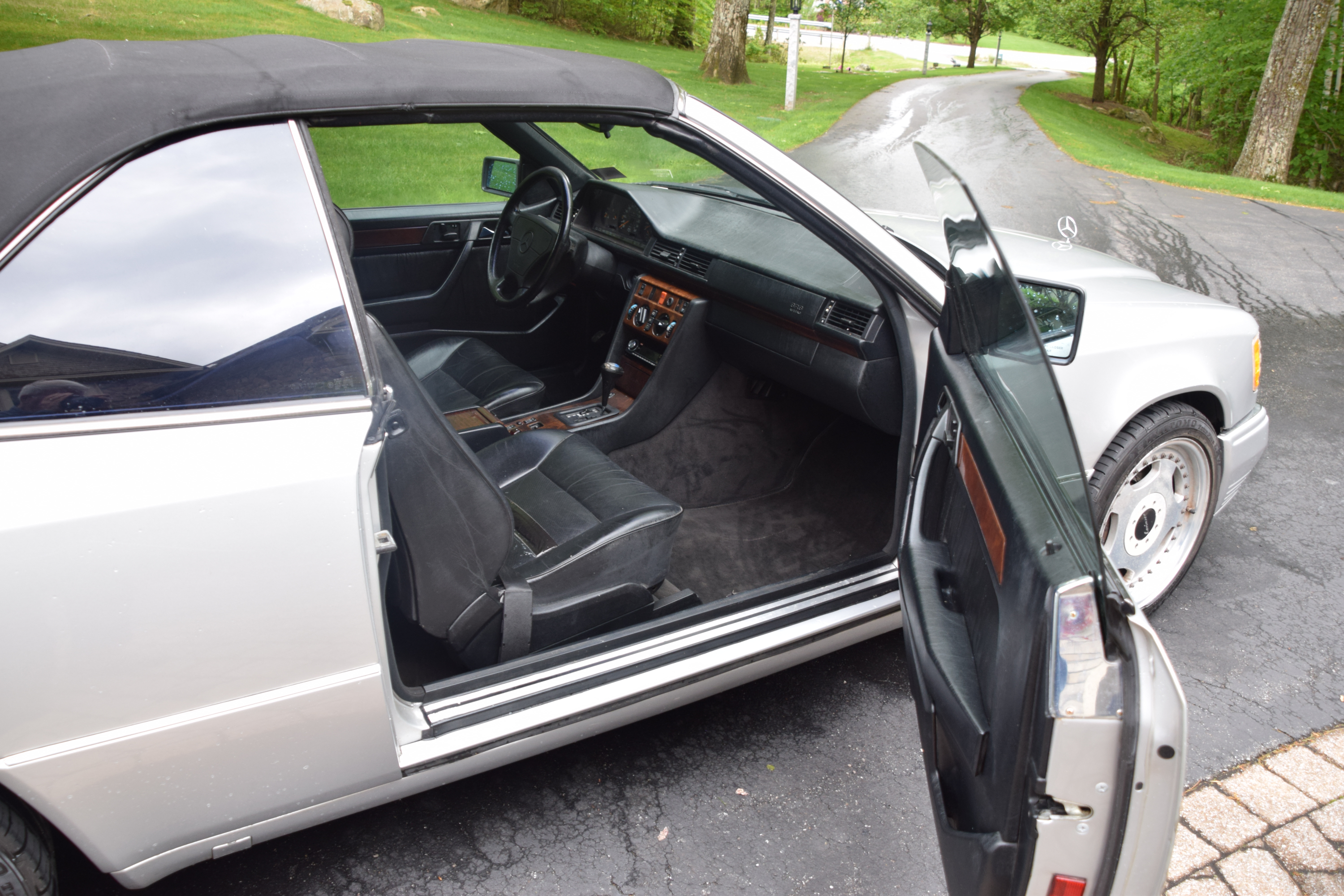 1994 Mercedes E class E320 convertible, silver with black bucket seats and black interior, alloy wheels, garaged, power seats, windows, tilt steering wheel. VIN: WDB1240661CO43685. Mileage: Just under 83,270 miles