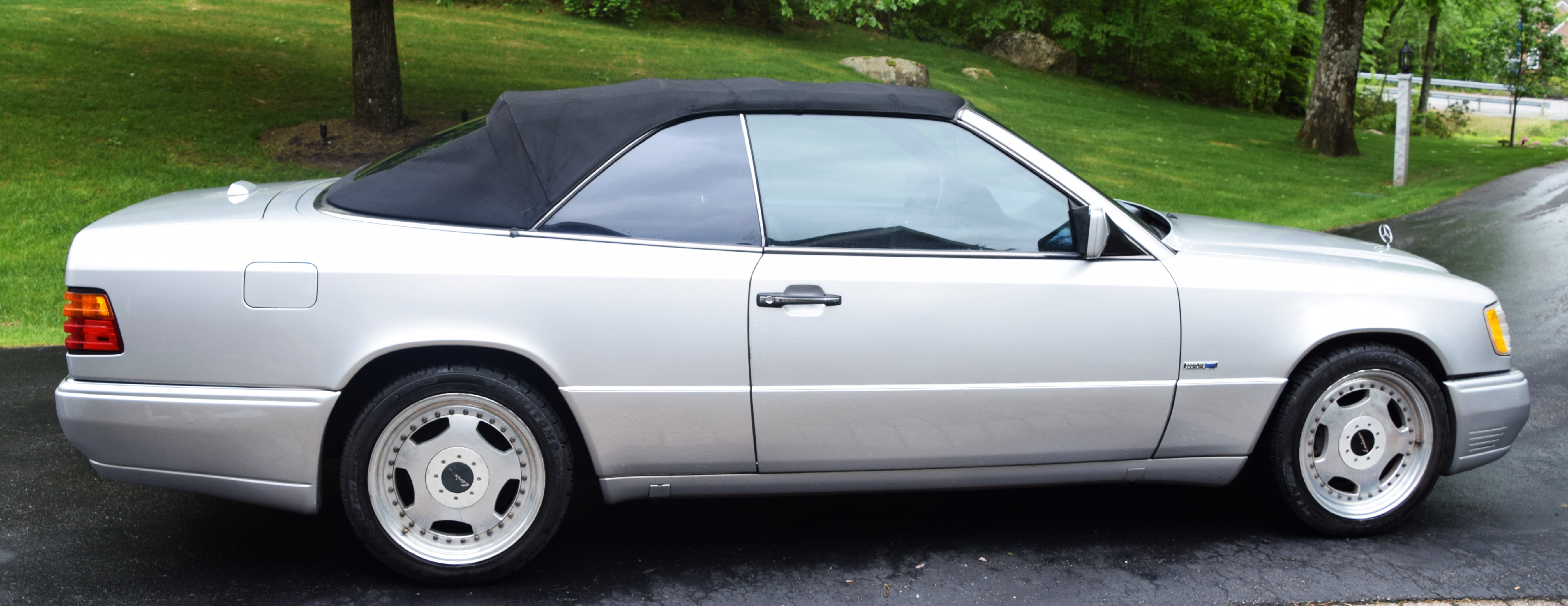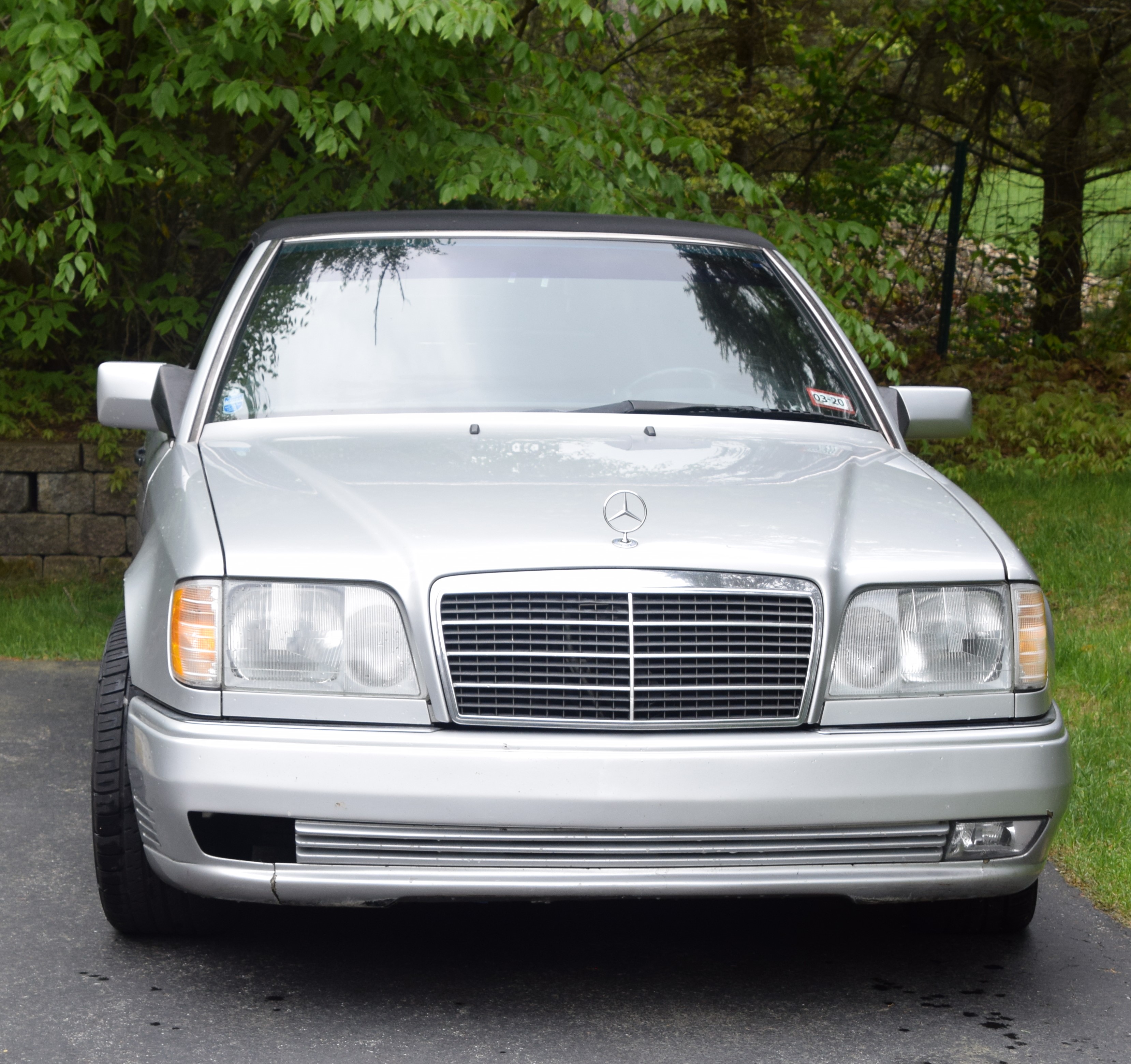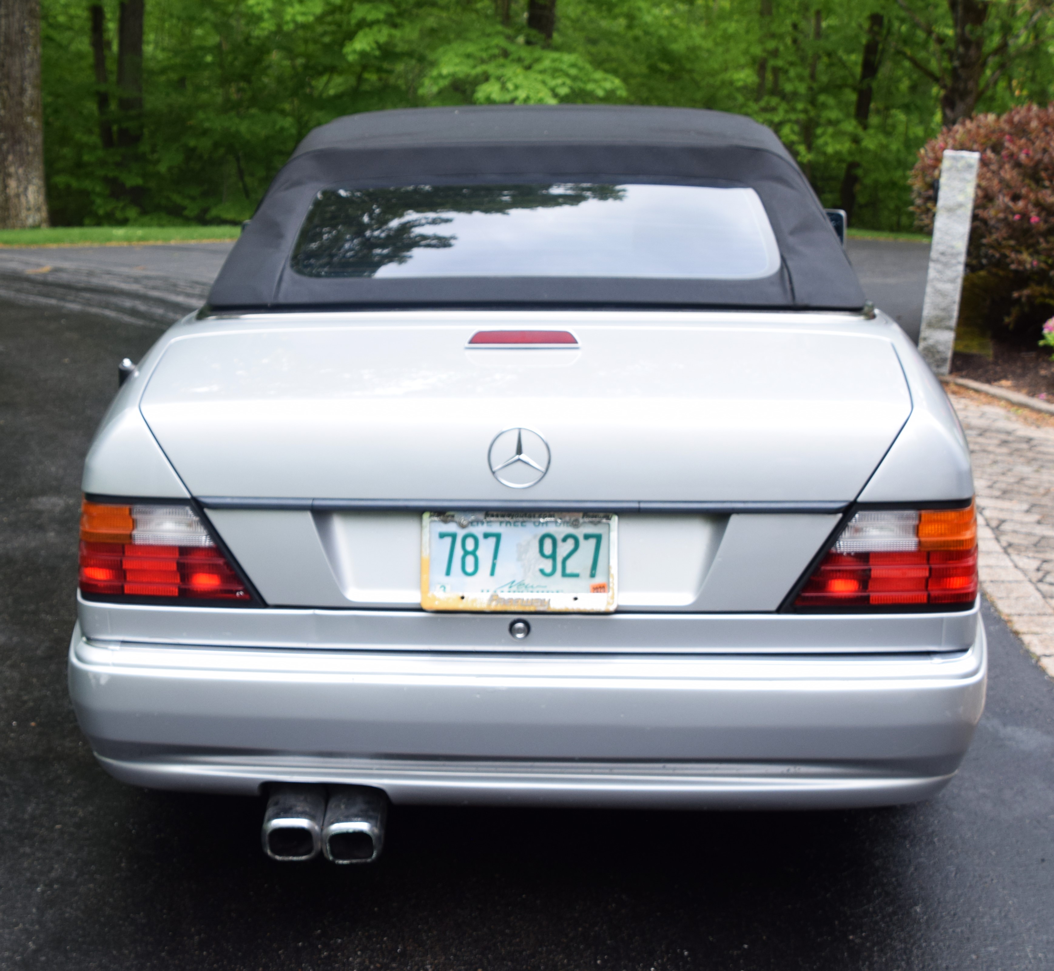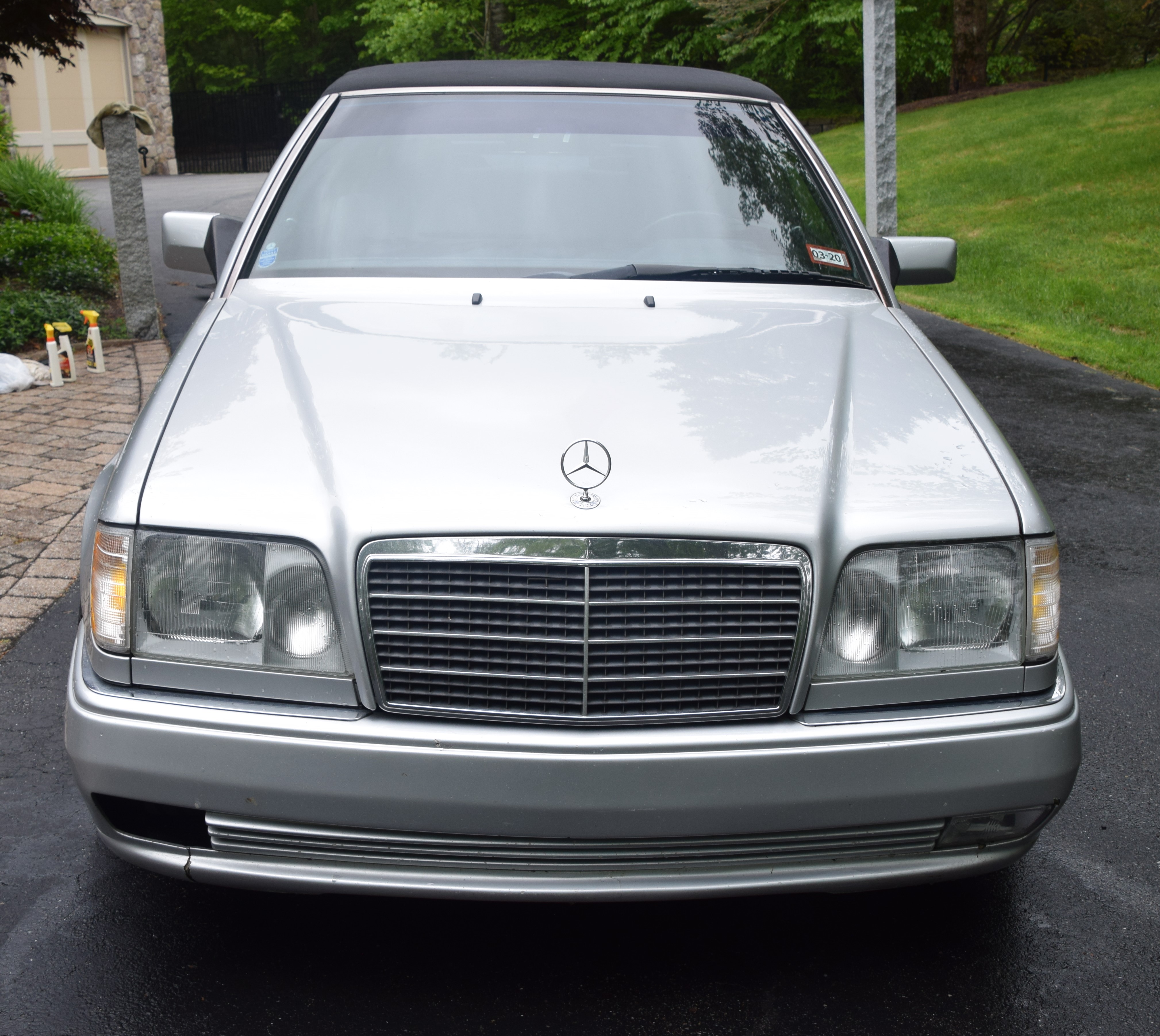 1994 Mercedes E class E320 convertible, silver with black bucket seats and black interior, alloy wheels, garaged, power seats, windows, tilt steering wheel. VIN: WDB1240661CO43685. Mileage: Just under 83,270 miles