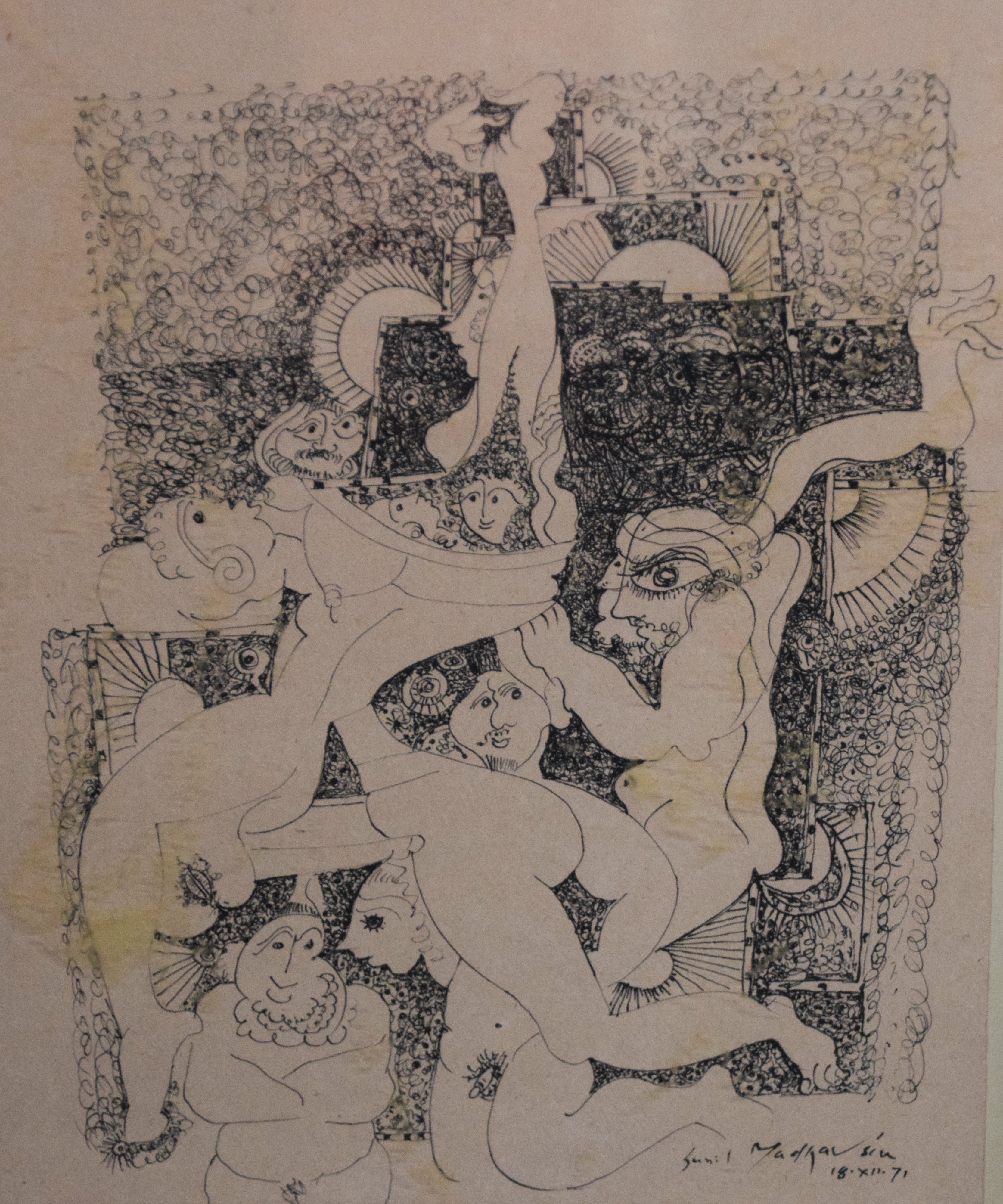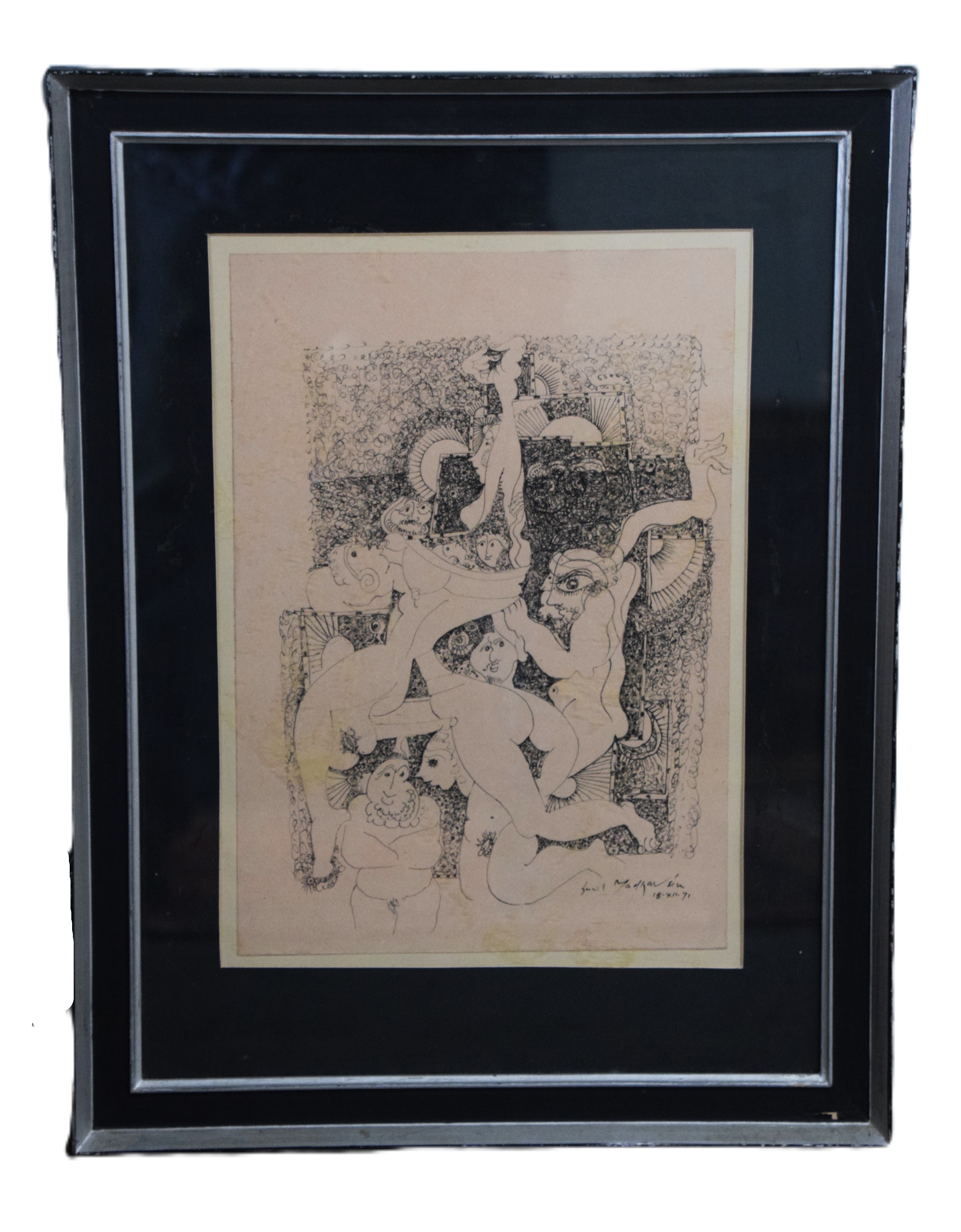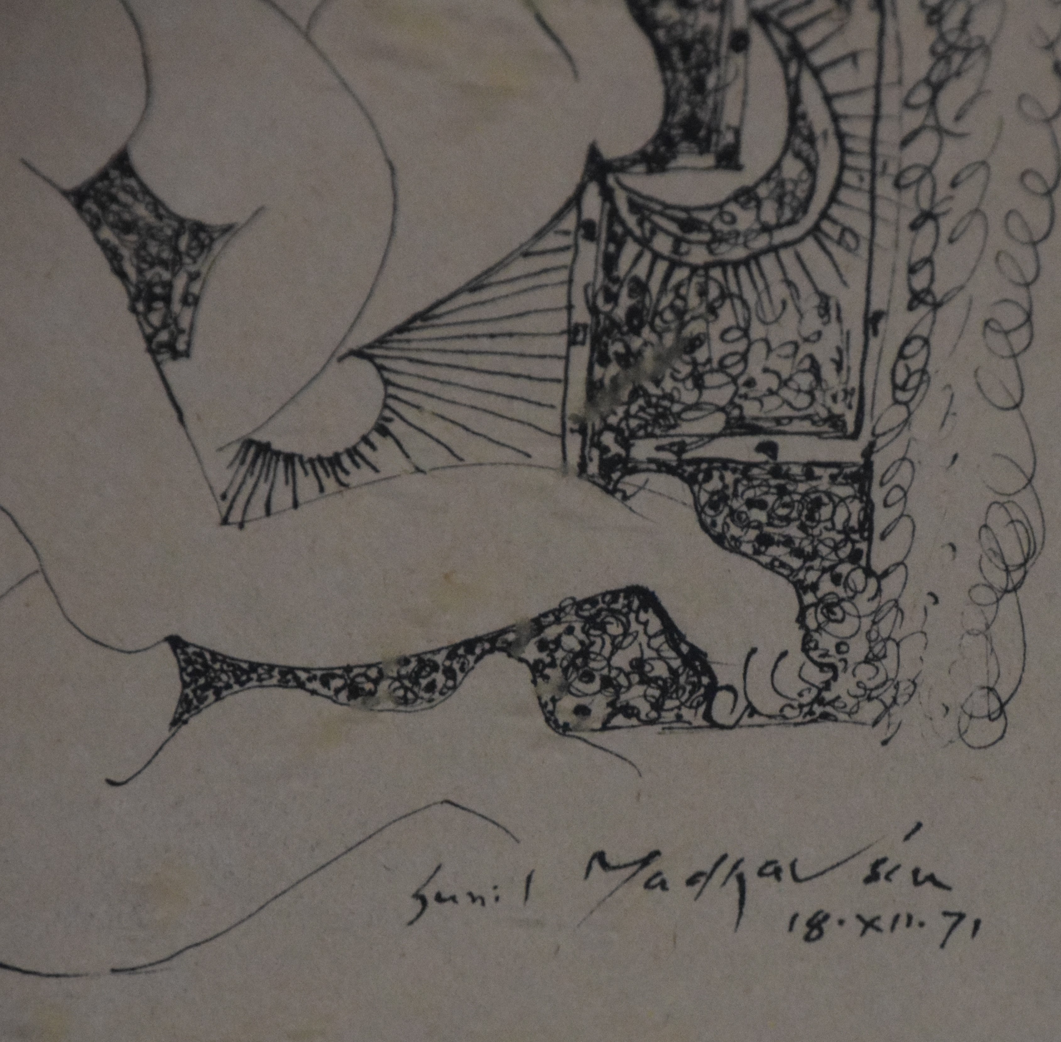 A study of nudes in ink on paper, signed LR and dated 1971. Sunil Madhav Sen (1910 – 1979) worked in India and is known for untitled nudes. Dimensions: 15″ x 10″