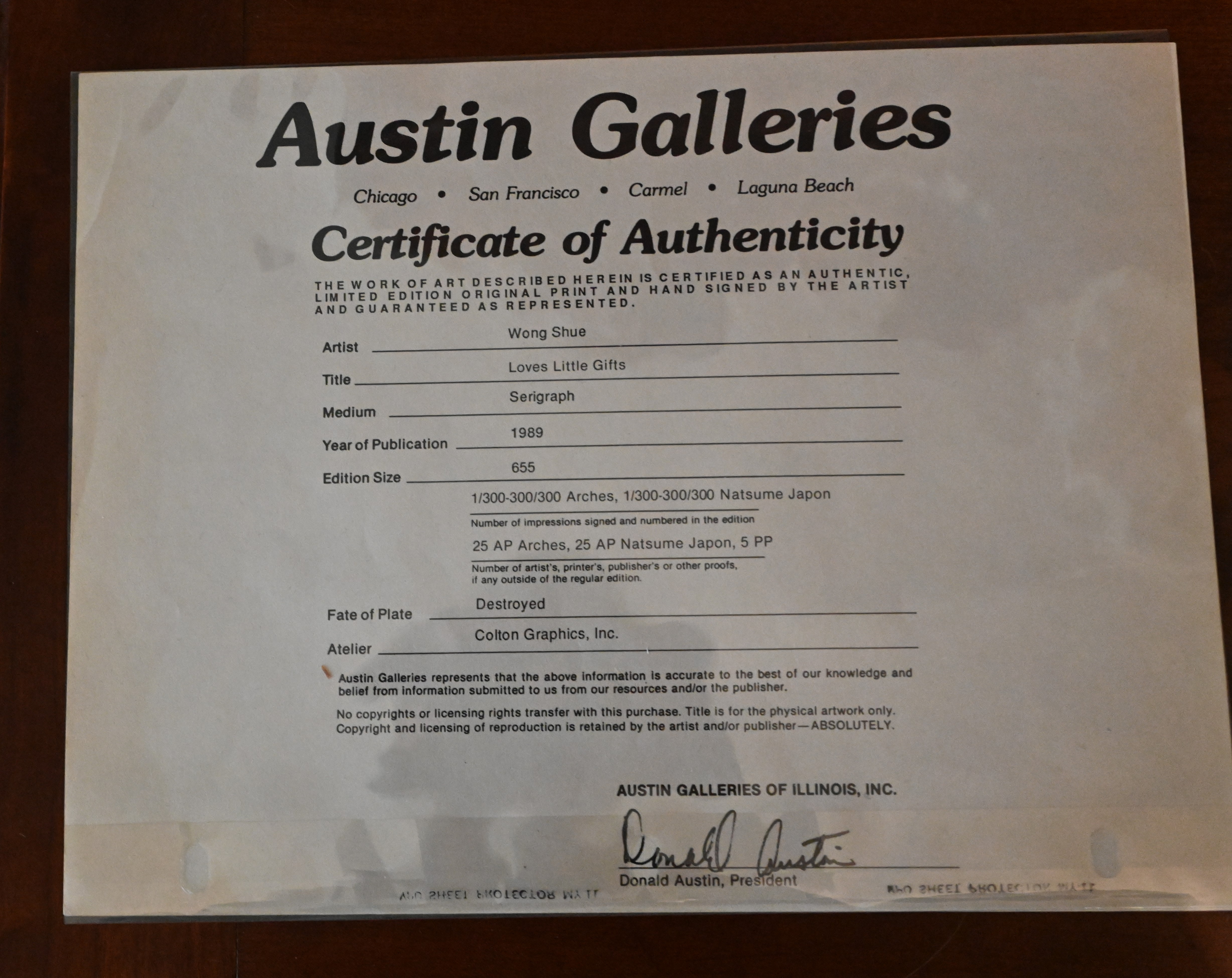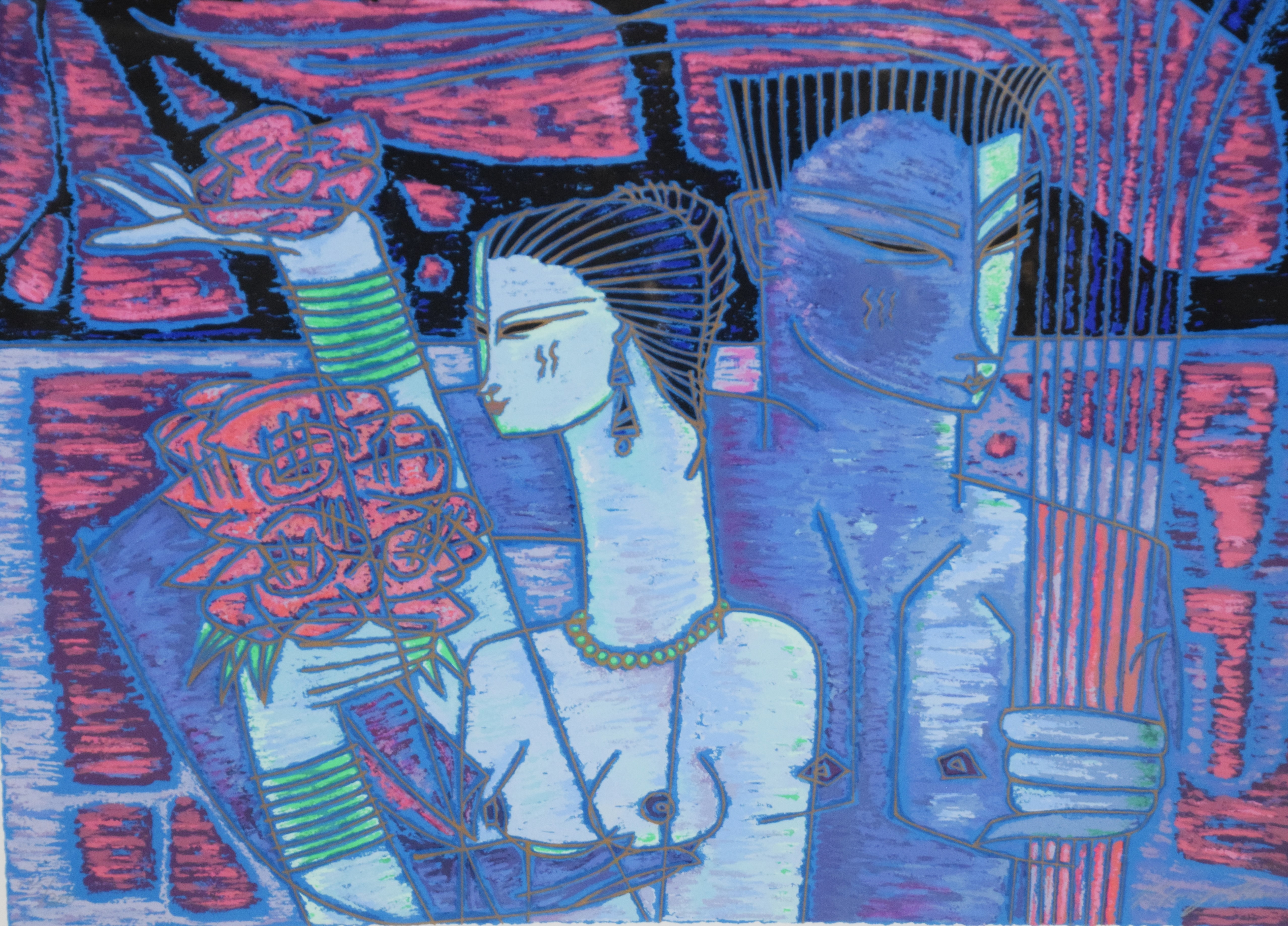 Wong Shue serigraph dated 1989 titled “Loves Little Girls” numbered 135/300. Adrian Wong Shue (1952-2023) was a world-renowned mixed-race (Chinese/Jamaican) artist known for his ability to create meaningful art that showcased the unique fusion of influences from his diverse heritage, training, and life experiences. Dimensions: 19″ x 25″ Image size, 34″ x 39″ Overall