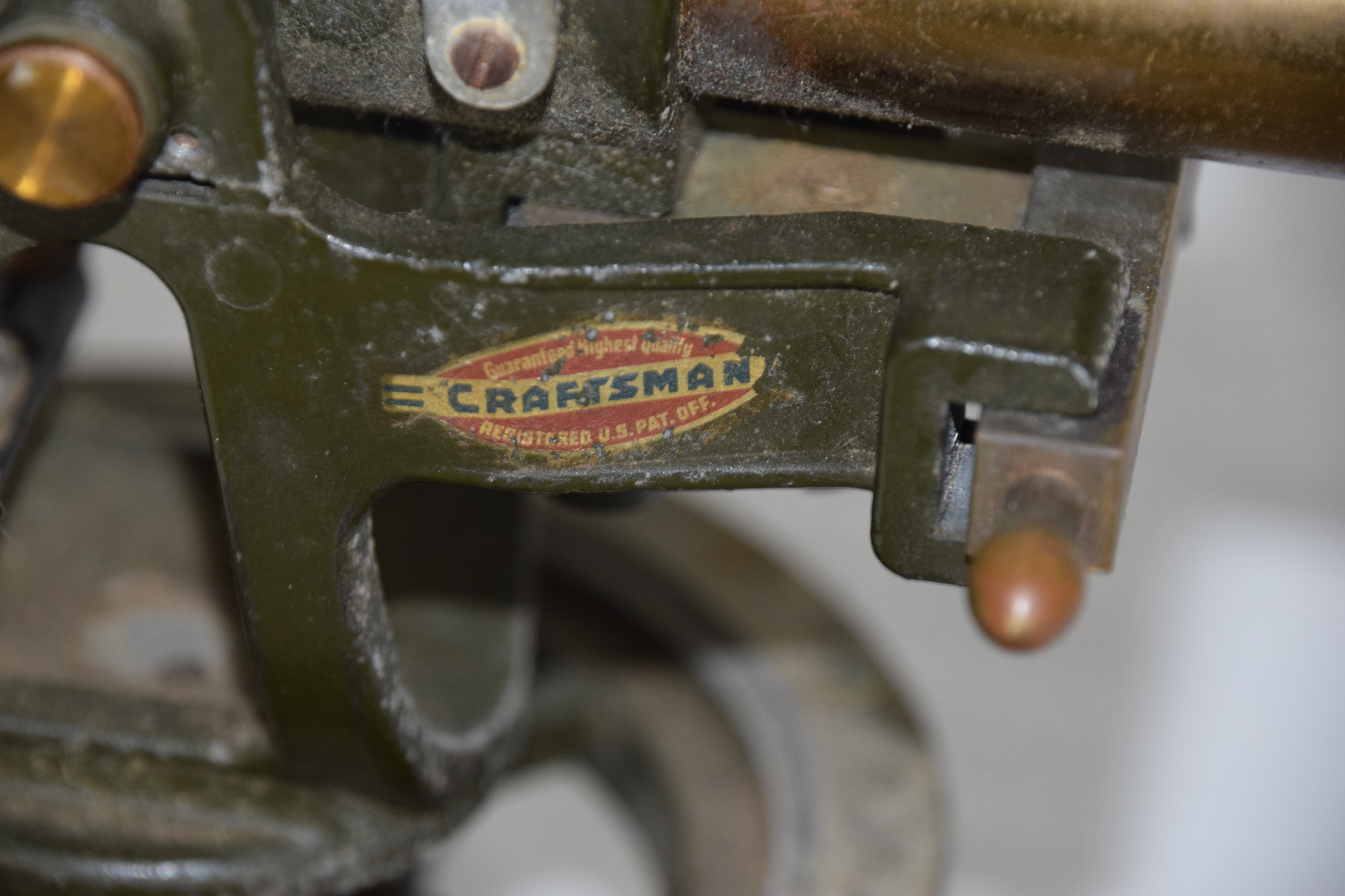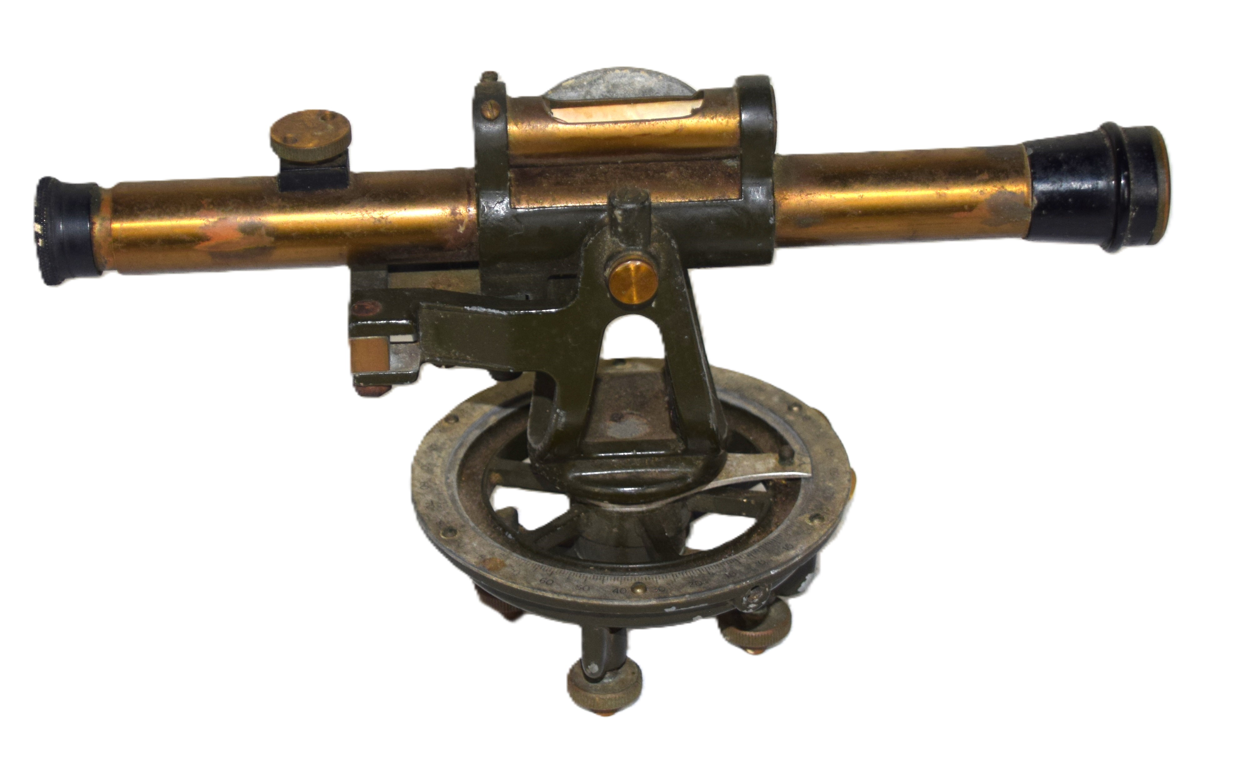 Brass and iron surveyor’s transit with Craftsman label. Dimensions: 7″ H x 10.5″ W