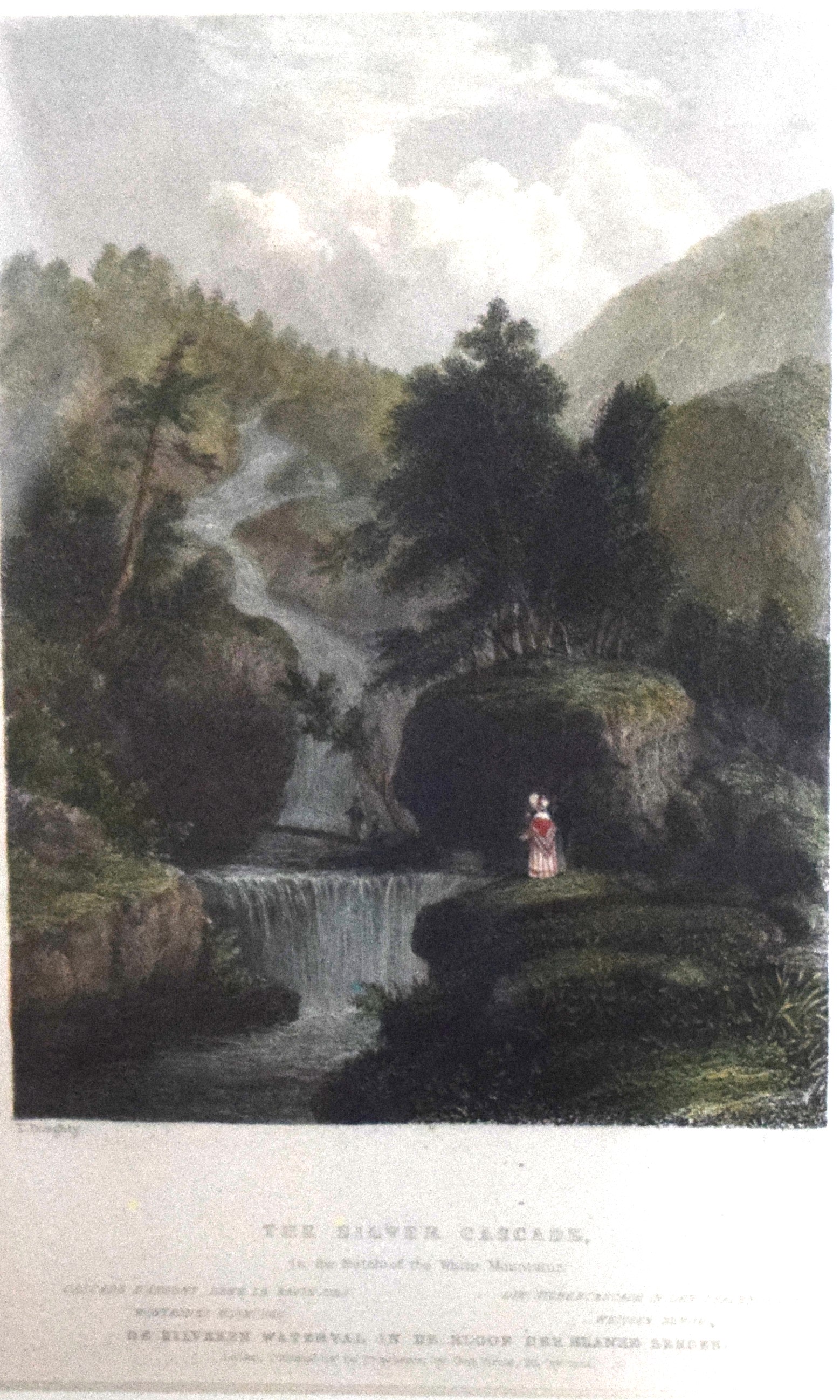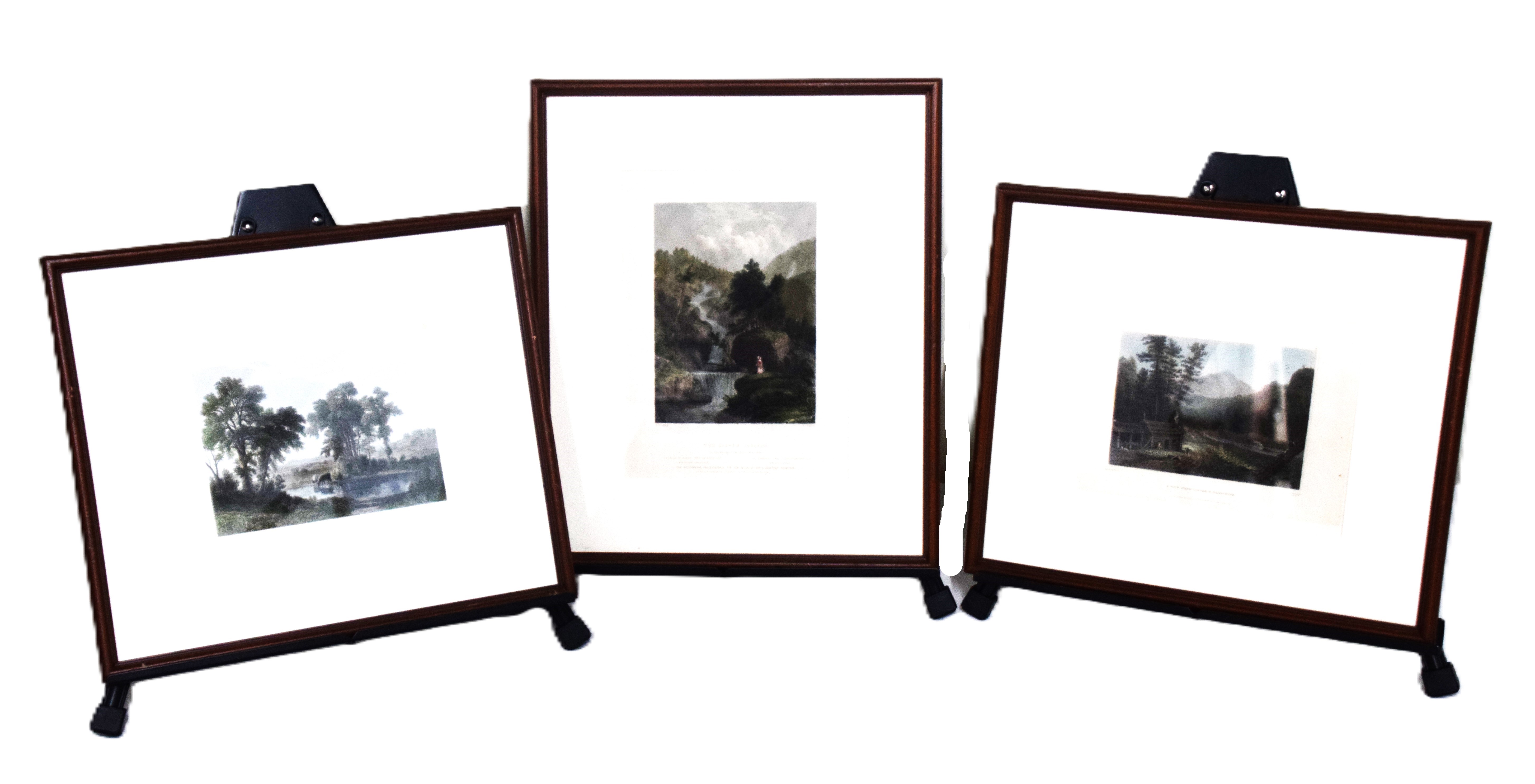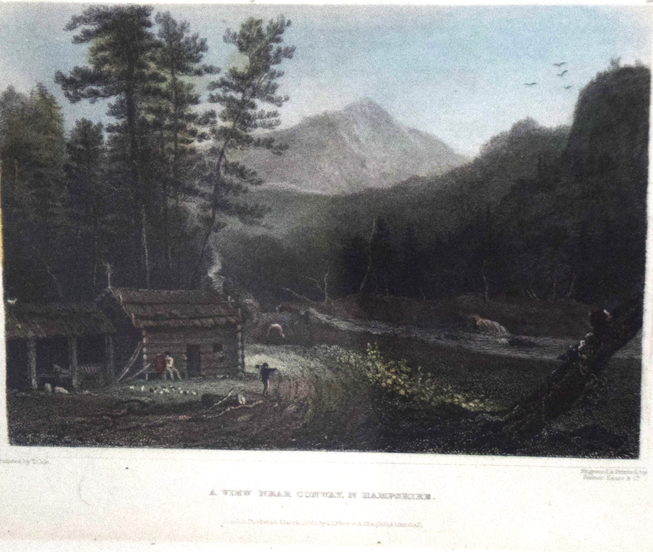 Three New Hampshire prints “The Silver Cascade” by T. Doughty (9.5″ x 7″), “A Glimpse of New Hampshire” by Asher B. Durand (6″ x 8″) and “A View Near Conway” by Thomas Cole (6.5″ x 8″) all nicely framed