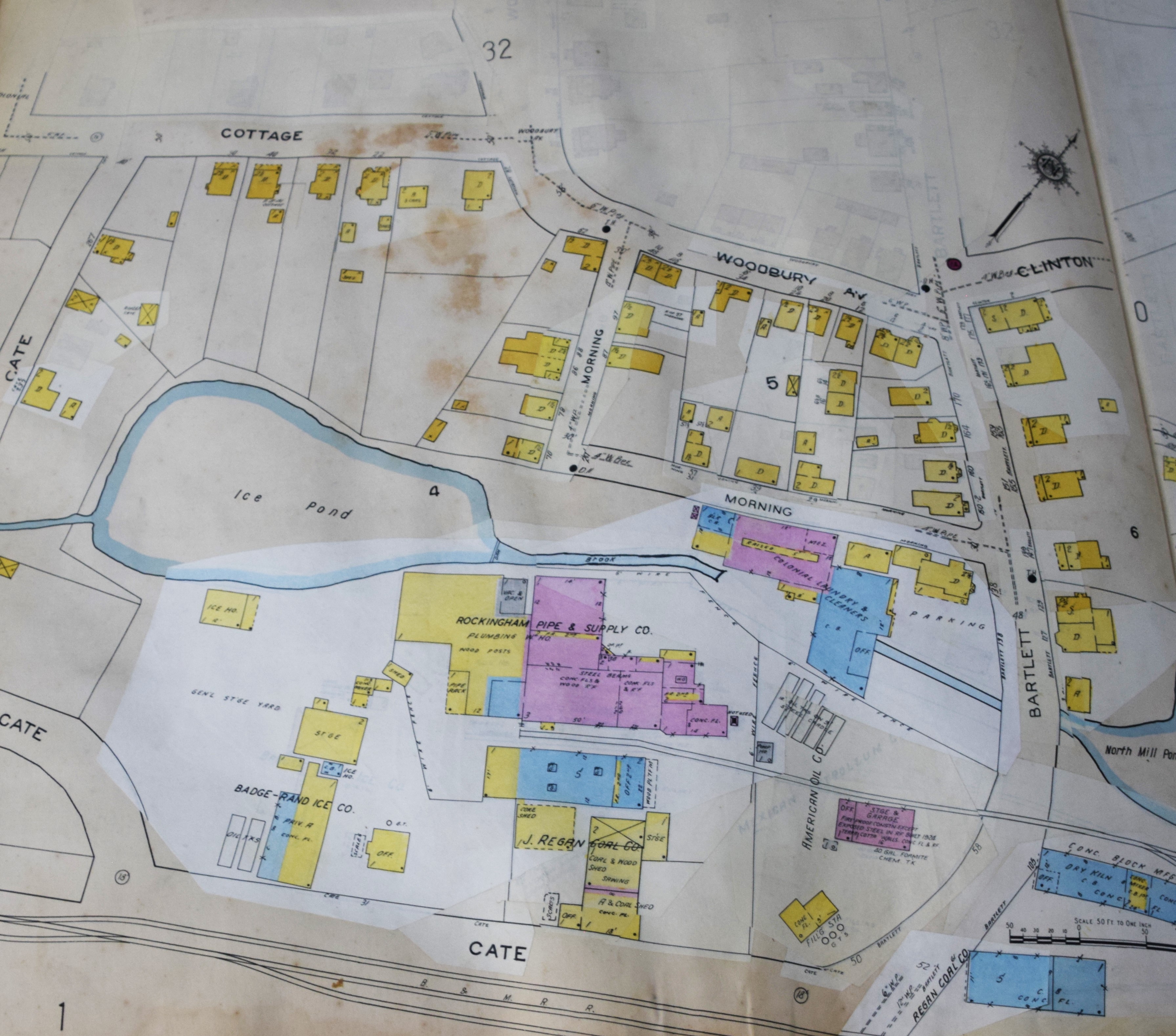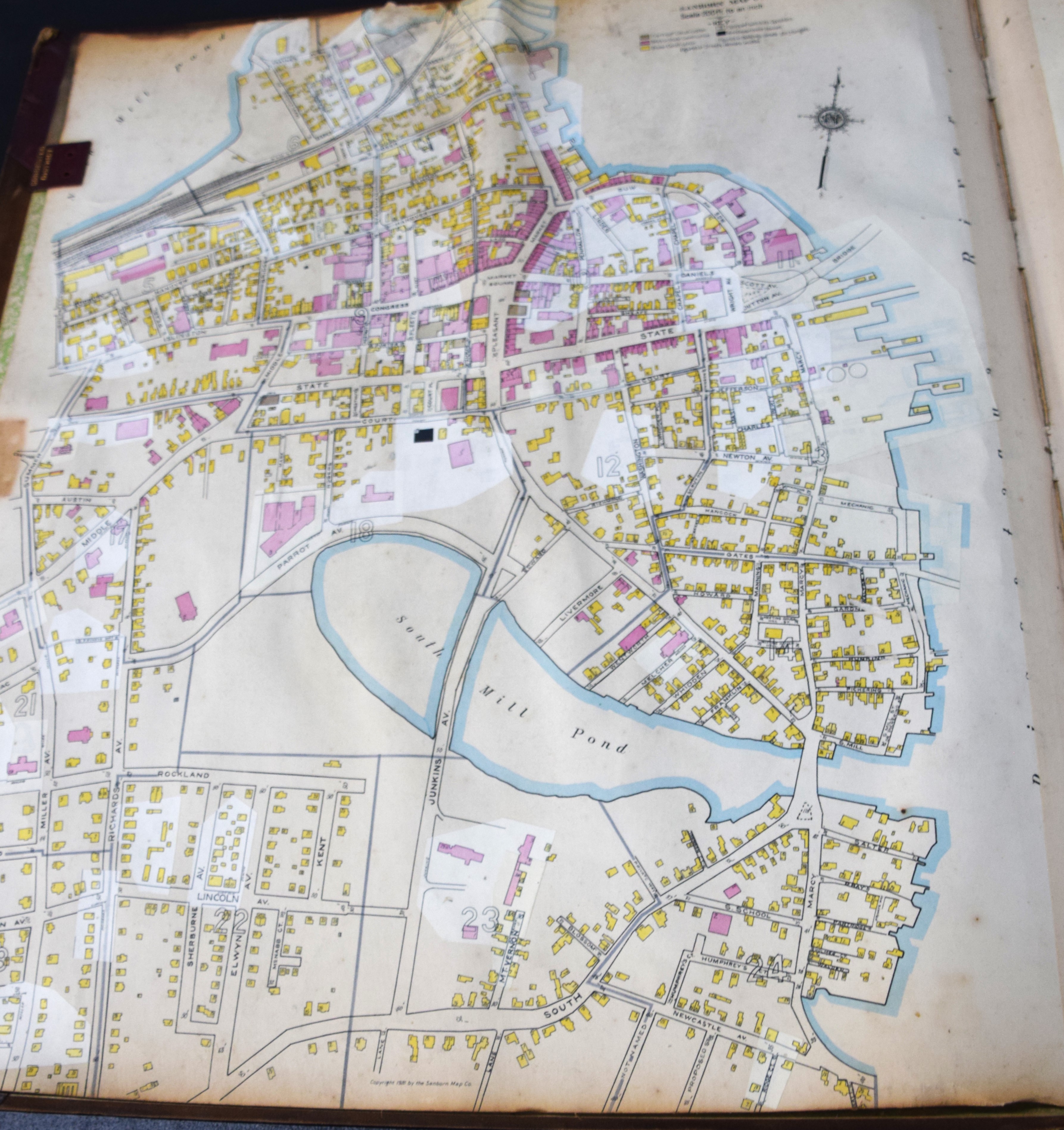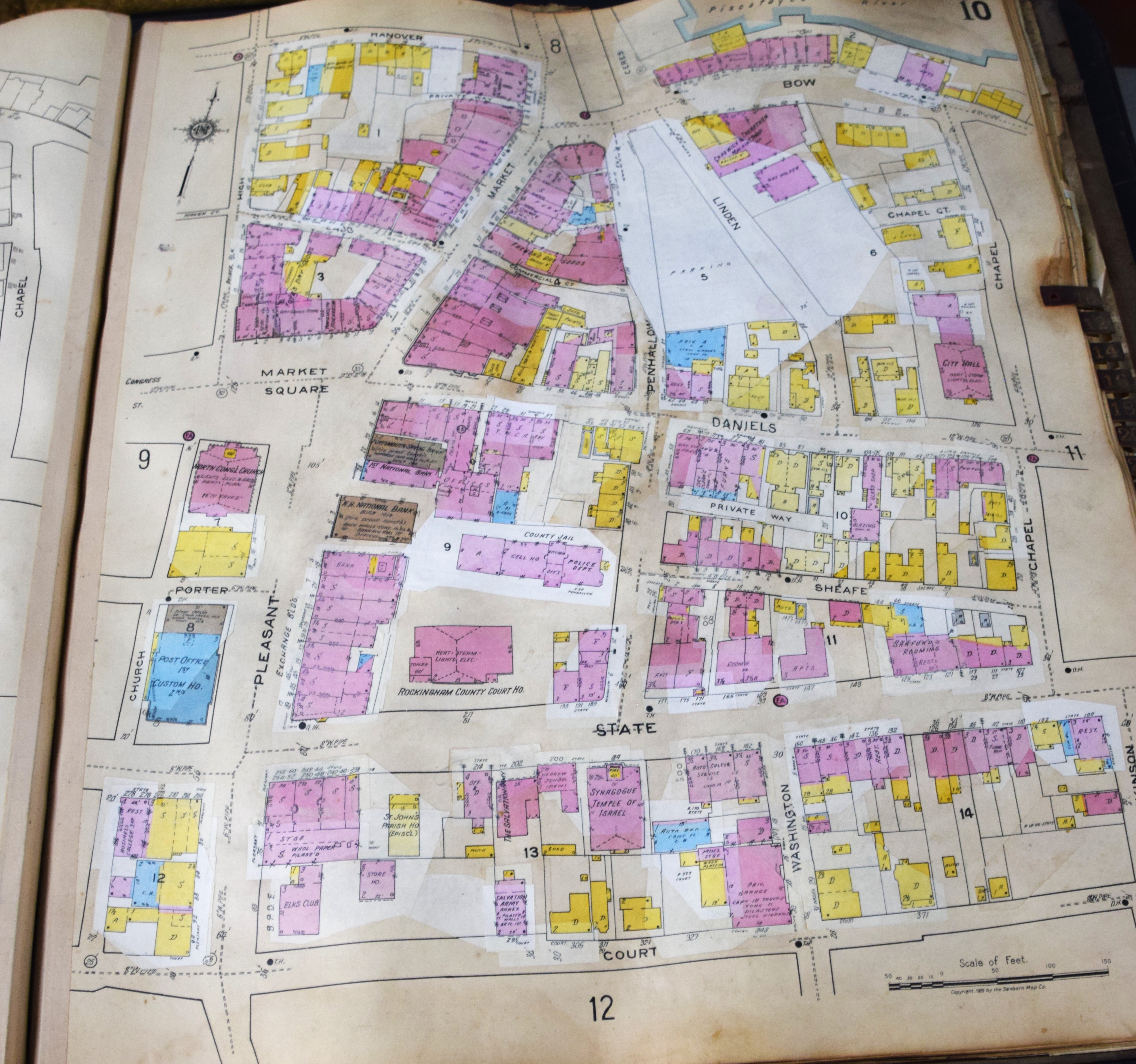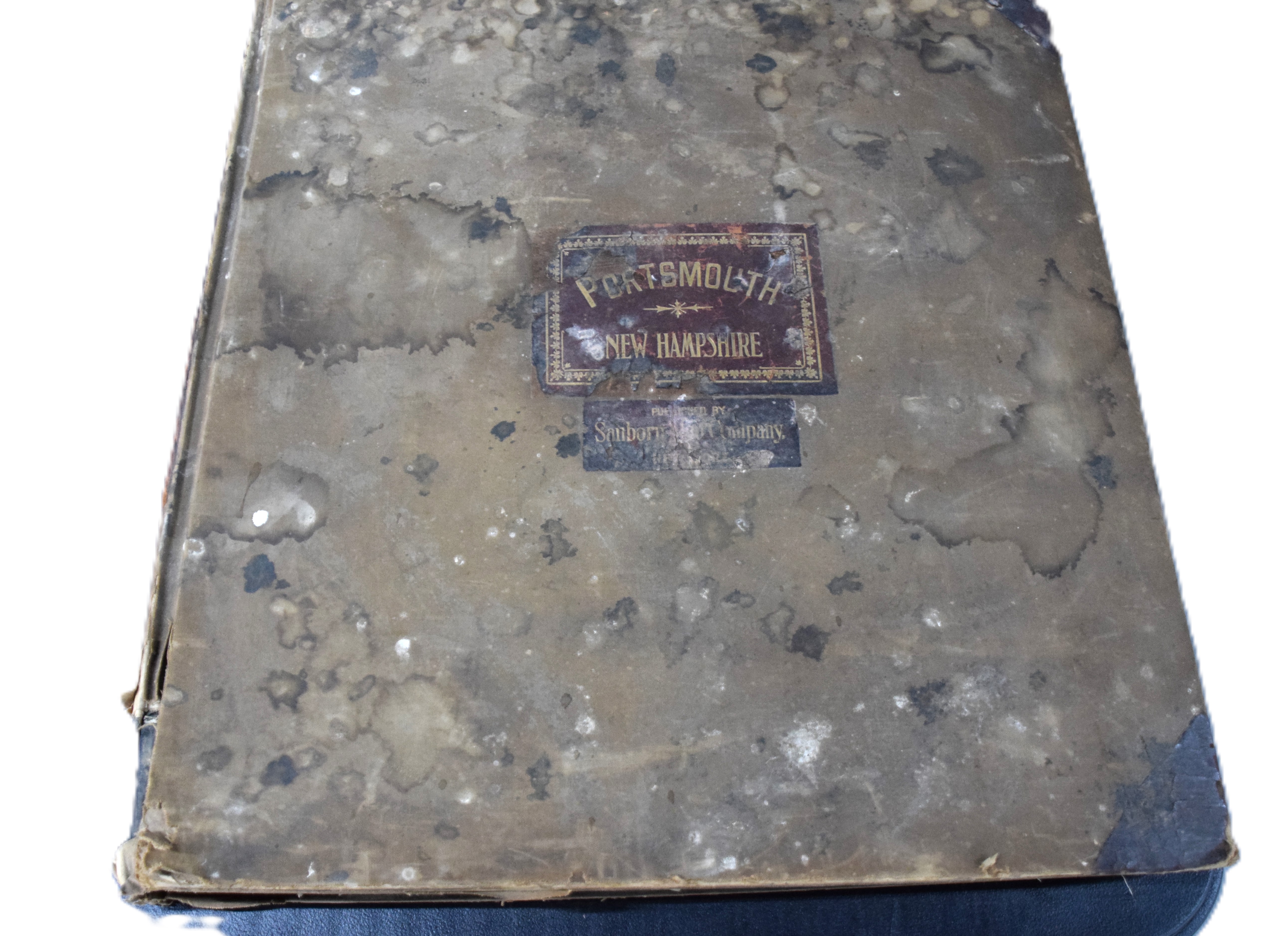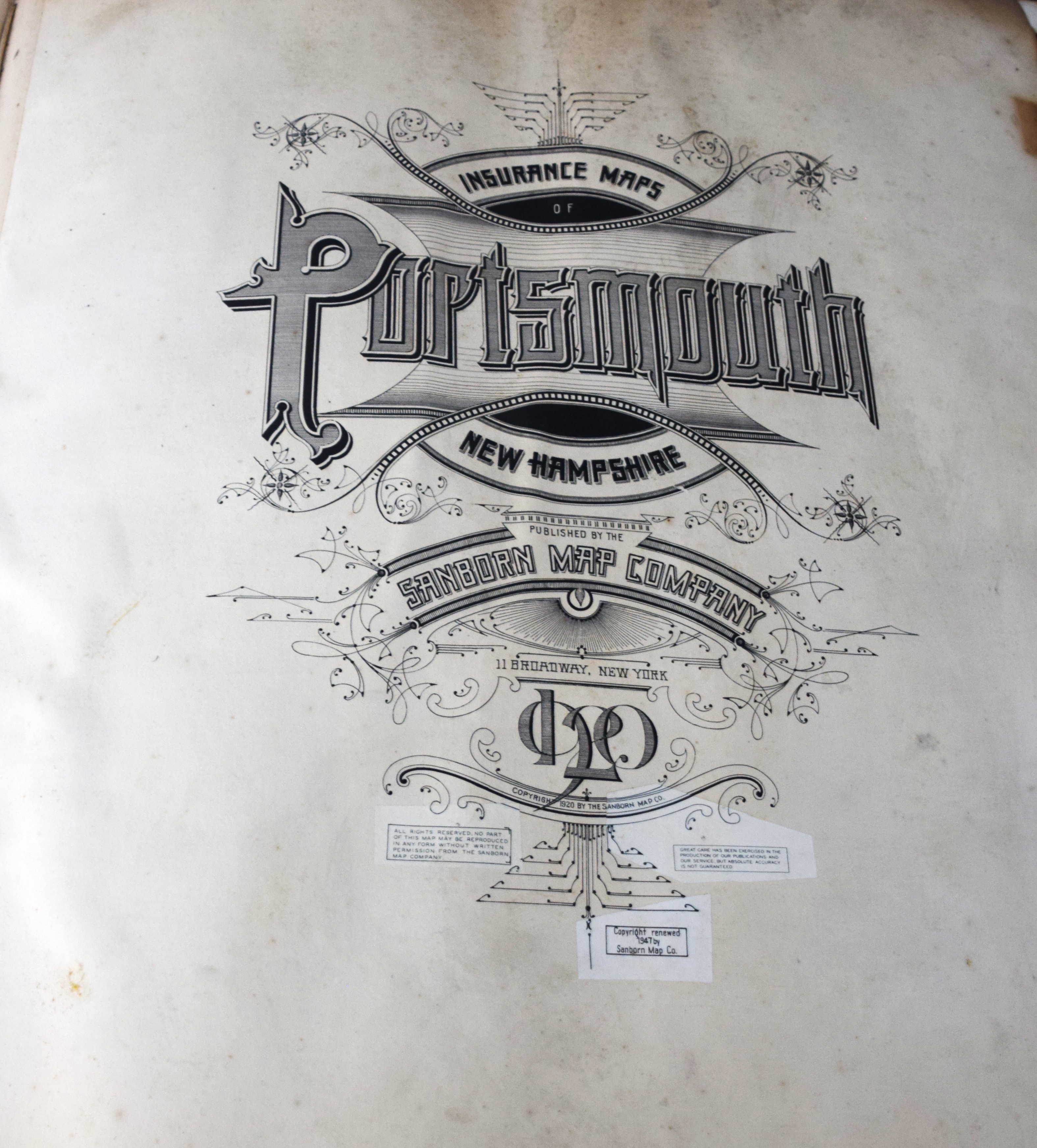 Portsmouth Insurance atlas with 54 colored street maps published by the Sanborn Map Company, NY, 1920. Dimensions: 25.5″ x 23″