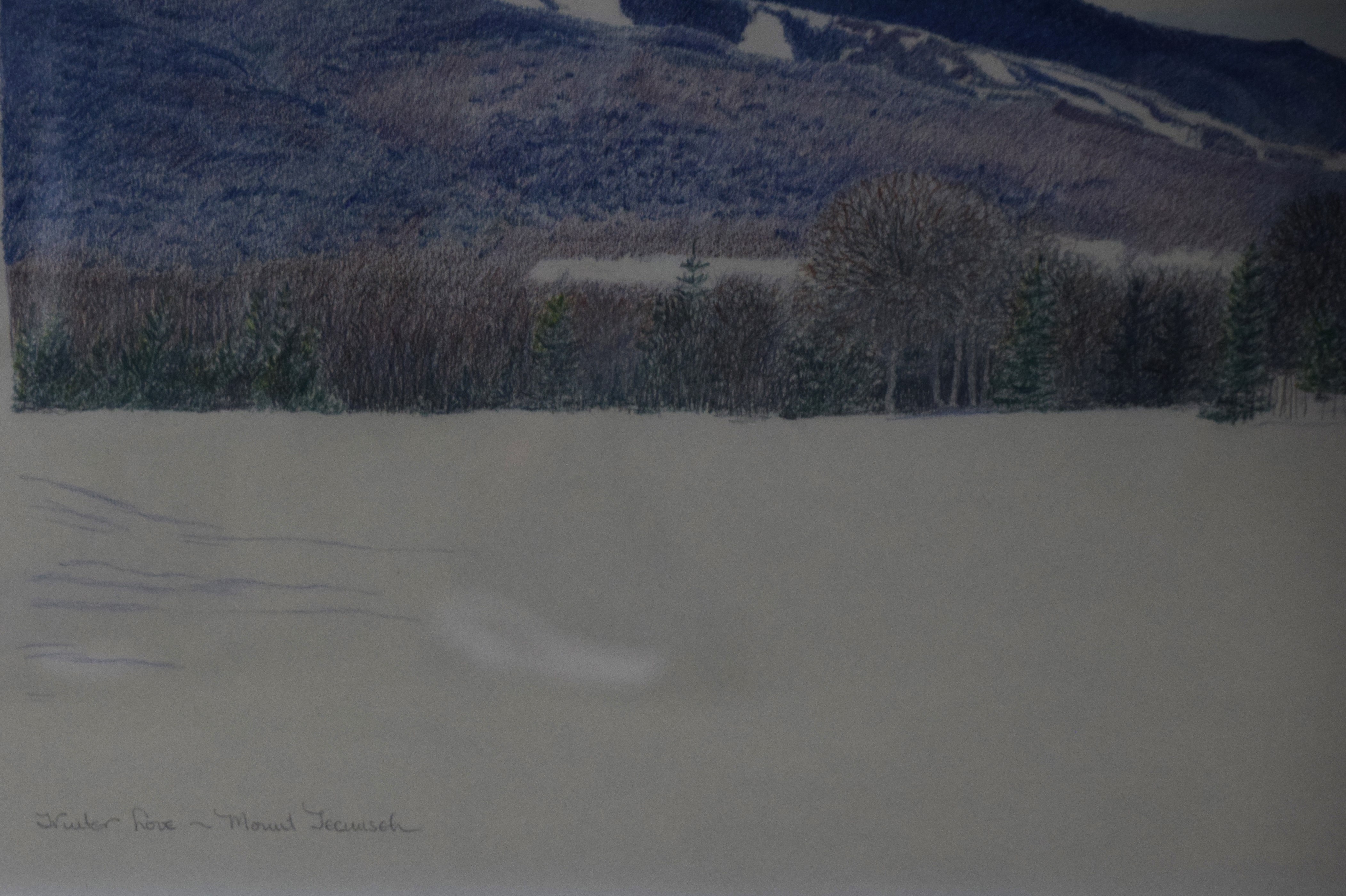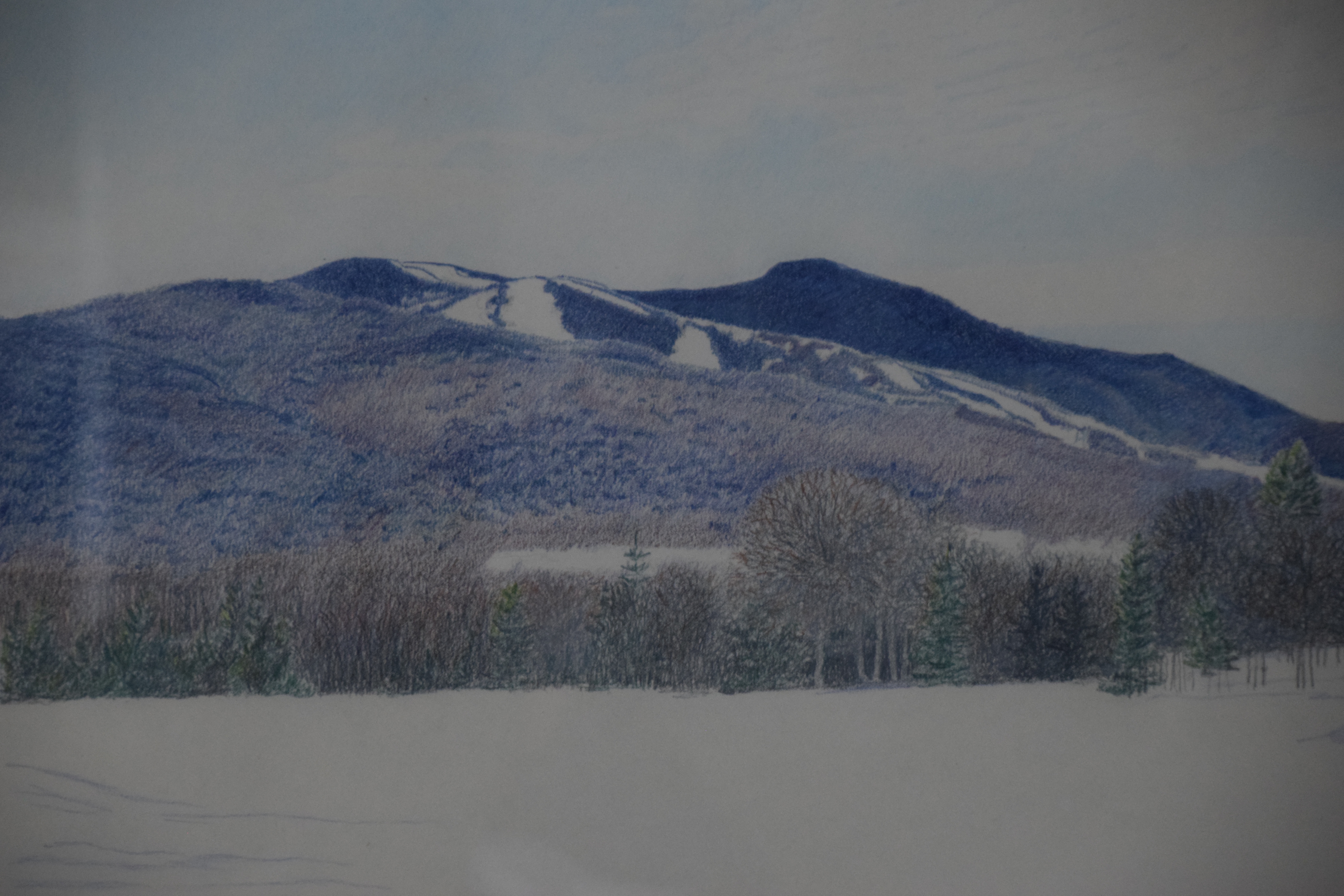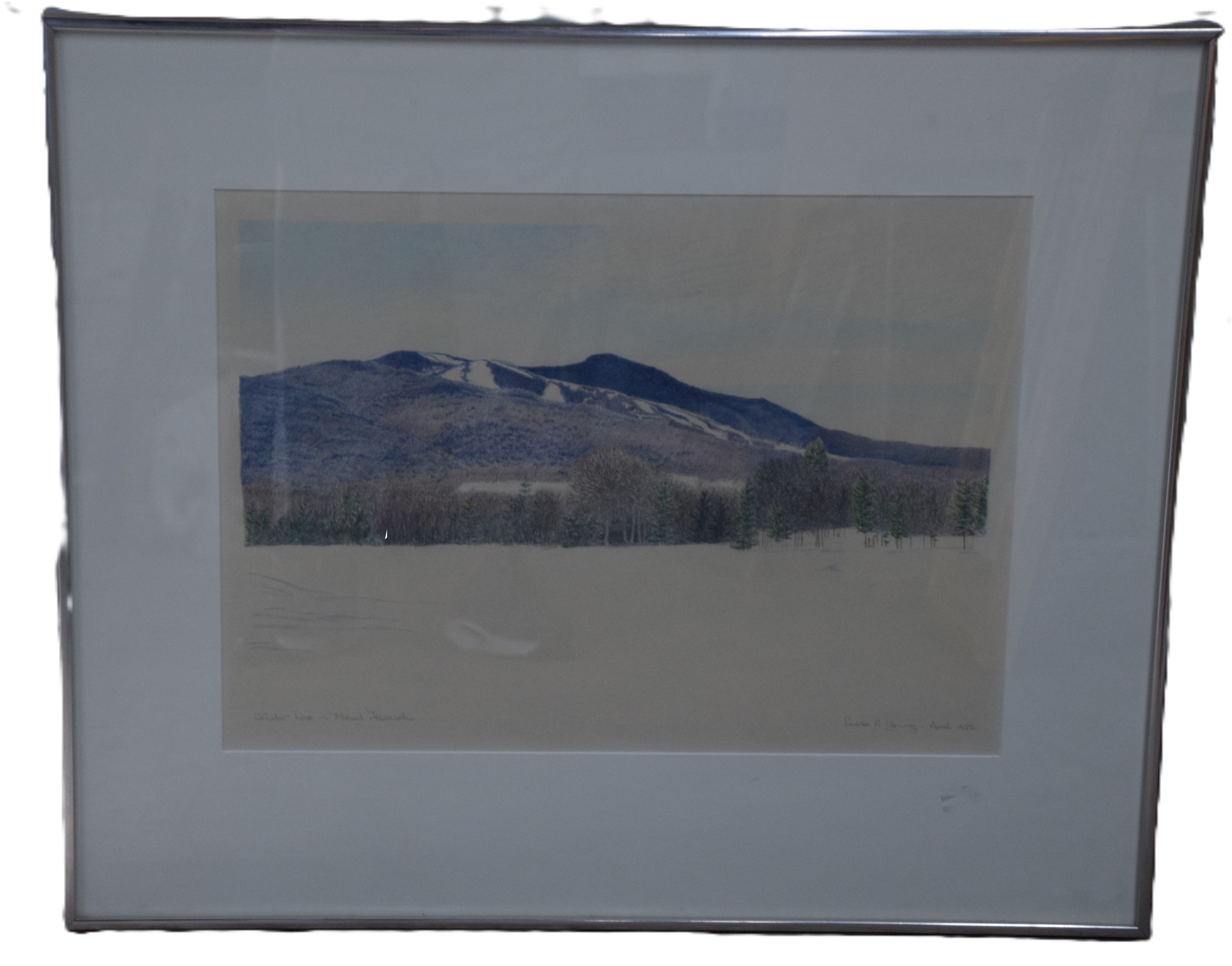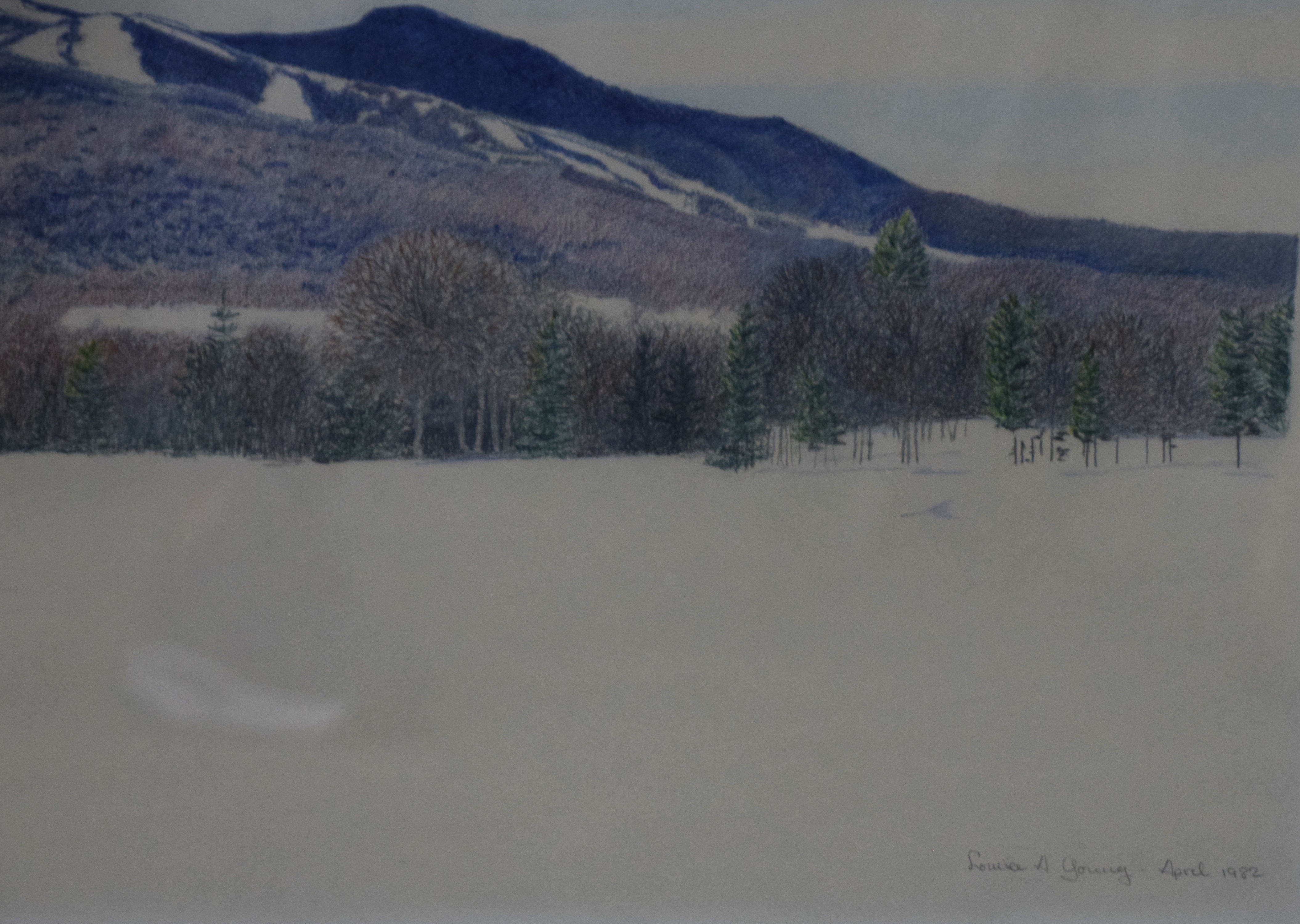 Pencil signed Houser A. Young New Hampshire watercolor titled “Winter Love-Mount Tecumseh”, 1982. Dimensions: 16″ x 21.5″