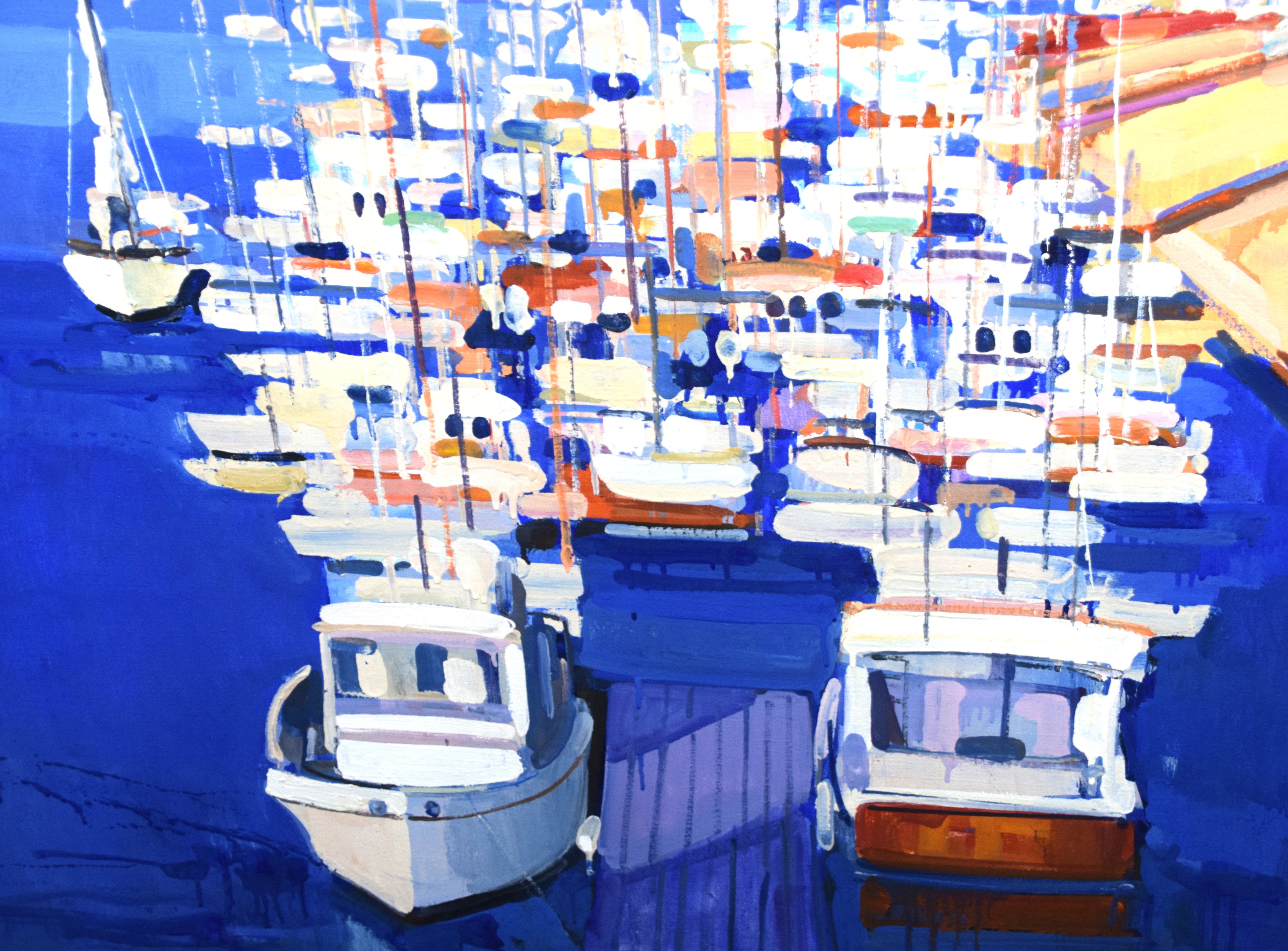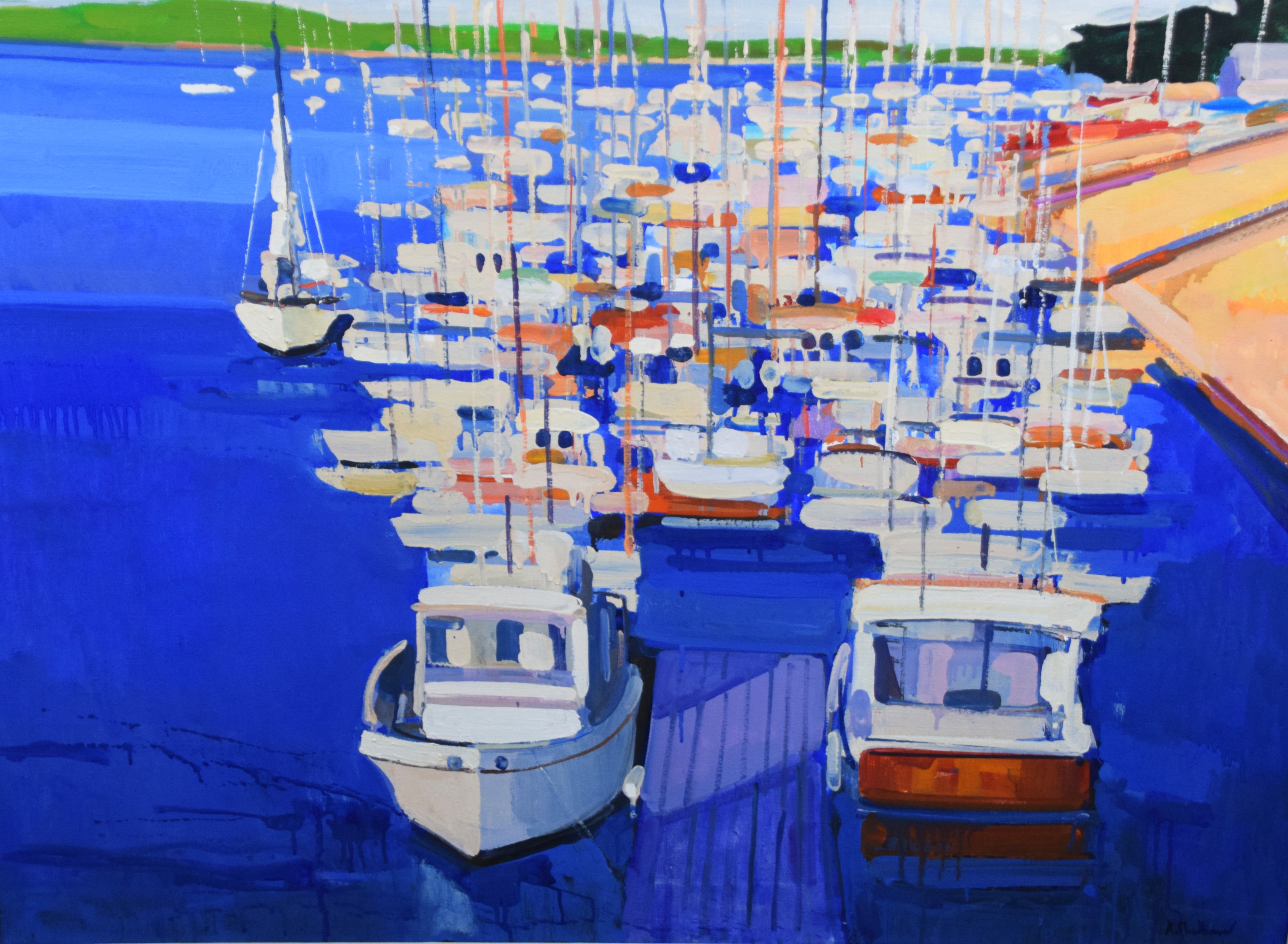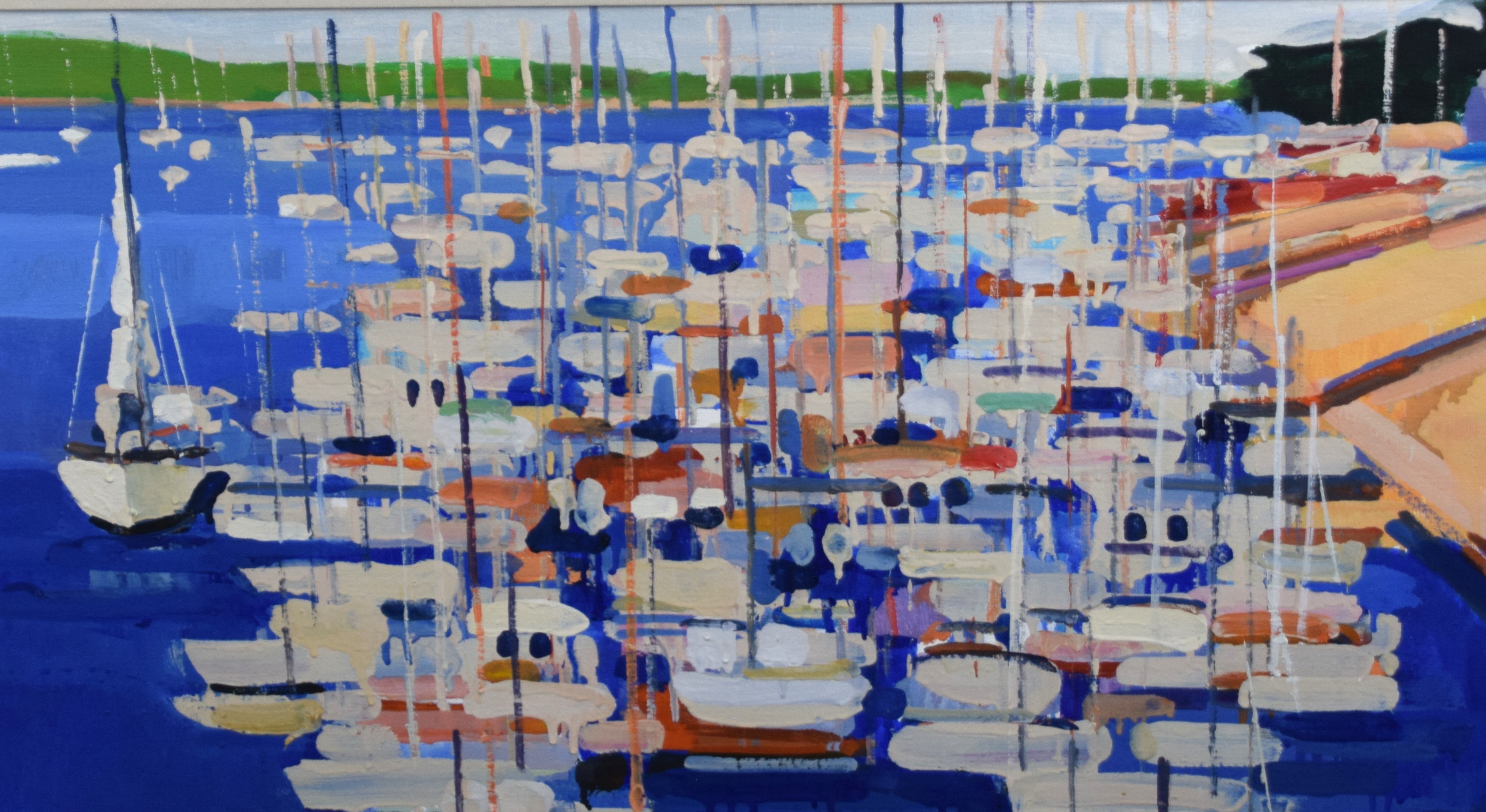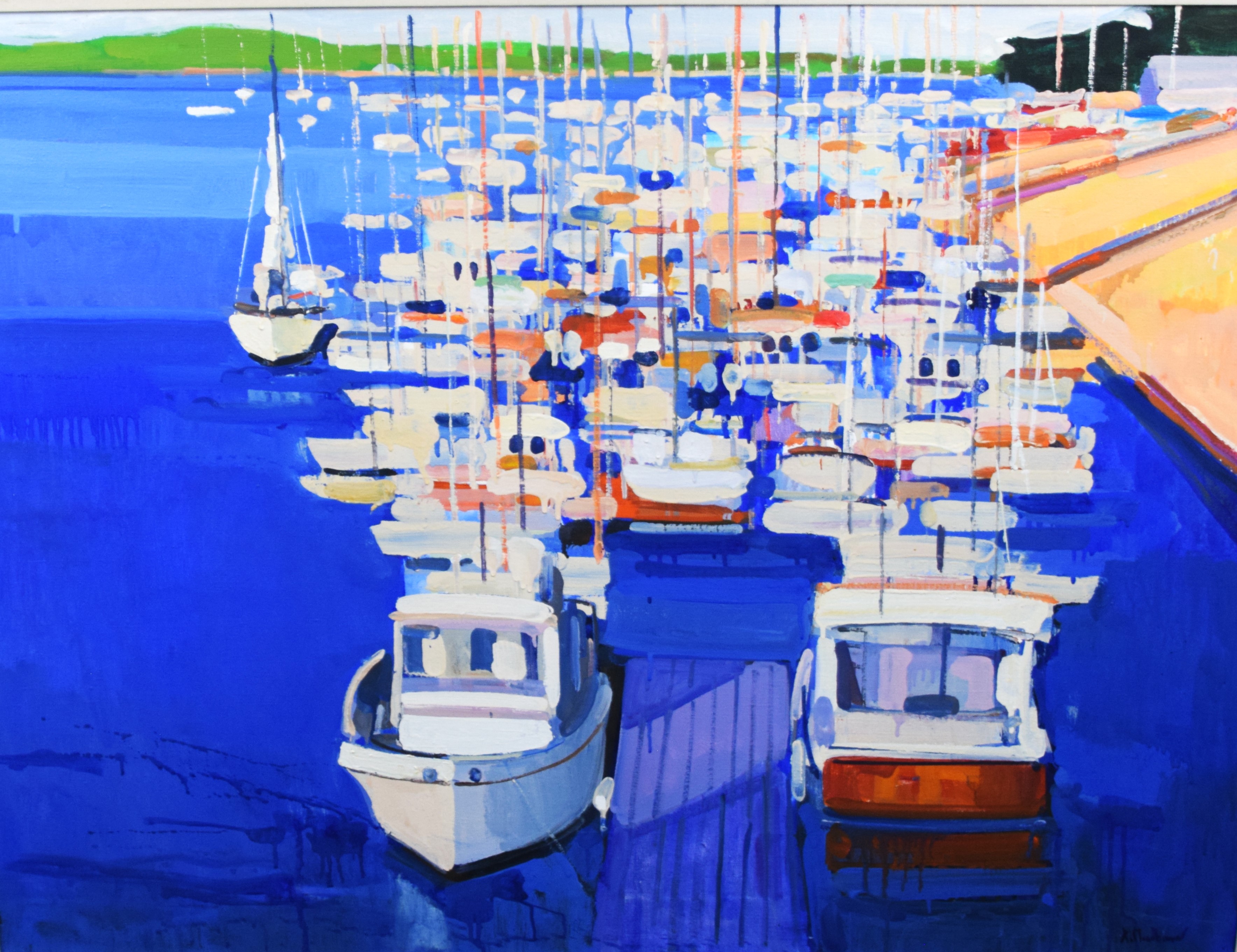 Framed oil on canvas boatyard scene by Alfred Chadbourn, signed lower right. Alfred Cheney Chadbourn (1921 – 1998) was a member of the National Academy of Design and worked primarily in Maine and is known for landscapes and still life. He taught art at Queen’s College in New York and at the Portland Art School in Maine from 1973 to 1981 Dimensions: 30″ x 40″ Image size
