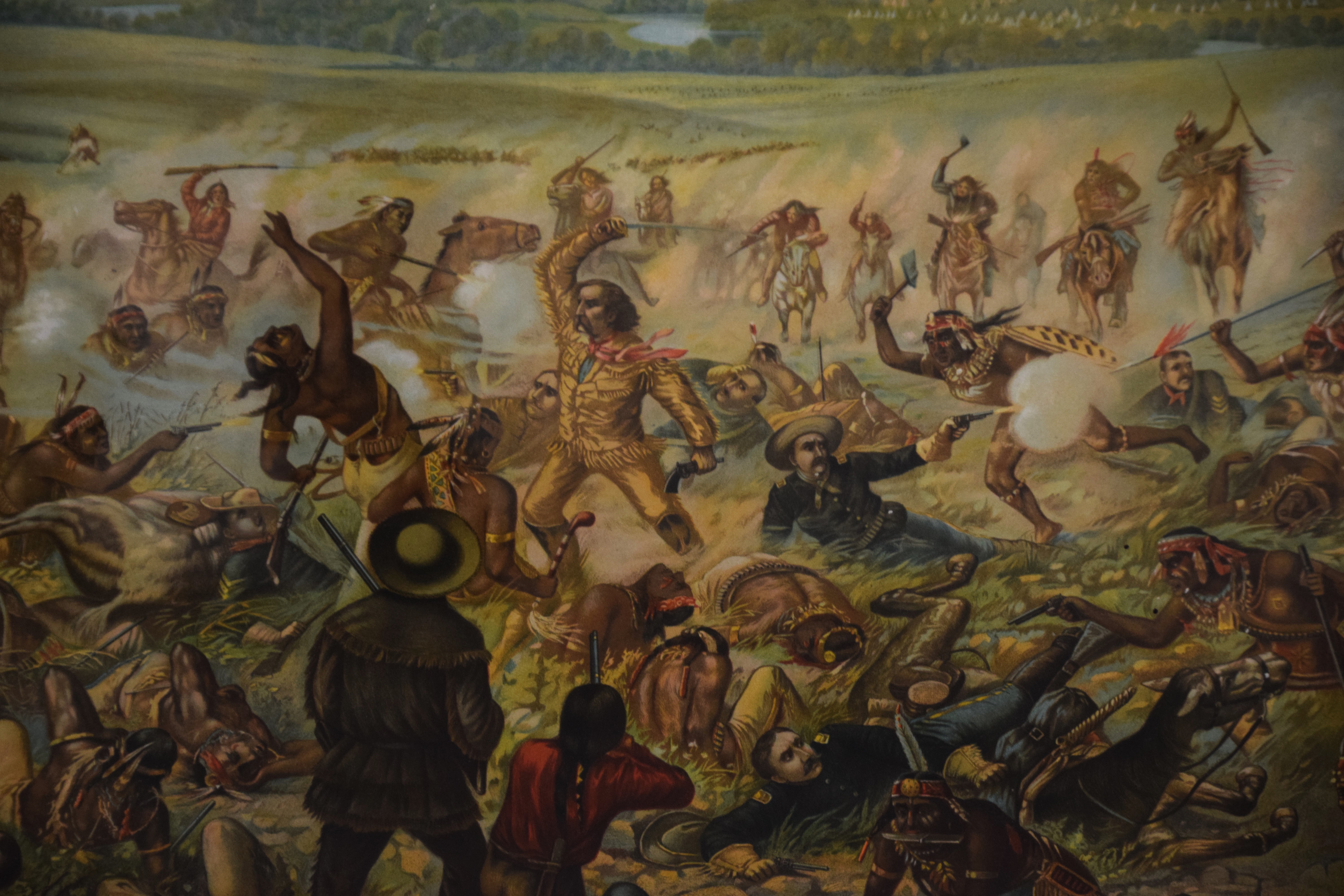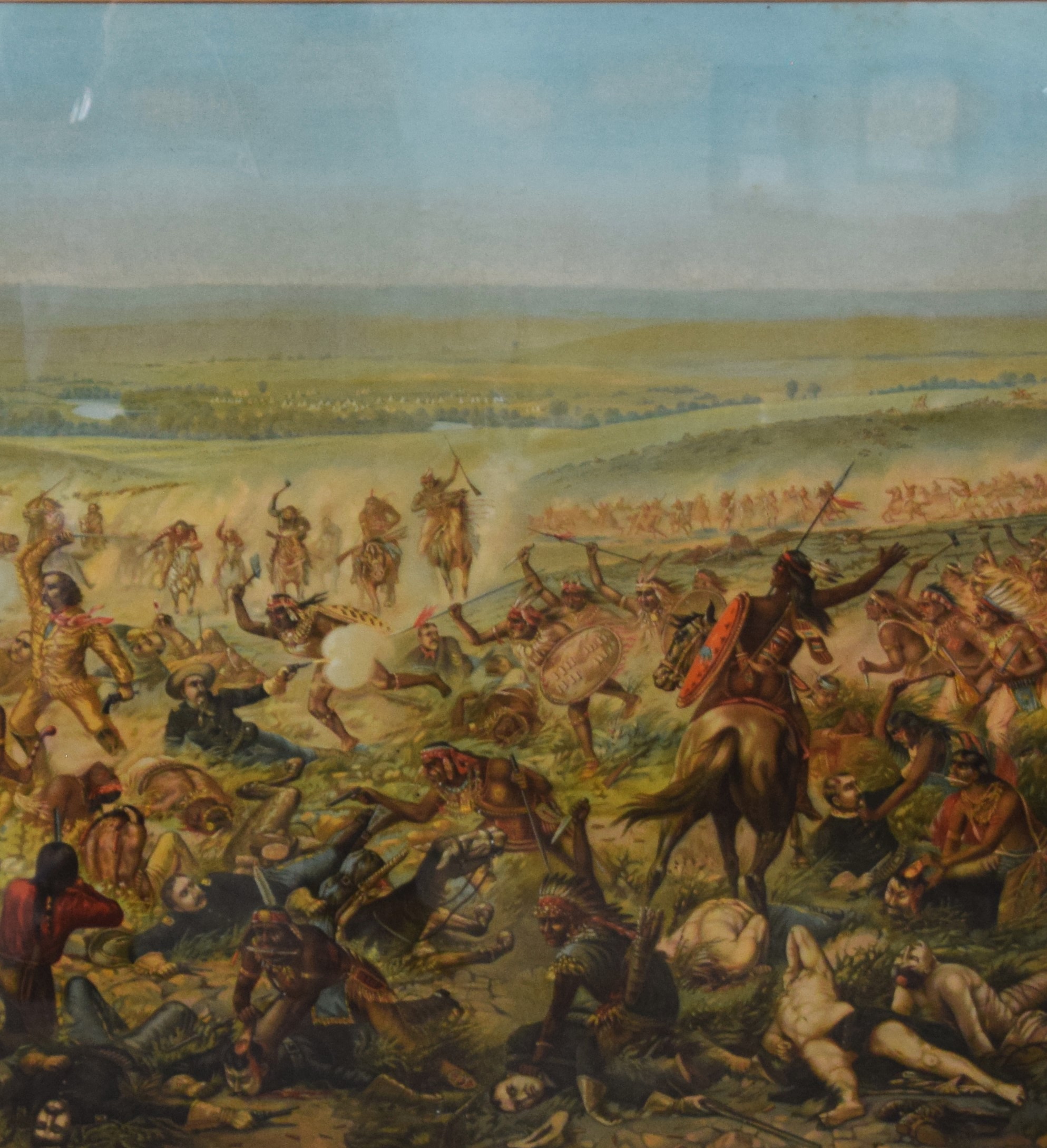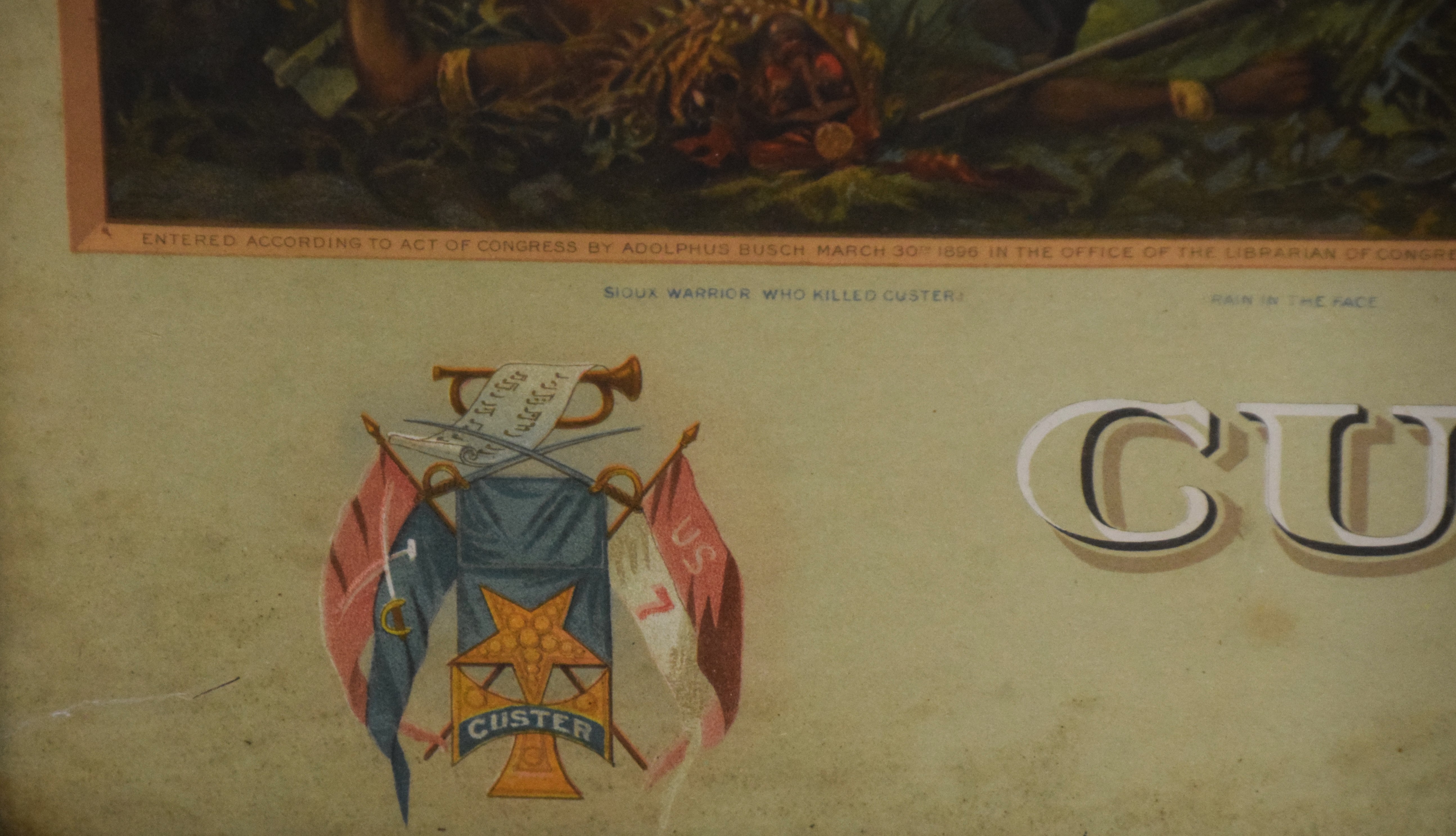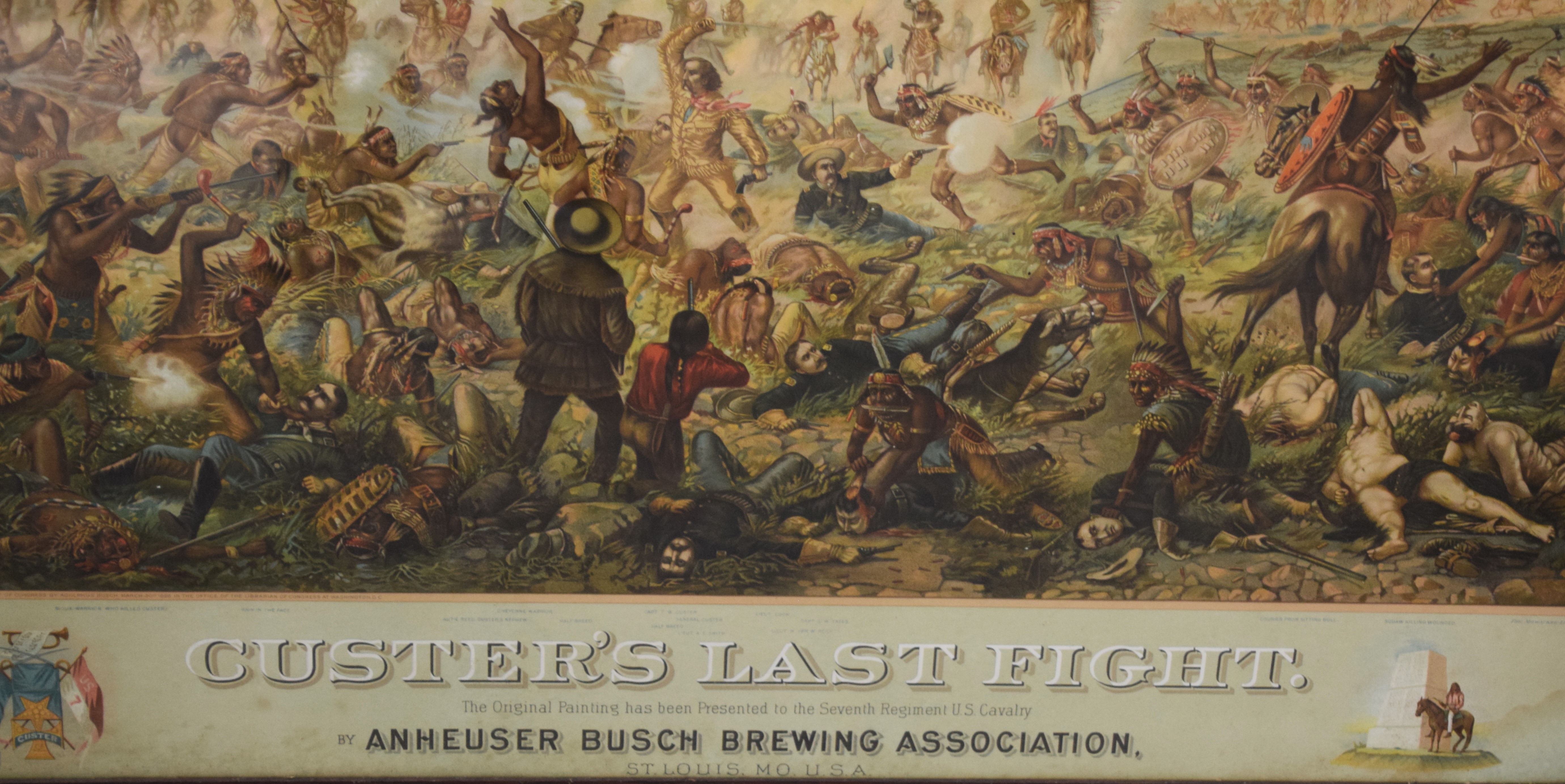 An outstanding 1896 Anheuser-Busch lithograph of Custer’s Last Stand with excellent color and graphics in an original Anheuser-Busch oak frame. Dimensions: 34.5″ x 44.5″ Overall