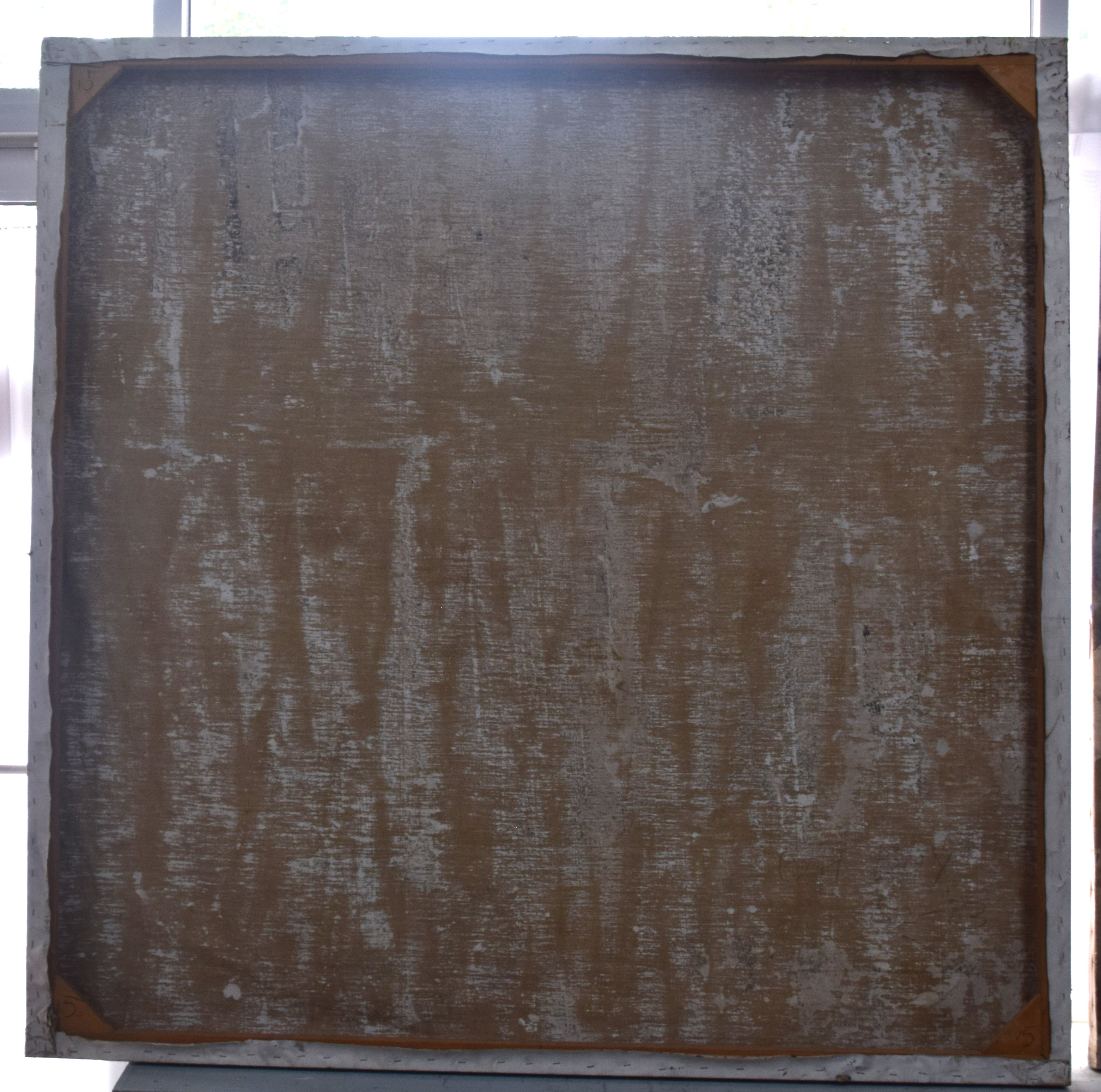 An abstract, multicolored painting similar to lot 13 “All The Glory”. Elyssa Rundle (1932 – 1994) worked in New York and Pennsylvania and is known for Gestural abstract painting (Vincent van Gogh was also known for Gestural techniques). She opened a studio on West 23rd Street in New York City and became a member of the New York School of Gestural Abstract Expressionism. Rundle took bolder risks in her approach to color, composition and proportion, encouraged by the interaction with fellow artists and feed-back by noted art critics of her time including supporters Clem Greenburg and John Russell. Three years after her death, in 1997, her collection of work won a grant from the Judith Rothschild Foundation, established for the purpose of bringing recognition to highly talented, deceased artists. The Rothschild Grant helped create an inventory of the collection, and an exhibit and catalogue called: The Spirit of the Paint, by the Berman Museum. This artwork is from that collection. Dimensions:66.5″ x 66″