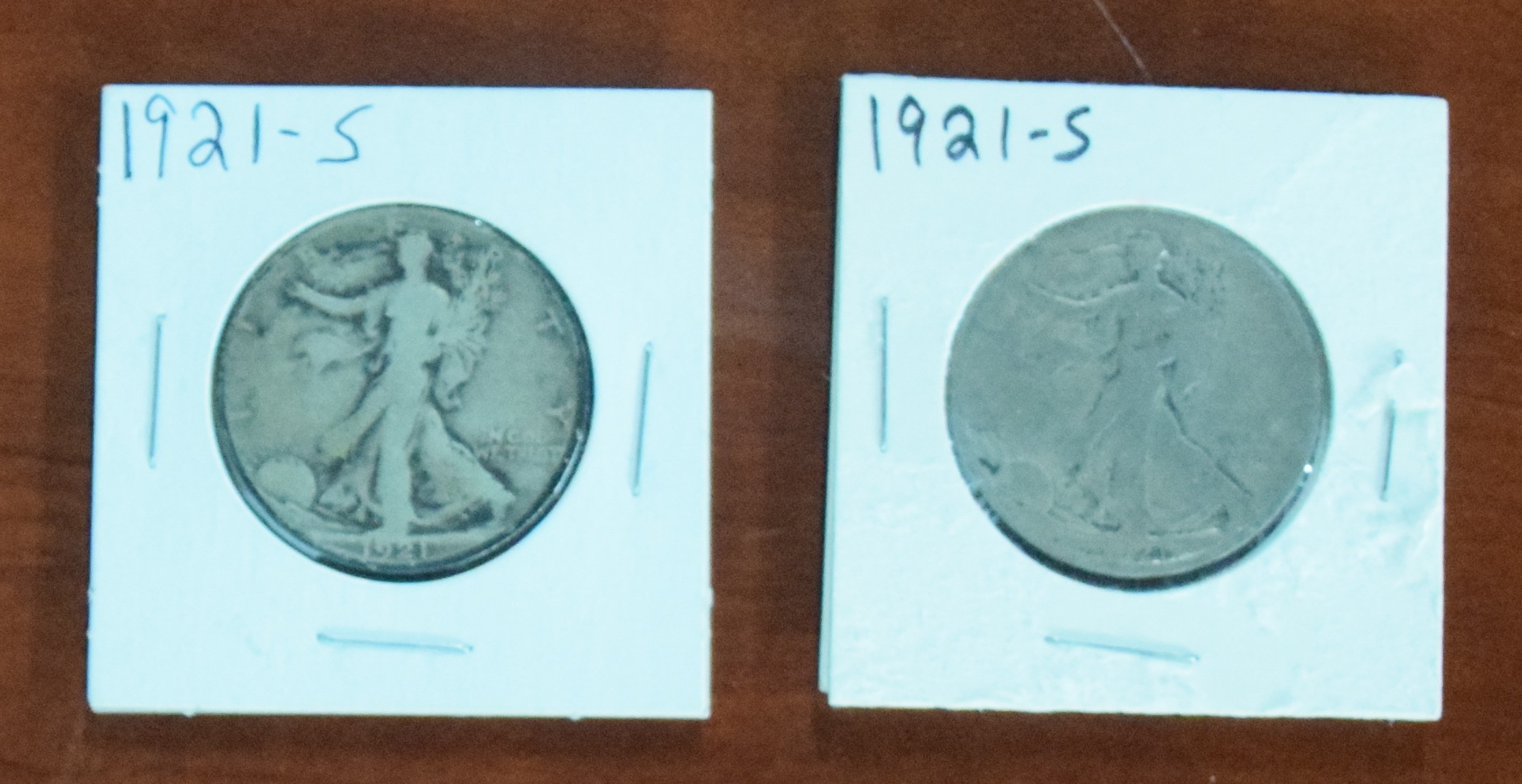 Two 1921-S Liberty Walking silver half dollars, one graded fine.( .900 Silver)