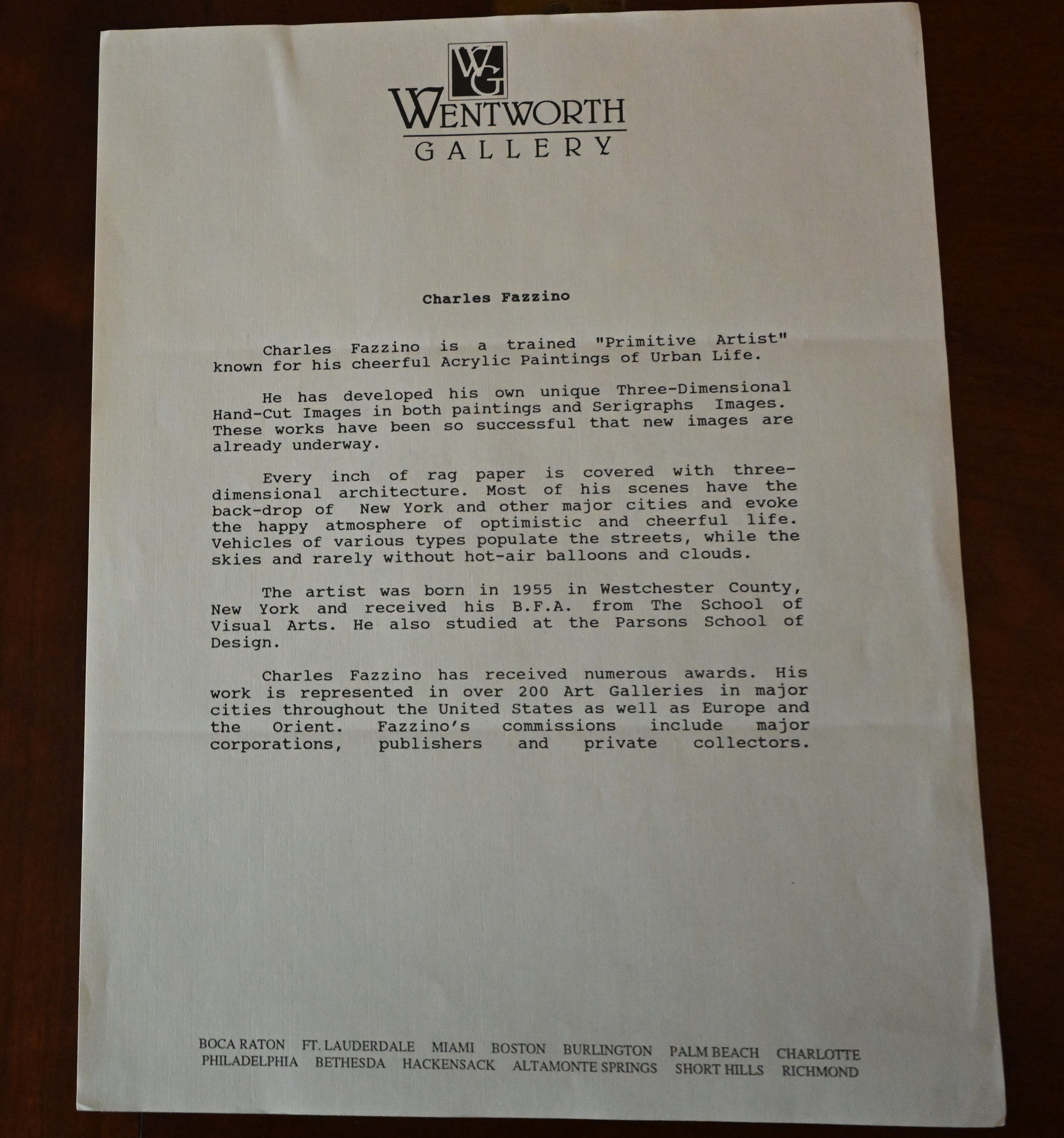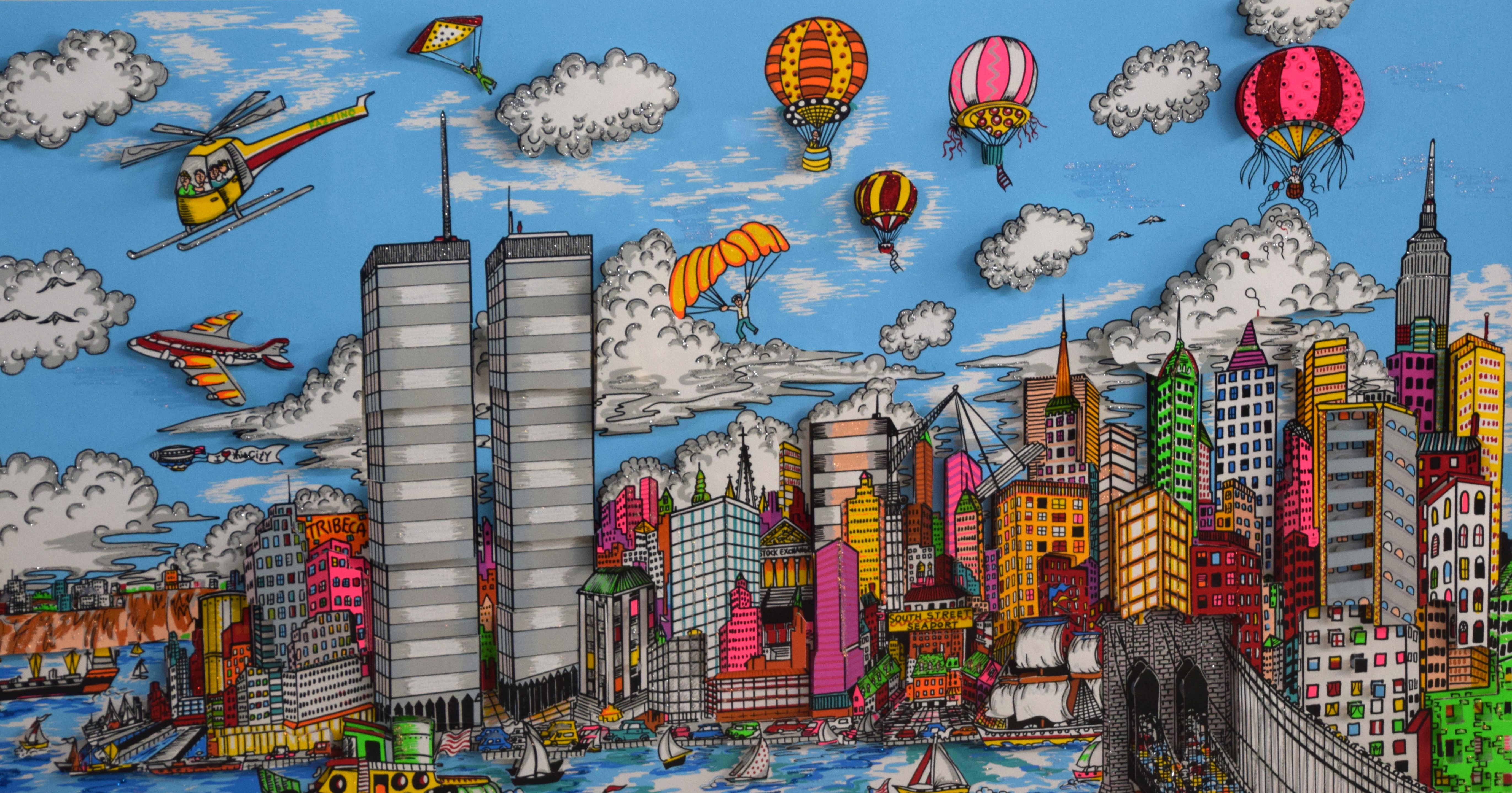 Colorful, framed and signed, 3-D Serigraph titled “Gateway to NY” by Charles Fazzino on museum board. Edition number 230 of 400 with Certificate of Authenticity, dated 1991. Charles Fazzino (Born 1955) works in New York and is known for 3-D graphics, kinetic sculpture, serigraphs. He is best known for his whimsical, exuberant renditions of New York City of which this is his best one. Dimensions: 28″ x 36″ Image size