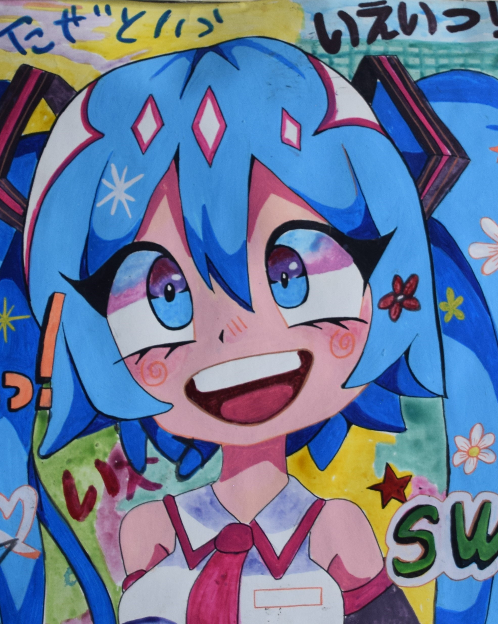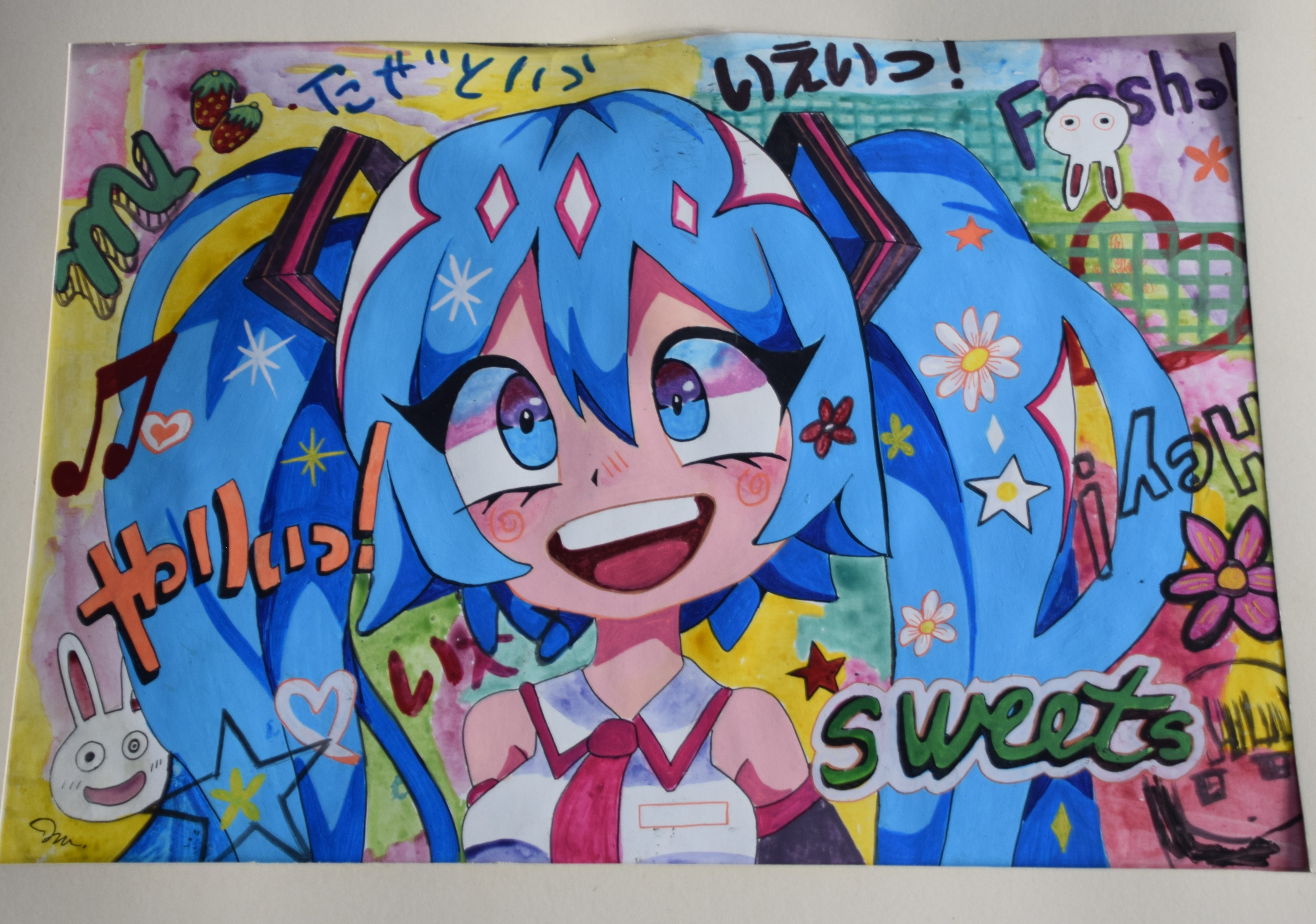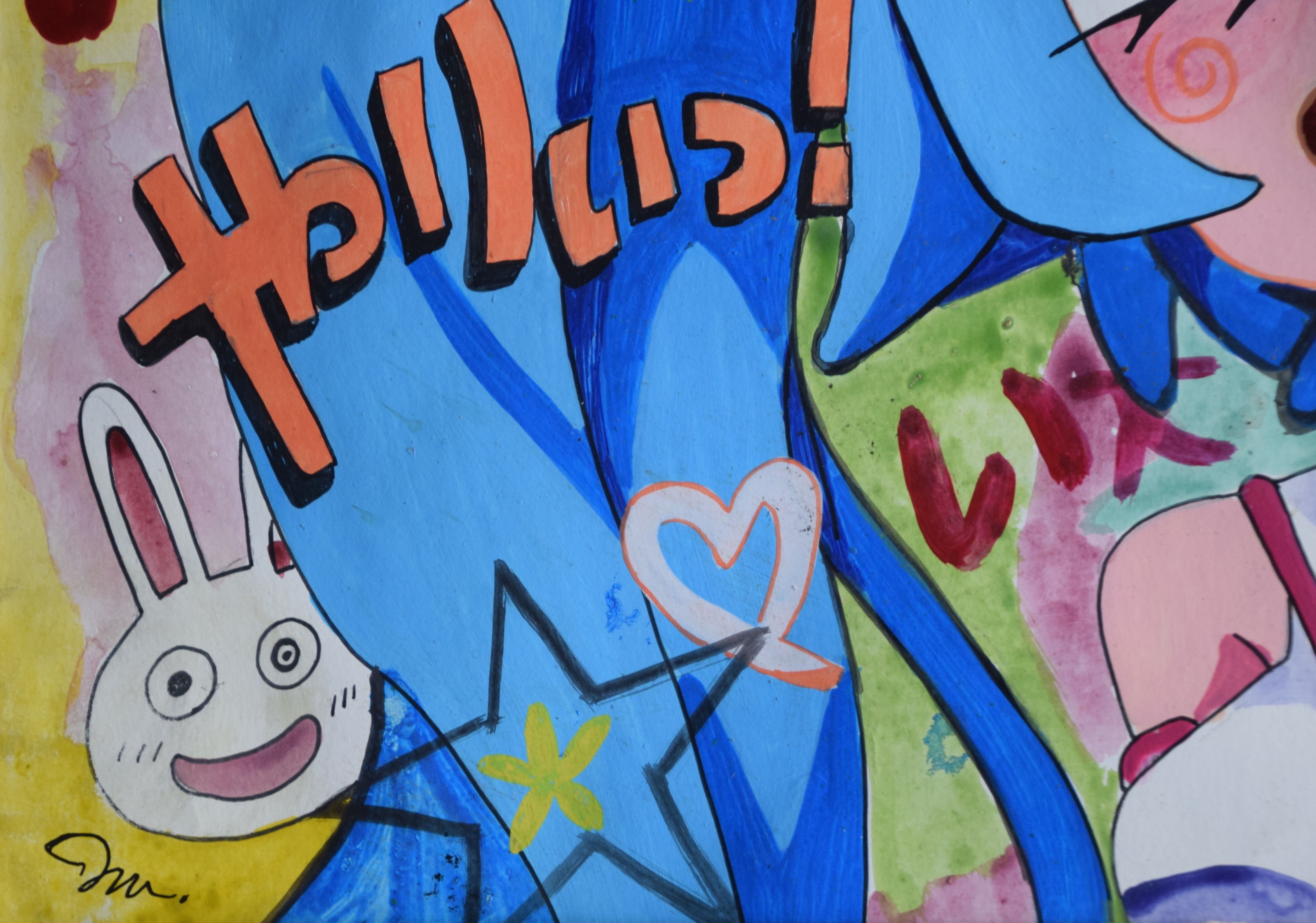 Japanese pop art/cartoon painting, signed lower left. Dimensions: 18.5″ x 26.5″