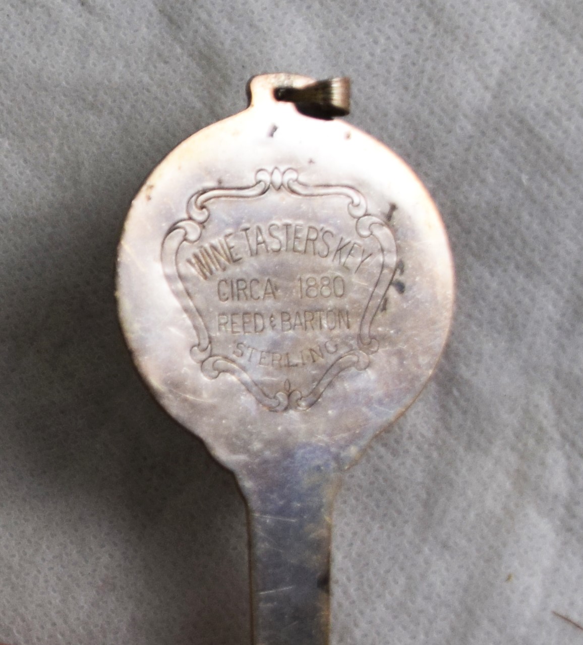 Sterling silver wine taster along with a metal whistle and collapsible cup. Silver weight: .6 Troy Oz.