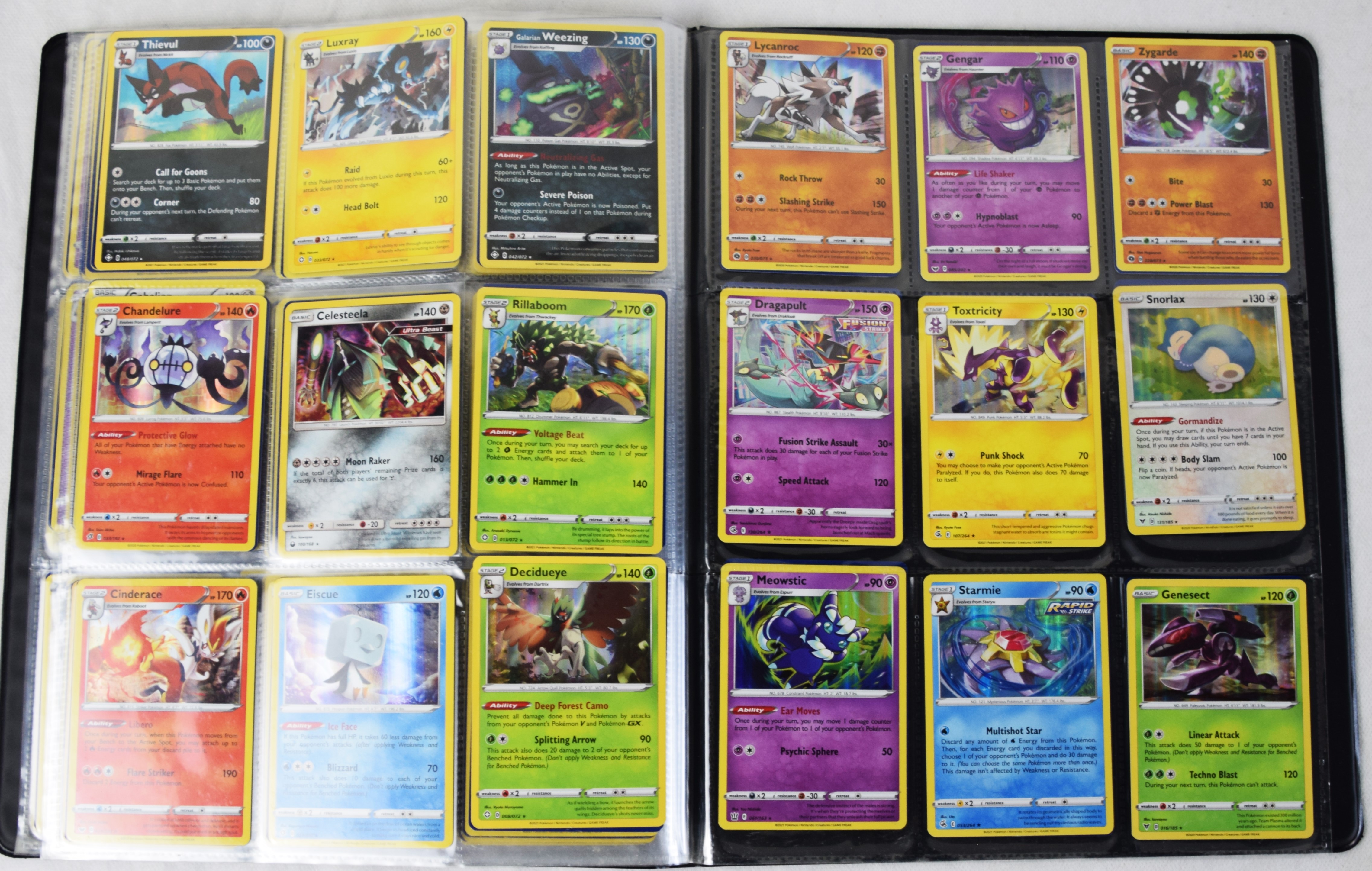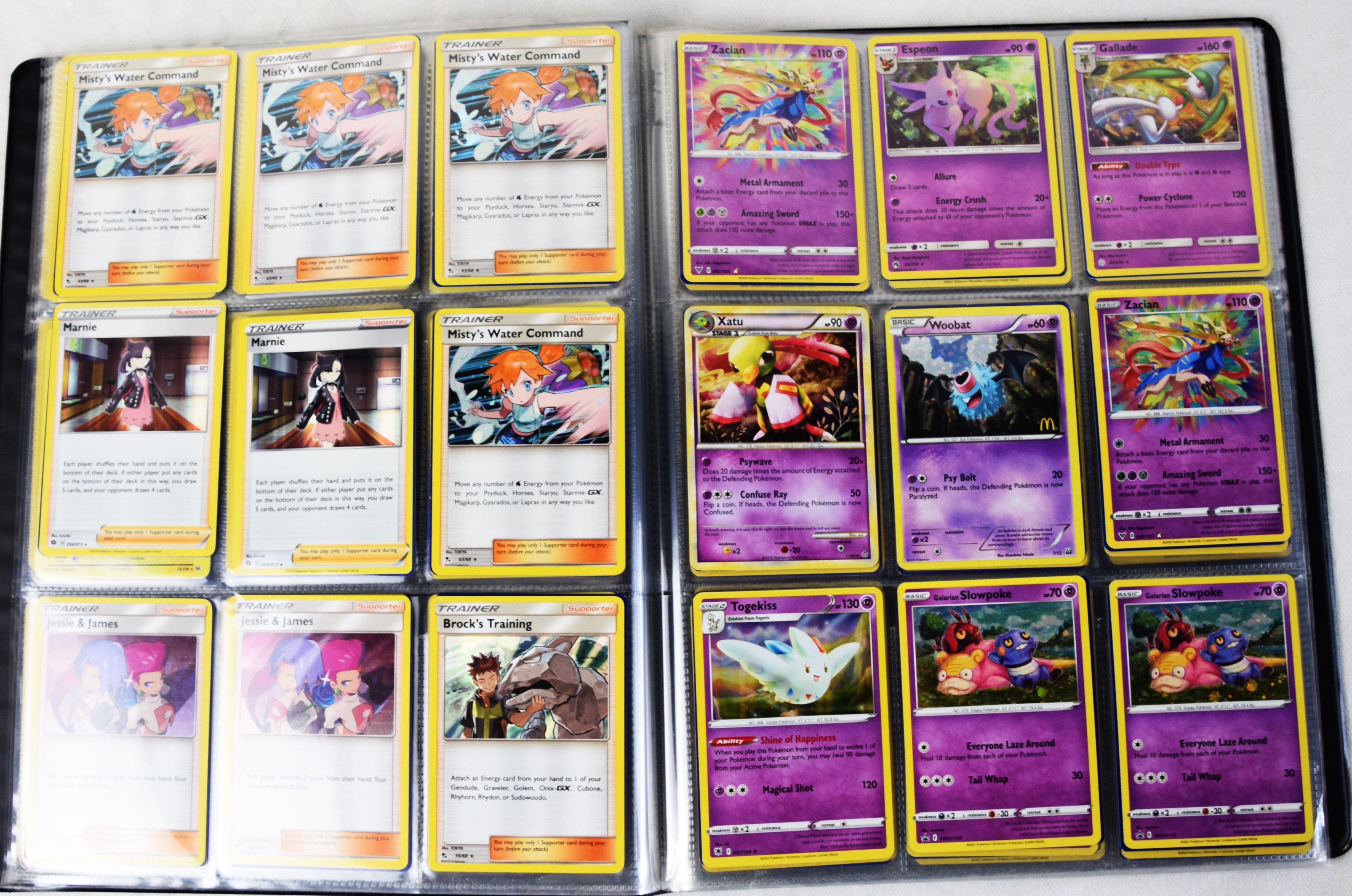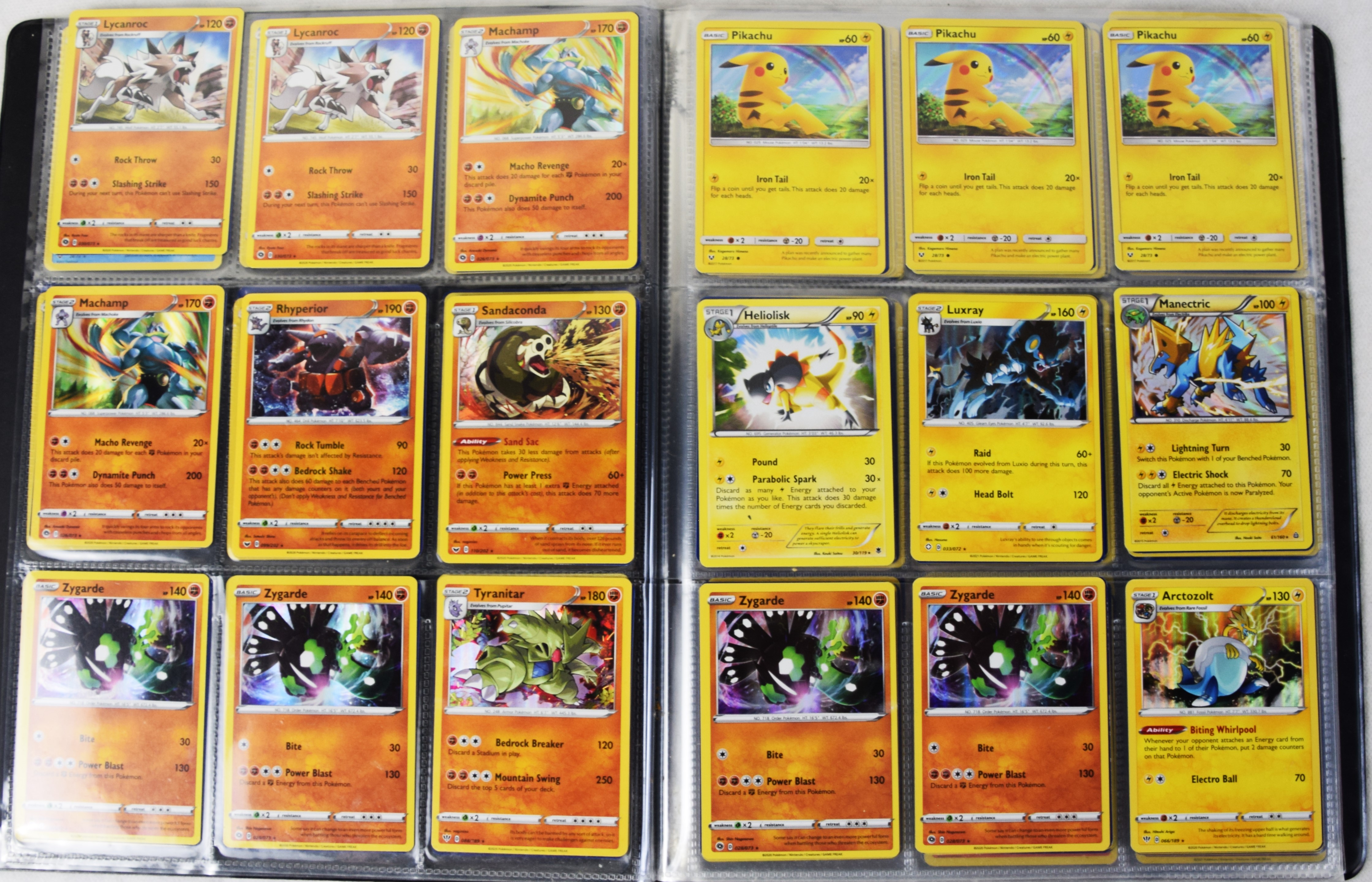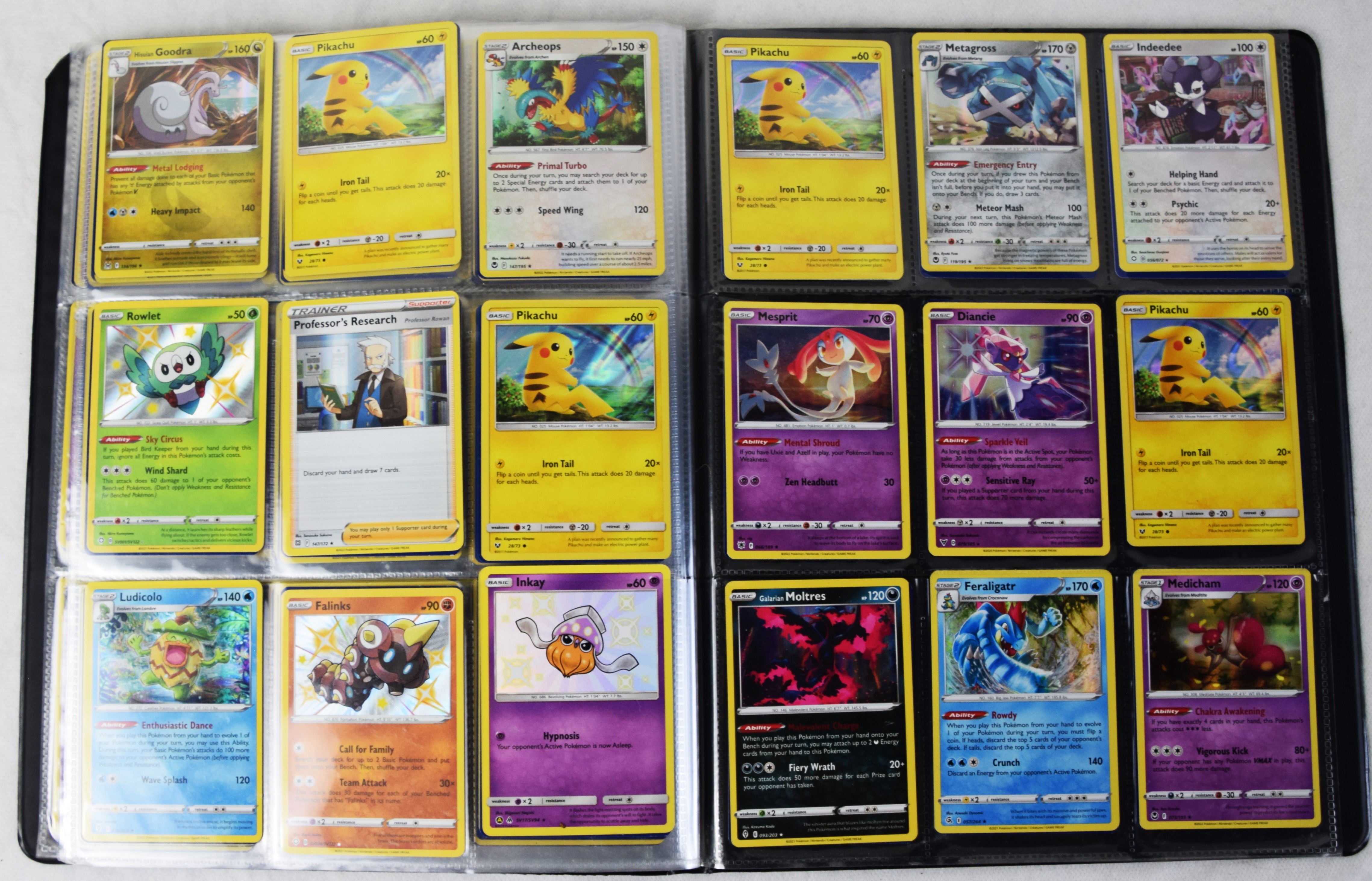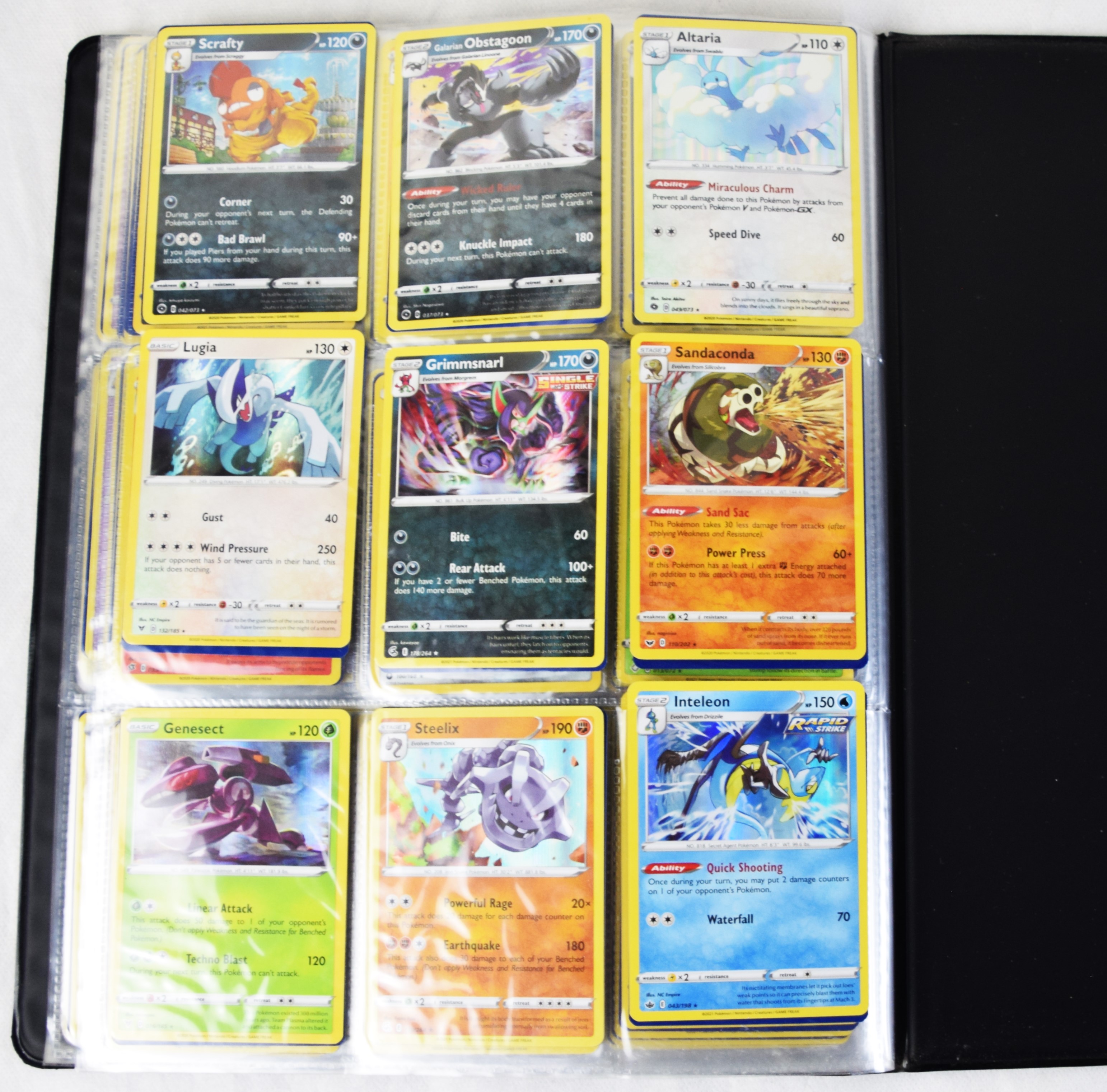 Approximately 60 pages of 9 cards each in three Pokémon binders, 2020-2023 vintage.