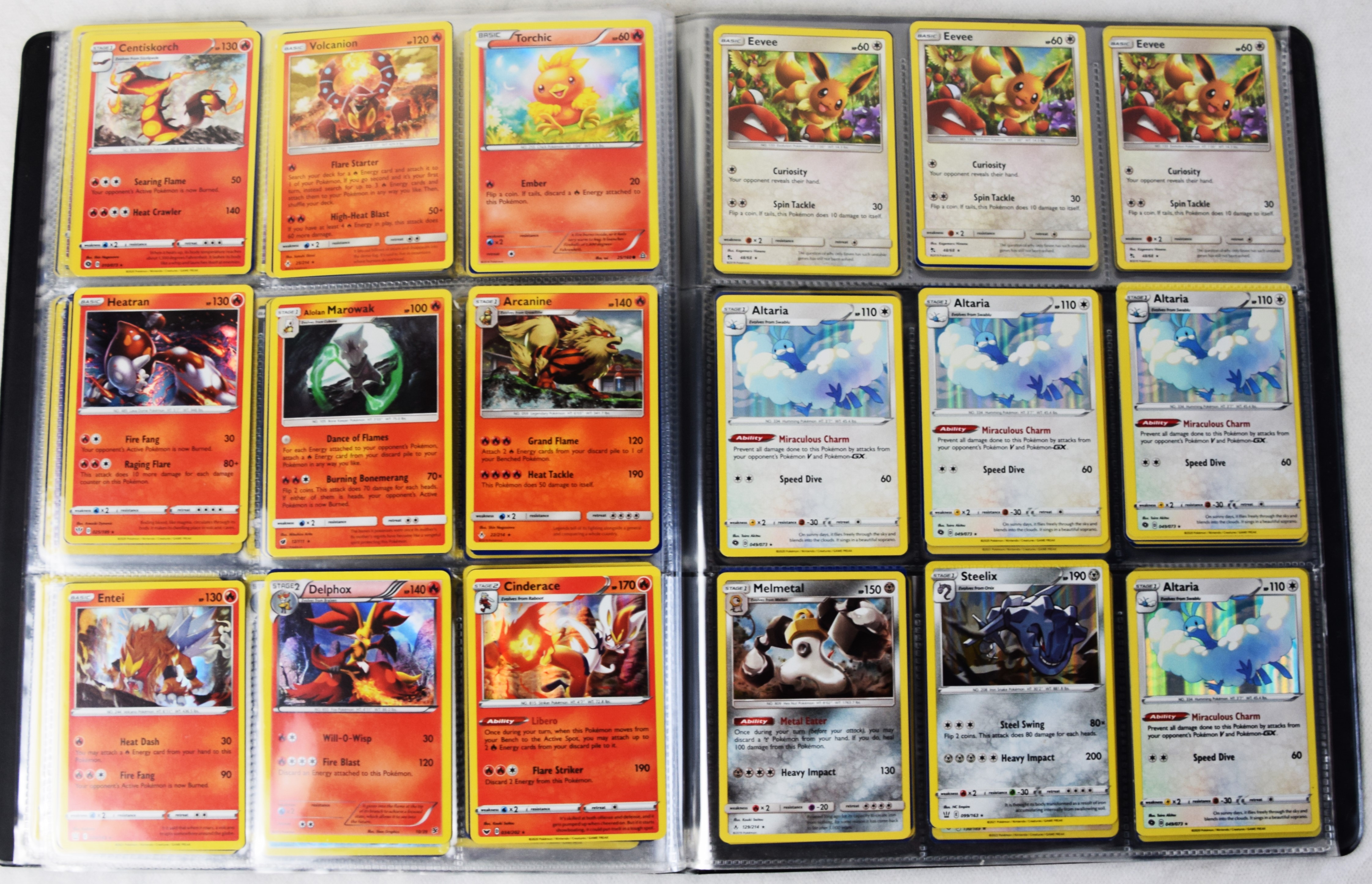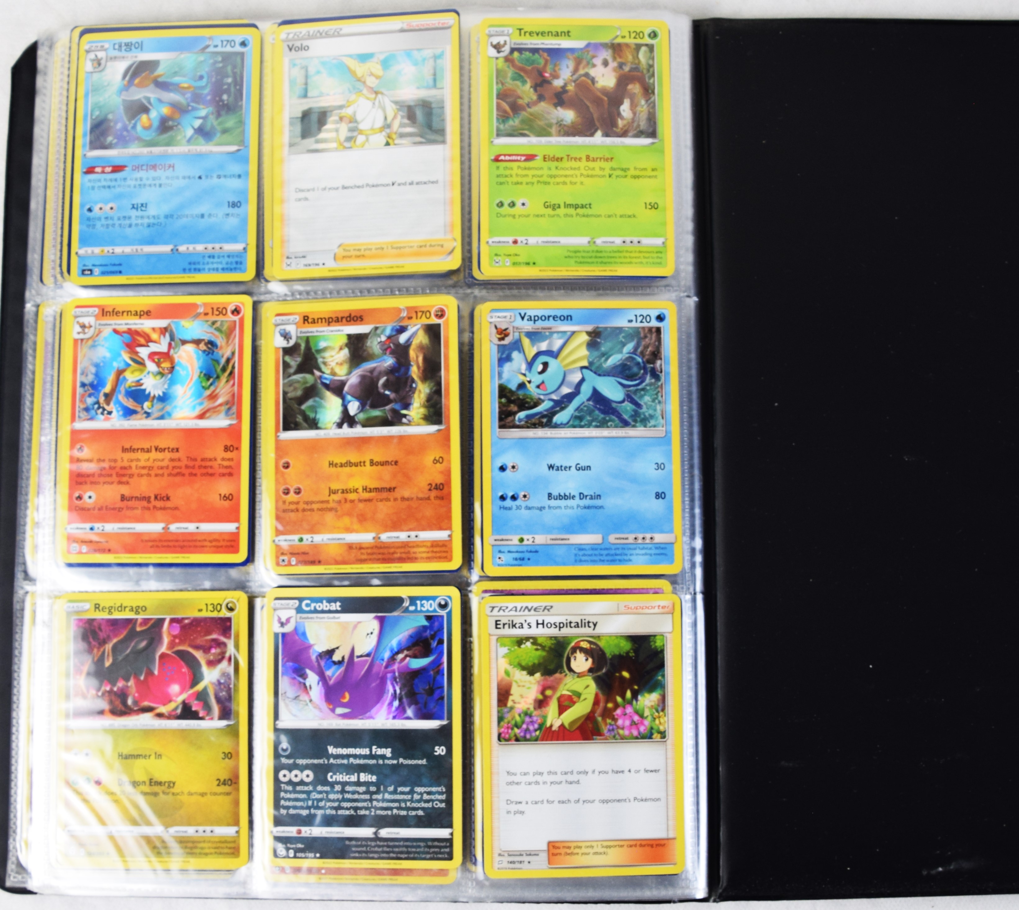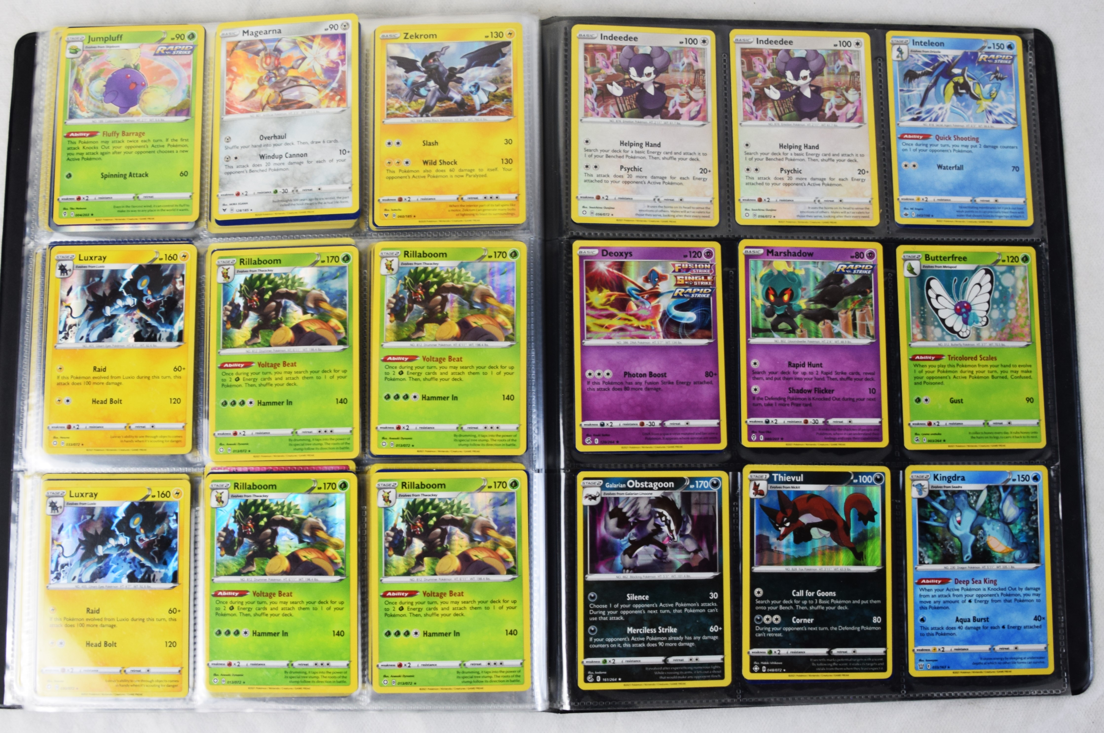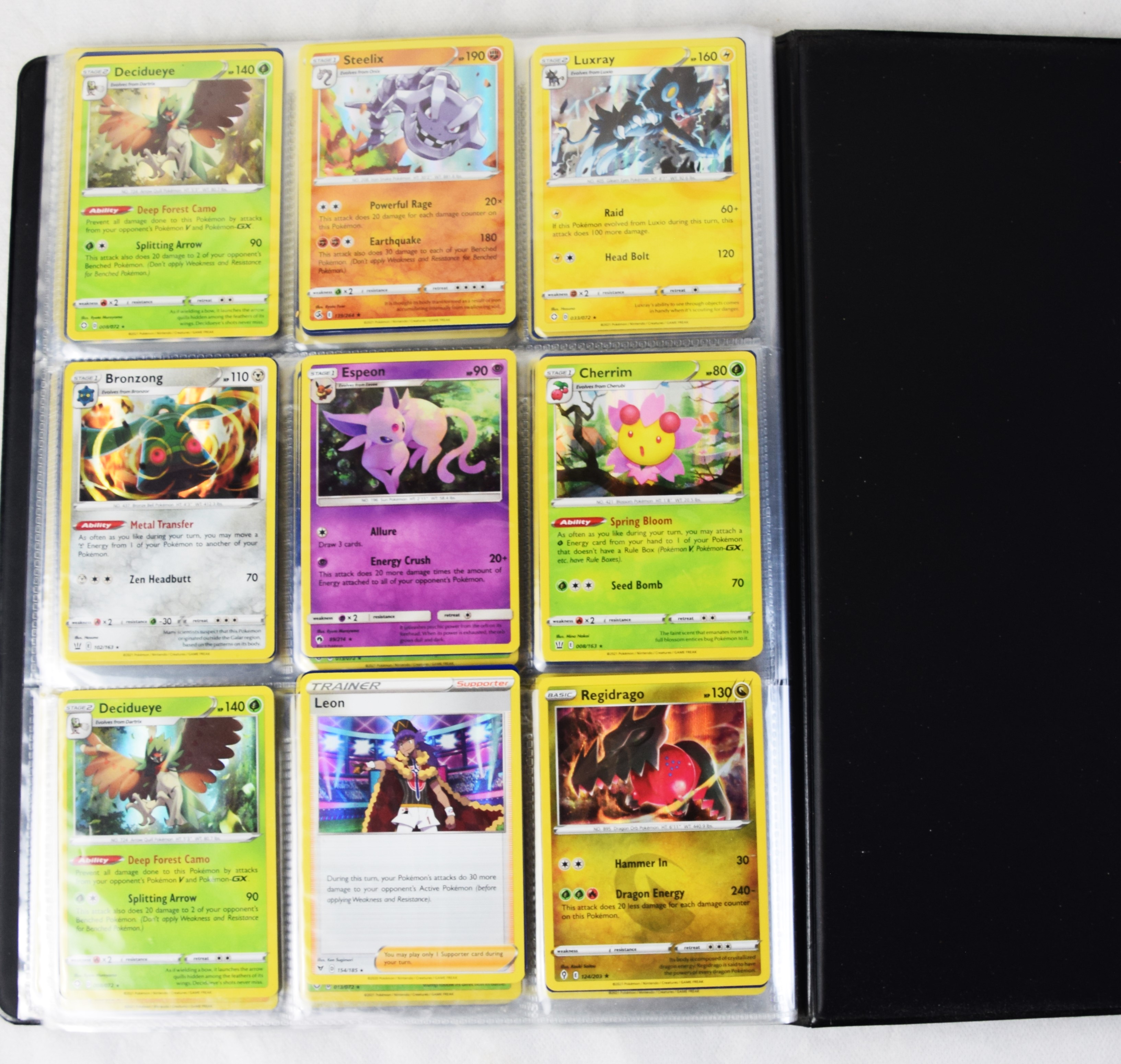Approximately 60 pages of 9 cards each in three Pokémon binders, 2020-2023 vintage.