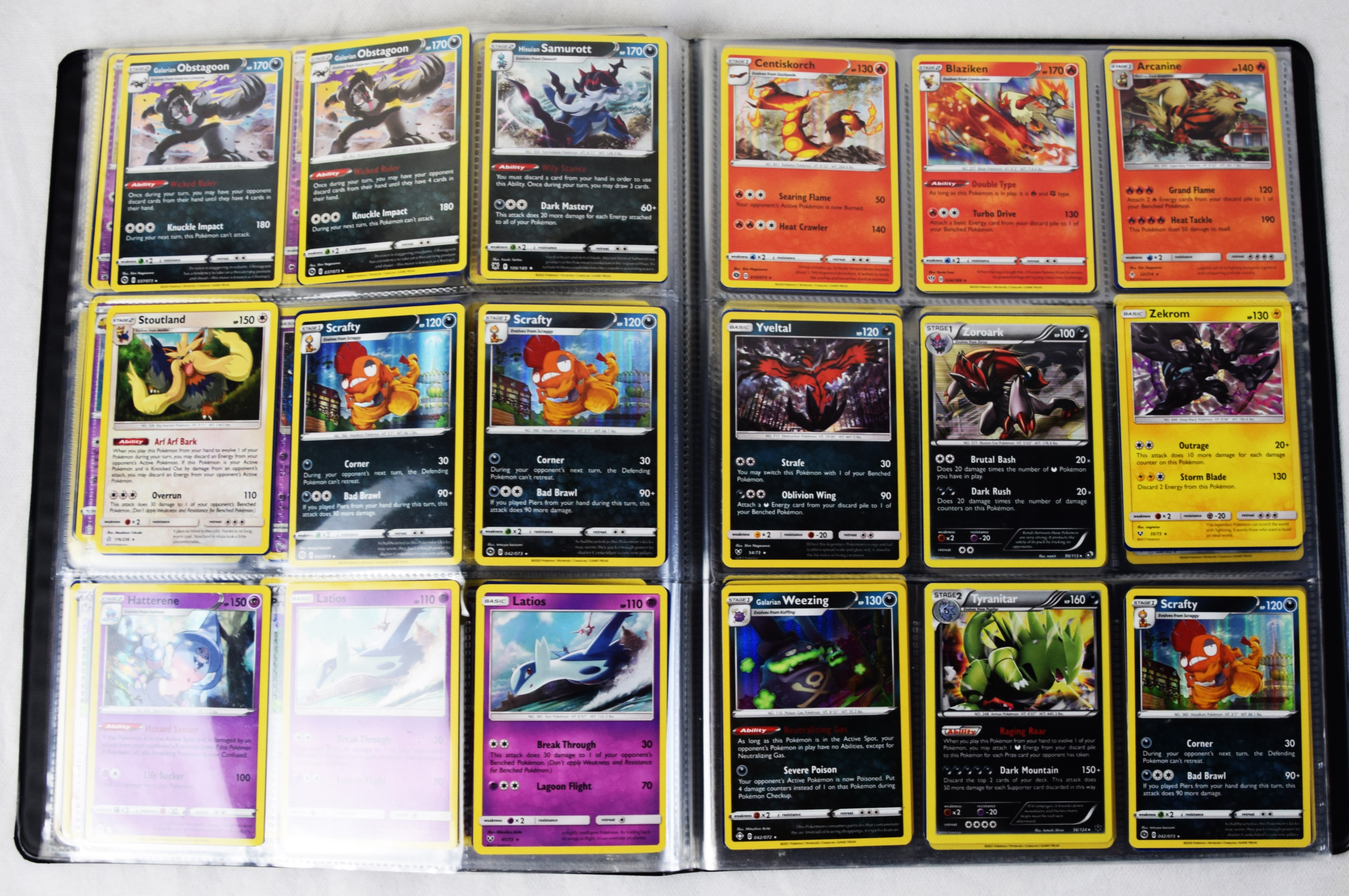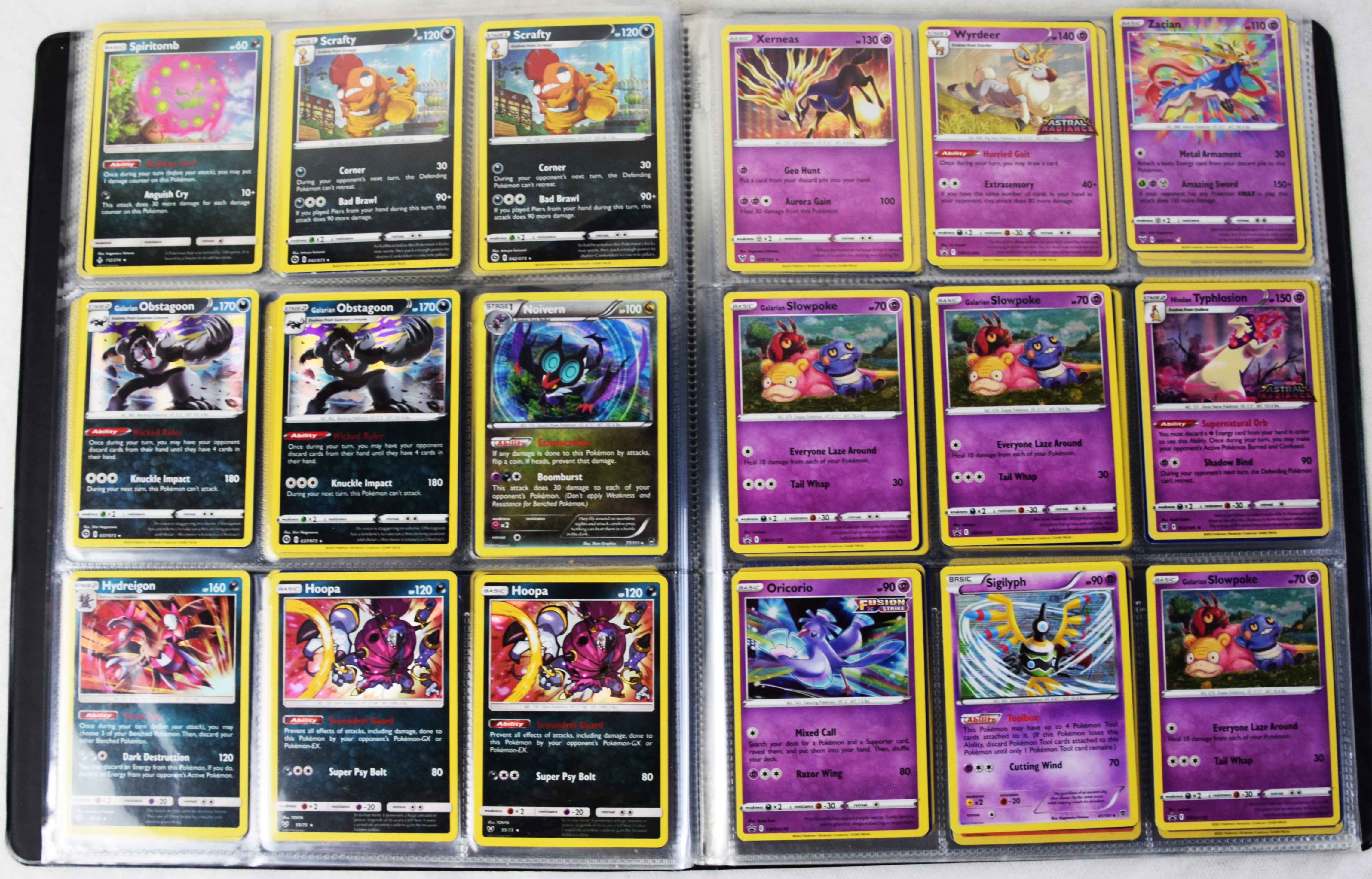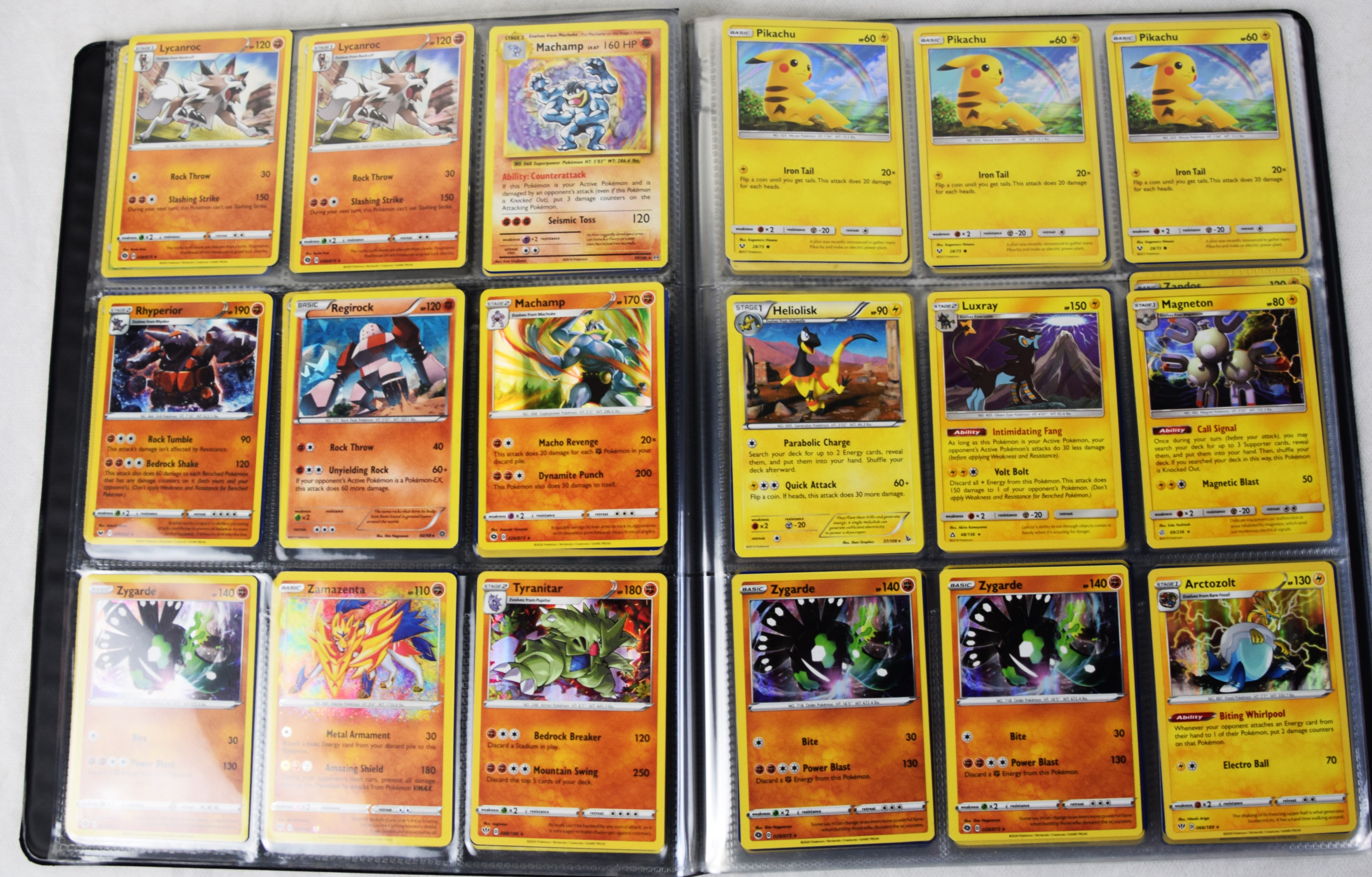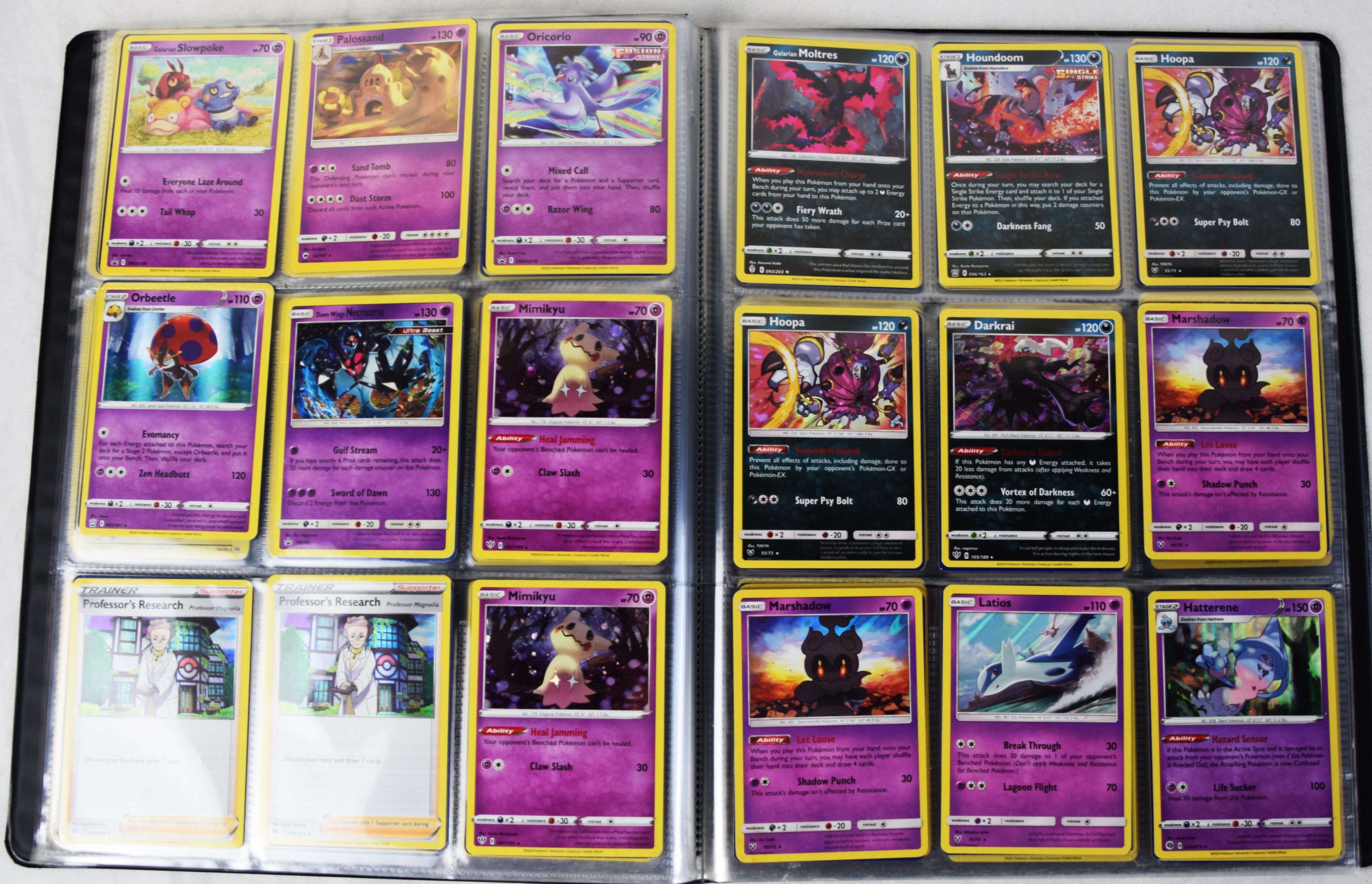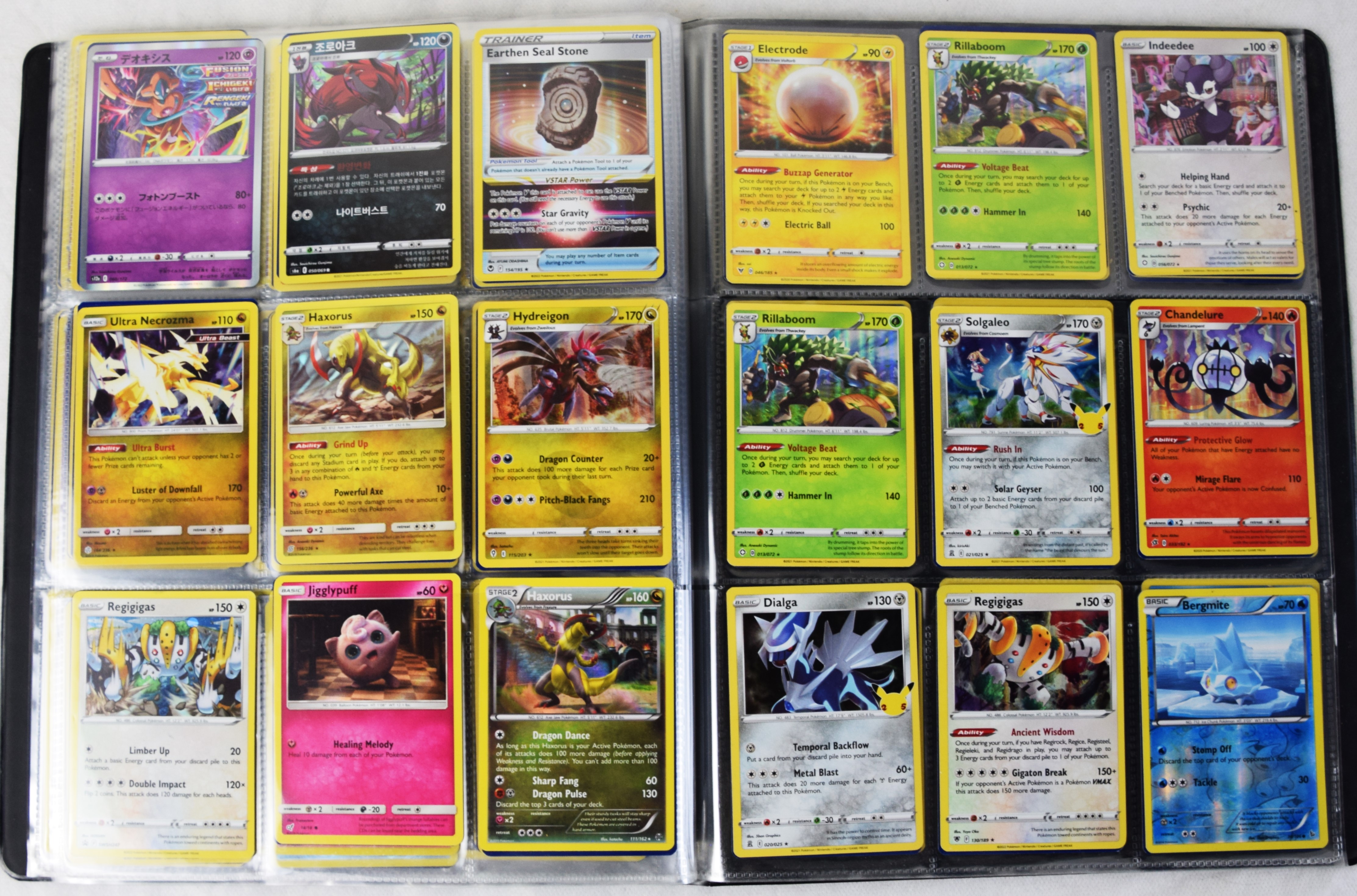 Approximately 60 pages of 9 cards each in three Pokémon binders, 2020-2023 vintage.